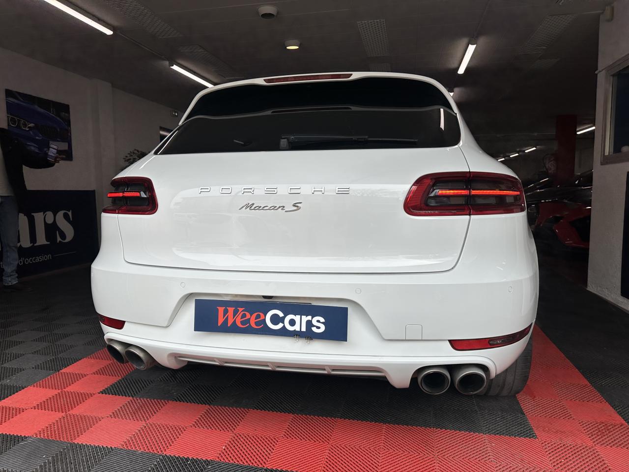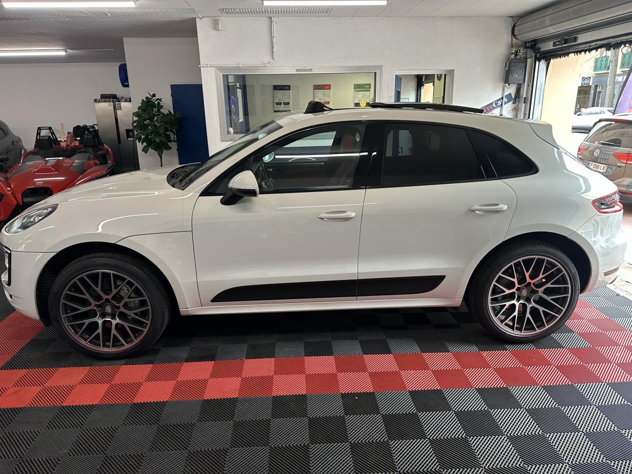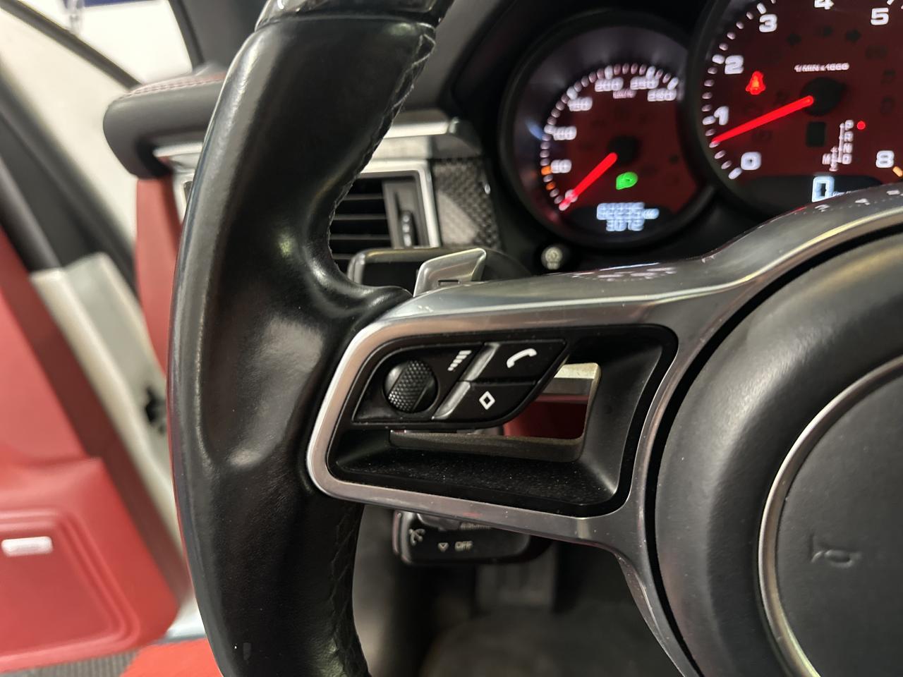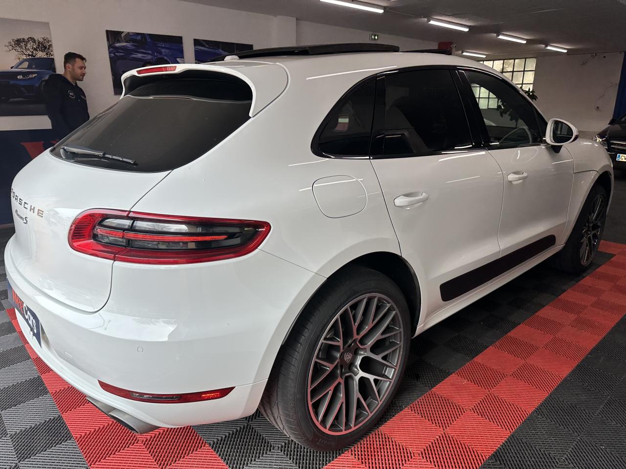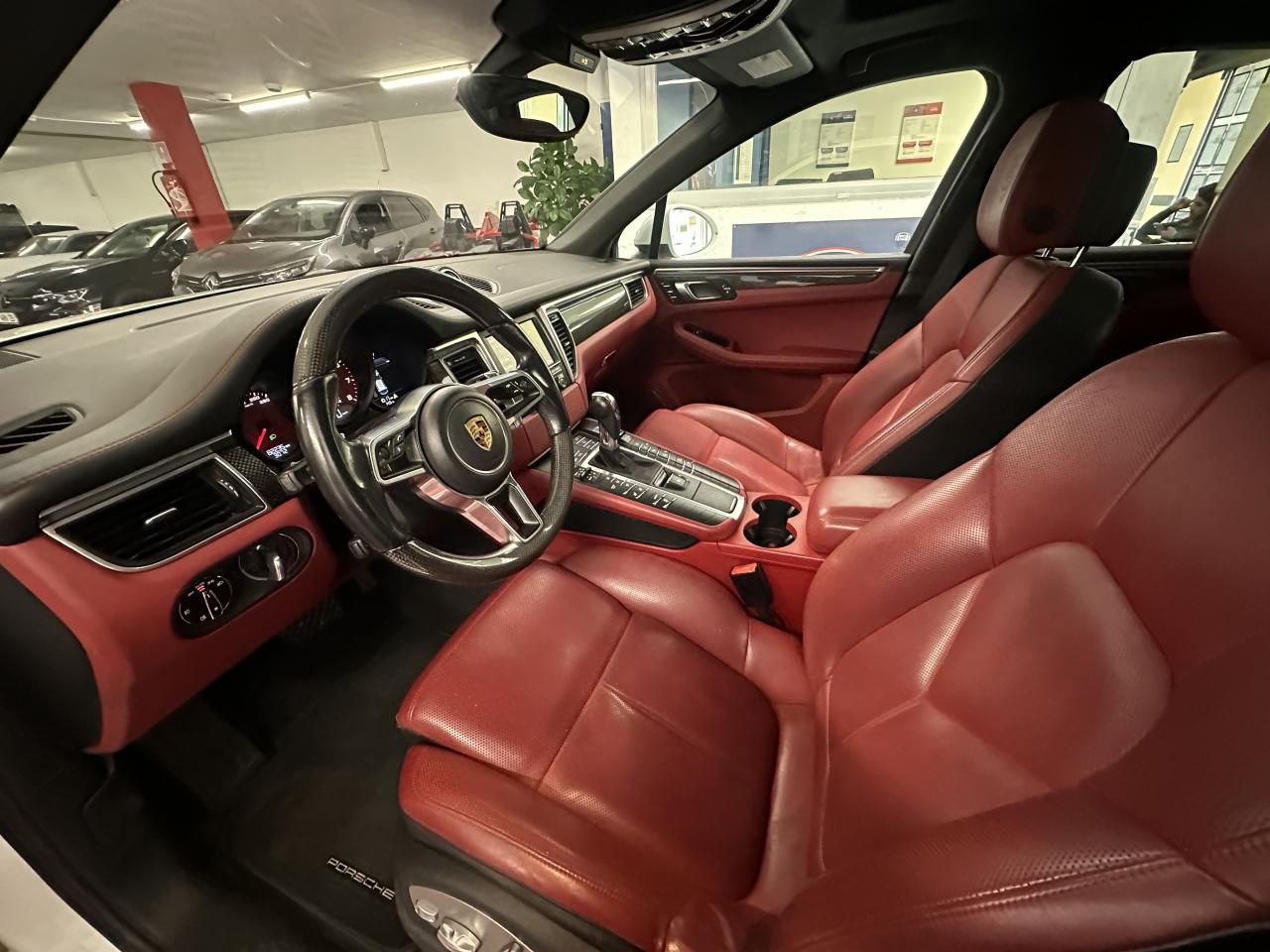 2 Porte-gobelets à l'avant, à diamètre variable3 instruments ronds intégrés dans le cockpit4 portes avec protection anti-encastrement latérale4 prises de courant 12 V : A l'avant et au milieu de la console centrale, au niveau de la console arrière, dans le coffre.4 soupapes par cylindre5 places, banquette arrière avec 2 sièges latéraux confortables et une place centraleAccélérateur électroniqueAccoudoir arrière central avec 2 porte-gobelets intégrésAccoudoir de la console centrale relevable et réglable longitudinalementAirbags grand volume pour le conducteur et le passagerAirbags latéraux avant intégrés aux siègesAirbags rideauxAllumage automatique des feux en cas d'ouverture/fermeture du véhiculeAntenne intégrées dédiées à la radio, la navigation, le téléphone et la TVAppuie-têtes réglables dans 4 directionsAvertissement de dépassement de vitesseAvertisseur de changement de voieAvertisseur sonore à 2 tonalités avec avertisseur sonore simple supplémentaire pour système d'alarmeBaguettes de parement de couleur ArgentBaguettes de seuils de porte en aluminium avec désignation du modèle : Macan SBanquette arrière fractionnable (40/20/40), accoudoir central rabattableBloc moteur en aluminiumBobines d'allumage séparées (distribution statique à haute tension)Boîte Porsche Doppelkupplung (PDK) à 7 rapports, avec modes manuel en utilisant les palettes au volant ou mode automatique, affichage du passage optimal à la vitesse supérieure pour la consommation d'essenceBouton tout-terrainCalage des arbres à cames (admission/échappement) en continuCapacité du réservoir : 65 litresCarrosserie galvanisée autoporteuseCeintures de sécurité avec prétensionneur (avant et arrière), limiteur d'effort de ceinture (avant), ceinture 3 points sur la place centrale arrièreCeintures de sécurité en NoirCiel de toit en tissuClimatisation automatique avec réglage séparé côtés conducteur et passager, contrôle automatique du recyclage de l'air, touche AC-MAX et capteur d'humiditéCompensation hydraulique du jeu des soupapesConcept d'éclairage de l'habitacle : Boite à gants, emplacement de la clef de contact, plafonniers avant et arrière, coffre.Contour des vitres chroméContrôle de pression des pneus ( TPMS )Controle en descente (Porsche Hill Control PHC)Couleurs extérieur de base : Blanc, NoirCouleurs intérieur de base : Noir, Gris Quartz, Beige LuxorCoupure d'alimentation automatique en décélérationCouvre-bagages rigide amovibleCulasse en aluminiumDeux sorties d'échappement doubles couleur Argent matDiagnostic embarqué (OBD II) avec contrôle des émissionsDiamètre des disques de frein 350 mm à l'avant, 330 mm à l'arrièreDirection assistéeDispositif de contrôle de l'usure des freins sur chaque plaquetteEcran TFT couleur haute définition 4,8 pouces, affichage des rapports de la PDK, des intervalles de révision, de la température extérieure et des différents témoins d'alarmeEssieu arrière multibrasEssieu avant multibrasEssuie-glace arrière avec réglage de l'intermittence et buse de lave-glaceEssuie-glace avant à 2 vitesses de balayage et intermittence variable, capteur de pluie, et buses de lave-glace chauffantesEtriers de frein couleur argentEtriers fixes monobloc en aluminium 6 pistons à l'avant, disques ventilésEtriers flottants mono-piston, disques ventilésFermeture centralisée des portes à télécommandeFeux antibrouillard, intégrés au bouclier avantFeux arrière à DEL avec feux stop adaptatifsFeux avant avec feux de position et clignotants à DELFiltres à particules et à pollen avec filtre à charbon actifFonction antireculFonction Start/StopFrein de parking électriqueFrein multi-collisionGestion thermiqueHayon arrière avec becquet intégréHayon automatiqueInjection directe d'essence (Direct Fuel Injection, DFI)Instruments ronds à fond couleur argentInterface audio universelJantes Macan S 18 poucesKit de réparation pneumatique avec compresseur électriqueLamelles des entrées d'air latérales peintes en noirLève-vitres électriques avant et arrière, avec fonctions confort, anti-pincement, et abaissement séquentielLubrification à carter sec avec admission d'huile bi-étagéeLunette arrière dégivranteMode CroisièreModule de gestion électronique du moteur EMS SDI 10Ordinateur de bordPack intérieur noir, finition brillantePack non-fumeurParechoc avant avec entrées d'air intégréesPatères intégrés sur les piliers B côté conducteur et passagerPhares principaux de type halogènesPoignées de porte peintes dans la couleur de la carrosseriePorsche Car Connect (PCC) avec Porsche Vehicule Tracking System Plus (PVTS Plus)Porsche Traction Management (PTM) : transmission intégrale dynamique avec différentiel central multidisque électronique, différentiel de freinage automatique (ABD), système de régulation antipatinage (ASR)Portes avec protection anti-encastrement latéralePré-équipement attelageRange-bouteille dans les contre-portes avant et arrièreRangements dans l'habitacleRécupération d'énergie pour l'électronique embarquéeRefroidissement par eauRéglage électronique du ralentiRégulateur de vitesseRégulation lambda stéréoRégulation sélective du cliquetisRenvois de ceinture des sièges avant et arrière latéraux réglables manuellement en hauteurRétroviseurs extérieurs chauffants, réglables et repliables électriquement (peut être fait à partir de la clef), de forme asphérique côté conducteurSidesblades peints en noir LaveSiège conducteur réglable éléctriquement dans 8 directions, siège avant passager réglage manuellement dans 6 directionsSièges confortSièges en simili cuir / alcantaraSignature "PORSCHE" avec monogramme arrière chroméSuralimentation biturboSuspension à ressorts en acierSystème "Rollover" (détection de tonneaux) : déclenche les airbags rideaux et les prétensionneurs de ceintureSystème antichocs avec traverses haute résistance et deux éléments 