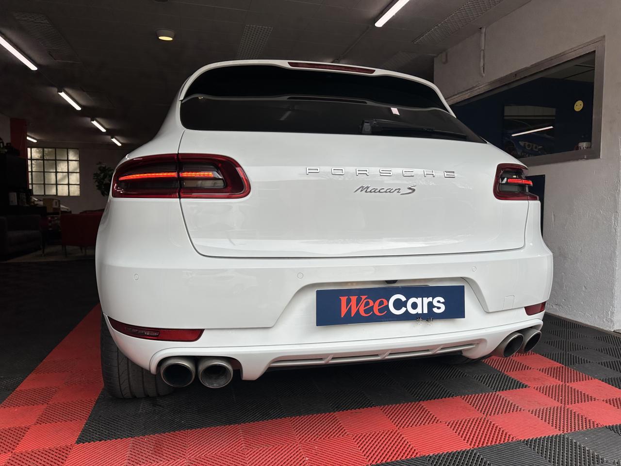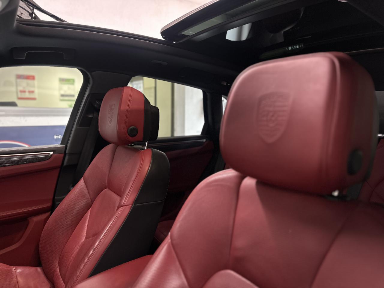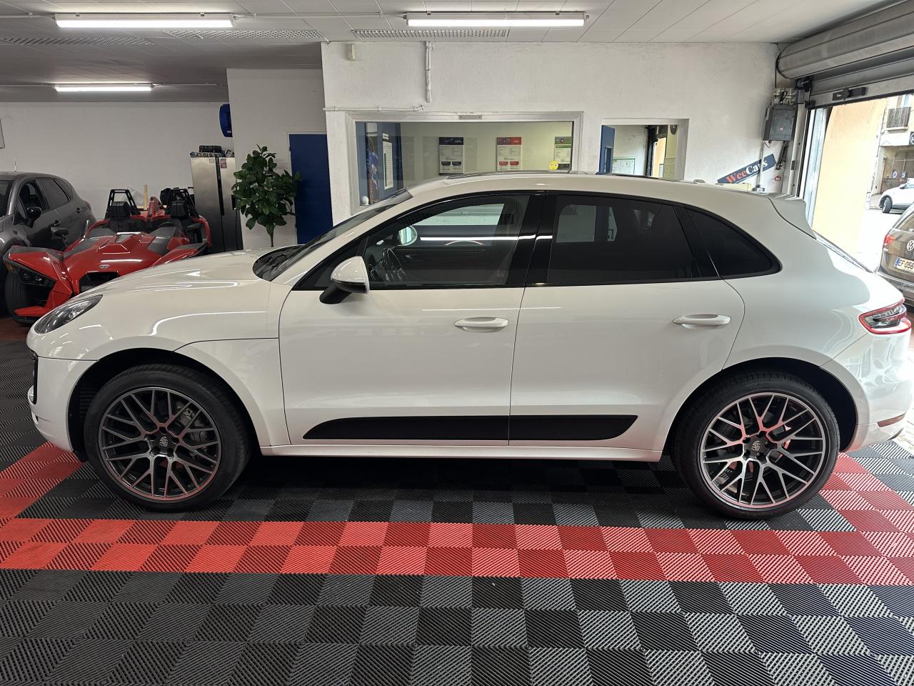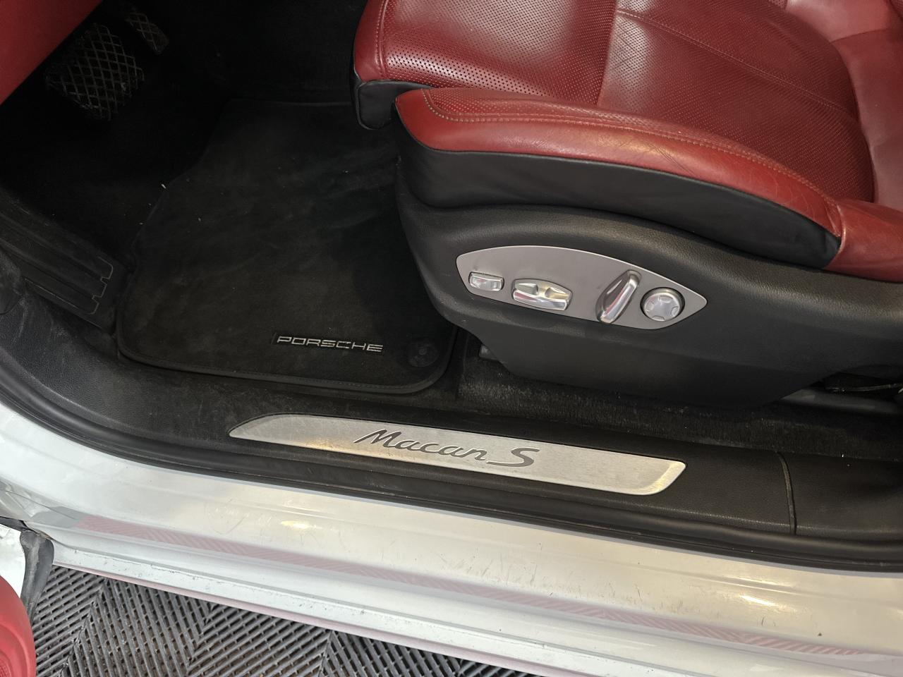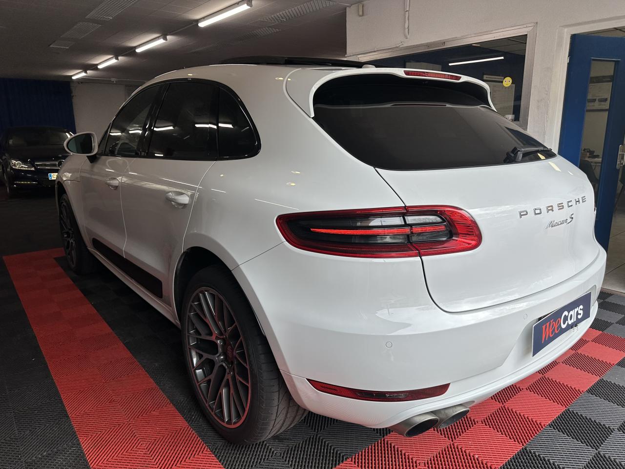 2 Porte-gobelets à l'avant, à diamètre variable3 instruments ronds intégrés dans le cockpit4 portes avec protection anti-encastrement latérale4 prises de courant 12 V : A l'avant et au milieu de la console centrale, au niveau de la console arrière, dans le coffre.4 soupapes par cylindre5 places, banquette arrière avec 2 sièges latéraux confortables et une place centraleAccélérateur électroniqueAccoudoir arrière central avec 2 porte-gobelets intégrésAccoudoir de la console centrale relevable et réglable longitudinalementAirbags grand volume pour le conducteur et le passagerAirbags latéraux avant intégrés aux siègesAirbags rideauxAllumage automatique des feux en cas d'ouverture/fermeture du véhiculeAntenne intégrées dédiées à la radio, la navigation, le téléphone et la TVAppuie-têtes réglables dans 4 directionsAvertissement de dépassement de vitesseAvertisseur de changement de voieAvertisseur sonore à 2 tonalités avec avertisseur sonore simple supplémentaire pour système d'alarmeBaguettes de parement de couleur ArgentBaguettes de seuils de porte en aluminium avec désignation du modèle : Macan SBanquette arrière fractionnable (40/20/40), accoudoir central rabattableBloc moteur en aluminiumBobines d'allumage séparées (distribution statique à haute tension)Boîte Porsche Doppelkupplung (PDK) à 7 rapports, avec modes manuel en utilisant les palettes au volant ou mode automatique, affichage du passage optimal à la vitesse supérieure pour la consommation d'essenceBouton tout-terrainCalage des arbres à cames (admission/échappement) en continuCapacité du réservoir : 65 litresCarrosserie galvanisée autoporteuseCeintures de sécurité avec prétensionneur (avant et arrière), limiteur d'effort de ceinture (avant), ceinture 3 points sur la place centrale arrièreCeintures de sécurité en NoirCiel de toit en tissuClimatisation automatique avec réglage séparé côtés conducteur et passager, contrôle automatique du recyclage de l'air, touche AC-MAX et capteur d'humiditéCompensation hydraulique du jeu des soupapesConcept d'éclairage de l'habitacle : Boite à gants, emplacement de la clef de contact, plafonniers avant et arrière, coffre.Contour des vitres chroméContrôle de pression des pneus ( TPMS )Controle en descente (Porsche Hill Control PHC)Couleurs extérieur de base : Blanc, NoirCouleurs intérieur de base : Noir, Gris Quartz, Beige LuxorCoupure d'alimentation automatique en décélérationCouvre-bagages rigide amovibleCulasse en aluminiumDeux sorties d'échappement doubles couleur Argent matDiagnostic embarqué (OBD II) avec contrôle des émissionsDiamètre des disques de frein 350 mm à l'avant, 330 mm à l'arrièreDirection assistéeDispositif de contrôle de l'usure des freins sur chaque plaquetteEcran TFT couleur haute définition 4,8 pouces, affichage des rapports de la PDK, des intervalles de révision, de la température extérieure et des différents témoins d'alarmeEssieu arrière multibrasEssieu avant multibrasEssuie-glace arrière avec réglage de l'intermittence et buse de lave-glaceEssuie-glace avant à 2 vitesses de balayage et intermittence variable, capteur de pluie, et buses de lave-glace chauffantesEtriers de frein couleur argentEtriers fixes monobloc en aluminium 6 pistons à l'avant, disques ventilésEtriers flottants mono-piston, disques ventilésFermeture centralisée des portes à télécommandeFeux antibrouillard, intégrés au bouclier avantFeux arrière à DEL avec feux stop adaptatifsFeux avant avec feux de position et clignotants à DELFiltres à particules et à pollen avec filtre à charbon actifFonction antireculFonction Start/StopFrein de parking électriqueFrein multi-collisionGestion thermiqueHayon arrière avec becquet intégréHayon automatiqueInjection directe d'essence (Direct Fuel Injection, DFI)Instruments ronds à fond couleur argentInterface audio universelJantes Macan S 18 poucesKit de réparation pneumatique avec compresseur électriqueLamelles des entrées d'air latérales peintes en noirLève-vitres électriques avant et arrière, avec fonctions confort, anti-pincement, et abaissement séquentielLubrification à carter sec avec admission d'huile bi-étagéeLunette arrière dégivranteMode CroisièreModule de gestion électronique du moteur EMS SDI 10Ordinateur de bordPack intérieur noir, finition brillantePack non-fumeurParechoc avant avec entrées d'air intégréesPatères intégrés sur les piliers B côté conducteur et passagerPhares principaux de type halogènesPoignées de porte peintes dans la couleur de la carrosseriePorsche Car Connect (PCC) avec Porsche Vehicule Tracking System Plus (PVTS Plus)Porsche Traction Management (PTM) : transmission intégrale dynamique avec différentiel central multidisque électronique, différentiel de freinage automatique (ABD), système de régulation antipatinage (ASR)Portes avec protection anti-encastrement latéralePré-équipement attelageRange-bouteille dans les contre-portes avant et arrièreRangements dans l'habitacleRécupération d'énergie pour l'électronique embarquéeRefroidissement par eauRéglage électronique du ralentiRégulateur de vitesseRégulation lambda stéréoRégulation sélective du cliquetisRenvois de ceinture des sièges avant et arrière latéraux réglables manuellement en hauteurRétroviseurs extérieurs chauffants, réglables et repliables électriquement (peut être fait à partir de la clef), de forme asphérique côté conducteurSidesblades peints en noir LaveSiège conducteur réglable éléctriquement dans 8 directions, siège avant passager réglage manuellement dans 6 directionsSièges confortSièges en simili cuir / alcantaraSignature "PORSCHE" avec monogramme arrière chroméSuralimentation biturboSuspension à ressorts en acierSystème "Rollover" (détection de tonneaux) : déclenche les airbags rideaux et les prétensionneurs de ceintureSystème antichocs avec traverses haute résistance et deux éléments 