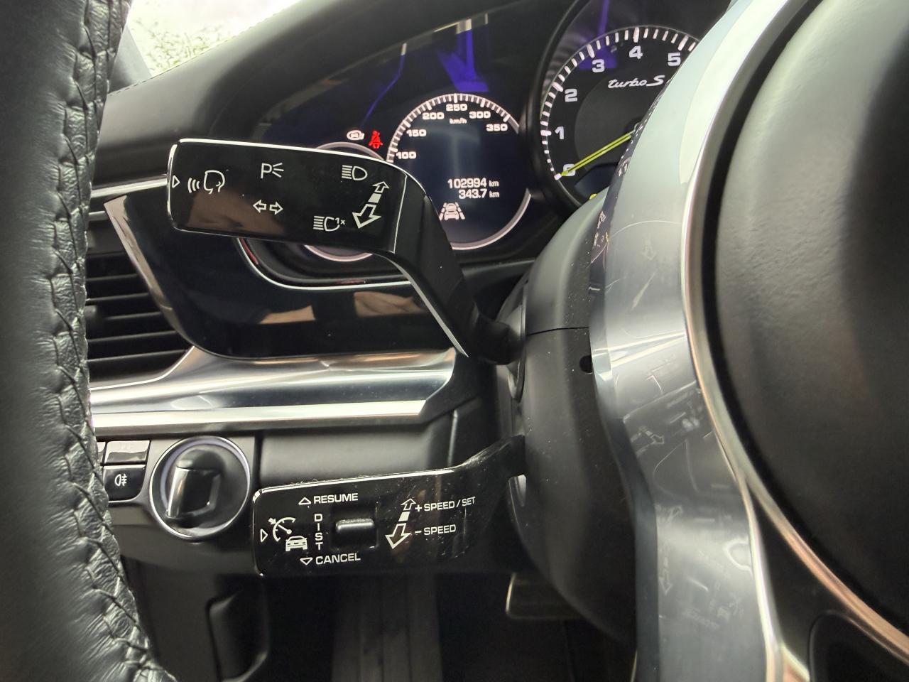 2 doubles sorties d’échappement «Turbo » Acier brossé, sur les côtés droit et gauche2 porte-gobelets à l'AR2 prises USB à l'arrière4 portes avec protection anti-encastrement latérale intégrée4 sièges individuels avec console centrale traversante et accoudoir à l’arrièreAccès ConfortAccoudoir central arrière rabattableAileron arrière en couleur carrosserieAileron télescopique adaptatif (4 positions)Airbag genoux côté conducteur et passagerAirbags grand volume pour le conducteur et le passagerAirbags latéraux avant (siège avant)Airbags rideauxAllumage automatique des feux avec fonction ‘Coming home'Arrêt de porte continuAssistance parking avant et arrière avec signal visuel et sonoreBac de rangement dans la console centraleBac de rangement dans la console centrale arrièreBaguettes de seuil de porte en aluminium brossé, avec monogramme du modèle à l'avantBlocs optiques du bouclier avant avec feux de position et clignotants à DELBoîte à gantsBoîte de vitesse Porsche Doppelkupplung (PDK)BOSE Surround Sound System avec 14 haut-parleurs et caisson de basses, puissance totale de 710 wattsCable de connection entre le véhicule et la borne. Longueur : 2.5mCâble secteur permettant d’établir la connexion entre la prise de courant domestique et l’unité de commandeCâble secteur permettant d’établir la connexion entre la prise industrielle rouge (400 V, 32 A, 5 broches) et l’unité de commandeCapot avant actifCapot moteur, hayon, portes, partie latérale, toit et ailes avant en AluminiumCapteur de pluieCarrosserie de conception hybride allégée, entièrement galvanisée (association acier spécial et aluminium)Chargeur 3,6kWChargeur universel Porsche (AC) avec sacoche de transport et socle mural (modèle de base)Ciel de toit en AlcantaraClimatisation automatique 2 zones avec réglage individuel de la température pour le conducteur et le passager, commande automatique du recyclage de l'air avec capteur de qualité d'airClimatisation autonomeCombiné d’instruments avec 2 écrans haute résolutionCommande vocaleCompartiment de rangement éclairé dans la console centrale avantCompte-tours analogique central avec fond de compteur Noir et inscription « Turbos S », powermètre et aiguille en Vert AcideConnect Plus avec module de navigation en ligne, Apple CarPlay, module téléphone LTE avec lecteur de carte SIM, support pour smartphone, accès à Internet sans fil, Porsche Car Connect et de nombreux services Porsche ConnectContrôle de pression des pneus ( TPMS )Couronne du volant en cuir lisseCouvre bagage soupleDémarrage sans cléDossier de banquette arrière rabattable 60/40Eclairage boîte à gantsEclairage coffreEclairage d'alentourEclairage d'orientation avant et arrièreEclairage des vide-poche des portes avantEclairage du plancher à l'avantEclairage intérieur commandé par les portesÉlectronique de puissance, batterie lithium-ion d’une capacité énergétique de 14 kWh et accessoires moteur électriques (compresseur de climatisation et servofrein électrique)Entourage des vitres latérales couleur Argent brillantEssieu arrière multibras en aluminiumEssieu avant à double triangulation en aluminiumEtriers de frein couleur Vert AcideFeux arrière à LED avec graphisme tridimensionnel, avec feux stop intégrés 4 points et bandeau lumineuxFeux de jours à DEL 4 pointsFiltres à particules et à pollen avec filtre à charbon actifFonction Stop-Start automatique et mode CroisièreFrein de parking électriqueHayon automatiqueInjection directe d’essence (Direct Fuel Injection, DFI) avec position centrale des injecteursInscription « e-hybrid » sur les portes avant gauche et droite couleur Argent (finition brillante) avec bordure Vert AcideInscription estampée « Turbo S » sur les appuie-tête avant et arrièreInterfaces audioIntérieur tout cuir dans les teintes de série, cuir lisseJantes 911 Turbo Design 21 poucesKit anti-crevaison avec compresseur électriqueMiroirs de courtoisie éclairés conducteur et passagerMonogramme avec bordure Vert AcidePack intérieur Bois Ronce de NoyerPack Sport ChronoPare-soleil en alcantaraPeinture métalliséePetit coffre de rangement dans la console centralePhares à DEL avec fonction Porsche Dynamic Light System (PDLS)Phares à LEDPlafonnier à l'avantPorsche Active Suspension Management (PASM)Porsche Ceramic Composite Brake (PCCB)Porsche Communication Management (PCM) avec module de navigationPorsche Side Impact Protection System (POSIP) comprenant : protection anti-encastrement latérale dans les portes,airbags thorax intégrés dans les bandes extérieures des sièges avant et airbags de tête intégrés dans les contre-portes pour le condPorsche Traction Management (PTM) : transmission intégrale permanente avec différentiel central multidisque à commande électronique et système d'antipatinage (ASR)Porte-gobelets dans l'accoudoir central avant (x2)Pré équipement Téléphone MobilePrise de charge du véhicule à l’arrière à gauche permettant de charger la batterie haute tensionPrise de courant 12 V dans la console centrale avantRangement sous accoudoir arrièreRefroidissement de l'air de suralimentationRefroidissement par eau avec module de gestion thermiqueRégulateur de châssis intégré Porsche 4D Chassis ControlRégulateur de vitesseRéservoir 80 litresRétroviseurs extérieurs électriques dégivrants et rabattables électriquement, asphérique côté conducteurRétroviseurs intérieur et extérieurs électrochromesServotronic PlusSièges chauffants à l'avant et à l'arrièreSièges confort avec Pack Mémoire confortSignature « PORSCHE » et monogramme sur le hayon arrière en Argent (finition brillante)Sorties d’air dans les ailes avant peintes dans la teinte de la carrosserieSpot de lecture avantSpots de lecture à l'arrière (gauche et droite)Suralimentation Twin-ScrollSuspension pneumatique adaptativeSystème d'alarme avec alarme volumétriqueSystème d'antidémarrageSystèm