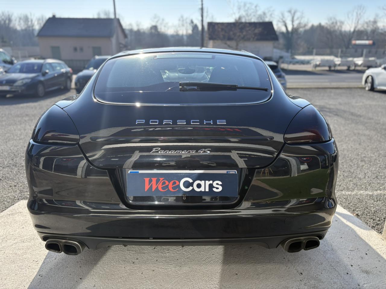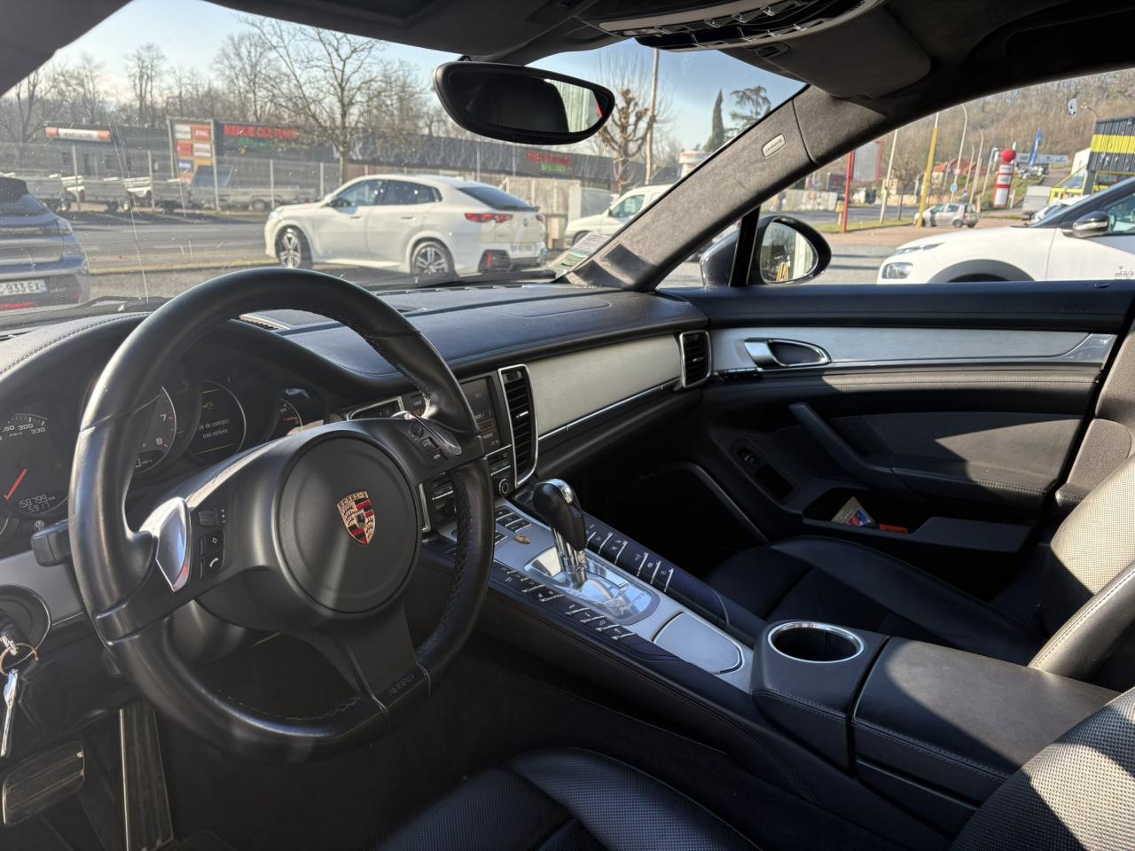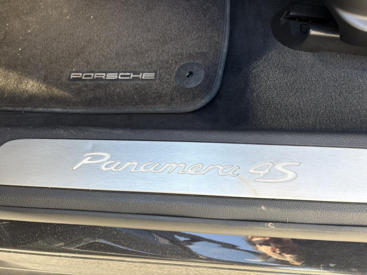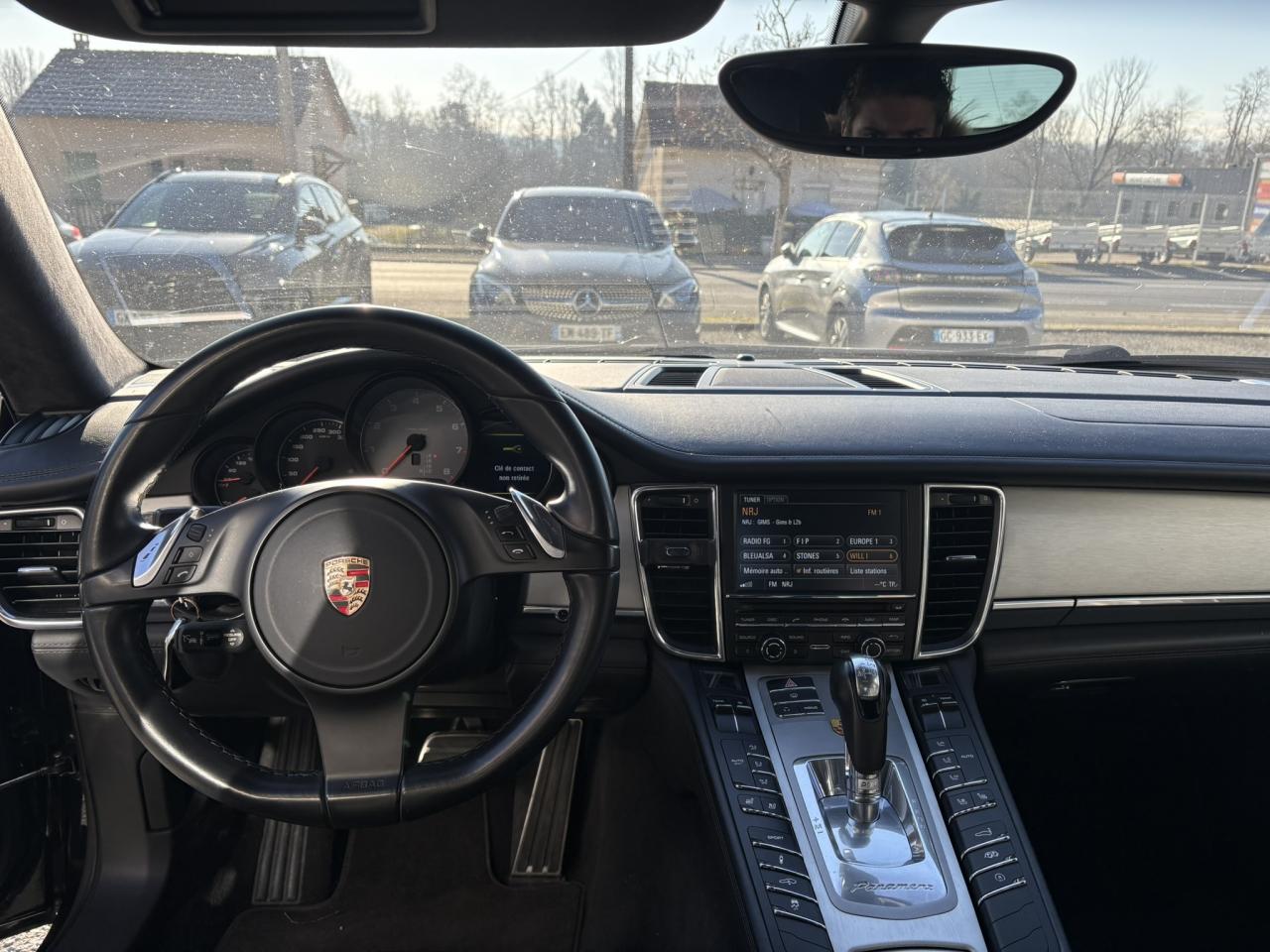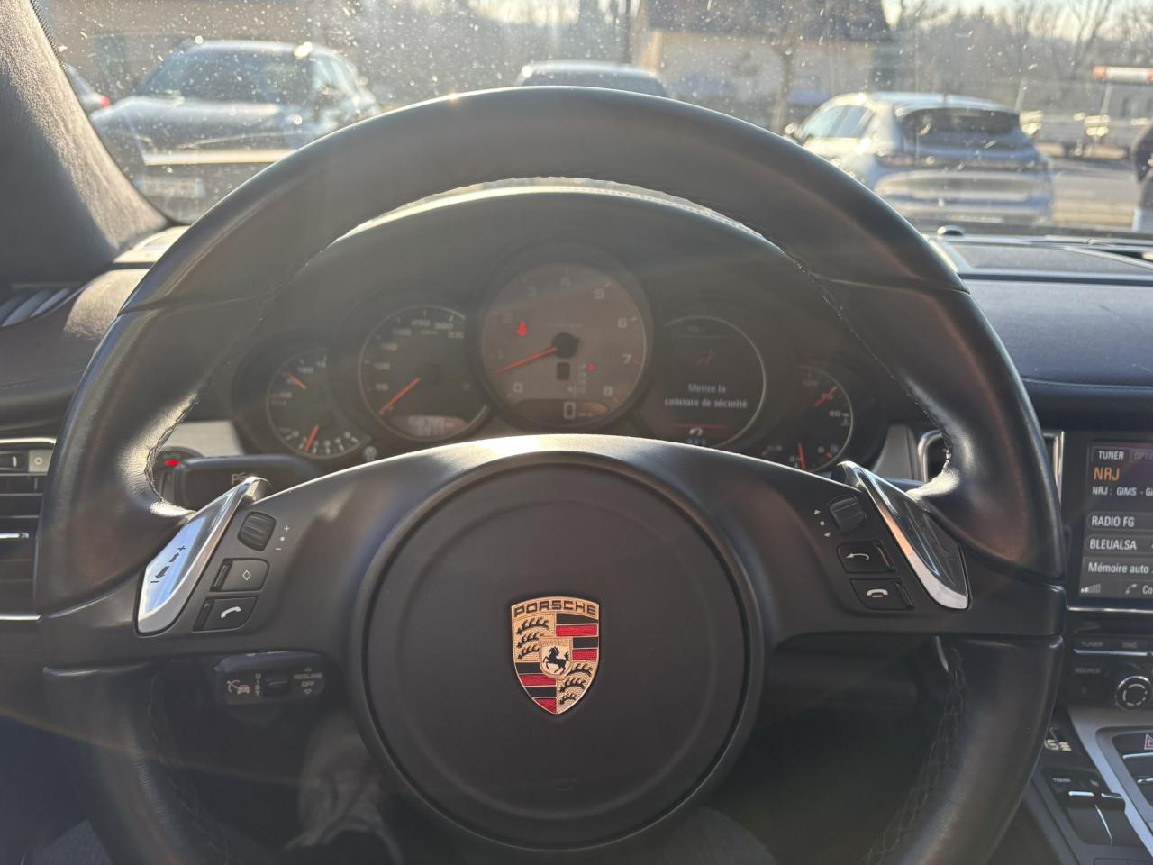 1 porte-gobelets intégré dans l'accoudoir central à l'avant2 porte-gobelets intégrés de diamètre variable à l'arrière2 sorties d'échappement doubles, extérieures (droite et gauche), en acier spécial brossé3ème feu stop arrière4 portes avec protection anti-encastrement latérale4 prises (12 volts) réparties entre les consoles centrales avant et arrière, dans la boîte à gants ainsi que dans le coffre4 sièges, console centrale arrière traversante avec accoudoir rabattable5 instruments ronds à entourage de couleur Argent, fonds de compteurs noirs, compte-tour à fond Gris ArgentAccélérateur électroniqueAccoudoir sur console centrale à l'avant avec rangement intégréAileron télescopique adaptatif (2 positions)Airbag genoux côté conducteur et passagerAirbag rideaux couvrant intégralement le cadre de pavillon ainsi que les vitres latérales (côtés gauche et droit)Airbags grand volume pour le conducteur et le passagerAirbags latéraux à double chambre à l'avant, intégrés dans les sièges, à réglage différencié pour les zones du bassin et du thoraxAntennes intégrées permettant la réception de la radio, de la navigation, du téléphone et de la TV (selon les équipements, fonction RDS Diversity uniquement pour le PCM)Appuie-tête intégrés à l'avant et à l'arrièreArrière : jantes « Panamera S » 9 J x 18 pouces en alliage léger avec pneumatiques 275/45 ZR 18Assistance au freinageAssistance de fermeture électrique pour le hayon arrièreAssistance parking à l'arrière, avec signal sonoreAumônières au dos des sièges avantAvant : jantes « Panamera S » 8 J x 18 pouces en alliage léger avec pneumatiques 245/50 ZR 18Avertisseur sonore à 2 tonalités avec avertisseur sonore simple supplémentaire pour système d'alarmeBaguette décorative sur le hayon arrière chroméeBaguettes de seuil de porte en aluminium brossé, avec monogramme du modèle à l'avantBaguettes décoratives, couleur ArgentBlocs optiques arrière à diodes intégrant les feux antibrouillard et feux stop adaptatifsBlocs optiques dans le bouclier avant avec feux de position à diodes et clignotantsBoîte à gants (verrouillable, climatisée), casier de rangement sous l'accoudoir de la console centrale AV, rangements rabattables dans les portes AV/AR, l'accoudoir et la console centrale arrièreBoîte de vitesse Porsche Doppelkupplung (PDK) à 7 rapports, avec modes manuel et automatique, affichage du passage optimal à la vitesse supérieure en mode manuelBouclier avant avec entrées d'airBoucliers avant et arrière peints dans la couleur de la carrosserieCalculateur moteur EMS SDI 6.1Capacité de batterie : 95 AhCapacité du compartiment à bagages : 445 l ; avec sièges arrière rabattus : capacité de 1 263 l max.Capot avant actifCapot moteur, portes et ailes en aluminiumCapteur de retournementCarénage de soubassement intégralCarrosserie de conception hybride allégée, entièrement galvanisée (association acier spécial et aluminium)Carter en aluminiumCeintures de sécurité automatiques à 3 points avec prétensionneur de ceinture (à l'avant et à l'arrière), et limiteur d'effort de ceinture (à l'avant)Châssis avec suspension à ressort hélicoïdauxClimatisation automatique avec réglage de la température séparé côtés conducteur et passager, commande automatique du recyclage de l'air avec capteur de qualité d'air et fonction chaleur résiduelleCombiné d'instruments avec écran TFT couleur haute définition de 4,8 pouces, affichage des intervalles de révision,affichage de la température extérieure et divers témoins d'alarme, éclairage blancCompensation hydraulique du jeu des soupapesConcept d'éclairage de l'habitacle : temporisation automatique, éclairage des poignées de porte, du compartiment de rangement de la console centrale, des vide-poche des portes avant, du démarreurConsole de pavillon avec éclairage d'ambiance et spot de lecture à diodesContrôle de pression des pneus ( TPMS )Couvre-bagages soupleCouvre-culasse en magnésiumCulasse en aluminiumDégivrage de lunette arrière avec fonction d'arrêt automatiqueDeux places arrière avec accoudoir central rabattable et dossiers rabattables de manière fractionnée (40% / 20% /40%) permettant un plancher de coffre platDifférentiel de freinage automatique (ABD),Diffuseur arrière strié, noir, grainéDirection assistée à démiltiplication variableDispositif de l'usure des garnitures de freinage sur chaque freinDisque de frein de 360 mm à l'avant, 330 mm à l'arrièreDistribution statique à haute tension avec bobines d'allumage séparéesEclairage d'accompagnement programmableEclairage des cendriers, éclairage de la boîte à gants, témoins de sécurité rouge/blanc sur les portes avant et arrière ainsi que dans le hayon arrièreEncadrement des vitres latérales chroméEntrées d'air latérales à lamelles doubles dans le bouclier AV, noir, grainéesEssieu à double triangulation aluminium à l'avantEssieu multibras aluminium à l'arrièreEssuie-glace avant à 2 vitesses avec commande de balayage intermittent, capteur de pluie, 3 buses de lave-glace chauffantesEtriers couleur ArgentÉtriers fixes monobloc en aluminium à 4 pistons à l‘arrière, disques de frein ventilés et rainurésEtriers fixes monobloc en aluminium à 6 pistons à l'avant, disques de frein ventilés et rainurésFeux de jour horizontaux à diodes situés dans les blocs optiques du bouclier avantFeux de reculFilets de rangement dans les parois latérales du coffre et aux pieds du passager avantFiltres à particules et à pollen avec filtre à charbon actifFonction Start/StopFrein de parking électriqueHabillage en velours du compartiment à bagagesHayon arrière en aluminiumInjection directe d'essence (DFI)Kit de réparation pneumatique avec compresseur électriqueLève-vitres électriques avant et arrière, avec fonction fermeture confort, sécurité anti-pincement et fonction à impulsions haut/basLubrification à carter 