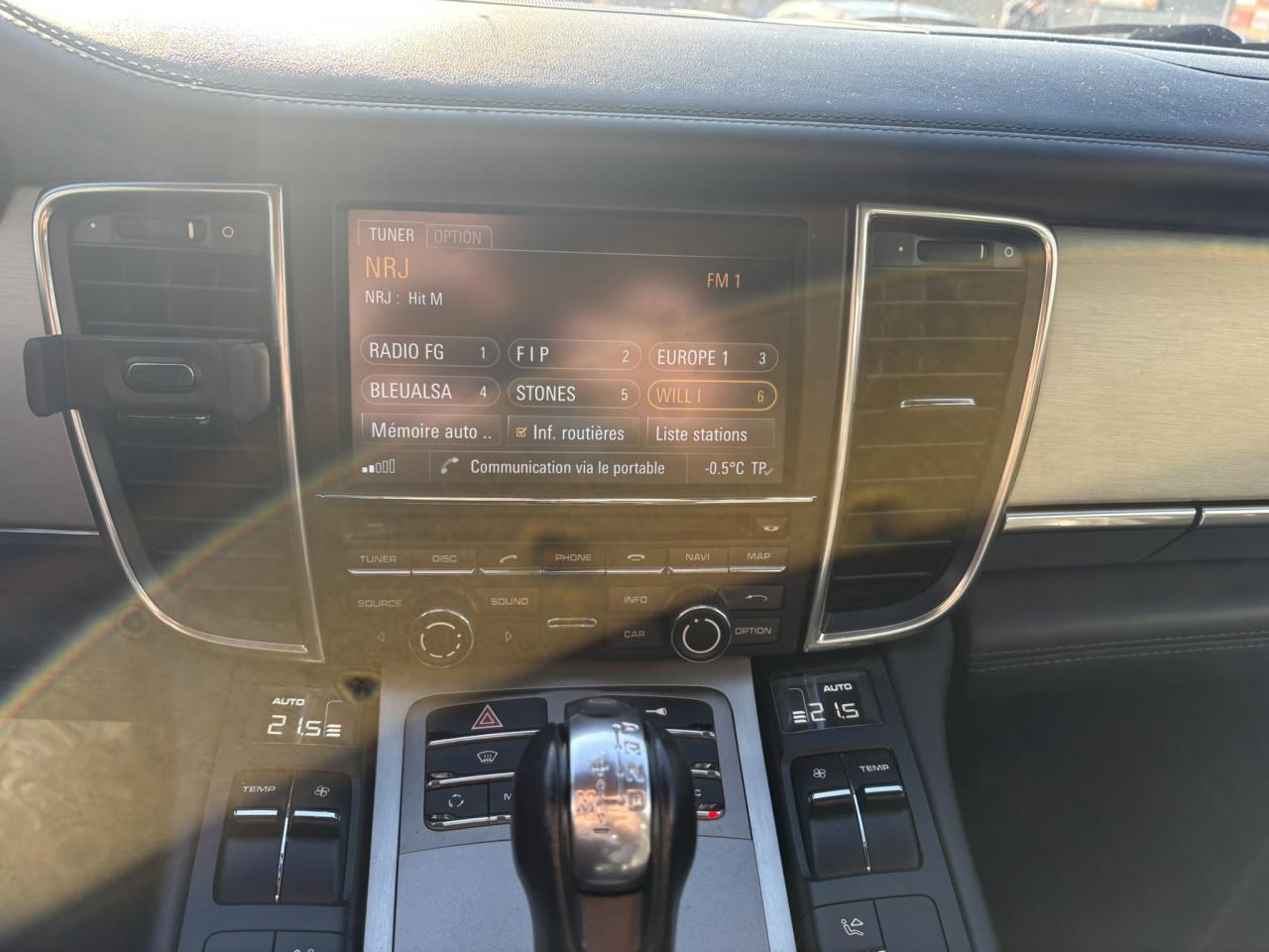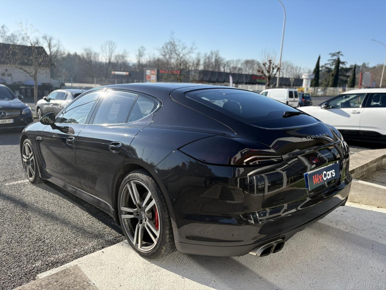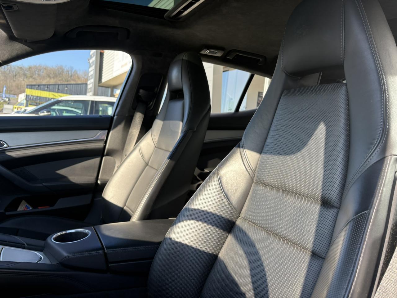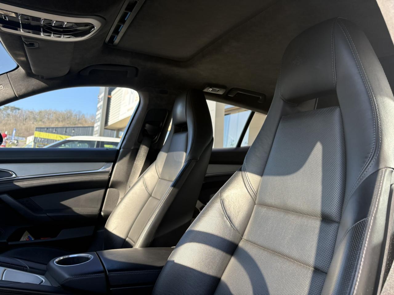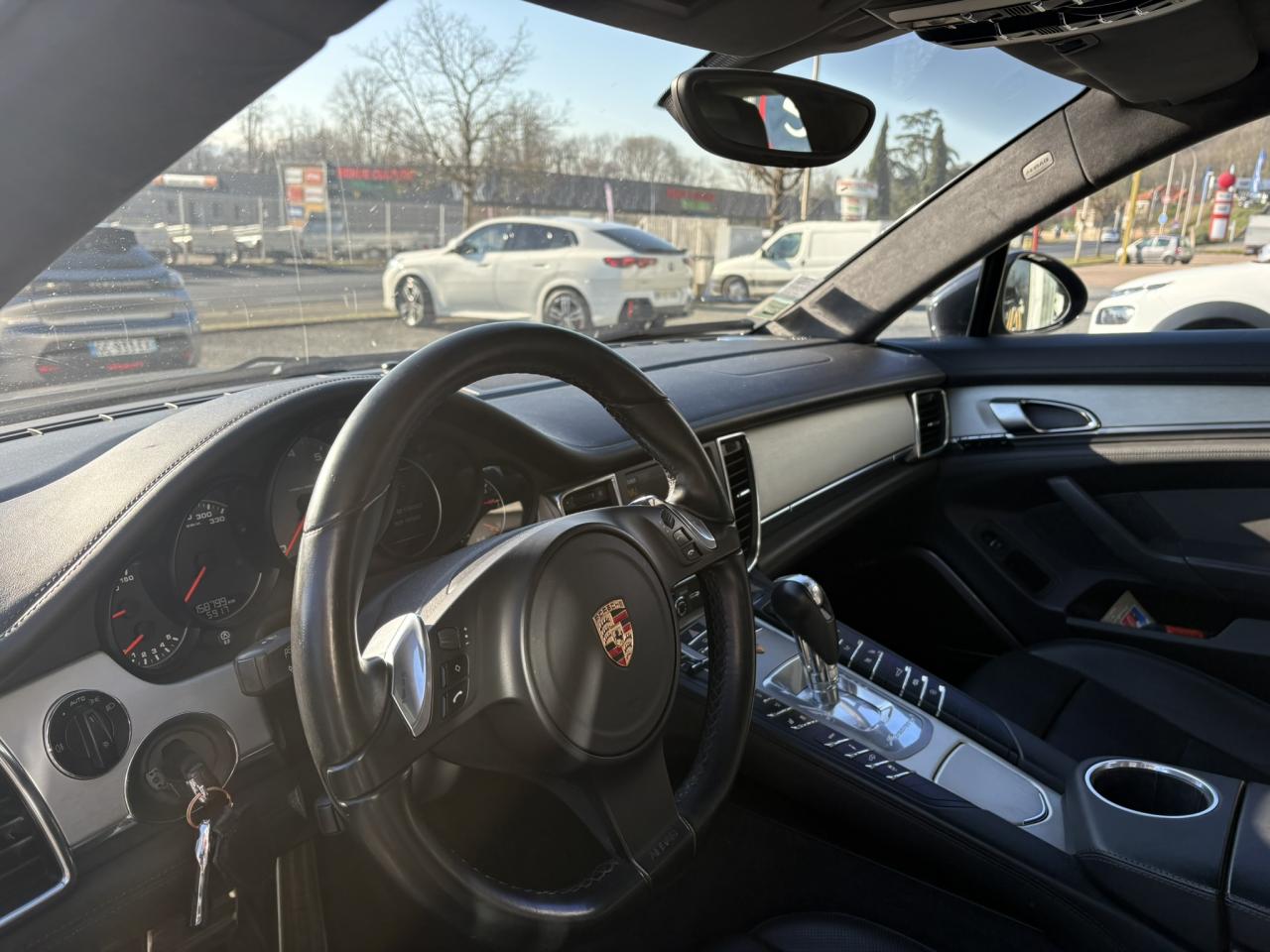 1 porte-gobelets intégré dans l'accoudoir central à l'avant2 porte-gobelets intégrés de diamètre variable à l'arrière2 sorties d'échappement doubles, extérieures (droite et gauche), en acier spécial brossé3ème feu stop arrière4 portes avec protection anti-encastrement latérale4 prises (12 volts) réparties entre les consoles centrales avant et arrière, dans la boîte à gants ainsi que dans le coffre4 sièges, console centrale arrière traversante avec accoudoir rabattable5 instruments ronds à entourage de couleur Argent, fonds de compteurs noirs, compte-tour à fond Gris ArgentAccélérateur électroniqueAccoudoir sur console centrale à l'avant avec rangement intégréAileron télescopique adaptatif (2 positions)Airbag genoux côté conducteur et passagerAirbag rideaux couvrant intégralement le cadre de pavillon ainsi que les vitres latérales (côtés gauche et droit)Airbags grand volume pour le conducteur et le passagerAirbags latéraux à double chambre à l'avant, intégrés dans les sièges, à réglage différencié pour les zones du bassin et du thoraxAntennes intégrées permettant la réception de la radio, de la navigation, du téléphone et de la TV (selon les équipements, fonction RDS Diversity uniquement pour le PCM)Appuie-tête intégrés à l'avant et à l'arrièreArrière : jantes « Panamera S » 9 J x 18 pouces en alliage léger avec pneumatiques 275/45 ZR 18Assistance au freinageAssistance de fermeture électrique pour le hayon arrièreAssistance parking à l'arrière, avec signal sonoreAumônières au dos des sièges avantAvant : jantes « Panamera S » 8 J x 18 pouces en alliage léger avec pneumatiques 245/50 ZR 18Avertisseur sonore à 2 tonalités avec avertisseur sonore simple supplémentaire pour système d'alarmeBaguette décorative sur le hayon arrière chroméeBaguettes de seuil de porte en aluminium brossé, avec monogramme du modèle à l'avantBaguettes décoratives, couleur ArgentBlocs optiques arrière à diodes intégrant les feux antibrouillard et feux stop adaptatifsBlocs optiques dans le bouclier avant avec feux de position à diodes et clignotantsBoîte à gants (verrouillable, climatisée), casier de rangement sous l'accoudoir de la console centrale AV, rangements rabattables dans les portes AV/AR, l'accoudoir et la console centrale arrièreBoîte de vitesse Porsche Doppelkupplung (PDK) à 7 rapports, avec modes manuel et automatique, affichage du passage optimal à la vitesse supérieure en mode manuelBouclier avant avec entrées d'airBoucliers avant et arrière peints dans la couleur de la carrosserieCalculateur moteur EMS SDI 6.1Capacité de batterie : 95 AhCapacité du compartiment à bagages : 445 l ; avec sièges arrière rabattus : capacité de 1 263 l max.Capot avant actifCapot moteur, portes et ailes en aluminiumCapteur de retournementCarénage de soubassement intégralCarrosserie de conception hybride allégée, entièrement galvanisée (association acier spécial et aluminium)Carter en aluminiumCeintures de sécurité automatiques à 3 points avec prétensionneur de ceinture (à l'avant et à l'arrière), et limiteur d'effort de ceinture (à l'avant)Châssis avec suspension à ressort hélicoïdauxClimatisation automatique avec réglage de la température séparé côtés conducteur et passager, commande automatique du recyclage de l'air avec capteur de qualité d'air et fonction chaleur résiduelleCombiné d'instruments avec écran TFT couleur haute définition de 4,8 pouces, affichage des intervalles de révision,affichage de la température extérieure et divers témoins d'alarme, éclairage blancCompensation hydraulique du jeu des soupapesConcept d'éclairage de l'habitacle : temporisation automatique, éclairage des poignées de porte, du compartiment de rangement de la console centrale, des vide-poche des portes avant, du démarreurConsole de pavillon avec éclairage d'ambiance et spot de lecture à diodesContrôle de pression des pneus ( TPMS )Couvre-bagages soupleCouvre-culasse en magnésiumCulasse en aluminiumDégivrage de lunette arrière avec fonction d'arrêt automatiqueDeux places arrière avec accoudoir central rabattable et dossiers rabattables de manière fractionnée (40% / 20% /40%) permettant un plancher de coffre platDifférentiel de freinage automatique (ABD),Diffuseur arrière strié, noir, grainéDirection assistée à démiltiplication variableDispositif de l'usure des garnitures de freinage sur chaque freinDisque de frein de 360 mm à l'avant, 330 mm à l'arrièreDistribution statique à haute tension avec bobines d'allumage séparéesEclairage d'accompagnement programmableEclairage des cendriers, éclairage de la boîte à gants, témoins de sécurité rouge/blanc sur les portes avant et arrière ainsi que dans le hayon arrièreEncadrement des vitres latérales chroméEntrées d'air latérales à lamelles doubles dans le bouclier AV, noir, grainéesEssieu à double triangulation aluminium à l'avantEssieu multibras aluminium à l'arrièreEssuie-glace avant à 2 vitesses avec commande de balayage intermittent, capteur de pluie, 3 buses de lave-glace chauffantesEtriers couleur ArgentÉtriers fixes monobloc en aluminium à 4 pistons à l‘arrière, disques de frein ventilés et rainurésEtriers fixes monobloc en aluminium à 6 pistons à l'avant, disques de frein ventilés et rainurésFeux de jour horizontaux à diodes situés dans les blocs optiques du bouclier avantFeux de reculFilets de rangement dans les parois latérales du coffre et aux pieds du passager avantFiltres à particules et à pollen avec filtre à charbon actifFonction Start/StopFrein de parking électriqueHabillage en velours du compartiment à bagagesHayon arrière en aluminiumInjection directe d'essence (DFI)Kit de réparation pneumatique avec compresseur électriqueLève-vitres électriques avant et arrière, avec fonction fermeture confort, sécurité anti-pincement et fonction à impulsions haut/basLubrification à carter 