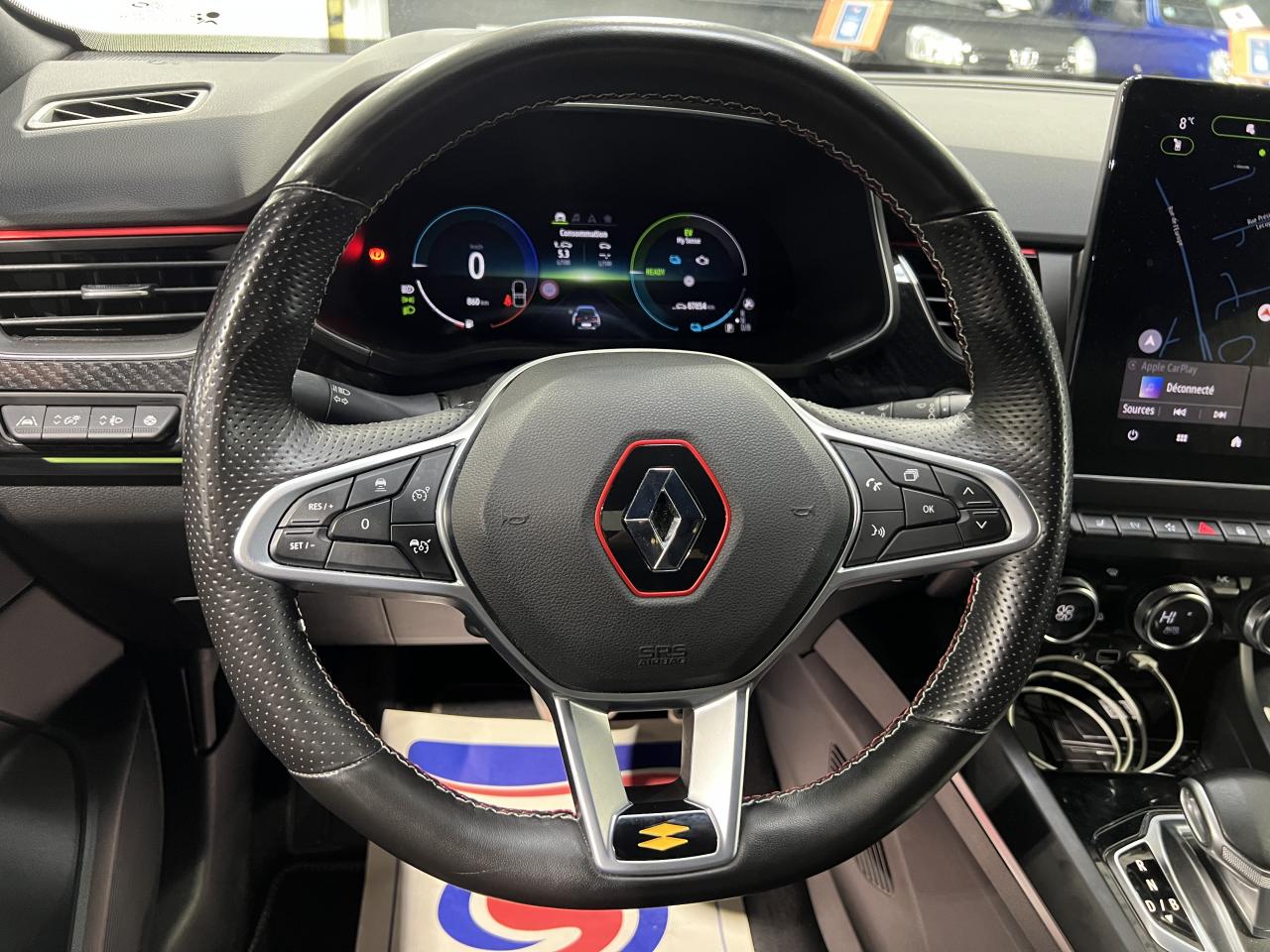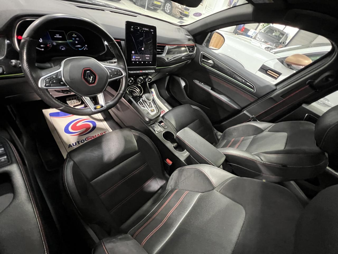 2 prises USB à l'arrièreABS avec aide au freinage d'urgenceAccoudoir central avant avec rangement ferméAérateurs arrièreAide au démarrage en côteAirbags frontaux conducteur et passager (déconnectable côté passager)Airbags latéraux avant / arrièreAlerte de franchissement de ligneAlerte de survitesse avec reconnaissance des panneaux de signalisation combinée à la vitesse limite de la navigationAlerte distance de sécuritéAnimation R.S. line rouge sur le volant et la planche de bord, surpiqûres rouges sur les panneaux de porte, les sièges et l’accoudoir centralAntenne de toit « aileron de requin »Appel d’urgence automatique en cas d’accidentAvertisseur de sortie de stationnementBadge spécifique R.S. line sur l’enjoliveur d’aileBandeau décor spécifique aspect carbone sur les panneaux de porte et planche de bordBanquette rabattable 2/3 - 1/3 en rang 2 avec fixations IsofixBluetoothBouclier avant spécifique avec lame aérodynamiqueCaméra de reculCarte Renault, accès et démarrage « mains-libres »Ceinture de caisse noir brillantChargeur de smartphone par inductionCiel de toit noirClimatisation automatiqueConsole centrale avec espace de rangementContrôle de trajectoire ESPDétecteur d'angle mortDétecteur de pluie et allumage automatique des projecteursDétection d’obstacle latéraleEasy Link, système multimédia connecté avec écran tactile 9,3” vertical, compatible Android Auto et Apple CarPlayEasy Park AssistEclairage intelligent (commutation automatique feux de croisement/feux de route)Feux de jour LED C-ShapeFilet de rangement côté passagerFrein de parking électrique avec fonction Auto-HoldFreinage actif d'urgence avec détection des piétons et cyclistesJantes alliage 18” R.S. line Silverstone, métalliques foncées et diamantées noires avec accent rougeLève-vitres avant et arrière électriquesLevier de vitesse de type e-shifter avec gravage E-TECH sur l’embaseLimiteur de vitessePédalier en aluminiumPeinture Bleu ZanzibarPlancher de coffre mobilePoignées de portes extérieures ton caisseProjecteurs avant Full Led Pure VisionPurificateur d'airRégulateur de vitesse adaptatifRenault Multi-SenseRétroviseur intérieur électrochromeRétroviseurs extérieurs à réglages électriques, dégivrants et rabattables automatiquementRétroviseurs extérieurs noirs brillantsService Auto-Update - 3 ans inclusServices de navigation connectée : recherche d’adresses Google, infos trafic TomTom Live, météo, prix des carburants et zones de vigilanceSièges avant à réglage manuelSièges avant chauffantsSièges spécifiques R.S. line cuir - suédineSkis avant et arrière métallique foncé avec double sortie d’échappementSystème d'aide au parking avant et arrièreSystème de surveillance de pression des pneusTableau de bord avec écran numérique et personnalisable 10,2”Traitement sonore Arkamys Classic avec 6 haut-parleursVéhicule connecté 4G avec pack de données inclus pendant 3 ansVitres latérales et lunette arrière surteintéesVolant chauffantVolant sport en cuir perforé avec surpiqûres et logo Renault Sport