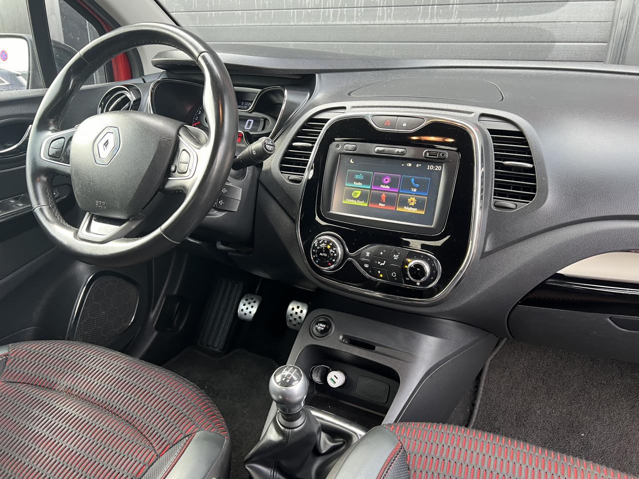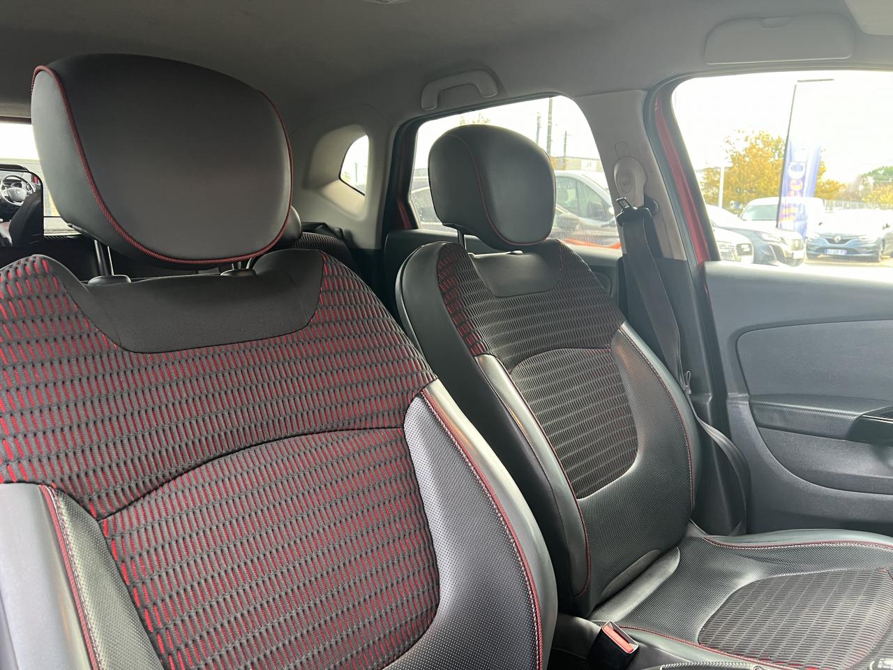 3 appuie-tête arrière réglables en hauteurABS avec aide au freinage d'urgenceAide au démarrage en côteAirbags frontaux et latéraux conducteur et passager déconnectablesAlerte de ceinture de sécurité conducteur et passagerBanquette arrière coulissante, rabattable 1/3 - 2/3 avec 3 appuis-têtesBoucliers ton caisseCapteur de température extérieureCarte Renault avec accès et démarrage mains-libres avec fermeture à l’éloignementCondamnation automatique des ouvrants en roulantDécors intérieurs Chrome (cerclages aérateurs, console centrale et haut-parleurs)Direction assistée électrique avec assistance variableÉlastiques de rangement au dos des sièges avantEmbase de levier de vitesses chroméFeux de jour à LEDJonc de hayon et de feux ChromeJoncs de calandre et de protections inférieures de portes ChromeKit gonflage de réparationLève-vitre électrique conducteur impulsionnelLève-vitres électriques avant et arrièreMédiaNav EvolutionMode de conduite Eco avec bouton d'activationOrdinateur de bordPack CityPack ConfortPack look NoirPack PremiumPeinture bi-ton (toit, coques de rétroviseurs, montants de pare-brise)Phares avant antibrouillard avec fonction ''Corner-light''Plancher de coffre réversiblePoignées de portes ton caisseRangement central amovibleRégulateur et limiteur de vitesseRétroviseur extérieurs électriques et dégivrantsSellerie fixe TEP/Textile Noir&GrisSiège conducteur réglable en hauteurSystème de contrôle de trajectoire (ESP) et système antipatinage (ASR)Système de fixation ISOFIX aux places latérales arrière et passager avantSystème de récupération d'énergie au freinageSystème de surveillance de pression des pneusTiroir Easy Life IvoireTiroir EasyLife avec éclairageVolant cuir pleine fleurVolant réglable en hauteur et en profondeur