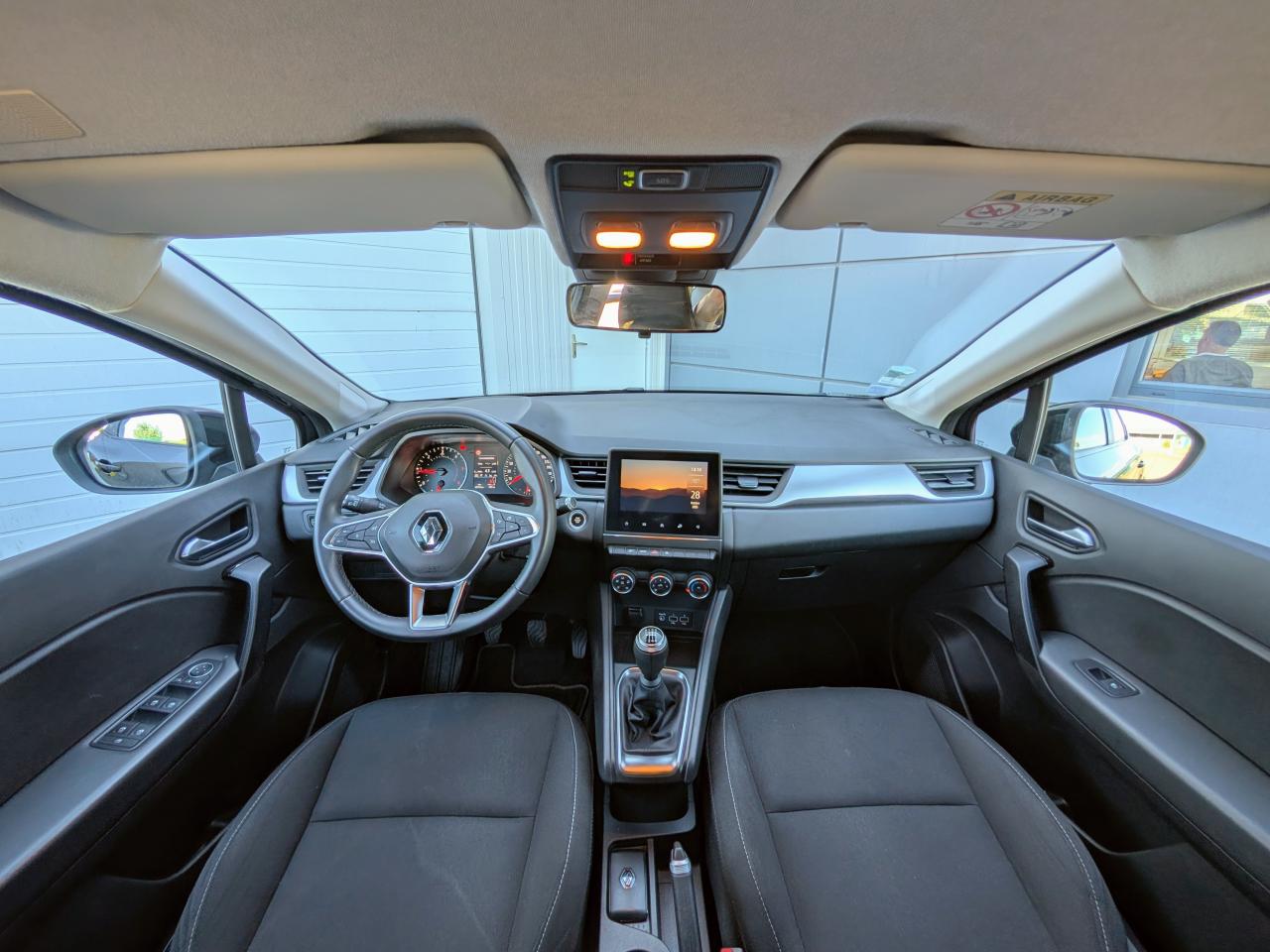ABS avec aide au freinage d'urgenceAccoudoir / console centrale avec rangementAccoudoirs de porte gainés en matériau moussé noir pailletéAide au démarrage en côteAide au parking avantAide au stationnement arrièreAirbags frontaux et latéraux (tête thorax),conducteur et passagerAlerte de sortie de voie avec volant haptiqueAlerte de survitesse avec reconnaissance des panneaux de signalisationAlerte distance de sécuritéAlerte oubli des ceintures de sécurité aux 5 places avec détection des occupantsAllumage automatique des projecteursAppel d'Urgence Renault: appel automatique en cas d'accident ou bouton SOS pour appel (112) en cas d'urgenceApplication finition chrome sur le volantAssistance au maintien de voieBandeau supérieur de décor grisBanquette arrière coulissante, rabattable 1/3-2/3 avec 3 appuis-têtes réglables en hauteurBouton de démarrage Start/Stop avec contour chroméCaméra de reculCarte Renault mains-libresCeinture centrale arrière 3 points, avec prétensionneur et limiteur d’effortCeintures de sécurité conducteur et passager avant réglables en hauteurClimatisation manuelleCoiffe supérieure de planche de bord mousséeCondamnation électrique centralisée des portes avec télécommande et condamnation des portes en roulantCoques de rétroviseurs noiresDéflecteurs d'airDésactivation manuelle de l'airbag passagerEASY LINK 7” et navigationEclairage avant et arrière Full LED Pure VisionEnjoliveurs 17'' NympheaEntourage aérateurs en chromeEntourage levier de vitesses chromésESC (contrôle électronique de la trajectoire)Feux de stop à LEDFreinage actif d’urgence, avec détection des voitures, motos, piétons, cyclistes (jour et nuit)Indicateur de changement de vitessesInsert chromé sur les protections inférieures de portesJonc de calandre noir brillant avec inserts chromésKit gonflage de réparationLève-vitre électriques à impulsionMode EcoPlanche de bord gainée en materiau moussé noir pailletéPlancher de coffre modulable 2 positionsPoignées de portes couleur carrosseriePoignées de portes intérieures finition chrome satinéPrétensionneurs des ceintures et limiteur d efforts AV et AR latéralRégulateur et limiteur de vitesseRétroviseurs extérieurs réglables, rabattables électriquement et dégivrantsRadars de parking avantReconnaissance des panneaux de signalisationSellerie tissu Gris et Noir avec rayuresSiège conducteur réglable en hauteurSkis avant et arrière GrisSystème de détection de la pression des pneusSystème de fixation ISOFIX aux places latérales arrière et passager avantTableau de bord numérique 4.2” et compteurs analogiquesVolant réglable en hauteur et en profondeurVolant TEP