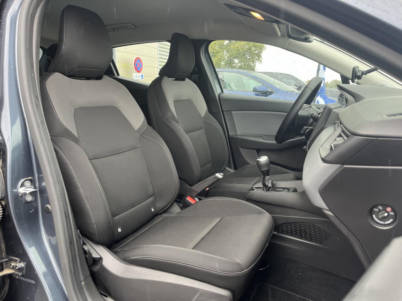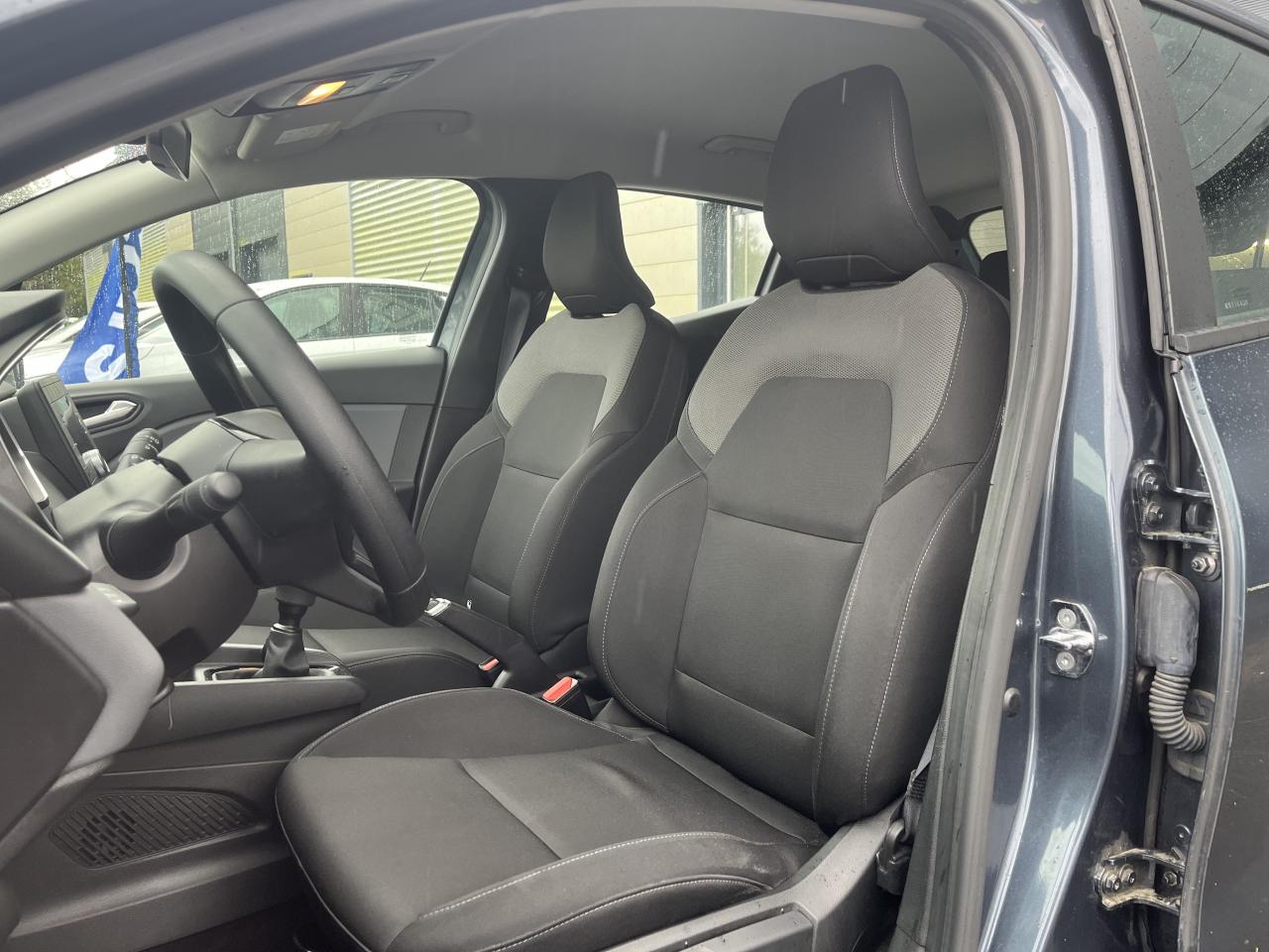 ABS avec aide au freinage d'urgenceAide au démarrage en côteAirbags frontaux et latéraux conducteur et passager avantAlerte de perte de pression des pneusAlerte de sortie de voie avec volant haptiqueAlerte de survitesse avec reconnaissance des panneaux de signalisationAlerte distance de sécuritéAlerte oubli des ceintures de sécurité aux 5 places avec détection des occupantsAllumage automatique des projecteursAmbiance noire et gris mediumAppel d'Urgence Renault: appel automatique en cas d'accident ou bouton SOS pour appel (112) en cas d'urgenceAppuis-têtes avant fin et 3 appuis-têtes arrière réglables en hauteurAssistance au maintien de voieAvertissement de sortie de voieBanquette arrière rabattable 40/60Boîte à gants ferméeCeinture centrale arrière 3 points, avec prétensionneurCeintures de sécurité AV et latérales AR à prétensionneurs et limiteurs d'effortCeintures de sécurité avant réglables en hauteurCiel de Pavillon grisClé rétractable - fermeture centralisée à distance (clé de remplacement non rétractable)Coiffe de planche de bord en noirContrôle électronique de stabilité (ESC)Désactivation manuelle de l'airbag passagerDirection assistée électrique variableEclairage avant et arrière Full LED Pure VisionEclairage intérieur : plafonnier avant halogèneEcran conducteur couleur 4,2” avec 2 compteurs analogiques (vitesse et compte-tours)Feux avant éclairage diurne LedFeux de stop à LEDFrein de parking manuelFreinage actif d’urgence, avec détection des voitures, motos, piétons, cyclistes (jour et nuit)Indicateur de changement de vitessesInserts en noir laqué sur le volant et l’embase de levier de vitesseKit de gonflageLève-vitres électriques et à l’avant impulsionnelsLogo Renault chromé, avec bandeau supérieur de calandre Noir BrillantLunette arrière chauffantePare-soleil avec miroir de courtoisiePeinture Blanc GlacierPoignées de porte avant couleur carrosseriePréparation pour radio avec haut-parleurs à l'avantProtections inférieures de porte avec signature CLIORégulateur et limiteur de vitesseRétroviseur intérieur jour et nuitRétroviseurs extérieurs à réglages électriquesRoues 15” avec enjoliveurs IREMIASellerie tissu Life noir et grisSiège conducteur réglable en hauteurSièges avant standardSystème Isofix aux places latérales arrière et passager avantVéhicule connecté 4G avec pack de données inclus pendant 3 ansVitres teintéesVolant multifonctions réglable en hauteur et en profondeur