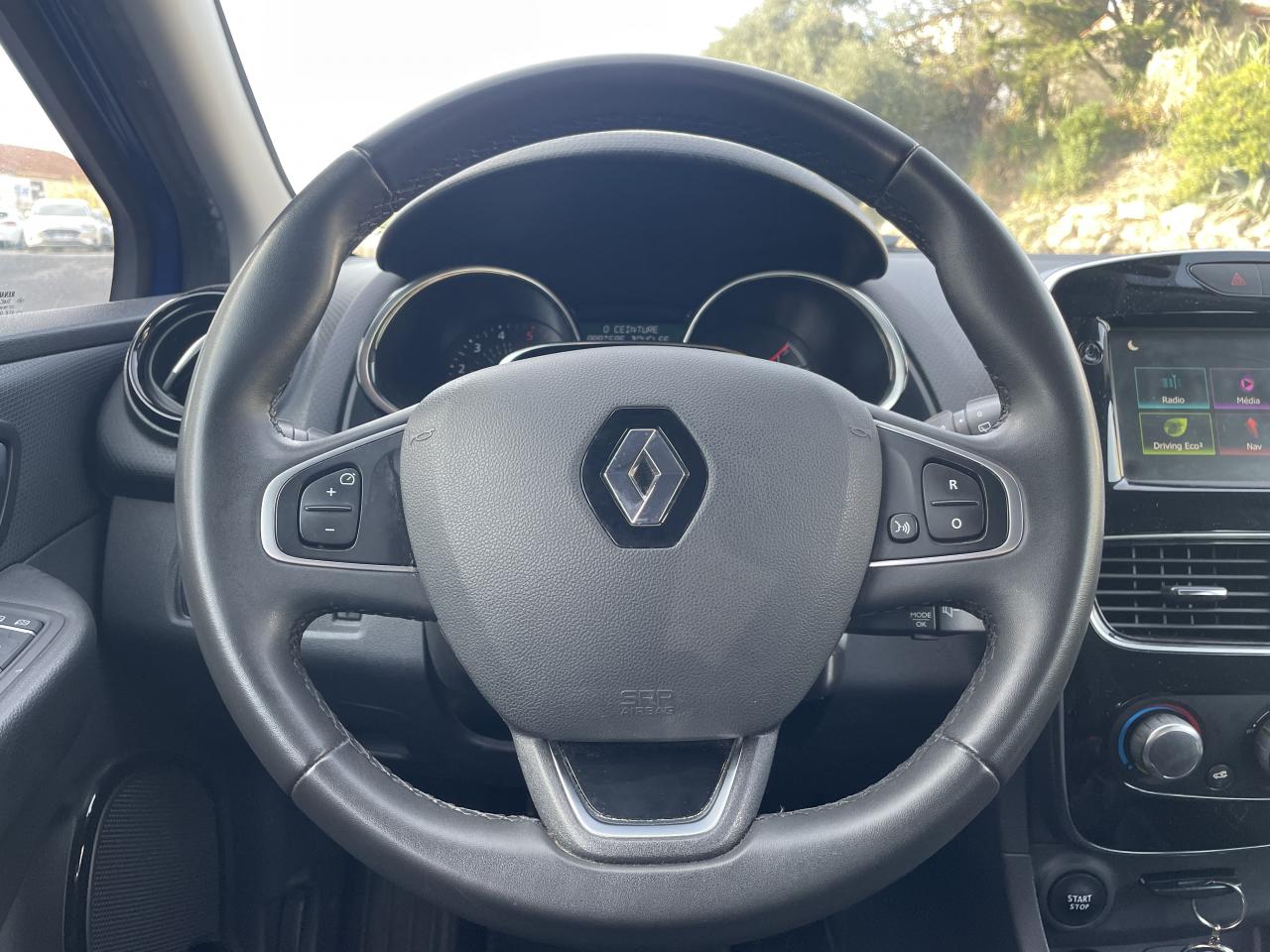 ABS avec aide au freinage d'urgenceAide au démarrage en côteAide au stationnement arrièreAirbags frontaux et latéraux conducteur et passager déconnectablesAlerte de ceinture de sécurité conducteur et passagerBanquette arrière rabattable 1/3-2/3 avec 3 appuis-tête réglables en hauteurBecquet de hayon arrièreBoîte à gants fermable (volume 7 L)Carte Renault à télécommandeCerclage des compteurs peint chrome satinéCerclage des futs latéraux chromé satinéCerclages d‘aérateurs Noir BrillantClimatisation manuelleCondamnation automatique des ouvrants en roulantDirection assistée électrique à assistance variableEnjoliveurs FlexWheels 16“ AttractiveEssuie-glace arrière avec déclenchement automatique en marche arrièreEssuie-vitre à cadencementFeux de jour à LEDHarmonie Carbone FoncéJoncs chromés sur bandeau supérieur de calandreJoncs sur protections latérales de portes ChromeKit gonflage de réparationLève-vitres électriques à l'avantMédiaNav EvolutionMode de conduite Eco avec bouton d'activationOrdinateur de bordPare-soleil conducteur et passager avec miroir de courtoisiePoches aumônières au dos des sièges avantPoignées de maintien passager avant et arrière rabattablesPoignées de portes couleur carrosserieProjecteurs antibrouillardProjecteurs double optique halogènesRangement nomadeRégulateur et limiteur de vitesseRétroviseurs extérieurs couleur carrosserieRétroviseurs extérieurs électriques et dégivrantsRétroviseurs extérieurs rabattables manuellementSellerie tissu noir/grisSiège conducteur réglable en hauteurSystème de contrôle de trajectoire (ESP) et système antipatinage (ASR)Système de surveillance de pression des pneusSystème Isofix aux places latérales ARSystème Stop & StartVolant et pommeau de levier de vitesses en cuirVolant réglable en hauteur et en profondeur