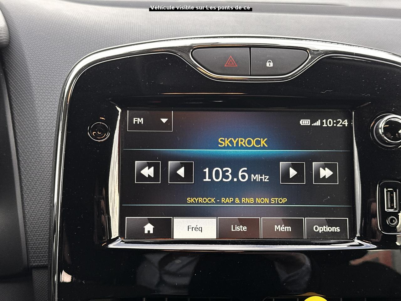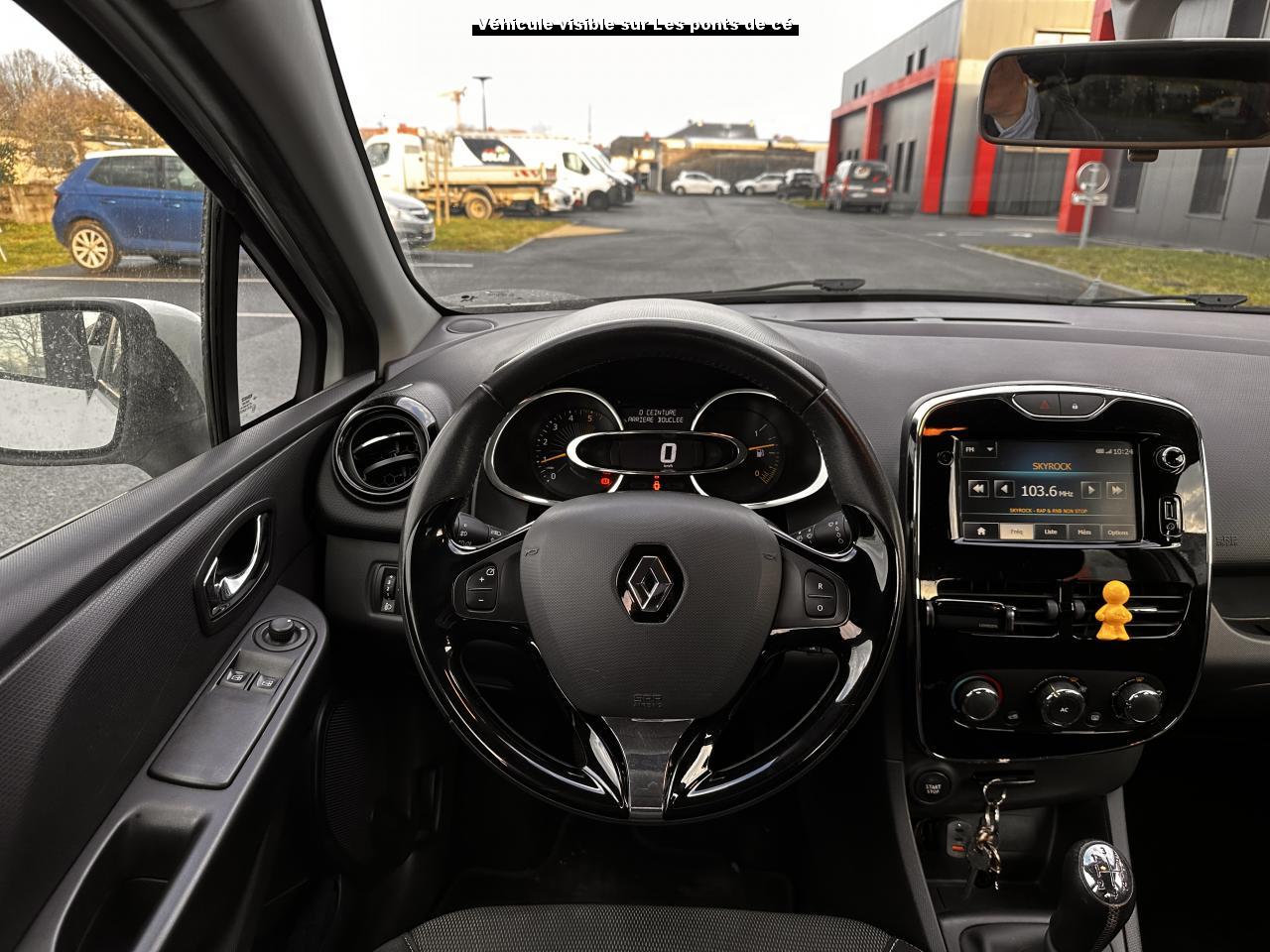 1 porte-gobelet central arrière2 appuie-tête avant réglable en hauteur2 porte-gobelets centraux jumelés3 appuis-tête arrière "virgule" réglables en hauteurABS avec aide au freinage d'urgenceAide au stationnement arrièreAirbag latéral tête-thorax conducteur et passager avantAirbags frontaux conducteur et passager (déconnectable côté passager)Alerte débouclage (SBR) conducteur et passager avant et 3 places passagers arrièreAssistance au démarrage en côteBadging Clio sous logo de face avantBanquette avec fonctionnalité 1/3 - 2/3Barreau supérieur de calandre noir grand brillant avec joncs chromeBecquet de hayon arrièreBoîte à gants fermable (volume 7 L)Bouclier avant et arrière ton carrosserieCarte de démarrage et d'ouverture / fermeture des portesCeinture centrale arrière à fixation au pavillon (3 points)Ceintures arrière 3 points à enrouleur avec limiteur d'effort aux places latéralesCeintures de sécurité conducteur et passager avant réglables en hauteur et avec limiteur d'effortClignotants gauche / droite avec fonction autoroute (impulsion)Commande d'ouverture de porte avant et arrière chrome brillantCommandes d'ouverture de portes extérieures arrière masquées dans montant de porteCondamnation centralisée à distanceCondamnation des ouvrants en roulantCoques de rétroviseurs ton caisseDéflecteurs latéraux noir grand brillantDépose minute ouverte côté passager avantDirection assistée électrique à assistance variableEclairage commandé par carte de démarrage ou ouverture / fermeture de porteEclairage du coffre (s'allume avec le plafonnier à l'ouverture d'un ouvrant)Ecran 7" tactile multifonction comprenant radio, audio-streaming et téléphonie mains-libres Bluetooth prises USB et jack en façadeEnjoliveur 16" design Fairway + logo chroméEnjoliveur de pied milieu noir matEntourage HP avant injectéEssuie-glace arrière avec déclenchement automatique en marche arrièreEssuie-vitre avant 2 vitesses à cadencement variable 5 positionsFeux de jour à LEDHarmonie Carbone très foncéIndicateur de changement de vitessesKit de gonflageLève-vitres électriques à l'avantMode de conduite ECOOrdinateur de bordPack MediaNavPare-soleil conducteur avec pochette et miroir de courtoisie (sans éclairage), avec occultantPare-soleil passager avec miroir de courtoisie occultablePoignées de maintien passager avant et arrière rabattablesProjecteurs antibrouillardProjecteurs double optique halogènesRangement côté conducteurRangement ouvert en bas de console centraleRangement sous plancher de coffre (85L)Rangements ouverts dans les portes avant et arrièreRecyclage de l'airRégulateur et limiteur de vitesseRépétiteur de clignotant sur rétroviseurs extérieursRétroviseurs extérieurs électriques dégivrants avec sonde de températureSellerie tissu carbone foncé et médaillons de porte tissu grisSiège conducteur réglable en hauteurSpot de lecture passager avantSystème anti sous-marinage (Fix4sure) aux sièges avant et arrièreSystème audio d'optimisation des basses Renault Bass ReflexSystème de contrôle de trajectoire (ESP) et système antipatinage (ASR)Système Isofix aux places latérales arrière et passager avantVitres arrière manuellesVolant gainé cuirVolant réglable en hauteur et en profondeurZone de vide-poche côté passager