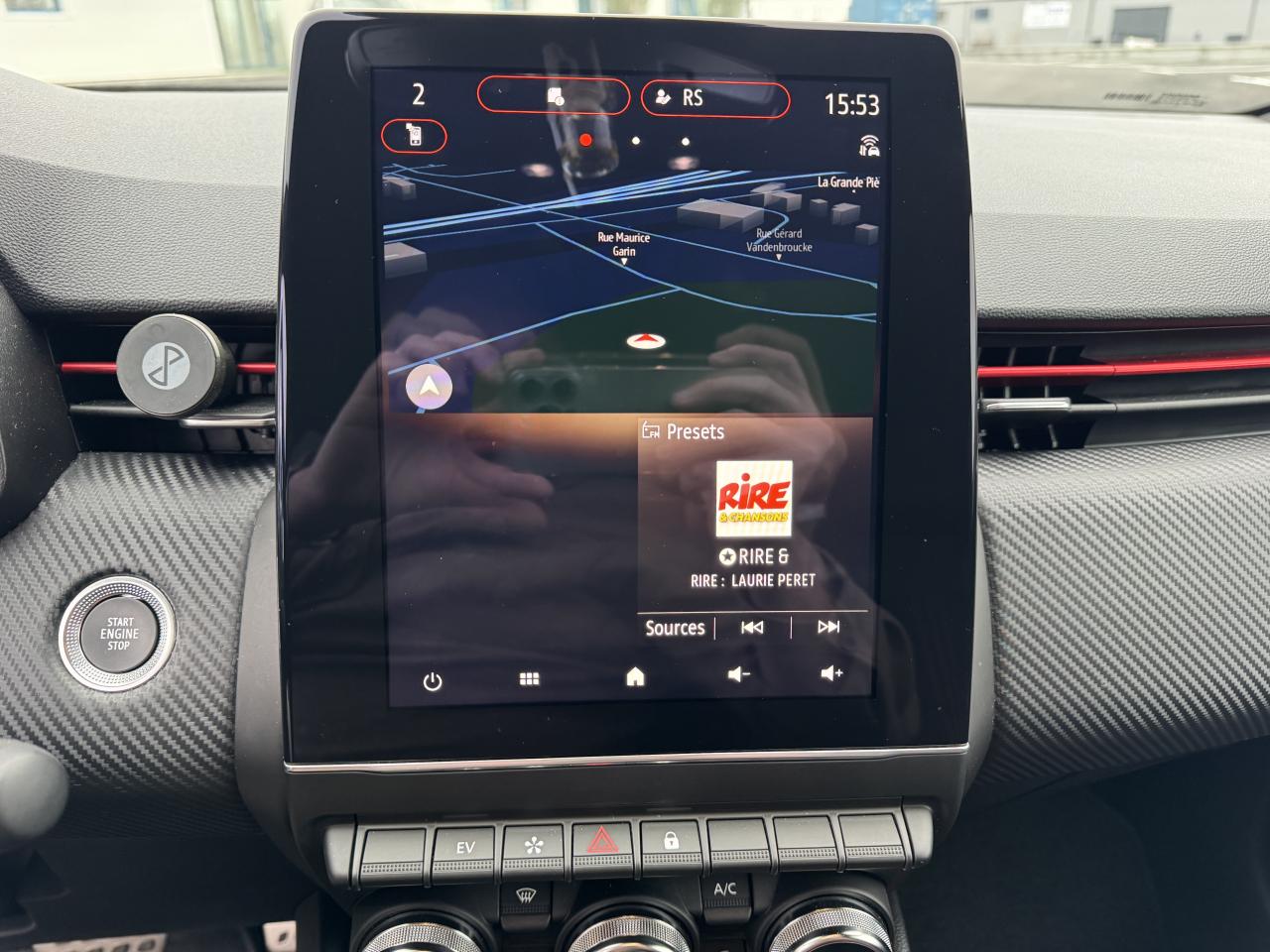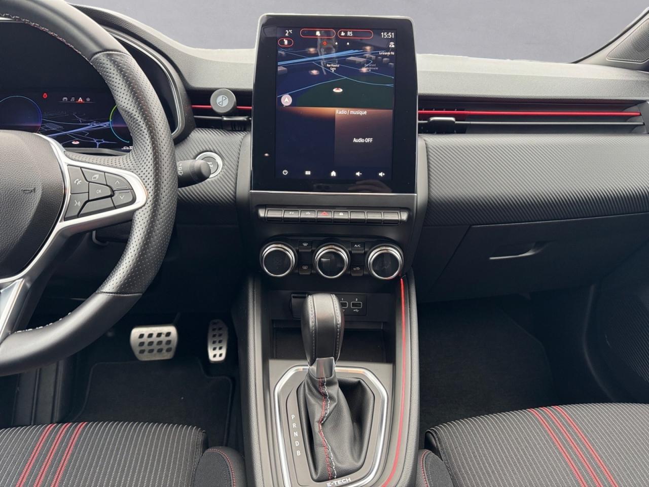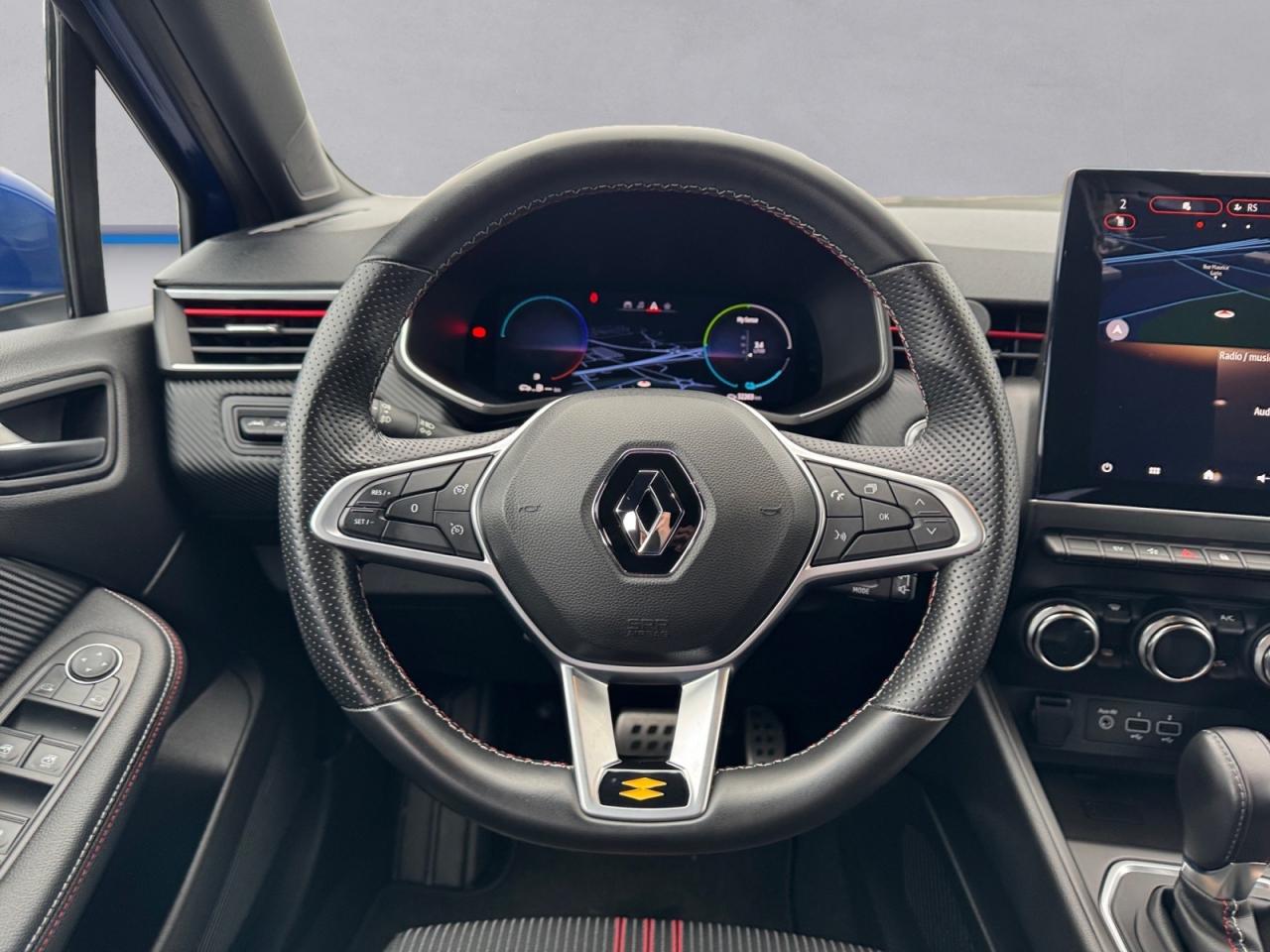 ABS avec aide au freinage d'urgenceAccoudoir avant, coulissant - avec rangement fermé de 2,2 lAérateurs latéraux chrome satinéAide au démarrage en côteAirbags frontaux et latéraux conducteur et passager avantAlerte de perte de pression des pneusAlerte de sortie de voie avec volant haptiqueAlerte de survitesse avec reconnaissance des panneaux de signalisationAlerte distance de sécuritéAlerte oubli des ceintures de sécurité aux 5 places avec détection des occupantsAllumage automatique des essuie-glacesAllumage automatique des projecteursAppel d'Urgence Renault: appel automatique en cas d'accident ou bouton SOS pour appel (112) en cas d'urgenceAppuis-têtes avant fin et 3 appuis-têtes arrière réglables en hauteurAssistance au maintien de voieBadges E-TECH HybridBandeau supérieur des portes avant en matériau mousséBanquette arrière rabattable 40/60Boîte à gants ferméeCarte Renault, accès et démarrage « mains-libres »Ceinture centrale arrière 3 points, avec prétensionneurCeintures de sécurité AV et latérales AR à prétensionneurs et limiteurs d'effortCeintures de sécurité avant réglables en hauteurClimatisation automatiqueCoiffe de planche de bord en noir, avec matériau mousséCommande « EV » sur tableau de bordConsole centrale avant flottante, avec gainage en matériau softContrôle électronique de stabilité (ESC)Désactivation manuelle de l'airbag passagerDesign extérieur R.S. LineDesign intérieur R.S. LineEASY LINK 7” et navigationEclairage avant et arrière Full LED Pure Vision avec signature lumineuse en forme de « C »Eclairage d’ambiance : lumière personnalisable sur console centrale et accoudoir des portes avantEclairage intelligent (commutation automatique feux de croisement/feux de route)Eclairage intérieur avant et arrière avec 4 liseuses LEDFrein de parking électrique avec fonction Auto-HoldFreinage actif d’urgence, avec détection des voitures, motos, piétons, cyclistes (jour et nuit)Indicateur de changement de vitessesInserts en chrome satiné sur le volant et l’embase de levier de vitesseJantes alliage 17” MAGNY-COURS diamantées noiresJoncs chromés sur bandeau supérieur de calandreJoncs chromés sur protections inférieures de porteKit de gonflageLécheur de vitres latérales chromeLève vitres électriques avant et arrière impulsionnelsMode EcoPack CityPieds de portes et poignées arrière intégrée Noir BrillantPoignées de porte avant couleur carrosserieProtections inférieures de porte avec signature CLIORéception radio numérique (DAB+ et traditionnels FM/AM)Régulateur et limiteur de vitesseRenault MULTI-SENSE, personnalisation des modes de conduites et ambiance intérieures (3 mode pré-définis: MY SENSE, ECO, SPORT)Rétroviseur intérieur électrochromeRétroviseurs extérieurs couleur carrosserieSellerie mixte R.S. Line cuir synthétique noir et tissu rayé noir / rouge, surpiqûres rougesService Auto-Update - 3 ans inclusServices de navigation connectée - 3 ans inclusSièges avant réglables en hauteurSystème Isofix aux places latérales arrière et passager avantTableau de bord avec écran numérique et personnalisable 7”Véhicule connecté 4G avec pack de données inclus pendant 3 ansVitres arrière surteintéesVolant multifonctions réglable en hauteur et en profondeur
