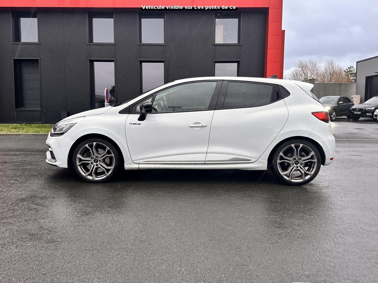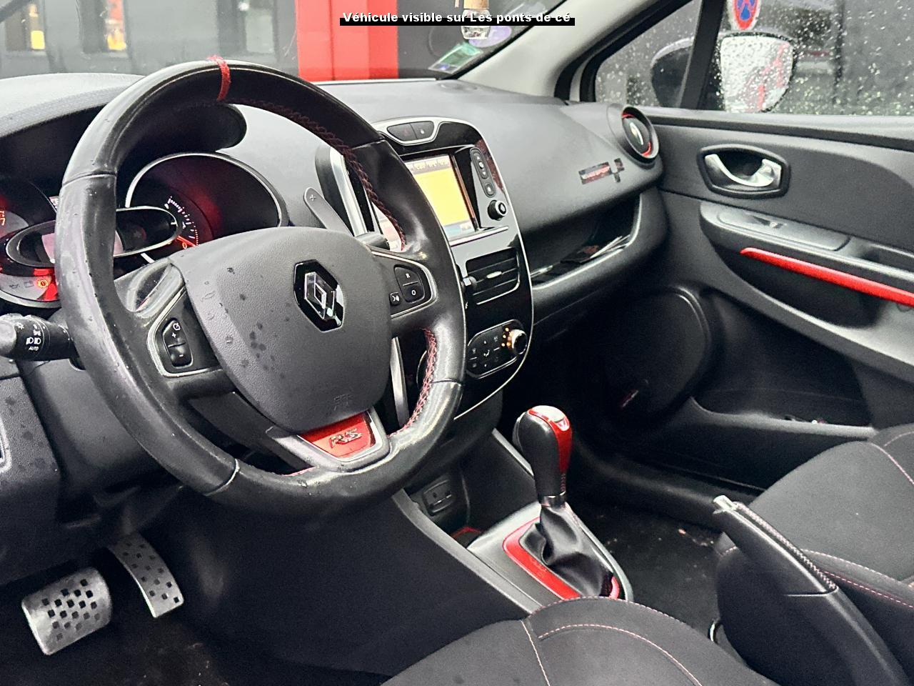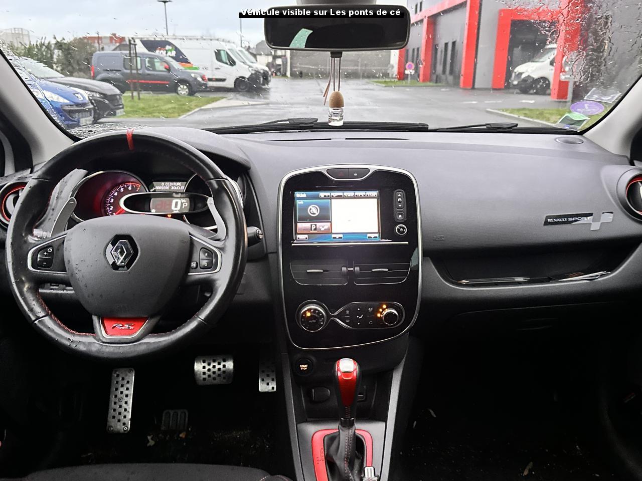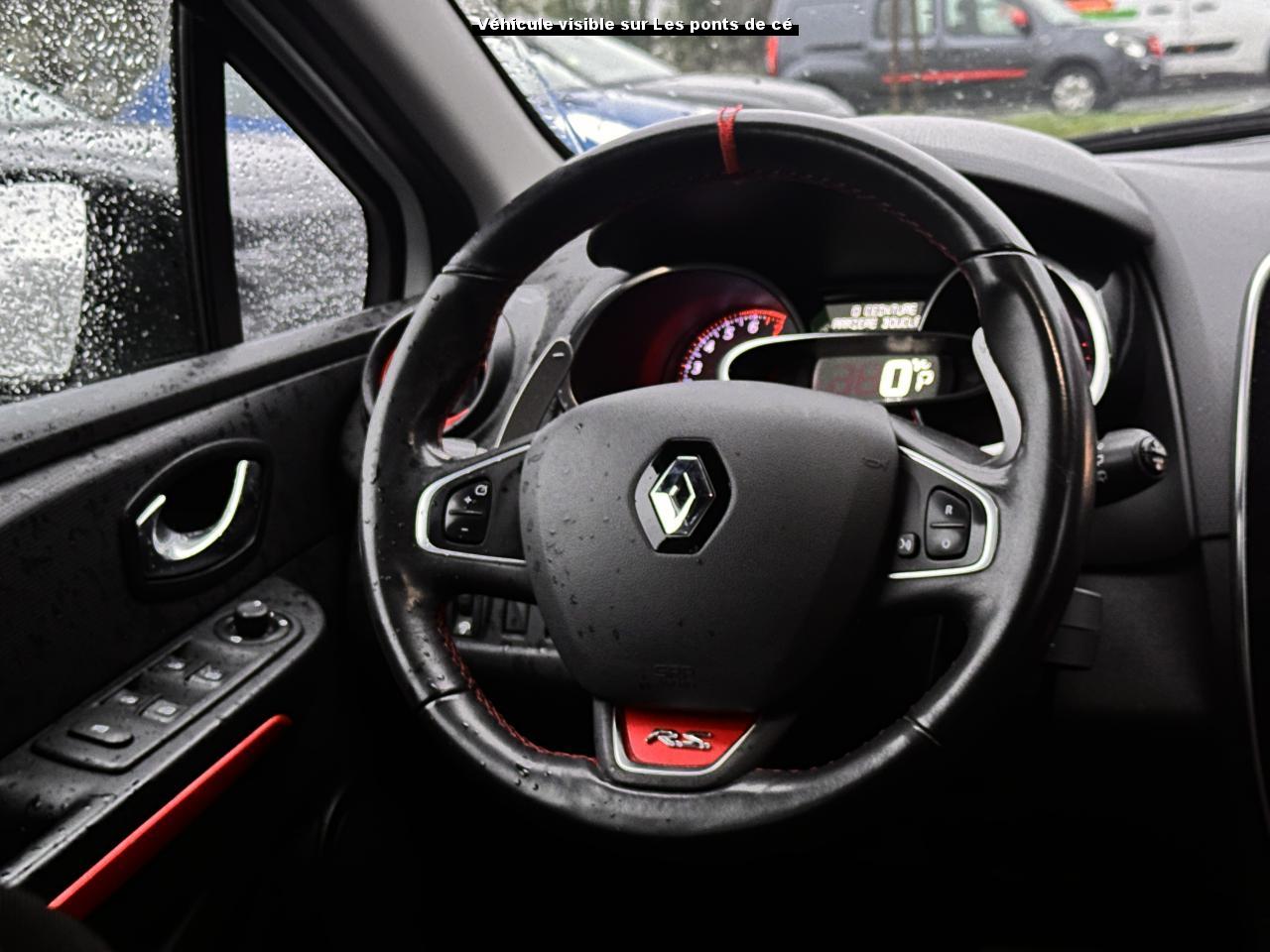 2 appuis-tête avant réglables en hauteur, avec marquage R.S3 Appuis-tête réglables en hauteurABS avec aide au freinage d'urgenceAide au démarrage en côteAide au stationnement arrièreAirbag latéral tête-thorax conducteur et passager avantAirbags frontaux conducteur et passager (déconnectable côté passager)Alerte de ceinture de sécurité conducteur et passagerBadging « R.S. renault sport » sur bas de hayon arrière droitBadging R.S. sous logo de face avantBaguettes latérales ton caisseBanquette arrière rabattable 1/3-2/3Barreau supérieur de calandre noir Grand brillantBas de caisse spécifique (bavolets)Becquet spécifique R.SBoîte à gants fermable (volume 7 L)Bouclier ton caisse avec lame F1 dark métal brillantCarte Renault avec accès et démarrage mains-libres avec fermeture à l’éloignementChâssis “Sport”Climatisation régulée avec filtre combiné pollen / charbon actifCommandes d'ouverture de portes extérieures arrière masquées dans montant de porteDétecteur de pluie et allumage automatique des projecteursDiffuseur arrière dark métal brillantDirection assistée électrique à assistance variableDouble canules d'échappement chromées rectangulaires, intégrées au diffuseurEssuie-glace arrière avec déclenchement automatique en marche arrièreEssuie-vitre à cadencementFaçade centrale Noir BrillantFeux de jour à LED déportés, avec allumage permanentFond de compte-tours gris spécifique renault sportHarmonie Carbone FoncéIndicateur de changement de vitessesIndicateur de style de conduite 3 couleurs (vert, jaune, ambre)Insert chromé sur le compteur de vitesse digitalInsert rouge anodisé avec cerclage chromé et marquage R.S. sur volantInserts chromés sur les poignées de portesJantes alliage 18" dark metal avec cabochons R.SJupe de bouclier arrière noir Grand brillantKit de gonflageLève-vitres arrières électriquesLève-vitres avant et arrière électriques, impulsionnel côté conducteurLève-vitres conducteur électrique et impulsionnelLevier de vitesse avec fonction impulsionnelleLevier de vitesse avec insert chroméLevier de vitesses et poignée de frein à main en cuir avec surpiqûres rougesMasques de phares noirs avec joncs blancsOrdinateur de bordPack Renault R-LinkPalettes de passages de rapports au volant dark métalPare-soleil conducteur et passager avec miroir de courtoisiePédalier en aluminiumPoignées de maintien passager avant et arrière rabattablesPoignées de portes ton caissePrise 12VR.S. drive (3 modes : normal, sport, race)Régulateur et limiteur de vitesseRepose-pied aluminiumRétroviseurs extérieurs électriques et dégivrantsRétroviseurs extérieurs noirs brillantsRétroviseurs extérieurs rabattables électriquementSellerie tissu carbone foncé avec surpiqûres rougesSeuil de porte aluminium avec marquage renault sportSiège conducteur réglable en hauteurSièges avant sport avec maintiens latéraux renforcésSystème anti sous-marinage (Fix4sure) aux sièges avant et arrièreSystème de contrôle de trajectoire (ESP) et système antipatinage (ASR)Système de surveillance de pression des pneusSystème Isofix aux places latérales ARVitres arrières surteintéesVolant gainé de cuir avec surpiqûres rougesVolant réglable en hauteur et en profondeurVolant spécifique Renault Sport