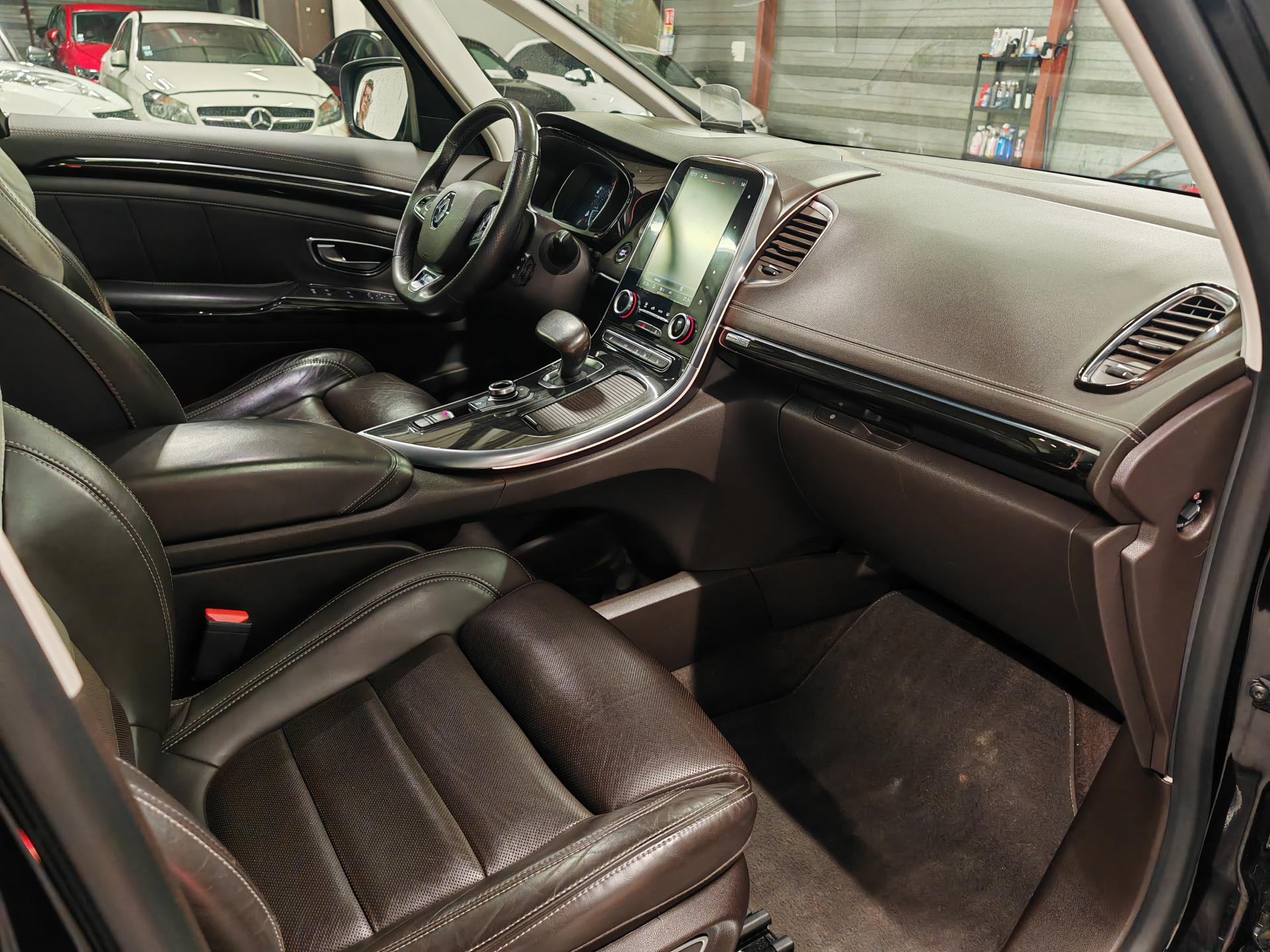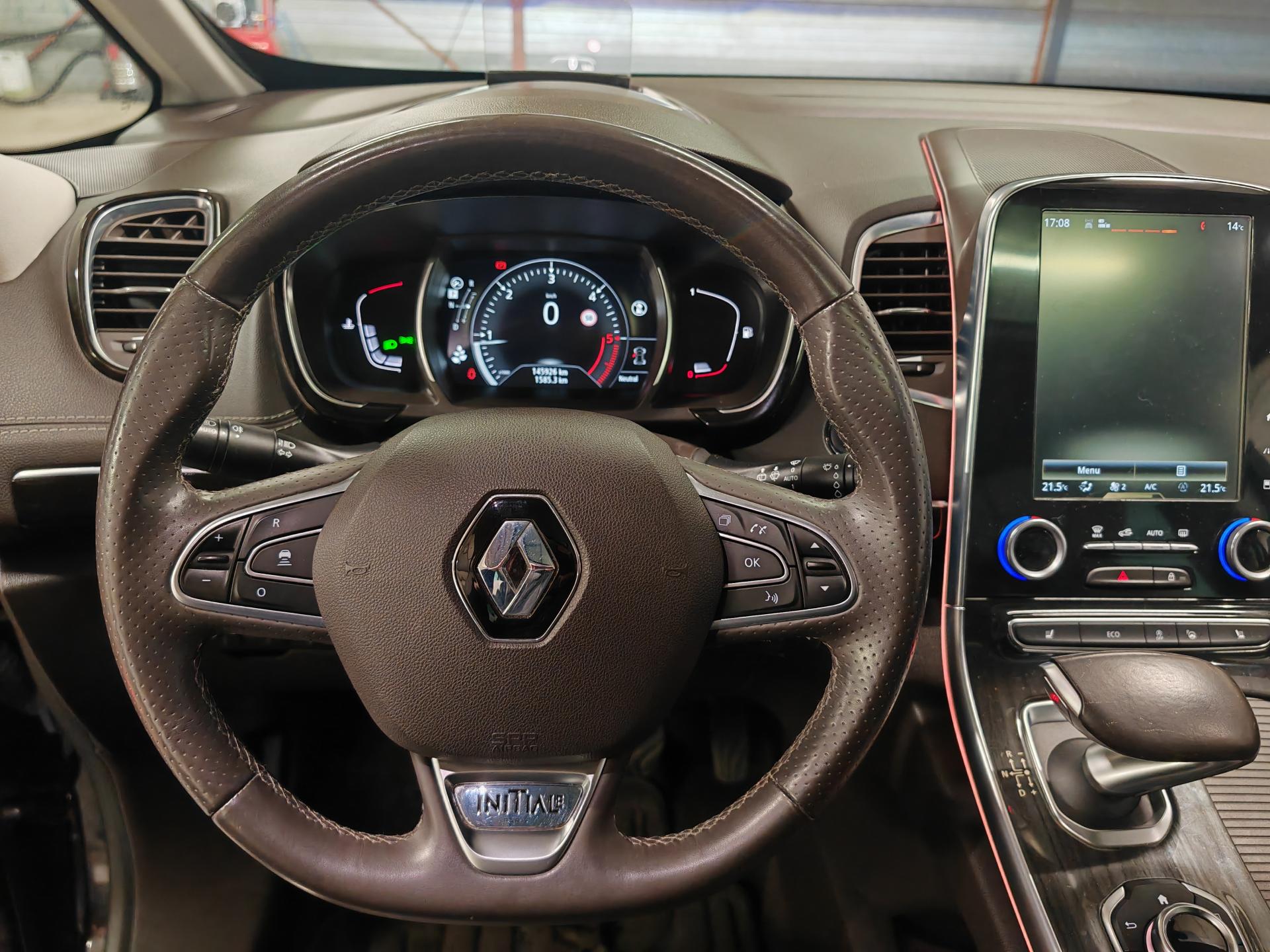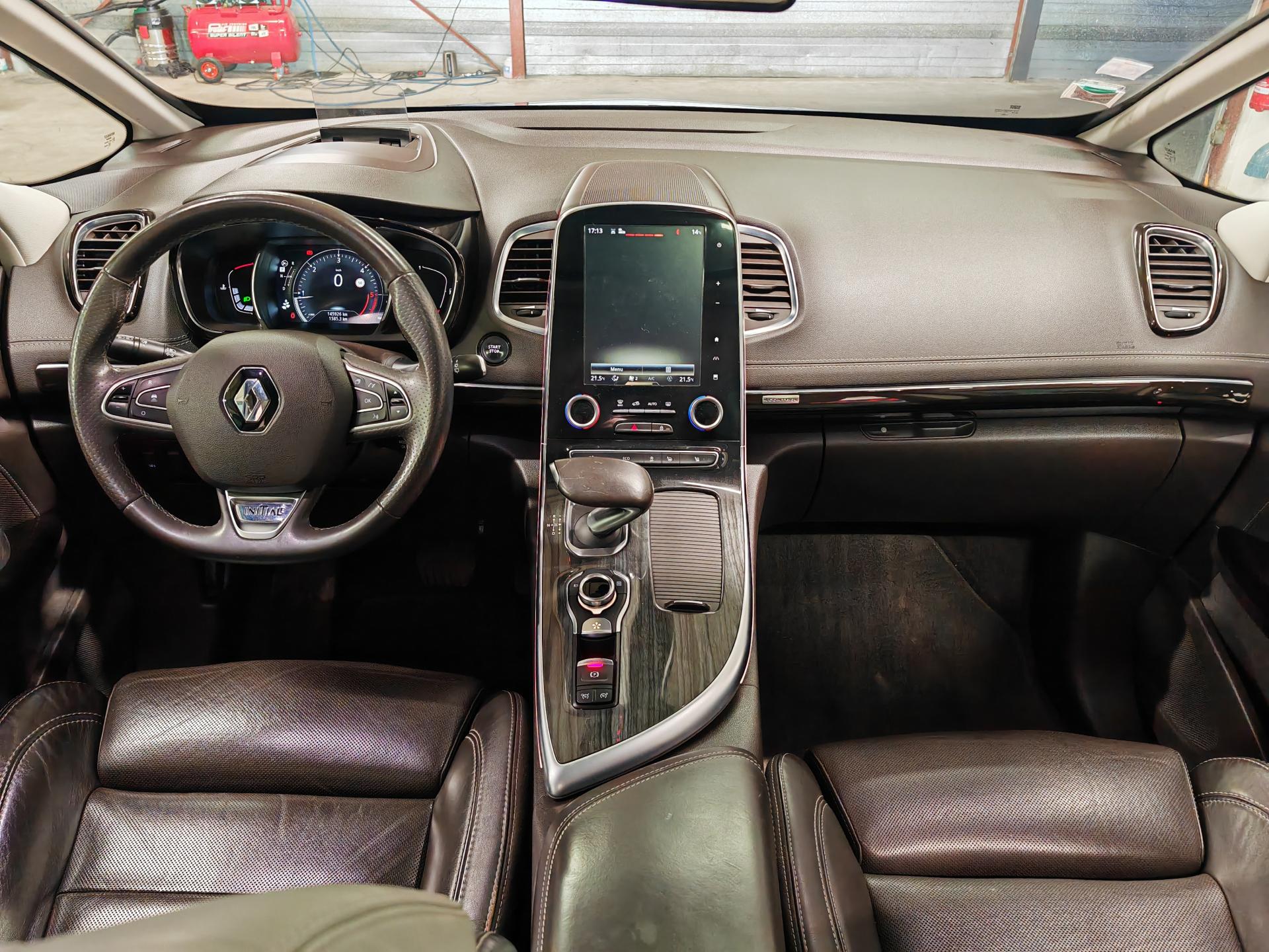 ABS avec aide au freinage d'urgenceAérateurs aux places arrièresAide au démarrage en côteAide au parking avant, arrière et latéralAirbags frontaux conducteur et passager adaptatifs (airbag passager déconnectable)Airbags latéraux (airbag thorax et bassin à l'avant)Airbags rideaux de tête aux places avant et arrièreAntipatinage Traction controlAppellation InitialeAppuie-tête avant et arrière RelaxBose Surround System avec 12 haut-parleurs et Active Noise ControlCaméra de reculCapteurs de toxicité (Nox/CO)Carte Renault mains-libres avec allumage des feux à l'approcheClimatisation automatique bi-zoneCondamnation automatique des ouvrants en roulantConsole suspendue avec rangementContrôle dynamique de trajectoire (ESP)Coques de rétroviseurs extérieurs noir nacréDétecteur de pluie et allumage automatique des projecteursDirection à assistance électriqueEclairage de bienvenue et ambiance lumineuseEco driving (Monitoring, Scoring, Coaching et conseils)Energy Smart Management: récupération d'énergie au freinageFeux LED Pure VisionFilm Console "Silver Wood"Fixations Isofix aux 3 places arrièreFrein de parking assistéKit gonflage de réparationLecteur carte SD rang 1Lève-vitres avant et arrière électriques, à impulsion avec dispositif anti-pincementMiroirs de courtoisie éclairés conducteur et passagerModularité One TouchNavigation TomTom avec cartographie EuropeNouveau Renault R-Link 2Ordinateur de bordPack 4ControlPack CityPack SécuritéPack TechnologiePack Visio SystemPare brise athermique anti UVPare-brise panoramique lumière avec occultation par vélumPlanche de bord gris Lune avec surpiqûres ou brun foncé avec surpiqûresPoches aumônière accessibles au rang 2Pommeau de levier de vitesses en cuirPrise 12VPrises USB, et prise mini jackRangements sous console et accoudoirRégulateur et limiteur de vitesseRenault Multi-SenseRétroviseur intérieur électrochromeRétroviseurs extérieurs électriques, dégivrants, à mémoire avec sonde de température et rabattables électriquementSellerie cuir Nappa pleine fleur gris camaïeu ou brun foncéSiège conducteur avec réglage lombaireSiège passager avec réglage lombaireSièges arrière individuels (coulissants et dossiers réglables)Sièges avant à réglages 10 voies (dont 8 électriques), massantSièges avant chauffantsSièges conducteur et passager réglables en hauteurSon Arkamys 8 haut-parleursStores pare-soleil arrièreSurtapis aux places avant et arrièreSurtapis de sol avant et arrière Initiale ParisSystème de surveillance de pression des pneusTiroir Easy-Life avec éclairage, réfrigéréVitrage latéral feuilletéVitres latérales et lunette arrière surteintéesVolant cuir Nappa réglable en hauteur et profondeur