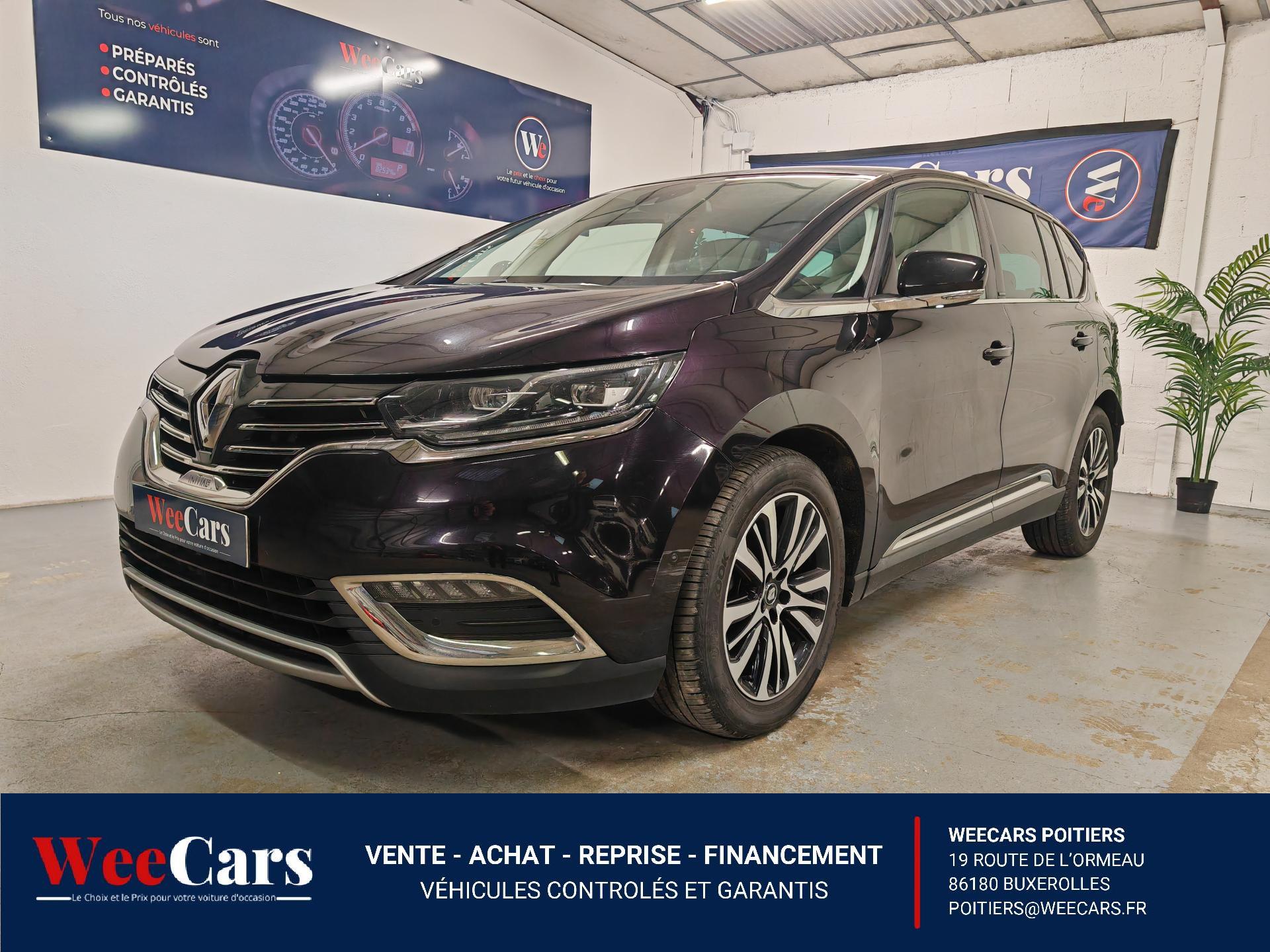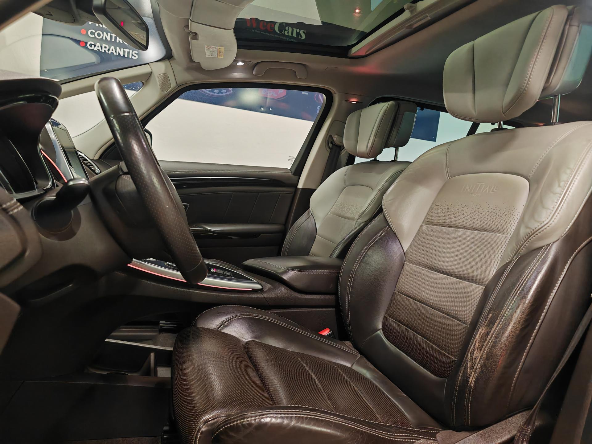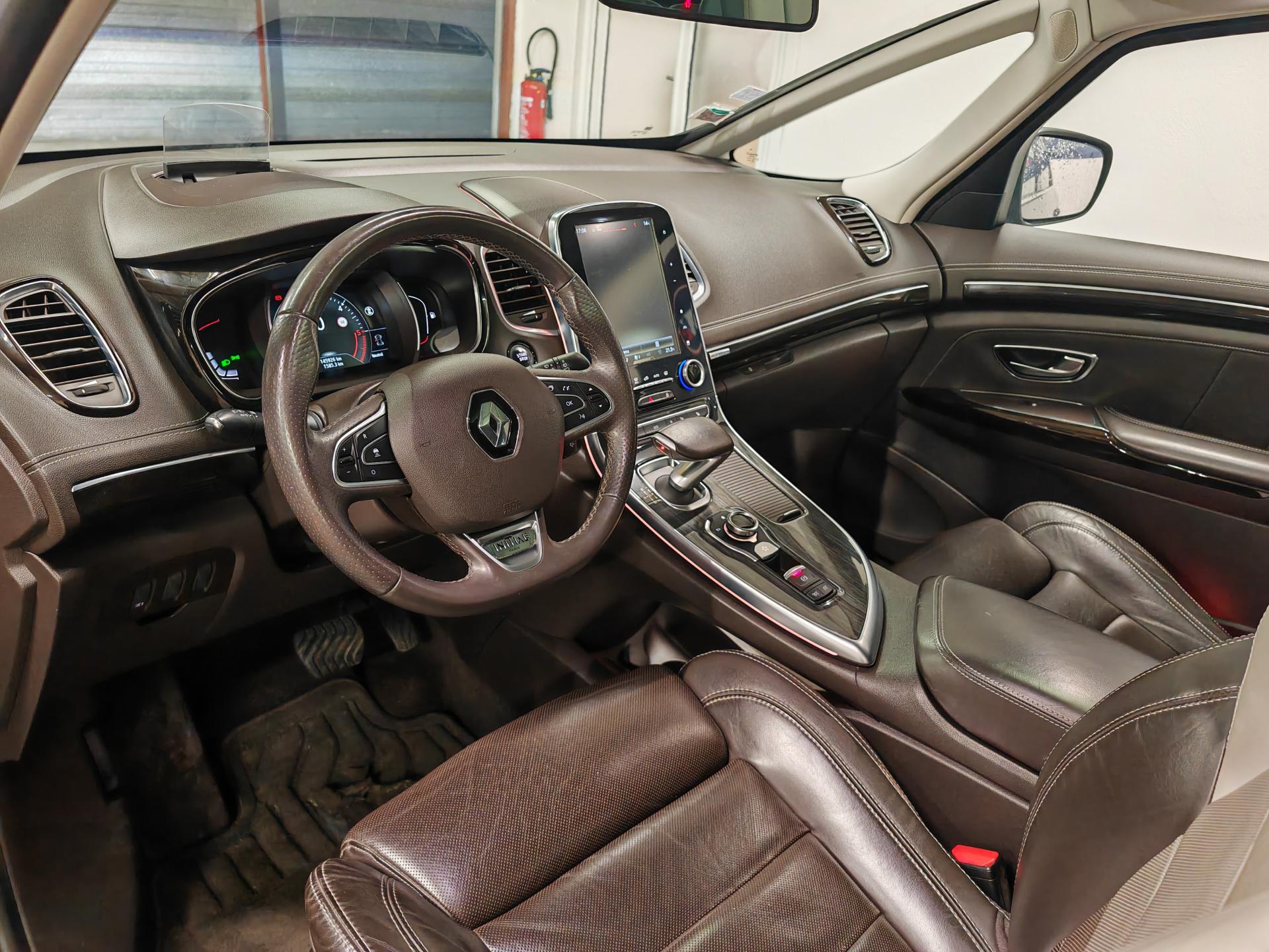 ABS avec aide au freinage d'urgenceAérateurs aux places arrièresAide au démarrage en côteAide au parking avant, arrière et latéralAirbags frontaux conducteur et passager adaptatifs (airbag passager déconnectable)Airbags latéraux (airbag thorax et bassin à l'avant)Airbags rideaux de tête aux places avant et arrièreAntipatinage Traction controlAppellation InitialeAppuie-tête avant et arrière RelaxBose Surround System avec 12 haut-parleurs et Active Noise ControlCaméra de reculCapteurs de toxicité (Nox/CO)Carte Renault mains-libres avec allumage des feux à l'approcheClimatisation automatique bi-zoneCondamnation automatique des ouvrants en roulantConsole suspendue avec rangementContrôle dynamique de trajectoire (ESP)Coques de rétroviseurs extérieurs noir nacréDétecteur de pluie et allumage automatique des projecteursDirection à assistance électriqueEclairage de bienvenue et ambiance lumineuseEco driving (Monitoring, Scoring, Coaching et conseils)Energy Smart Management: récupération d'énergie au freinageFeux LED Pure VisionFilm Console "Silver Wood"Fixations Isofix aux 3 places arrièreFrein de parking assistéKit gonflage de réparationLecteur carte SD rang 1Lève-vitres avant et arrière électriques, à impulsion avec dispositif anti-pincementMiroirs de courtoisie éclairés conducteur et passagerModularité One TouchNavigation TomTom avec cartographie EuropeNouveau Renault R-Link 2Ordinateur de bordPack 4ControlPack CityPack SécuritéPack TechnologiePack Visio SystemPare brise athermique anti UVPare-brise panoramique lumière avec occultation par vélumPlanche de bord gris Lune avec surpiqûres ou brun foncé avec surpiqûresPoches aumônière accessibles au rang 2Pommeau de levier de vitesses en cuirPrise 12VPrises USB, et prise mini jackRangements sous console et accoudoirRégulateur et limiteur de vitesseRenault Multi-SenseRétroviseur intérieur électrochromeRétroviseurs extérieurs électriques, dégivrants, à mémoire avec sonde de température et rabattables électriquementSellerie cuir Nappa pleine fleur gris camaïeu ou brun foncéSiège conducteur avec réglage lombaireSiège passager avec réglage lombaireSièges arrière individuels (coulissants et dossiers réglables)Sièges avant à réglages 10 voies (dont 8 électriques), massantSièges avant chauffantsSièges conducteur et passager réglables en hauteurSon Arkamys 8 haut-parleursStores pare-soleil arrièreSurtapis aux places avant et arrièreSurtapis de sol avant et arrière Initiale ParisSystème de surveillance de pression des pneusTiroir Easy-Life avec éclairage, réfrigéréVitrage latéral feuilletéVitres latérales et lunette arrière surteintéesVolant cuir Nappa réglable en hauteur et profondeur