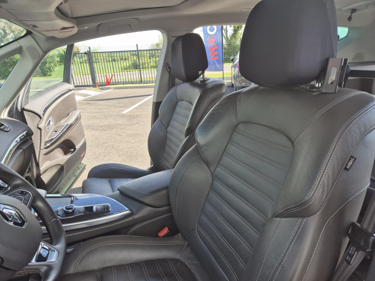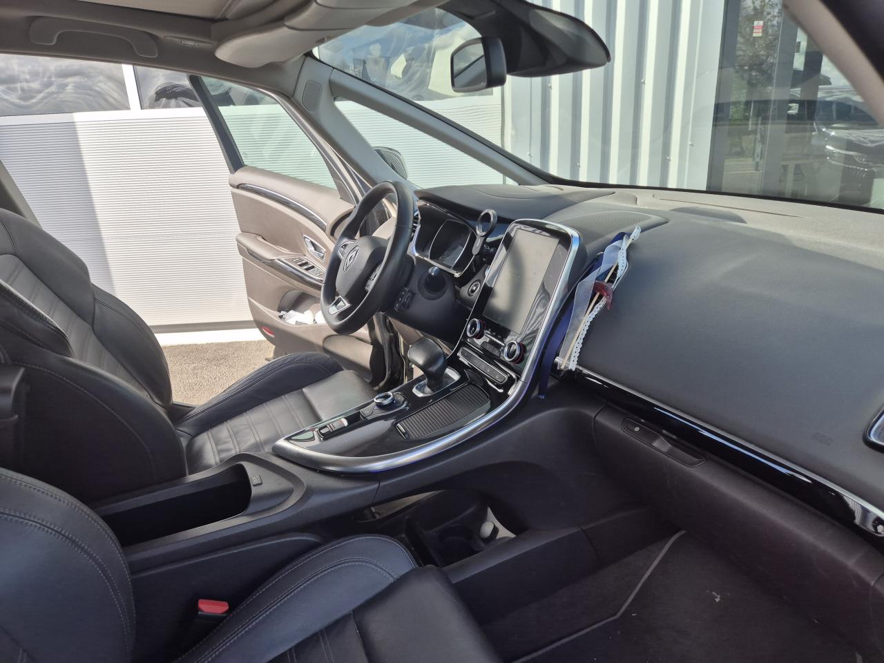 1 prise jack à l'avant et l'arrière2 ports USB à l'avant et 2 à l'arrièreABS avec aide au freinage d'urgenceAccoudoir central avant avec rangementAdvanced Traction ControlAérateurs aux places arrièresAide au démarrage en côteAide au parking avant, arrière et latéralAirbags frontaux conducteur et passager adaptatifs (airbag passager déconnectable)Airbags latéraux (airbag thorax et bassin à l'avant)Airbags rideaux de tête aux places avant et arrièreAlerte oubli ceintures de sécurité dans le rétroviseur intérieurAllumage automatique des feux de détresseCaméra de reculCapteurs de toxicité (Nox/CO)Carte Renault mains-libres avec allumage des feux à l'approcheClimatisation automatique bi-zoneCondamnation automatique des ouvrants en roulantConsole suspendue avec rangement et éclairage d'ambianceContrôle dynamique de trajectoire (ESP)Coques de rétroviseurs extérieurs noir nacréDétecteur de pluie et allumage automatique des projecteursDirection à assistance électriqueEclairage de bienvenue et ambiance lumineuseEco driving (Monitoring, Scoring, Coaching et conseils)Energy Smart Management: récupération d'énergie au freinageFeux arrières à LEDFeux de jour à LEDFeux LED Pure VisionFilm de console « Dot Effect »Fixations Isofix aux 3 places arrièreFrein de parking assistéJantes alliage 19" Quartz DiamantéKit gonflage de réparationLecteur carte SD rang 1Lève-vitres avant et arrière électriques, à impulsion avec dispositif anti-pincementMiroirs de courtoisie éclairésModularité One TouchOrdinateur de bordPack CityPack Renault R-Link 2Pack SécuritéPack TechnologiePack Visio SystemPare brise athermique anti UVPare-brise acoustiquePare-brise panoramique lumière avec occultation par vélumPlanche de bord brun foncé ou gris LunePoches aumônière accessibles au rang 2Pommeau de levier de vitesses en cuirPrises 12 volts en rangs 1, 2 et 3Renault Multi-SenseRétroviseur intérieur électrochromeRétroviseurs extérieurs électriques, dégivrants, à mémoire avec sonde de température et rabattables électriquementSellerie Cuir Riviera Brun FoncéSièges arrière individuels (coulissants et dossiers réglables)Sièges conducteur et passager électriques massants et chauffants réglables 6 voies et réglage lombaireSièges conducteur et passager réglables en hauteurSurtapis aux places avant et arrièreSystème de surveillance de pression des pneusTiroir Easy-Life avec éclairage, réfrigéréVitres latérales et lunette arrière surteintéesVolant cuir Nappa réglable en hauteur et profondeur