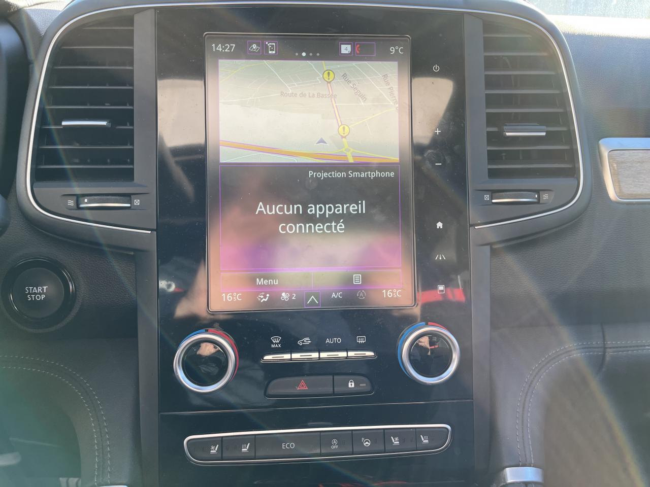 1 prise auxiliaire à l’avant2 prises USB avant2 prises USB et 1 AUX arrièreABS avec aide au freinage d'urgenceAccoudoir central arrière amovible avec rangements et 2 porte-gobeletsAérateurs et climatisation aux places arrièreAide au démarrage en côteAide au parking avantAirbags frontaux conducteur et passager adaptatifs (airbag passager déconnectable)Airbags latéraux (thorax / bassin) avantAirbags rideaux de tête aux places avant et arrièreAlerte de franchissement de ligneAlerte de survitesse avec reconnaissance des panneaux de signalisationAmbiance lumineuse personnalisableAppuis-tête avant RelaxAvertisseur d'angles mortsBanquette arrière rabattable 2/3-1/3, réglage en inclinaison des dossiers arrière (2 niveaux)Barres de toit longitudinalesCaméra de reculCapteur de qualité de l'airCapteurs de pluie et de luminositéCarte Renault mains-libres avec accès, démarrage et allumage des feux à l’approcheClimatisation régulée bi-zones avec capteur de toxicitéCommutation automatique des feux de croisement et de route, Light AssistCompartiment sous plancher platCompteur TFT 7” avec matrice couleur reconfigurableCondamnation automatique des ouvrants en roulantConsole avant avec 2 porte-gobelets largesContrôle de vitesse en descenteContrôle dynamique de trajectoire (ESC)Coques de rétroviseurs ton caisseDétecteur de fatigueEasy Park AssistEclairage des miroirs de courtoisieFeux arrière LED 3D avec clignotants arrière défilantsFeux de jour LED C-ShapeFiltre combinéFixations Isofix et i-Size 2 sièges arrièreFrein de parking assistéFreinage actif d’urgence Inter Urbain/Piétons (AEBS)Hayon motorisé avec ouverture mains-libresJantes alliage 19" Initiale ParisKit de gonflageLève-vitres avant électriques impulsionnelsLève-vitres électriques arrièreLimiteur de vitesseMode EcoPack Aides à la ConduitePhares Eco LEDPoignée de maintien passagerPré-équipement alarmePrise 12V à l'arrièrePrise 12V dans le coffreProjecteurs antibrouillard LED avec fonction corneringR-LINK 2 : Système multimédia connecté avec écran tactile 8,7’’ haute résolution, navigation avec cartographie Europe, reconnaissance vocale, Bluetooth, gestion centralisée de plusieurs fonction du véhicule, services connectés et coRangement sous l'accoudoir avantRétroviseur intérieur électrochrome sans contourRétroviseurs extérieurs à réglages électriques, dégivrants et rabattables automatiquementRétroviseurs extérieurs indexés à la marche ARSellerie cuir Nappa pleine fleur Noir TitaneSièges avant chauffantsSièges avant réglables en hauteurSièges avant ventilésSièges conducteur et passager à réglage électrique 6 voies et réglage lombaire, allonge assise, mémorisation et massage pour le conducteurSki avant de protectionSurtapis de sol INITIALE PARISSystème d'aide au parking arrièreSystème de surveillance de la pression des pneusSystème Easy Break pour banquette arrièreVitres latérales arrière et lunette arrière surteintéesVitres teintées en verre feuilletéVolant et pommeau de levier de vitesses en cuir