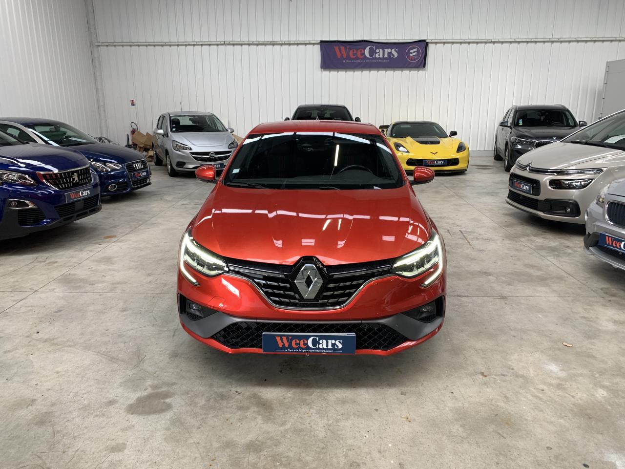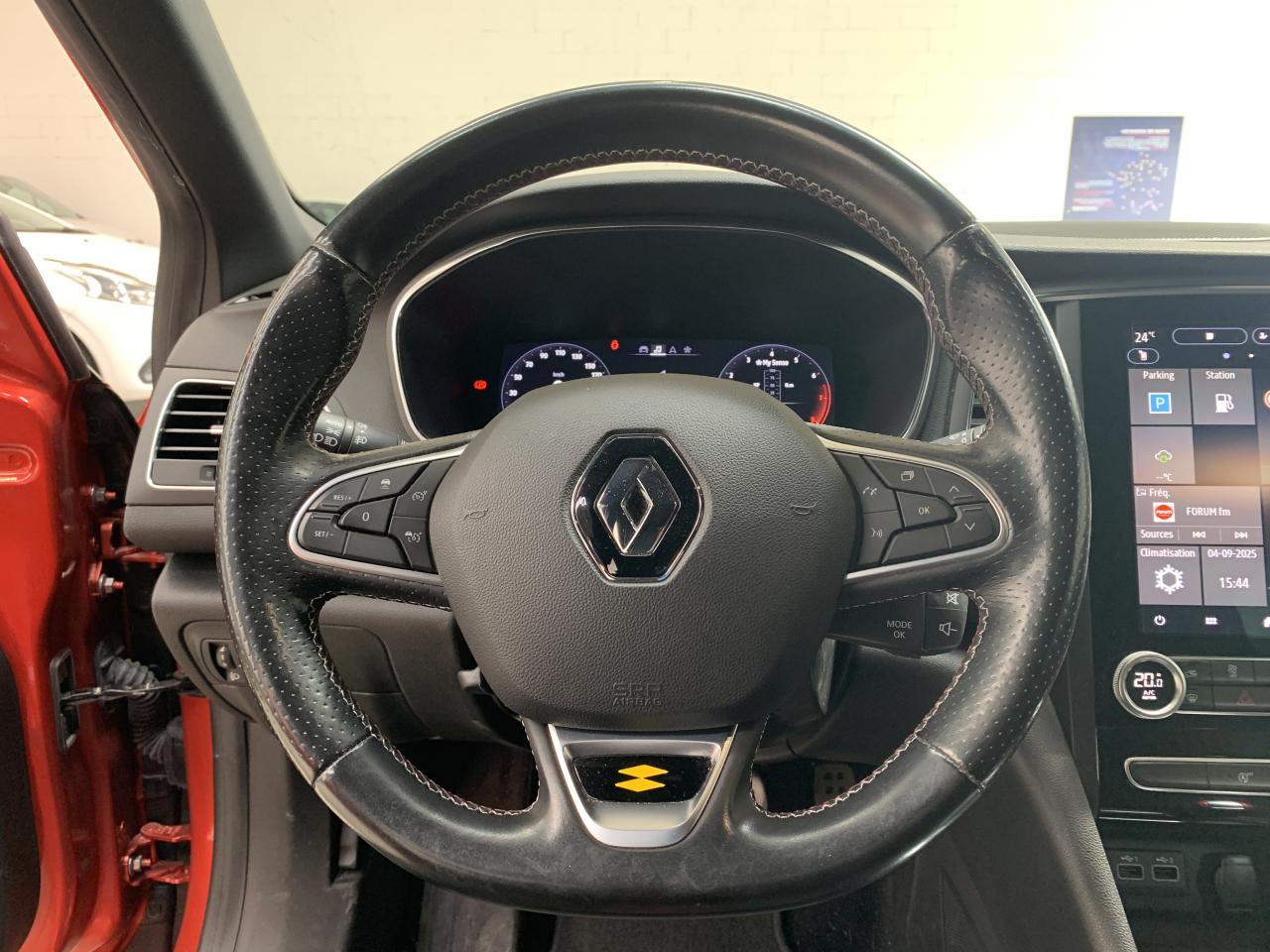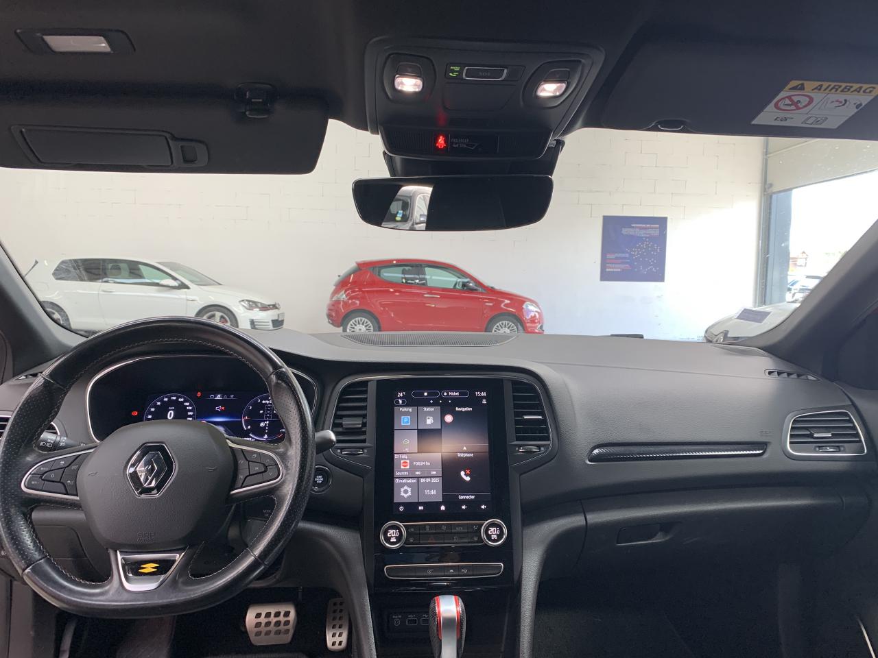 2 prises USB avant et 1 prise jackABS avec aide au freinage d'urgenceAccoudoirs Noir Titane avec surpiqûres Gris Argent & RougesAide au démarrage en côteAide au parking avantAide au stationnement arrièreAirbags frontaux conducteur et passager adaptatifs (airbag passager déconnectable)Airbags latéraux (thorax / bassin) avantAirbags rideaux de têtes aux places avant et arrièreAlerte de franchissement de ligneAlerte de survitesse avec reconnaissance des panneaux de signalisationAlerte Distance SécuritéAntenne requin Noir étoiléAppel d'Urgence RenaultAppuie-têtes avant intégrés sportBadge arrière R.S. LineBadge latéral R.S. LineBadge specifique double diamant R.S. Line sur la face arrièreBadge specifique double diamant R.S. Line sur les ailes avantBanquette 1/3 - 2/3 fractionnable, dossier rabattable avec accoudoirBoîte à gants éclairéeBouclier arrière noir brillant avec insert chromeBouclier avant en nid-d’abeille avec insert lame sportBouclier spécifique intégrant une lame F1Caméra de reculCapteur de toxicité avec recyclage d'airCarte Renault avec accès et démarrage mains-libres avec fermeture à l’éloignementCeintures avant réglables en hauteurCiel de toit noir titaneClimatisation automatique bi-zoneCommutation automatique des feux de croisement et de route, Light AssistCompatibilité Apple CarPlay et Android AutoCondamnation automatique des ouvrants en roulantCondamnation centralisée des ouvrantsCondamnation électrique des vitres arrière depuis le poste de conduiteConsole centrale avec accoudoir avant réglable en longueur et rangement intérieurDécors intérieurs motif R.S. Line Carbone FoncéDétecteur de fatigue du conducteurDétecteur de pluie et allumage automatique des projecteursDouble canules d'échappement chroméesEclairage d‘ambiance sur les panneaux de portes avant et arrièreEclairage plafonnier avant et arrière à LEDEntourage d’aérateurs et de compteur chrome satinéFeux clignotants arrière dynamiques LEDFeux de jour à guide de lumière LED et effet 3DFeux de jour arrière LED 3D Edge LightFeux de jour avant à LED avec signature lumineuse en forme de CFrein de parking électrique avec fonction Auto-HoldFreinage actif d’urgence avec détection piétonsGrille de calandre avec insert chromé en forme de CGrille de calandre noir brillantGuide de lumière sur console centraleJantes alliage 17” MontlhéryKit de gonflageKit de réparation des pneusLécheurs de vitres chromésLève vitres avant électriques à impulsionLève-vitres arrière à impulsion avec fonction anti-pincementLevier de vitesse avec surpiqûres rougesLunette arrière chauffantePare-brise feuilleté teintéPare-soleil avec miroirs de courtoisie éclairés, conducteur et passager avantPédaliers en aluminiumPeinture Blanc GlacierPlanche de bord noire et habillage de portes avec surpiqûres rougesPoches aumônières au dos des sièges avantPoignées de portes extérieures avec jonc chroméPoignées de portes ton caissePré-équipement alarmePrise 12 V à l'arrièrePrise 12V à l'avantProgramme éco mode avec Indicateur de changement de vitesseProjecteurs antibrouillard LED avec enjoliveurs noir brillant et jonc chroméProjecteurs avant Full Led Pure VisionRégulateur et limiteur de vitesseRenault EASY LINK : système multimédia connecté avec tablette tactile 9,3”, navigation embarquée avec cartographie europe, connectivité Bluetooth, radio DAB, commande vocaleRenault Multi-SenseRépétiteurs de clignotant à LED intégrés aux rétroviseursRétroviseur intérieur électrochromeRétroviseurs extérieurs couleur carrosserieRétroviseurs extérieurs électriques et dégivrantsRétroviseurs rabattables électriquementSellerie spécifique R.S. Line Alcantara avec surpiqûres rougesSéquence d‘accueil à l‘ouverture du véhicule avec éclairage de signature lumineuseSiège conducteur avec réglage lombaireSiège conducteur réglable en hauteurSiège passager réglable en hauteurSièges avant à réglage manuel longitudinalSièges avant chauffantsSon Arkamys 8 haut-parleursSpots de lecture avant / arrière avec jonc chroméSurpiqures rouges sur volantSystème de coaching d‘éco-conduiteSystème de contrôle de trajectoire (ESC) et fonction antipatinage (ASR)Système de surveillance de pression des pneusSystème Isofix aux places latérales arrière et passager avantTableau de bord avec écran numérique et personnalisable 10,2”Témoin de non-bouclage des ceintures de sécuritéVitres latérales et lunette arrière surteintéesVolant cuir R.S. Line avec badge double diamant, réglable en hauteur et profondeur