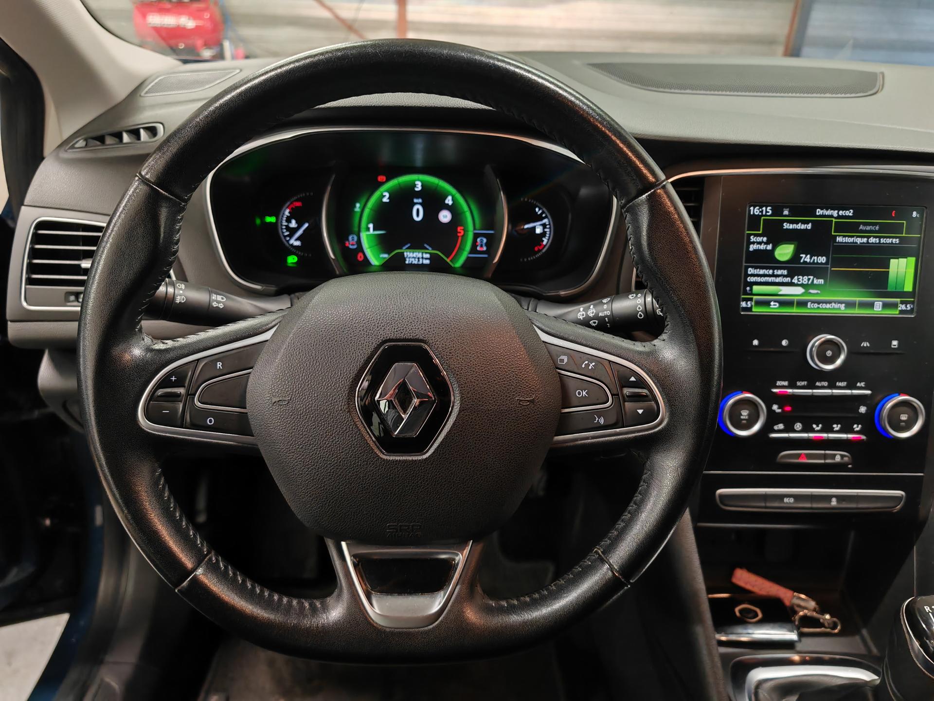 ABS avec aide au freinage d'urgenceAide au démarrage en côteAide au parking avantAide au stationnement arrièreAirbags frontaux conducteur et passager adaptatifs (airbag passager déconnectable)Airbags latéraux (thorax / bassin) avantAirbags rideaux de têtes aux places avant et arrièreAlerte de franchissement de ligneAlerte de survitesse avec reconnaissance des panneaux de signalisationAppuie-tête AV et AR réglables en hauteurBanquette arrière rabattable 1/3-2/3Boîte à gants éclairéeCapteur de toxicité avec recyclage d'airCarte Renault avec accès et démarrage mains-libres avec fermeture à l’éloignementClignotants à impulsionClimatisation automatique bi-zoneCommutation automatique des feux de croisement et de route, Light AssistCompteur digital TFT 7“ avec matrice couleurCondamnation automatique des ouvrants en roulantCondamnation centralisée des portesCondamnation des vitres électriques arrière au poste de conduiteConsole centrale avec accoudoir et compartiment de rangementContrôle dynamique de trajectoire (ESC)Détecteur de pluie et allumage automatique des projecteursFeux de jour à guide de lumière LED et effet 3DFeux de jour arrière LED 3D Edge LightFrein de parking manuelGrille de calandre noir brillant et chromeIndicateur de changement de vitessesJantes design 16" CompleaKit de réparation des pneusLécheurs de vitres chromésLève vitres avant électriques à impulsionLève-vitres arrière électriques impulsionnelsPack R-Link 2Poches aumônière au dos des sièges avantPoignées de porte avec jonc chroméPrise 12 V à l'arrièrePrise 12V à l'avantProgramme Eco-modeProjecteurs antibrouillardRégulateur et limiteur de vitesseRépétiteurs de clignotant à LED intégrés aux rétroviseursRétroviseurs extérieurs couleur carrosserieRétroviseurs extérieurs électriques et dégivrantsRétroviseurs extérieurs rabattables électriquementSellerie tissu carbone foncé avec surpiqûres argentSéquence d‘accueil à l‘approche du véhicule avec éclairage de signature lumineuse et éclairage de solSiège conducteur avec réglage lombaireSiège conducteur réglable en hauteurSiège passager réglable en hauteurSystème de coaching d‘éco-conduiteSystème de fixations ISOFIX aux 2 places latérales arrièreSystème de surveillance de pression des pneusVérins de capot moteurVolant cuir multifonctions réglable en hauteur et profondeur
