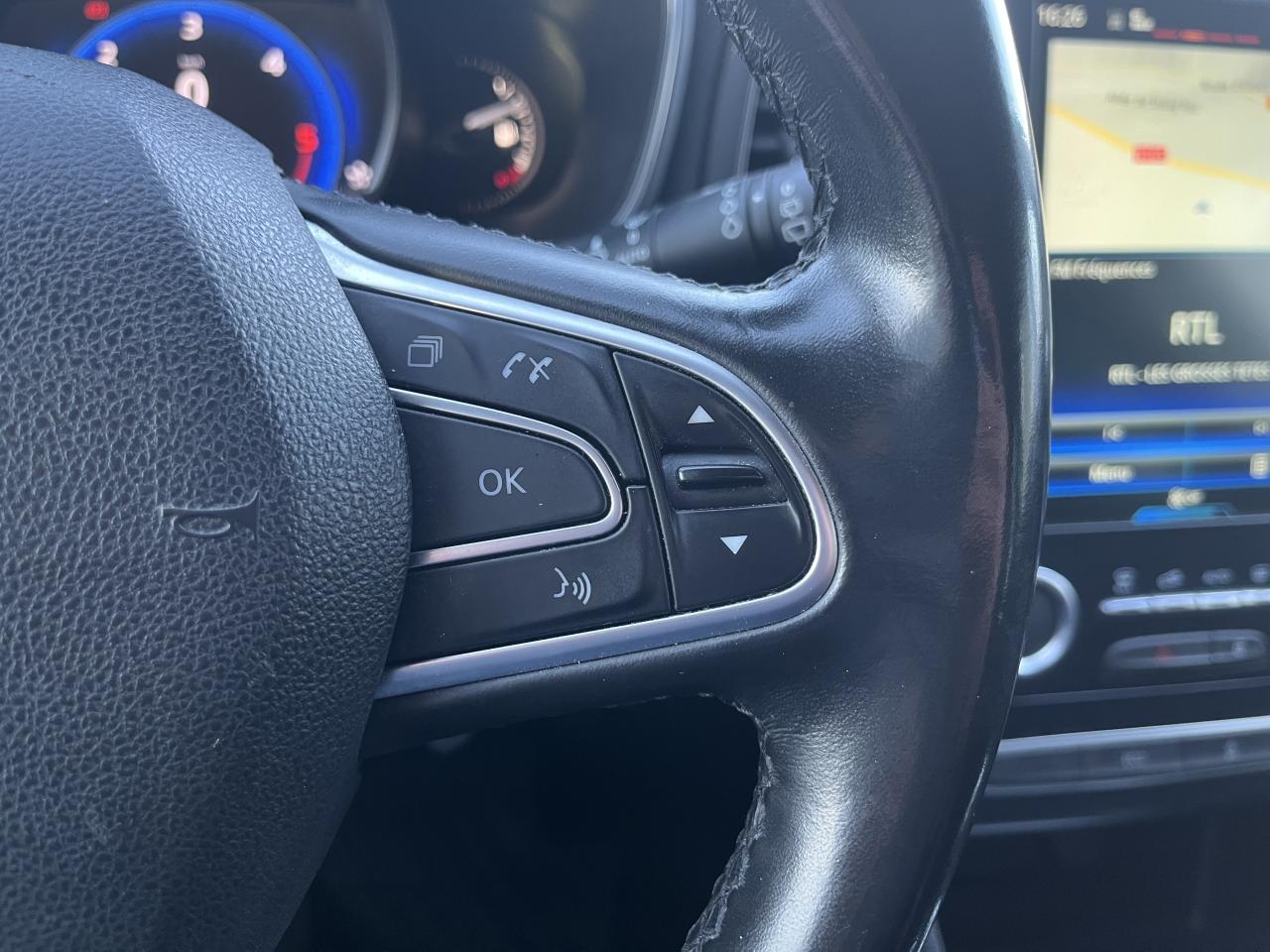 ABS avec aide au freinage d'urgenceAide au démarrage en côteAide au stationnement arrièreAirbags frontaux conducteur et passager adaptatifs (airbag passager déconnectable)Airbags latéraux (thorax / bassin) avantAirbags rideaux de têtes aux places avant et arrièreAlerte de franchissement de ligneAlerte de survitesse avec reconnaissance des panneaux de signalisationAppuie-tête AV et AR réglables en hauteurBanquette arrière rabattable 1/3-2/3Boucliers arrière noir brillant en zone basseCanule d'échappement chroméeCapteur de toxicité avec recyclage d'airCarte Renault avec accès et démarrage mains-libres avec fermeture à l’éloignementClignotants à impulsionClimatisation automatique bi-zoneCommutation automatique des feux de croisement et de route, Light AssistCompteur digital TFT 7“ avec matrice couleurCondamnation automatique des ouvrants en roulantCondamnation centralisée des portesCondamnation des vitres électriques arrière au poste de conduiteConsole centrale avec accoudoir et compartiment de rangementContrôle dynamique de trajectoire (ESC)Détecteur de pluie et allumage automatique des projecteursEclairage d'ambiance sur la console centraleEclairage d‘ambiance sur les panneaux de portes avant et arrièreEclairage plafonnier avant et arrière à LEDFeux de jour à guide de lumière LED et effet 3DFeux de jour arrière LED 3D Edge LightFrein de parking assistéGrille de calandre noir brillant et chromeIndicateur de changement de vitessesInserts chromés de haut-parleurs avantJantes alliage 17“ Celsium noir diamantéKit de réparation des pneusLécheurs de vitres chromésLève vitres avant électriques à impulsionLève-vitres arrière électriques impulsionnelsMiroirs de courtoisie éclairés conducteur et passagerPack CityPack R-Link 2Pack SécuritéPoches aumônière au dos des sièges avantPoignées de porte avec jonc chroméPrise 12 V à l'arrièrePrise 12V à l'avantProgramme Eco-modeProjecteurs antibrouillardProjecteurs avant Full Led Pure VisionRégulateur et limiteur de vitesseRenault Multi-SenseRépétiteurs de clignotant à LED intégrés aux rétroviseursRétroviseur intérieur électrochromeRétroviseurs extérieurs couleur carrosserieRétroviseurs extérieurs électriques et dégivrantsSellerie mixte similicuir / velours noirSéquence d‘accueil à l‘approche du véhicule avec éclairage de signature lumineuse, éclairage de sol et de l'ambiance lumineuse intérieureSeuils de portes chromésSiège conducteur avec réglage lombaireSiège conducteur réglable en hauteurSiège passager réglable en hauteurSystème de coaching d‘éco-conduiteSystème de fixations ISOFIX aux 2 places latérales arrièreSystème de surveillance de pression des pneusVérins de capot moteurVitres latérales et lunette arrière surteintéesVolant Cuir NappaVolant réglable en hauteur et en profondeur