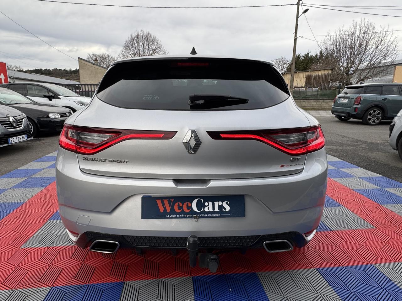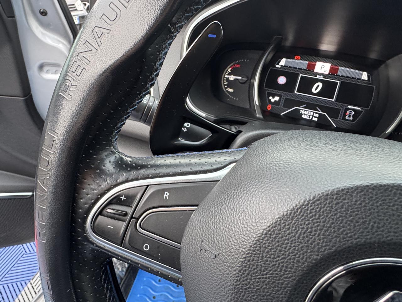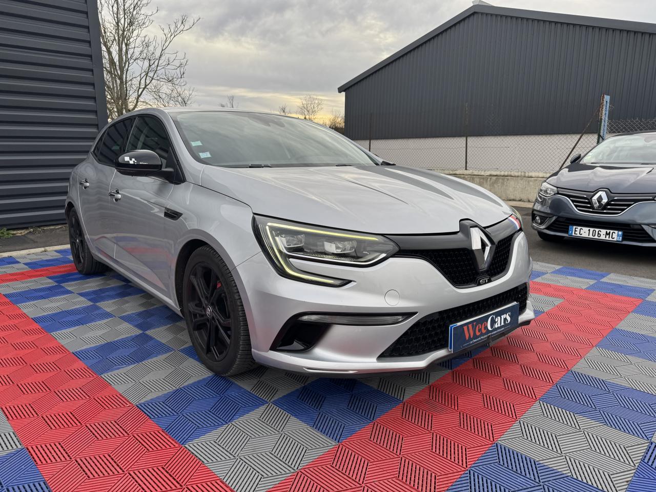 ABS avec aide au freinage d'urgenceAide au démarrage en côteAide au stationnement arrièreAirbags frontaux conducteur et passager adaptatifs (airbag passager déconnectable)Airbags latéraux (thorax / bassin) avantAirbags rideaux de têtes aux places avant et arrièreAlerte de franchissement de ligneAlerte de survitesse avec reconnaissance des panneaux de signalisationBanquette arrière rabattable 1/3-2/3Bouclier avant spécifique avec écopes intégrées et entrée d'air élargie (sans antibrouillard)Bouton d'activation RS DriveCapteur de toxicité avec recyclage d'airCarte Renault avec accès et démarrage mains-libres avec fermeture à l’éloignementChâssis et suspensions Renault Sport TechnologiesClimatisation automatique bi-zoneCommutation automatique des feux de croisement et de route, Light AssistCompteur digital TFT 7“ avec matrice couleurCondamnation automatique des ouvrants en roulantCondamnation centralisée des portesConsole centrale avec accoudoir et compartiment de rangementContrôle dynamique de trajectoire (ESC)Détecteur de pluie et allumage automatique des projecteursDouble canules d'échappement intégrées au diffuseurEclairage d‘ambiance sur les panneaux de portes avant et arrièreEclairage plafonnier avant et arrière à LEDFeux de jour à guide de lumière LED et effet 3DFeux de jour arrière LED 3D Edge LightFrein de parking assistéGrille de calandre nid d'abeilles noire avec badge GTJantes alliage 18“ Magny-CoursKit de réparation des pneusLécheurs de vitres chromésLève vitres avant électriques à impulsionLève-vitres arrière électriques impulsionnelsMultichange down (système de rétrogradage avancé)Pack CityPack R-Link 2Pack SécuritéPalettes au volant en aluminiumPédalier en aluminiumPoignées de porte avec jonc chroméPrise 12 V à l'arrièrePrise 12V à l'avantProgramme Eco-modeProjecteurs avant Full Led Pure VisionRégulateur et limiteur de vitesseRenault Multi-SenseRépétiteurs de clignotant à LED intégrés aux rétroviseursRétroviseur intérieur électrochromeRétroviseurs Dark MetalRétroviseurs extérieurs électriques et dégivrantsSellerie alcantara GT noire & surpiqûres bleuesSéquence d‘accueil à l‘approche du véhicule avec éclairage de signature lumineuse et éclairage de solSeuils de portes chromésSiège conducteur avec réglage lombaireSiège conducteur réglable en hauteurSiège passager réglable en hauteurSièges avant chauffantsSièges sport GT avec appuis-têtes intégrésSignature latérale et arrière GT/Renault SportSystème 4-control (Chassis à 4 roues directrices)Système de fixations ISOFIX aux 2 places latérales arrièreSystème de freinage spécifique GTSystème de Launch Control (Aide aux départs arrêtés)Système de surveillance de pression des pneusVitres latérales et lunette arrière surteintéesVolant et pommeau de levier de vitesse en cuir Nappa perforé GTVolant réglable en hauteur et en profondeur