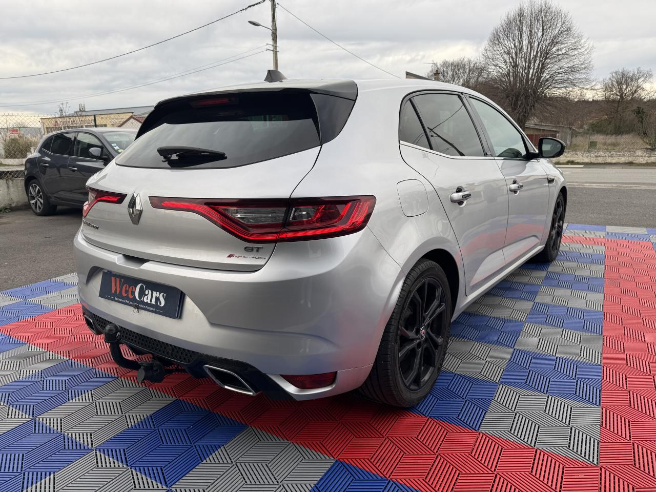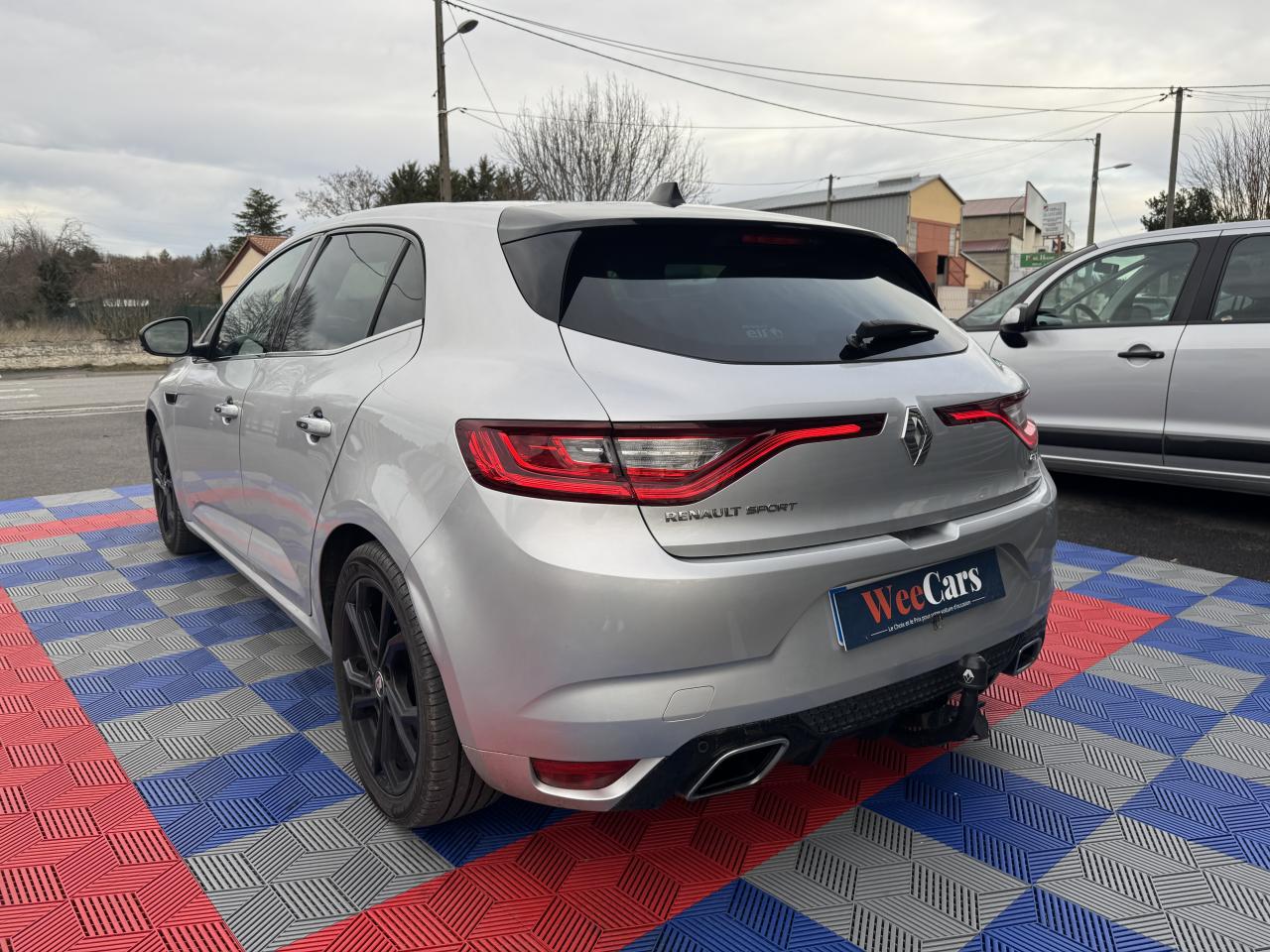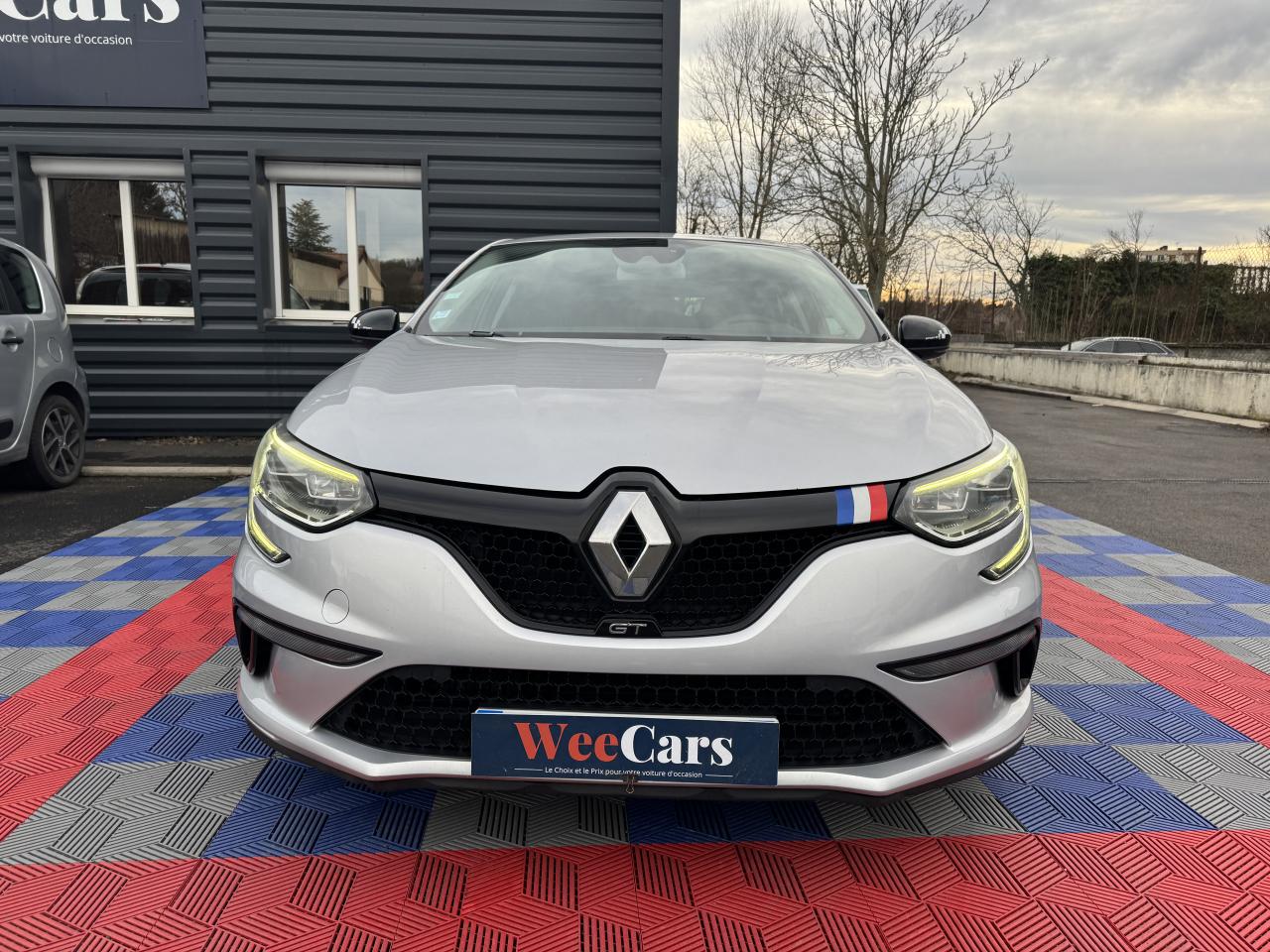 ABS avec aide au freinage d'urgenceAide au démarrage en côteAide au stationnement arrièreAirbags frontaux conducteur et passager adaptatifs (airbag passager déconnectable)Airbags latéraux (thorax / bassin) avantAirbags rideaux de têtes aux places avant et arrièreAlerte de franchissement de ligneAlerte de survitesse avec reconnaissance des panneaux de signalisationBanquette arrière rabattable 1/3-2/3Bouclier avant spécifique avec écopes intégrées et entrée d'air élargie (sans antibrouillard)Bouton d'activation RS DriveCapteur de toxicité avec recyclage d'airCarte Renault avec accès et démarrage mains-libres avec fermeture à l’éloignementChâssis et suspensions Renault Sport TechnologiesClimatisation automatique bi-zoneCommutation automatique des feux de croisement et de route, Light AssistCompteur digital TFT 7“ avec matrice couleurCondamnation automatique des ouvrants en roulantCondamnation centralisée des portesConsole centrale avec accoudoir et compartiment de rangementContrôle dynamique de trajectoire (ESC)Détecteur de pluie et allumage automatique des projecteursDouble canules d'échappement intégrées au diffuseurEclairage d‘ambiance sur les panneaux de portes avant et arrièreEclairage plafonnier avant et arrière à LEDFeux de jour à guide de lumière LED et effet 3DFeux de jour arrière LED 3D Edge LightFrein de parking assistéGrille de calandre nid d'abeilles noire avec badge GTJantes alliage 18“ Magny-CoursKit de réparation des pneusLécheurs de vitres chromésLève vitres avant électriques à impulsionLève-vitres arrière électriques impulsionnelsMultichange down (système de rétrogradage avancé)Pack CityPack R-Link 2Pack SécuritéPalettes au volant en aluminiumPédalier en aluminiumPoignées de porte avec jonc chroméPrise 12 V à l'arrièrePrise 12V à l'avantProgramme Eco-modeProjecteurs avant Full Led Pure VisionRégulateur et limiteur de vitesseRenault Multi-SenseRépétiteurs de clignotant à LED intégrés aux rétroviseursRétroviseur intérieur électrochromeRétroviseurs Dark MetalRétroviseurs extérieurs électriques et dégivrantsSellerie alcantara GT noire & surpiqûres bleuesSéquence d‘accueil à l‘approche du véhicule avec éclairage de signature lumineuse et éclairage de solSeuils de portes chromésSiège conducteur avec réglage lombaireSiège conducteur réglable en hauteurSiège passager réglable en hauteurSièges avant chauffantsSièges sport GT avec appuis-têtes intégrésSignature latérale et arrière GT/Renault SportSystème 4-control (Chassis à 4 roues directrices)Système de fixations ISOFIX aux 2 places latérales arrièreSystème de freinage spécifique GTSystème de Launch Control (Aide aux départs arrêtés)Système de surveillance de pression des pneusVitres latérales et lunette arrière surteintéesVolant et pommeau de levier de vitesse en cuir Nappa perforé GTVolant réglable en hauteur et en profondeur