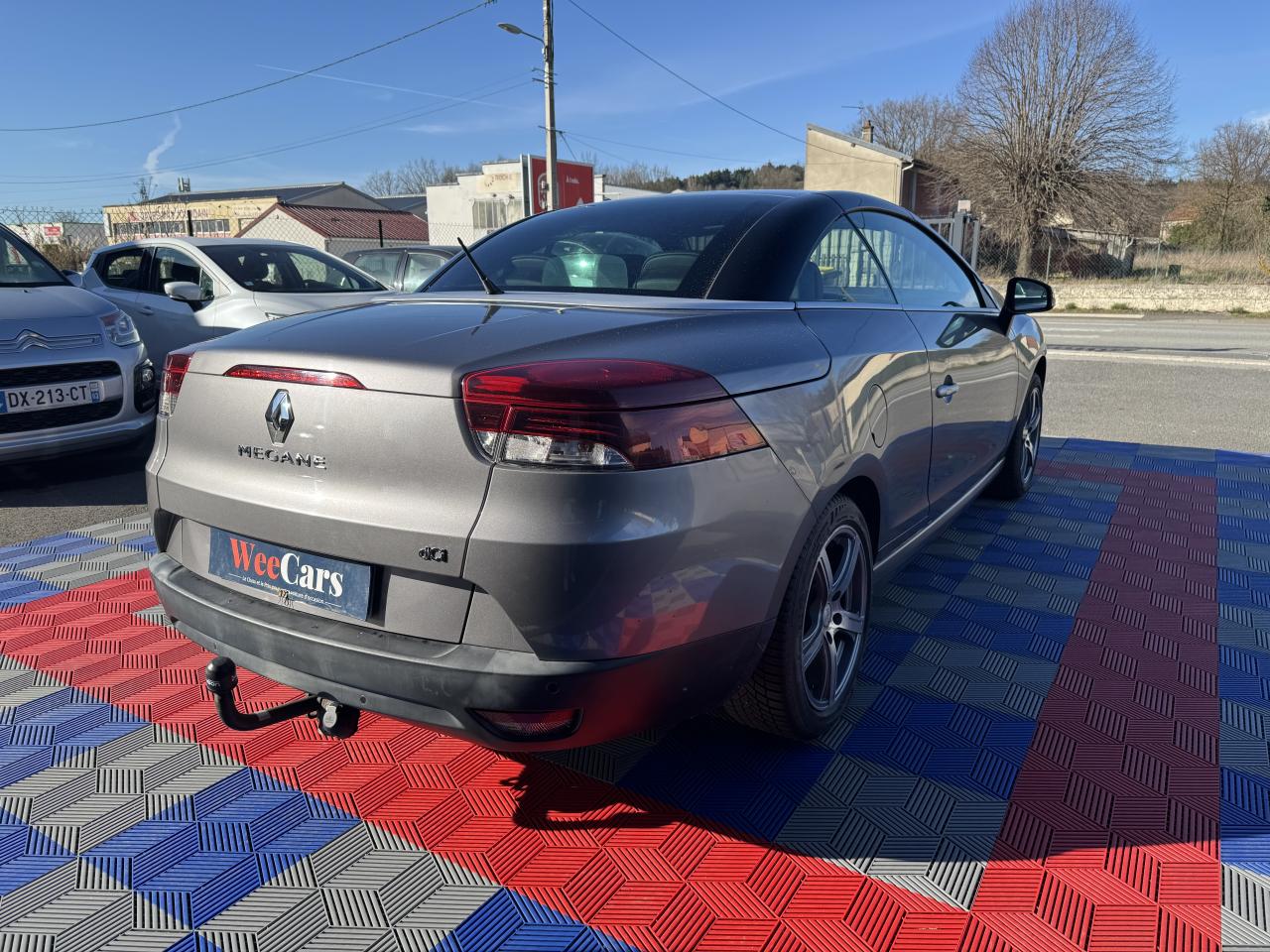 6 Airbags (frontaux, latéraux tête/thorax/bassin et anti-sous marinage)ABS avec aide au freinage d'urgenceAide au stationnement arrièreAllumage automatique des projecteursArceaux de sécurité à déploiement automatiqueBoîte à gants avec condamnation centralisée par carteCarte Renault, accès et démarrage « mains-libres »Climatisation régulée bi-zone et filtre d'habitacleContrôle dynamique de trajectoire (ESP)Essuie-glace à déclenchement automatiqueJantes alliage 17''Lève-vitres avant et arrière électriques avec fonctionnalité "Grand Air"Projecteurs antibrouillardRadioSat "3D Sound By Arkamys" Bluetooth, CD MP3, bornier audio intégréRégulateur et limiteur de vitesseRétroviseurs extérieurs électriques et dégivrantsSellerie Ted carbone foncé + surpiqûresSièges avant réglables en hauteurSystème "Easy-Entry" d'accès aux places arrière (avec mémoire de réglages)Système de fixation ISOFIX pour siège enfant aux places passager avant et latérales arrièreToit en verre panoramique, rétractable dans le coffreVitre coupe-vent (intégrée entre les appuis-tête arrière)Vitres avant avec système Short DropVolant et pommeau de levier de vitesse en cuirVolant réglable en hauteur et en profondeur