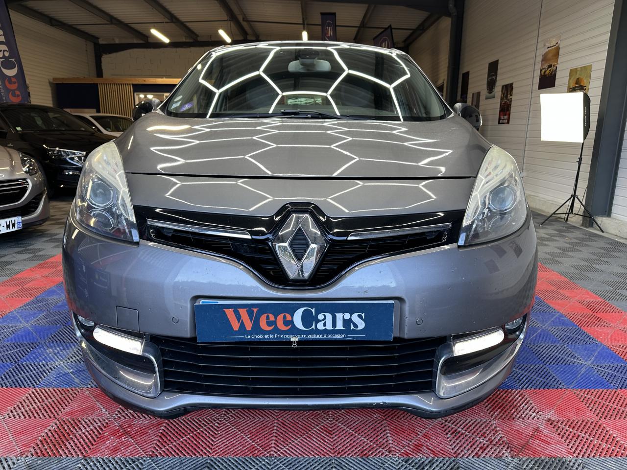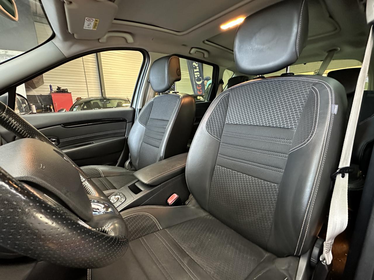 3 appuie-tête arrière réglables en hauteurABS avec aide au freinage d'urgenceAide au stationnement avant/arrièreAirbags frontaux , latéraux et rideauxAppuie-tête à l'avant, réglables en hauteurBadge extérieur BoseBaguettes de protection latérale : Ton caisseBose Sound System (CD MP3, Bluetooth, prises USB/Jack)Caméra de reculCarte Renault, accès et démarrage « mains-libres »Ceinture de sécurité Gris ArgentClignotant à impulsionClimatisation automatique bi-zoneConsole centrale de rangement coulissante avec accoudoir coulissantContrôle dynamique de trajectoire (ESP) avec aide au démarrage en côteDétecteur de pluie et allumage automatique des projecteursDirection à assistance variable électriqueFeux de jour à LEDFrein de parking assistéHarmonie Carbone FoncéJantes alliage 17" AKIHIRO Noires diamantéesJoncs Chrome sur protections latérales de caisseKit de réparation de pneusLève-vitres arrière électriquesLève-vitres avant électriquesMiroirs de courtoisie éclairésOrdinateur de bordPack FamillePack R-Link EvolutionPrises 12 volts en rangs 1 et 2Projecteurs antibrouillardRange-lunettes côté conducteurRégulateur et limiteur de vitesseRétroviseur intérieur électrochromeRétroviseurs extérieurs couleur carrosserieRétroviseurs extérieurs électriques et dégivrantsRétroviseurs extérieurs rabattables électriquementSellerie TEP/tissu carbone foncéSeuils de portes aluminium avec logo "Bose"Siège central arrière avec mise en tabletteSiège conducteur à réglage en hauteurSiège conducteur à réglage lombaireSiège passager réglable en hauteurSystème de fixation ISOFIX 3 points pour siège enfant aux 3 places arrièreSystème de surveillance de pression des pneusTableau de bord à écran couleur personnalisable à technologie TFTVitres latérales et lunette arrière surteintéesVolant et pommeau de levier de vitesses en cuirVolant réglable en hauteur et en profondeur