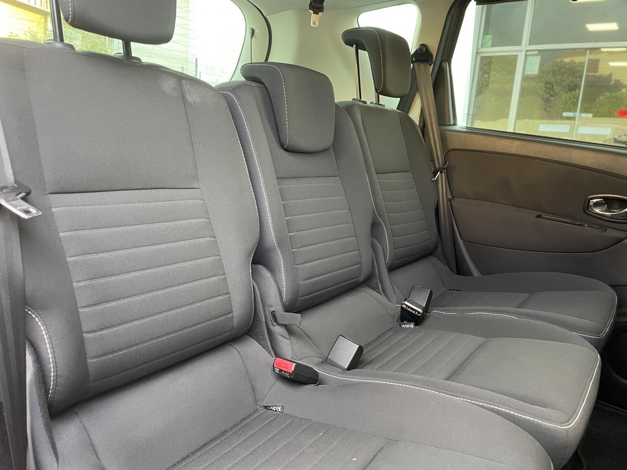 3 appuie-tête arrière réglables en hauteur3 sièges de 2éme rangée, individuels, amovibles, avec dossier inclinable et rabattableABS avec aide au freinage d'urgenceAérateurs aux places arrièresAide au démarrage en côteAirbags frontaux conducteur et passager adaptatifs (airbag passager déconnectable)Airbags latéraux (thorax / bassin) avantAirbags rideaux de têtes aux places avant et arrièreAllumage automatique des feux de détresseAppuie-tête à l'avant, réglables en hauteurBadge limitedBaguettes de protection latérale : Ton caisseCarte Renault, accès et démarrage « mains-libres »Clignotant à impulsionClimatisation automatique bi-zoneCondamnation automatique des ouvrants en roulantContrôle électronique de trajectoire (ESC)Coques de rétroviseurs noir étoiléDétecteur de pluie et allumage automatique des projecteursDirection à assistance variable électriqueEnjoliveur latéraux de face avant chrome satinéFeux de jour à LEDHarmonie Carbone FoncéJantes alliage 17" SARI Noires diamantéesKit de réparation de pneusLève vitres avant électriques à impulsionLève-vitres arrière électriques impulsionnelsOrdinateur de bordPack CityPack ConfortPack FamillePack TomTomPrises 12 voltsProjecteurs antibrouillardR-Plug&Radio+ (CD MP3, Bluetooth, Plug & Music)Rangement central bas entre sièges avantRégulateur et limiteur de vitesseRétroviseurs extérieurs électriques et dégivrantsSellerie Spécifique LimitedSeuil de porte LimitedSiège central arrière avec mise en tabletteSiège conducteur à réglage en hauteurSiège conducteur à réglage lombaireSiège passager réglable en hauteurSystème de fixation ISOFIX 3 points pour siège enfant aux places arrièreSystème de surveillance de pression des pneusTableau de bord à écran couleur personnalisable à technologie TFTVitres latérales et lunette arrière surteintéesVolant et pommeau de levier de vitesses en cuirVolant réglable en hauteur et en profondeur