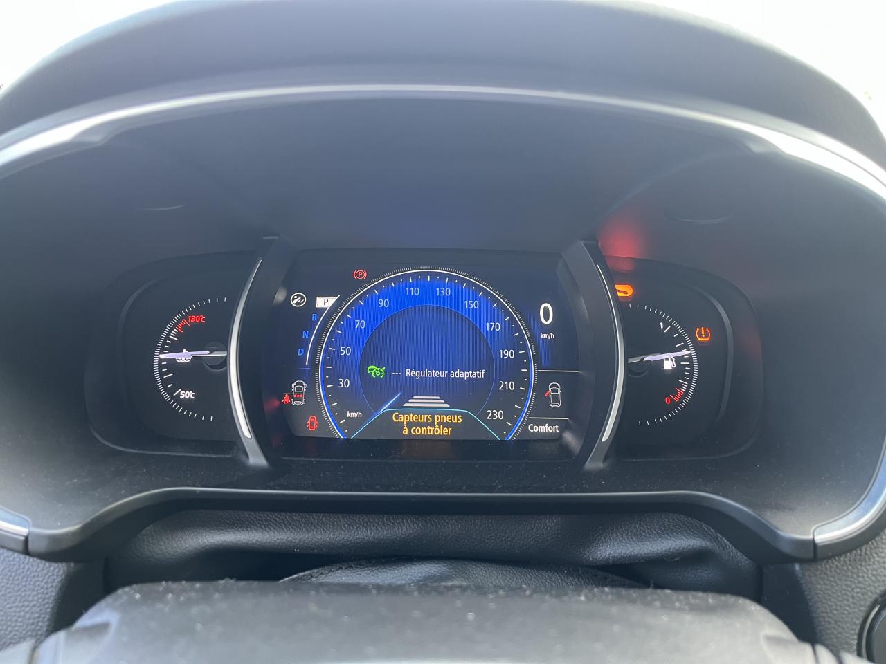 1 prise jack aux places avantABS avec aide au freinage d'urgenceAérateurs aux places arrièresAffichage de la température extérieureAide au démarrage en côteAirbags frontaux conducteur et passager adaptatifs (airbag passager déconnectable)Airbags latéraux (thorax / bassin) avantAirbags rideaux de tête aux places avant et arrièreAlerte d'oubli de ceinture de sécuritéAmbiance lumineuseBanquette 60/40 fractionnable avec accoudoir et trappe à skisCapteur de toxicitéCarte Renault mains-libres avec allumage des feux à l'approcheClimatisation automatique bi-zoneCompartimentage de coffre verticalCompteur digital TFT 7“Condamnation automatique des ouvrants en roulantCondamnation centralisée des portes à distanceContrôle dynamique de trajectoire (ESC)Détecteur de pluie et allumage automatique des projecteursEco driving (Monitoring, Scoring, Coaching et conseils)Energy Smart Management: récupération d'énergie au freinageFeux arrière avec signature lumineuse à LED à technologie EDGE et effet 3D, clignotants et feux stop à LEDFeux de jour à LEDFiltre combinéFixations Isofix et i-Size 2 sièges arrièreFollow-me homeFrein de parking assistéJantes alliage 17“ BayadèreKit gonflage de réparationLève vitres avant électriques à impulsionLève-vitres arrière électriques impulsionnelsMiroirs de courtoisie éclairésOrdinateur de bordPack Aides à la conduitePack ProtectionPack Renault R-Link 2 avec écran 7"Plafonnier éclairage LEDPlanche de bord noirePoches aumônières au dos des sièges avantPoignées de portes chroméesPrises 12 V à l'avant et à l'arrièreProjecteurs antibrouillard avec enjoliveurs chromésRails de toit en aluminiumRangement bouteille réfrigéré en consoleRangement console sous accoudoir avec plateau amovibleRenault Multi-SenseRétroviseur intérieur électrochromeRétroviseurs extérieurs électriques, dégivrants et rabattables électriquementSellerie Tissu noirSiège conducteur mécanique réglable en hauteur et à réglage lombaire électrique 4 voies massantSiège passager avec réglage en hauteur manuel et réglage lombaire manuelSon Arkamys 8 haut-parleursSystème d'aide au parking avant et arrièreSystème de surveillance de la pression des pneumatiquesSystème Easy Break pour banquette arrièreSystème Stop & StartTendelet rétractable 2 positionsVolant cuir réglable en hauteur et profondeurVolant et pommeau de levier de vitesse en cuir