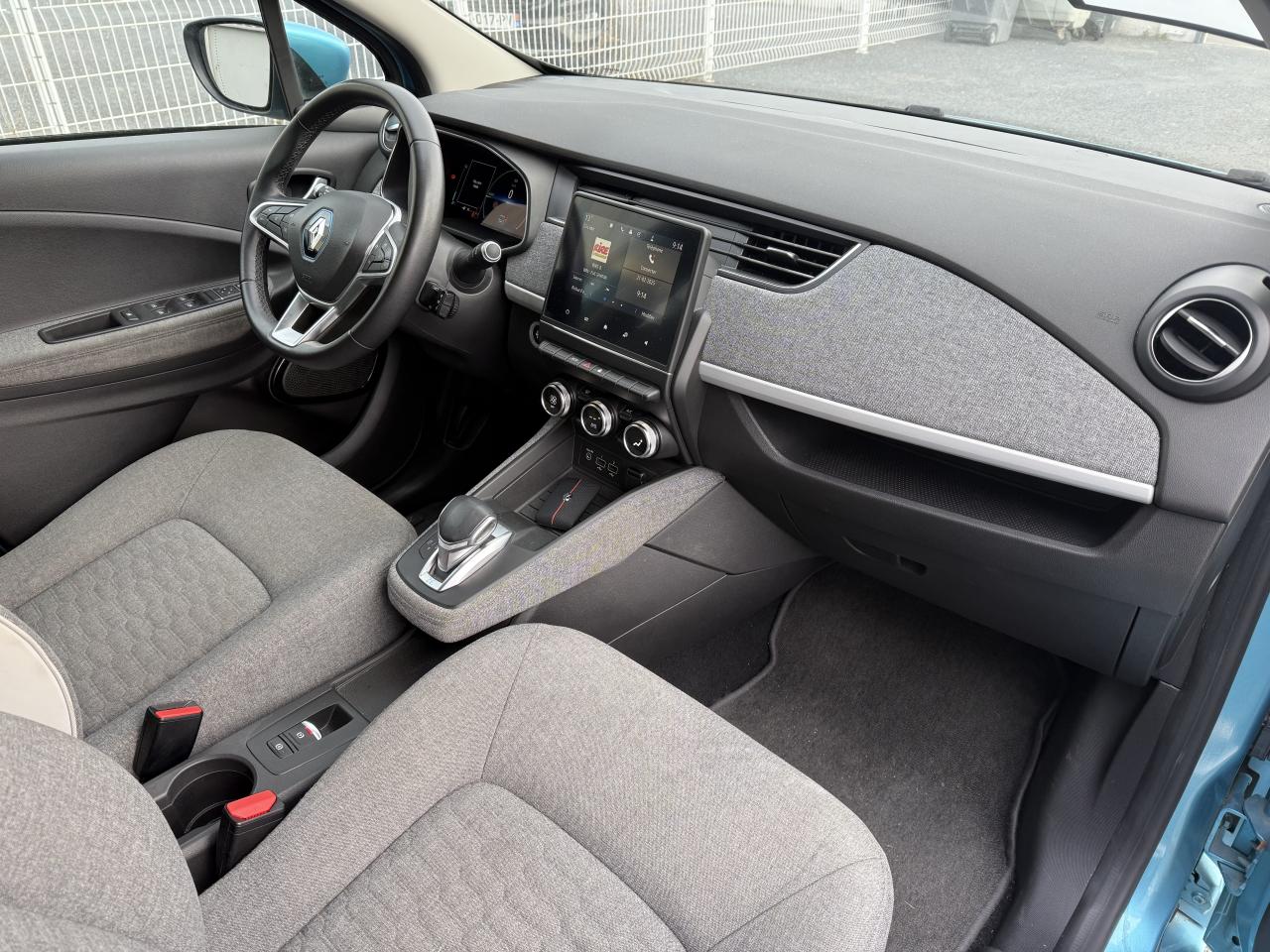 2 appuie-tête à l'arrière2 places avec fixation ISOFIX avec marquage et guidage2 prises USB et prise Aux-In3 appuie-tête arrière6 haut-parleursABS avec aide au freinage d'urgenceAide au démarrage en côteAirbags frontaux (passager déconnectable)Airbags latéraux avant tête/thoraxAlerte de franchissement de ligneAssistance au maintien de voieBandeau de planche de bord en tissu noirBanquette arrière rabattable 1/3-2/3BluetoothBoîte automatique à rapport unique (réducteur)Câble de recharge Flexi Charger (6,5 m) pour prise Green Up Access et prises domestiquesCarte Renault, accès et démarrage « mains-libres »Chargeur Caméléon adaptatif mono-triphasé jusqu’à 22 KWChargeur de smartphone par inductionClignotants défilants à l'arrièreClimatisation automatiqueContrôle dynamique de trajectoire (ESP) avec fonction antipatinage (ASR) et contrôle de sous-virage (CSV)Coques de rétroviseurs extérieurs, ton caisseEASY LINK, écran multimédia 7”, compatible Android Auto et Apple CarPlayEconomètreEssuie-glaces avant automatique avec détecteur de pluie et allumage automatique des feuxFeux arrière LEDFeux de jour à LED avec signature lumineuse en forme de "C"Fixations ISOFIX pour siège passagerFonction Auto-HoldFrein de parking automatiqueGestion automatique des feux de route /feux de croisementHarmonie noirJantes Alliage 16" ElectiveKit gonflage de réparationLève-vitres avant électriquesLevier de vitesse e-Shifter avec mode BLunette AR chauffantePneumatiques Michelin Primacy 4-EPoignées de portes ton caisseProgramme Eco-modeProjecteurs Full LEDRadio Numérique DABRangement bouteille 1,5 l dans portes avantReconnaissance des panneaux de signalisationRégulateur et limiteur de vitesseRétroviseur intérieur électrochromeRétroviseurs extérieurs électriques et dégivrantsSellerie en tissu recyclé RecytexServices connectés depuis l’application MY Renault: état de charge, préconditionnement de l’habitacle, planificateur de trajetSon de prévention piéton Z.E. VoiceSystème de surveillance de pression des pneusTableau de bord numérique 10’’ personnalisableVéhicule connecté 4G avec pack de données inclus pendant 3 ansVolant réglable en hauteur et en profondeurVolant simili-cuir