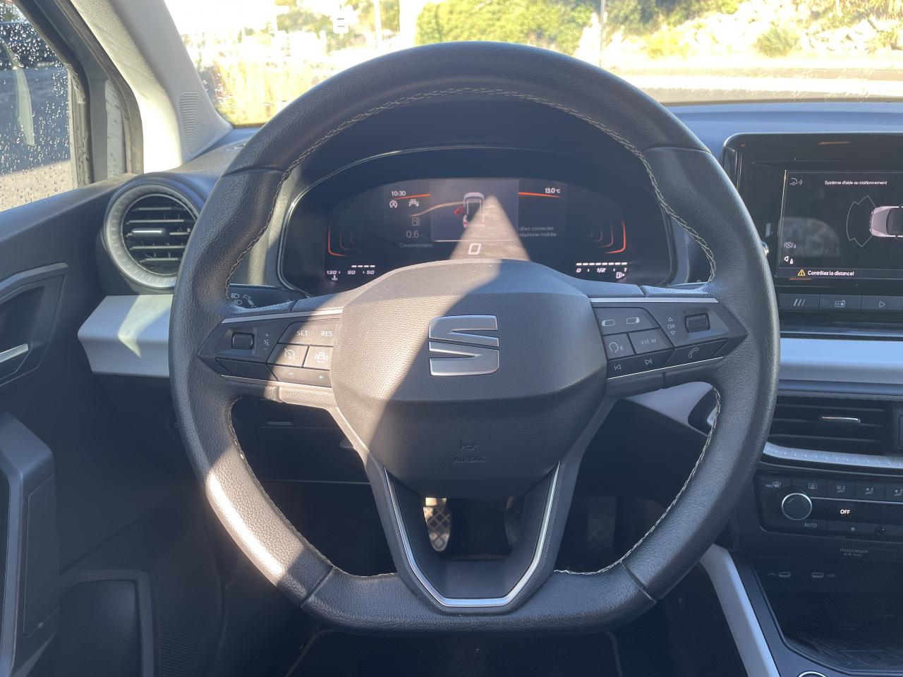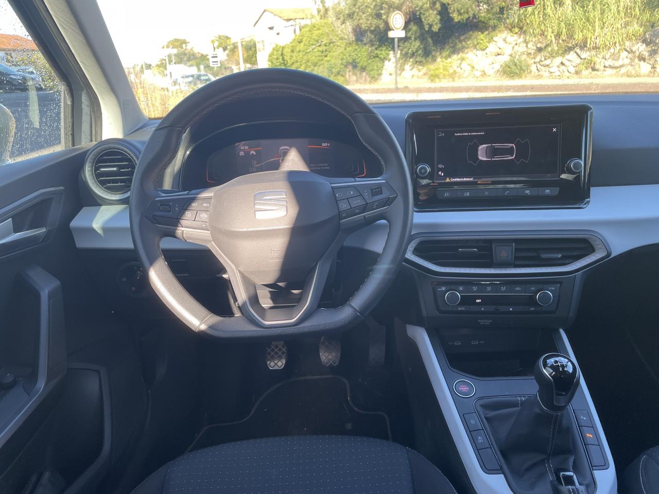 2 Fixations ISOFIX + Top-Tether à l'arrière pour ancrage de sièges enfant2 lampes de lecture à l'avant2 prises USB-C, Bluetooth3 appuie-tête arrière4 vitres électriques à impulsion avec sécurité enfantABS électronique (système antiblocage des roues)Aide au démarrage en côte (HHC)Aide au maintien dans la voieAirbag passager déconnectableAirbags frontaux, latéraux et rideauxAnti-patinage électronique ASRAppel d'urgence - EcallAvertisseurs du non-bouclage des ceintures de sécurité avant et arrièreBanquette arrière rabattable 1/3-2/3Ceintures de sécurité à 3 points d'ancrageConsole centrale avec applications Gris NASAContrôle électronique de trajectoire (ESC)Couvre-coffre rabattableDesign "Streamline" sans feux antibrouillard à l'avantDétecteur de fatigueDétecteur de luminositéDétection de sous-gonflage des pneumatiquesDigital Cockpit : combiné d’instruments entièrement digital de 8”Eclairage d'ambiance intérieur LED blanc au niveau de la console centrale et du plancher avantEclairage de plaque d’immatriculation à LEDExit Assist - Assistance lors d'une sortie de place de stationnementFeux arrière LED avec signature lumineuse en triangleFront Assist avec détection des piétons et des cyclistesFull Link sans fil (Android Auto + Apple CarPlay)Garantie 2 ans, kilométrage illimitéInserts de custode en "X"Jantes alliage 17" URBAN DESIGNKit anti-crevaisonLimiteur de vitesseLogos "SEAT" satinés à l'avant, à l'arrière et sur le volantOrdinateur de bordPack SpringPack Vision +Pare-chocs dans la couleur de la carrosseriePare-soleil avec miroir de courtoisie, avec porte-carte côté conducteurPeinture Bleu FjordPlanche de bord moussée avec insert Gris NASAPlancher de coffre à double fondPoignées de portes et rétroviseurs extérieur couleurs carrosserieProjecteurs Full LED avec signature lumineuse en triangleProtection antidémarrage électroniqueRadio Numérique DABRails de toit longitudinauxRégulateur de vitesseRétroviseurs réglables électriquement avec rappels latéraux de clignotant intégrésSEAT ConnectSellerie textile grise COMO à poisSide Assist - Système de détection des angles mortsSiège conducteur réglable en hauteurSièges confortSignature "Arona" manuscrite sur le hayonSystème d'info-divertissement MediaSystem+ avec écran tactile 8,25"Tapis de sol textile à l'avant et à l'arrièreVerrouillage centralisé, avec 2 clés pliantes radiocommandéesVolant sport cuir multifonction à méplat
