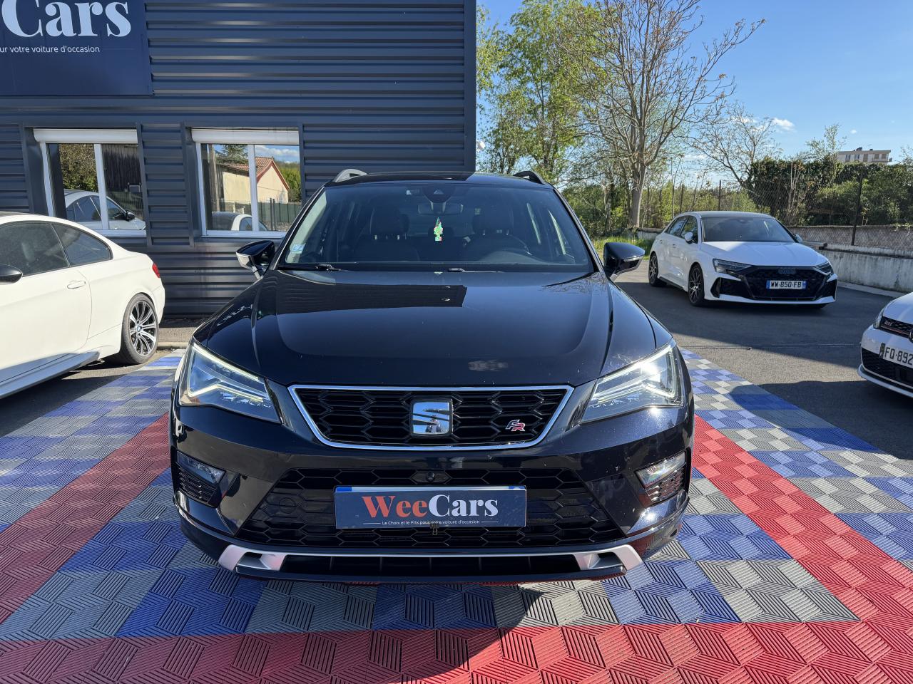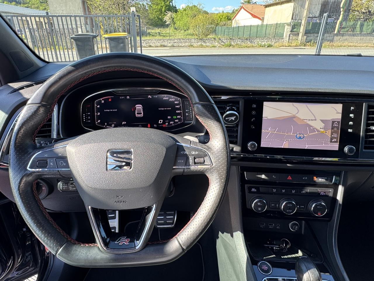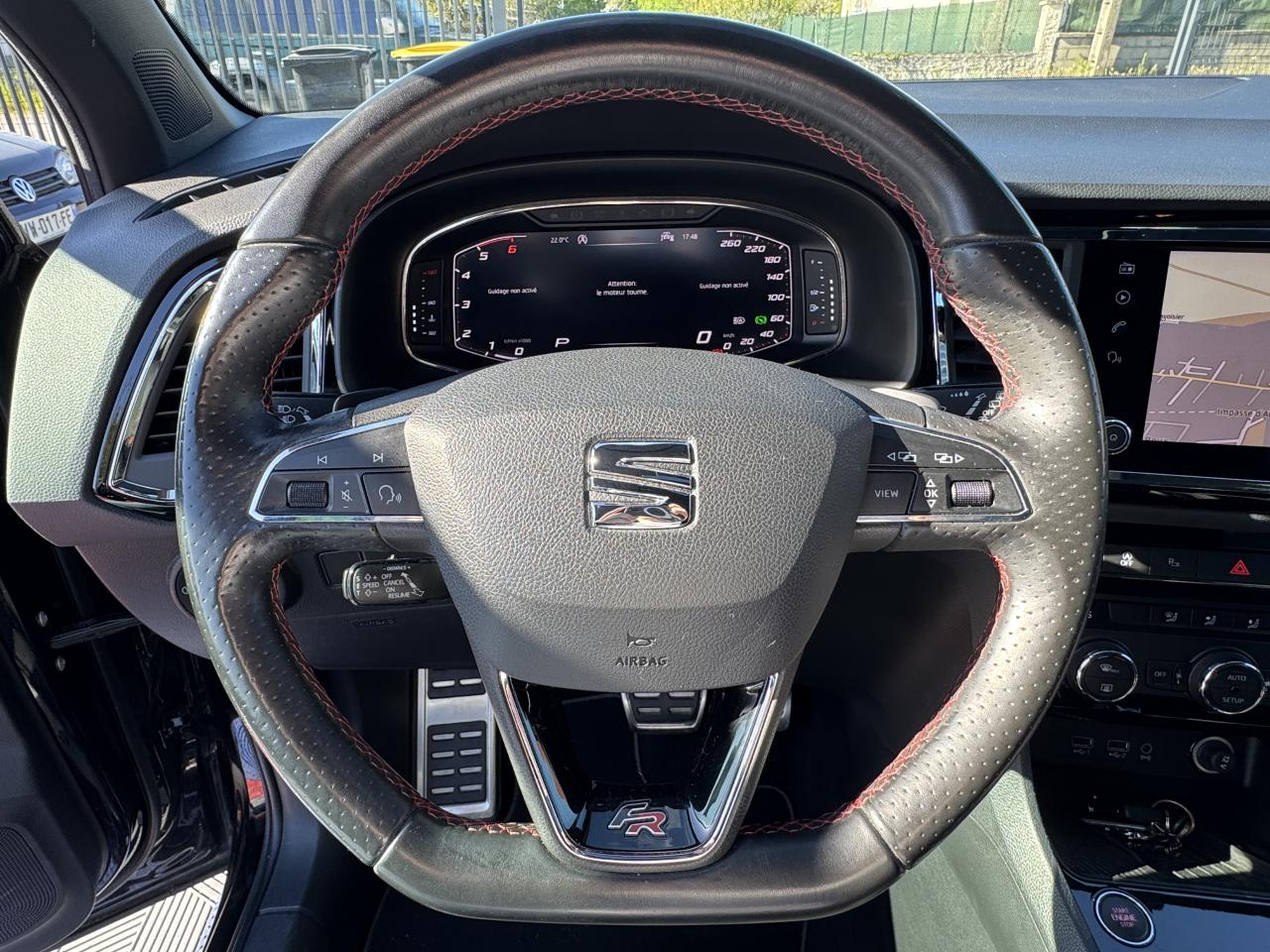 2 Fixations ISOFIX + Top-Tether à l'arrière pour ancrage de sièges enfant2 prises USB à l'arrière avec filet de rangement pour téléphone mobile4 oeilletons de fixation dans le coffreAbaissement automatique du rétroviseur extérieur passager en marche arrièreABS électronique (système antiblocage des roues)Accoudoir central arrière avec porte-gobeletAccoudoir central avant avec compartiment de rangementAccoudoir central avant réglable en hauteurAccoudoir central réglable en profondeurActivation automatique des feux de détresse en cas de freinage d'urgenceAffichage de la périodicité d'entretienAide au démarrage en côte (HHC)Airbag genoux conducteurAirbags frontaux conducteur et passager (déconnectable côté passager)Airbags latéraux avant tête/thoraxAlerte de non-bouclage des ceintures à l'arrièreAlerte de non-bouclage des ceintures à l'avantAlerte de perte de pression des pneumatiquesAntenne de toit « aileron de requin »Anti-patinage électronique ASRAssistance au freinage d'urgenceAumônières au dos des sièges avantAvertisseur sonore et témoin d'oubli du port de la ceinture de sécurité à l'avantBanquette arrière rabattable en 2 parties asymétriquesBarre stabilisatrice à l'avantBeats audio (Amplificateur de 300W, 9 haut-parleurs et un caisson de basse haut de gamme)Boîte à gantsCalandre Noir PianoCaméra de recul incluant l'aide au stationnement arrièreCeintures de sécurité avant trois points à enrouleur avec prétensionneurCiel de pavillon noirClimatisation automatique Climatronic bi-zone avec système Pure AirCombiné d'instruments avec tachymètreConnectivity Box avec chargeur à inductionConsole centrale, volant et aérations avec applications chroméesCouvre-coffre rabattableDétecteur de fatigueDétecteur de pluie et allumage automatique des projecteursDéverrouillage du hayon de l'intérieur (électrique)Différentiel XDSDigital Cockpit : combiné d’instruments digital haute résolution couleur de 10,25"Direction assistée électromécanique asservie à la vitesseEclairage d'intérieur Advanced ambient light (8 ambiances)Eclairage du coffreFeux arrière à technologie LEDFilet de rangement pour smartphone à l'arrièreFrein de parking électriqueFull Link (MirrorLink + Android Auto + Apple CarPlay)Garantie 2 ans, kilométrage illimitéGPS Europe avec écran tactile 8'',Bluetooth, lecteur CD/MP3, prise USB, Aux-In et 2 lecteurs de carte SDIndicateur de changement de rapport de vitesseJantes alliage 19’’ FR MachinedLampes de lecture à l'avant et à l'arrièreLimiteur de vitesseMolette Driving Experience avec direction progressiveOrdinateur de bord avec affichage couleur 3,5"Palettes de changement de rapportsPare-chocs arrière avec diffuseur sport couleur aluminiumPare-chocs avant sport avec grille de calandre Noir Piano et logo FRPare-soleil avec miroir de courtoisie éclairéPare-soleil conducteur avec pochette porte-cartesPassages de roues et jupes latérales couleur carrosseriePédalier Sport AluminiumPhares avant antibrouillard avec fonction ''Corner-light''Poignées de portes et rétroviseurs extérieur couleurs carrosseriePommeau de levier de vitesses en cuirPorte gobelets avantPrise 12V à l'avantProjecteurs Full LEDProtection antidémarrage électroniqueProtection de pare-chocs avant et arrière NoirRadio Numérique DABRails de toit et entourage de vitre noirsRails de toit longitudinauxRéglage lombaire des sièges avantRégulateur de vitesseRégulation adaptative du chassis DCCRétroviseur intérieur électrochrome sans contourRétroviseurs extérieurs dégivrants et rabattables électriquementRétroviseurs réglables électriquement avec rappels latéraux de clignotant intégrésRevêtement de montants de portières Noir PianoRoue de secours taille réduite et kit changement de roue (cric, outils)Sellerie en suédine noire / textile noir Nora FR / similicuir noir TitaneSeuils de porte avant FR en aluminium rétro-éclairésSiège conducteur réglable en hauteurSièges ergonomiquesSortie d'échappement double chroméeSpots de lecture à l'avantSystème d'accès et de démarrage sans clé Keyless AccessSystème de déverrouillage rapide de la banquette arrièreSystème de surveillance périmétrique "Front Assist" avec freinage d'urgence en villeSystème Start/ Stop avec récupération d'énergie de freinageTableau de bord noir Titane avec insert noir laquéTapis de sol textile à l'avant et à l'arrièreTechnologie WLANTop view caméra 360°Verrouillage centralisé, avec 2 clés pliantes radiocommandéesVide-poches sous siège avantVirtual Pedal : ouverture mains-libres du coffre à bagages incluant le Hayon de coffre à ouverture et fermeture électriquesVitres arrière et lunette arrière surteintées à 65%Vitres avant et arrière électriques à impulsion avec verrouillageVolant cuir multifonctions réglable en hauteur et profondeurWelcome light