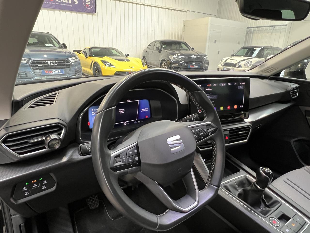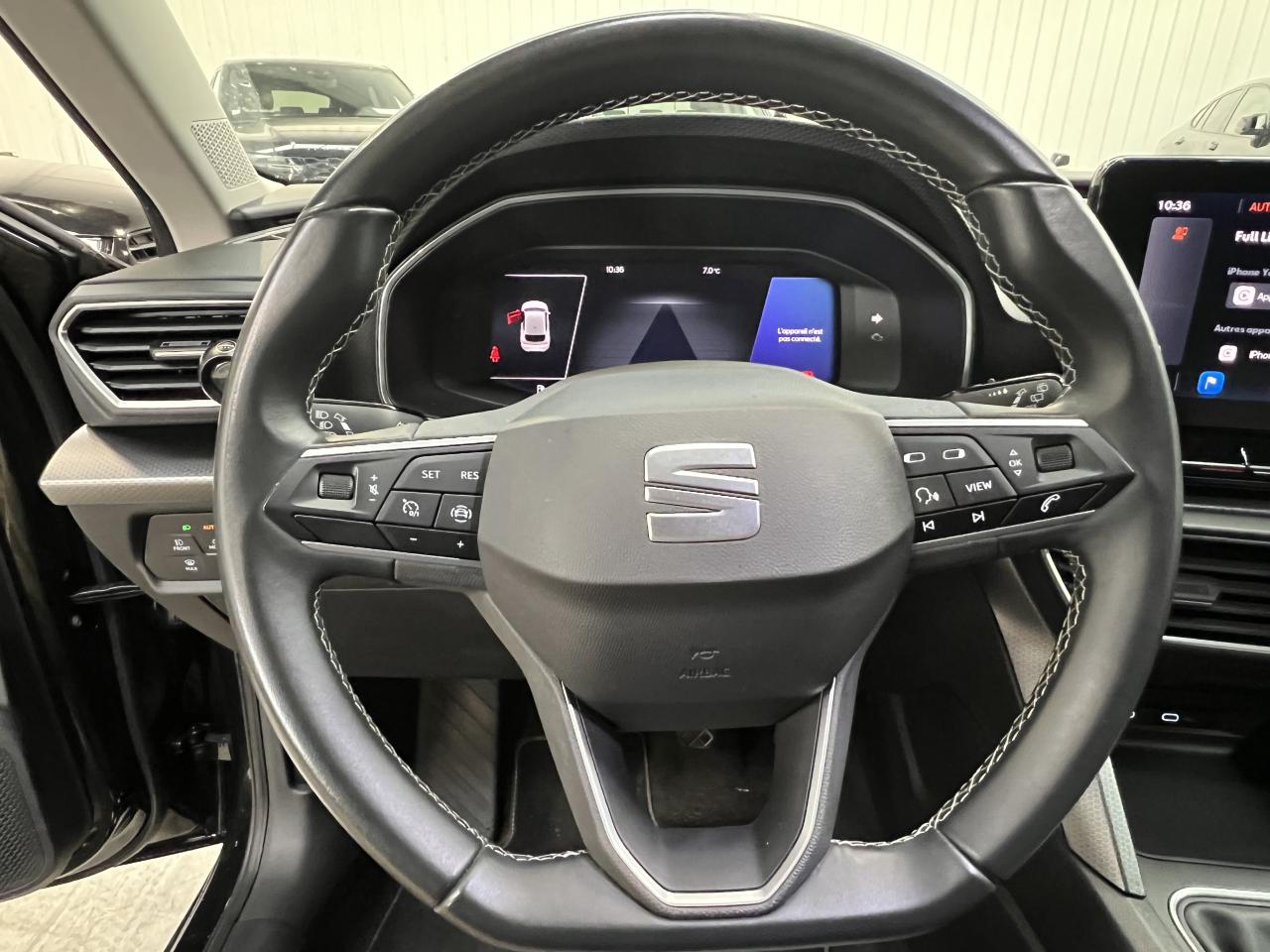 2 Prises USB C à l'arrière2 Prises USB C à l'avant6 airbags (frontaux, latéraux, rideaux)ABS et ASRAccoudoir central avantAide au stationnement arrièreAlerte de non-bouclage des ceintures à l'avantBanquette arrière rabattable 1/3-2/3BluetoothBouton de démarrage Kessy GoCaméra de reculClimatronic 3 zonesCrochets d'arrimage dans le coffreDésactivation de l'airbag du passager avantDigital Cockpit : combiné d’instruments digital haute résolution couleur de 10,25"Eclairage intérieur à LEDESC avec alerte de pression des pneumatiquesEssuie-glaces avant automatique avec détecteur de pluie et allumage automatique des feuxFixation Isofix sur sièges arrièresFonction appel d'urgenceFrein à main électrique (aide au démarrage en côte intégrée)Front Assist avec détection des piétons et des cyclistesGarantie 2 ans, kilométrage illimitéIndicateur de changement de rapport de vitesseJantes en alliage 17" Flamingo, avec pneus 225/45 R17 91WLane Assist et détecteur de fatigueOrdinateur de bord 3,5'' avec affichage de la température extérieurePare-soleil avec porte-ticket coté conducteurPark Assist - Système d'aide active au stationnement en créneau et en bataillePoignées de portes et rétroviseurs extérieur couleurs carrosserieProjecteurs antibrouillard à LEDProjecteurs Full LED avec lumière d'approche projetant "Hola!" au sol et bandeau de LED arrière avec clignotants dynamiquesRadio Numérique DABRégulateur et limiteur de vitesseRétroviseur intérieur électrochromeRétroviseurs extérieurs électriques et dégivrantsSEAT ConnectSellerie tissu noir/grisSiège conducteur réglable en hauteurSièges confortSpots de lecture à l'avantSystème de navigation avec écran tactile 10'' et Full Link avec Apple CarPlay sans filTapis de solVerrouillage centralisé à distance à télécommande, avec verrouillage de la trappe à carburantVitres avant et arrière électriquesVolant cuir multifonction
