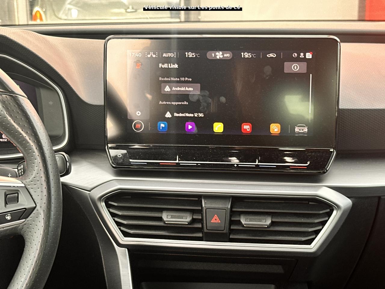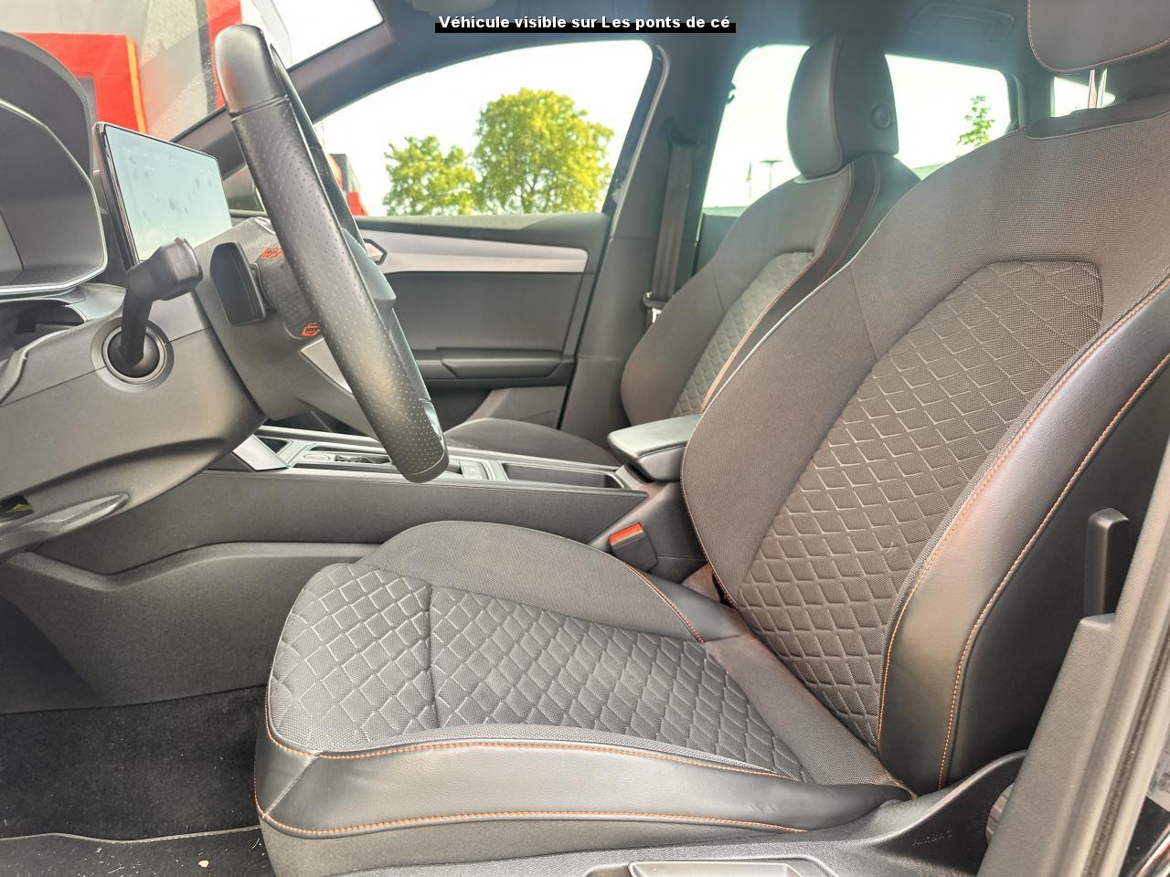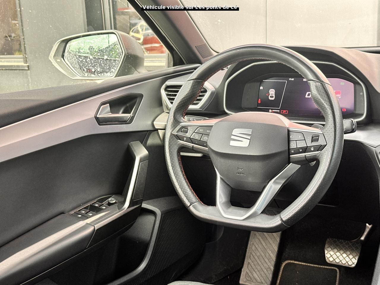 2 Prises USB C à l'arrière2 Prises USB C à l'avant6 airbags (frontaux, latéraux, rideaux)ABS et ASRAccoudoir central arrièreAccoudoir central avantAide au stationnement arrièreAide au stationnement avantAlerte de non-bouclage des ceintures à l'avantBanquette arrière rabattable 1/3-2/3BluetoothBouton de démarrage Kessy GoCalandre spécifique gris CosmoCaméra de reculCiel de pavillon noirClimatronic 3 zonesCommandes vocalesConnectivity Box avec chargeur à inductionCoques de rétroviseurs gris CosmoCrochets d'arrimage dans le coffreDésactivation de l'airbag du passager avantDiffuseur arrière spécifiqueDigital Cockpit : combiné d’instruments digital haute résolution couleur de 10,25"Eclairage d'ambiance intérieur à LED personnalisableESC avec alerte de pression des pneumatiquesEssuie-glaces avant automatique avec détecteur de pluie et allumage automatique des feuxFixation Isofix sur sièges arrièresFonction appel d'urgenceFrein à main électrique (aide au démarrage en côte intégrée)Front Assist avec détection des piétons et des cyclistesGarantie 2 ans, kilométrage illimitéIndicateur de changement de rapport de vitesseInserts gris aluminium sur la planche de bordInserts gris Cosmo dans le pare-chocs avantJantes en alliage 18" Terramar, avec pneus 225/40 R18 92YKeyless Access - entrée et démarrage mains libresLane Assist et détecteur de fatigueOrdinateur de bord 3,5'' avec affichage de la température extérieurePare-soleil avec porte-ticket coté conducteurPark Assist - Système d'aide active au stationnement en créneau et en bataillePeinture Rouge PassionProjecteurs antibrouillard à LEDProjecteurs Full LED avec lumière d'approche projetant "Hola!" au sol et bandeau de LED arrière avec clignotants dynamiquesRadio Numérique DABRéglages lombaires passagerRégulateur et limiteur de vitesseRétroviseur intérieur électrochromeRétroviseurs extérieurs électriques et dégivrantsRétroviseurs rabattables électriquementRoue de secours taille réduite 18''SEAT ConnectSEAT Drive Profile - Sélection du mode de conduiteSellerie en suédine noire avec surpiqûres rougesSeuils de portes rétroéclairésSiège conducteur à réglage électrique avec mémoireSièges SportSound System Beats AudioSpots de lecture à l'avantSystème de navigation avec écran tactile 10'' et Full Link avec Apple CarPlay sans filTapis de solVerrouillage centralisé à distance à télécommande, avec verrouillage de la trappe à carburantVitres arrière surteintéesVitres avant et arrière électriquesVolant cuir multifonctionVolant Spécifique avec logo FR