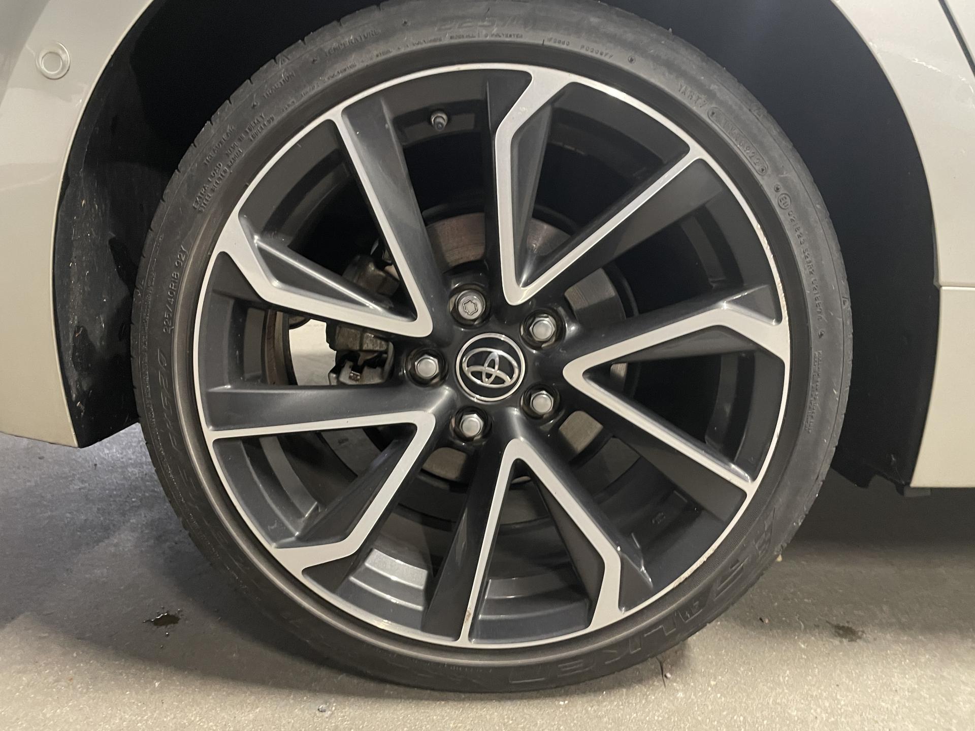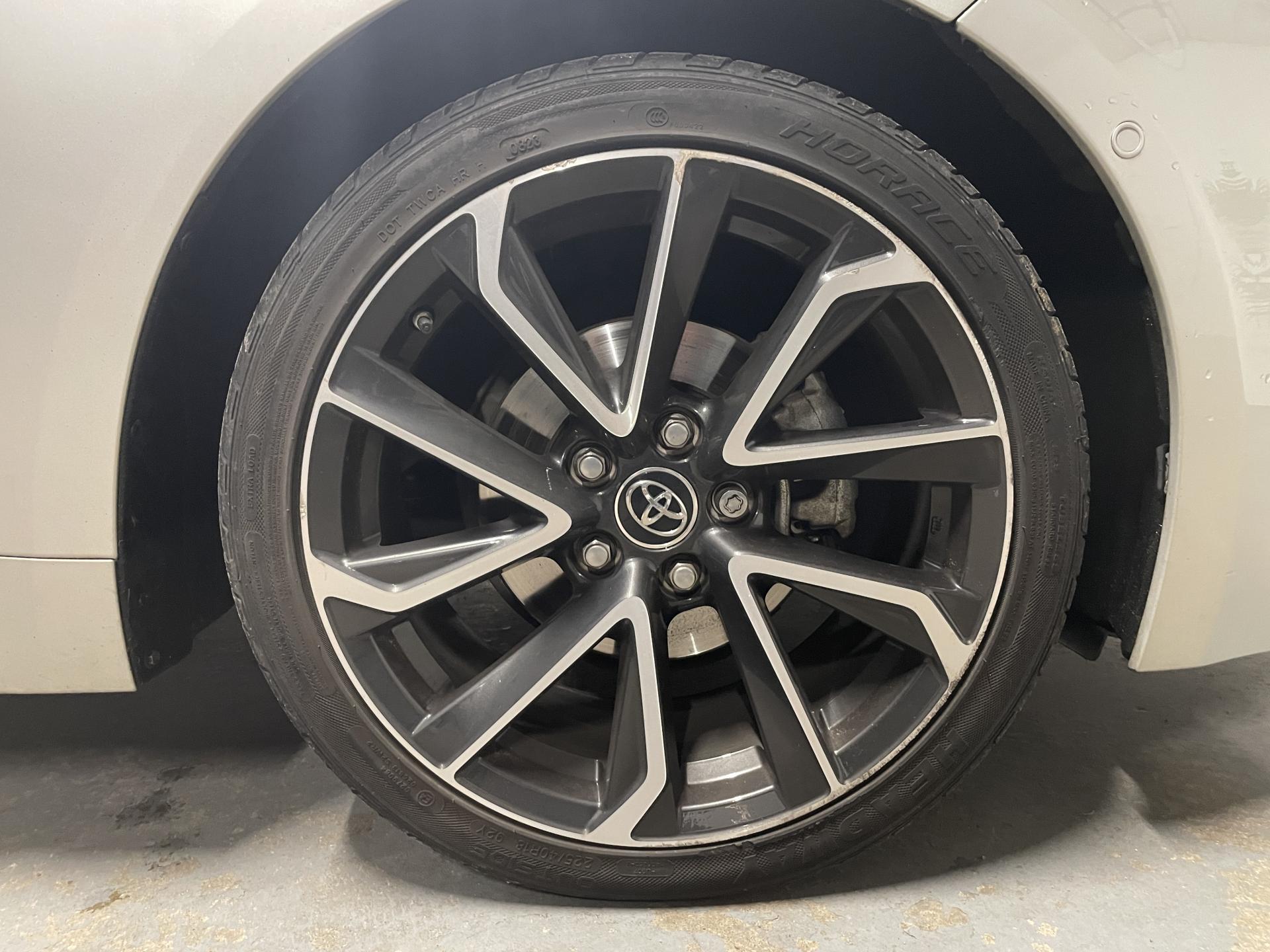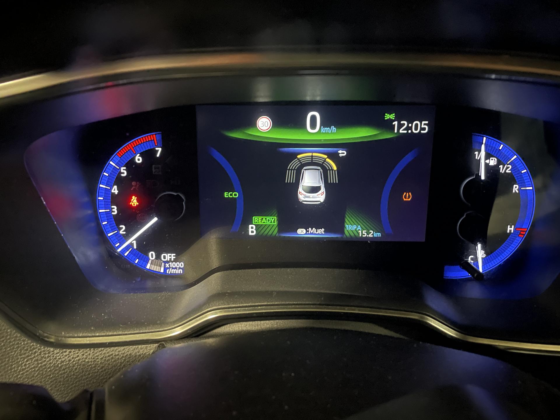 7 airbags (frontaux, latéraux, rideaux et protège-genoux conducteur)Accoudoir central arrièreAccoudoir central avant avec espace de rangementAérateurs arrièreAllumage automatique des projecteursAntenne de toit « aileron de requin »Appel d'urgence - EcallBaguettes latérales noiresBanquette arrière rabattable 40/60Calandre avant noir laqué avec inserts chromésCaméra de reculCarrosserie bi-ton avec rétroviseurs extérieurs, toit et piliers peints en noirClimatisation automatique bi-zoneConsole centrale Noir laquéContour et pommeau de levier de vitesses en cuirContreportes avec insert noir laquéDéconnexion de l'airbag passagerDémarrage sans clé (Smart Start)Eclairage d'ambiance intérieurEntourages de vitres noirsEssuie-glace à déclenchement automatiqueFeux de jour et feux arrière à LEDFrein de stationnement électriqueIndicateur de perte de pression des pneusJantes alliage 18’’ TyphonKit anti-crevaisonLimiteur de vitesseOrdinateur de bord avec écran couleur TFT 7’’ multifonctionOrnement de calandre avant noirPeinture métallisée bi-ton ou nacrée bi-tonPhares Bi-LEDPoignées de portes couleur carrosserieProjecteurs antibrouillardRétroviseur intérieur électrochromeRétroviseurs extérieurs à réglages électriques, dégivrants et rabattables automatiquementSélection du mode de conduite : Eco, normal, sport, EVSellerie mi-cuir noir type “Sport”Services connectés MyTSiège conducteur à réglage lombaire électriqueSiège conducteur réglable en hauteur manuellementSiège passager réglable en hauteur manuellementSièges avant chauffantsSystème "Follow me home" (phares à extinction temporisée)Système audio Toyota “Touch” avec écran couleur tactile 8” multifonction, système de téléphonie Bluetooth, connectique auxiliaire/USB et 6 haut-parleursSystème d'aide au démarrage en côte HACSystème d'aide au stationnement intelligent S-IPA avec radars avant et arrièreSystème d’ouverture/fermeture sans clé “Smart Entry”Système de contrôle de motricité (TRC) et de stabilité (VSC)Système de fixation ISOFIX aux places latérales arrièreSystème de freinage antiblocage (ABS) + BA + EBDSystème de navigation Toyota Touch & GoTapis de sol avant et arrière veloursToyota Safety Sense 2Vitres arrière et lunette arrière surteintéesVitres avant et arrière électriques à impulsion avec système ant-ipincementVolant multifonction gainé de cuir réglable en hauteur et en profondeur