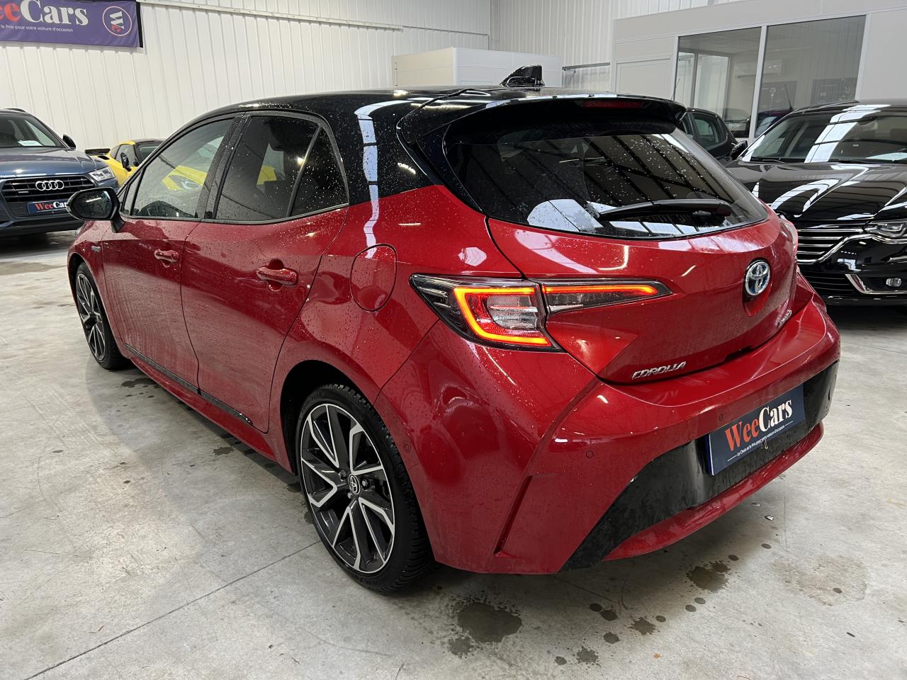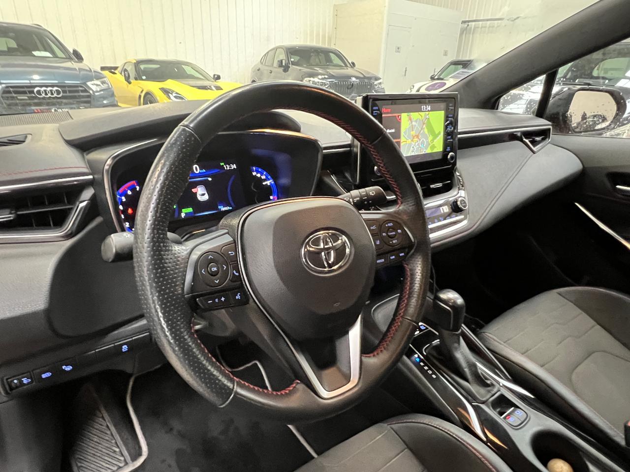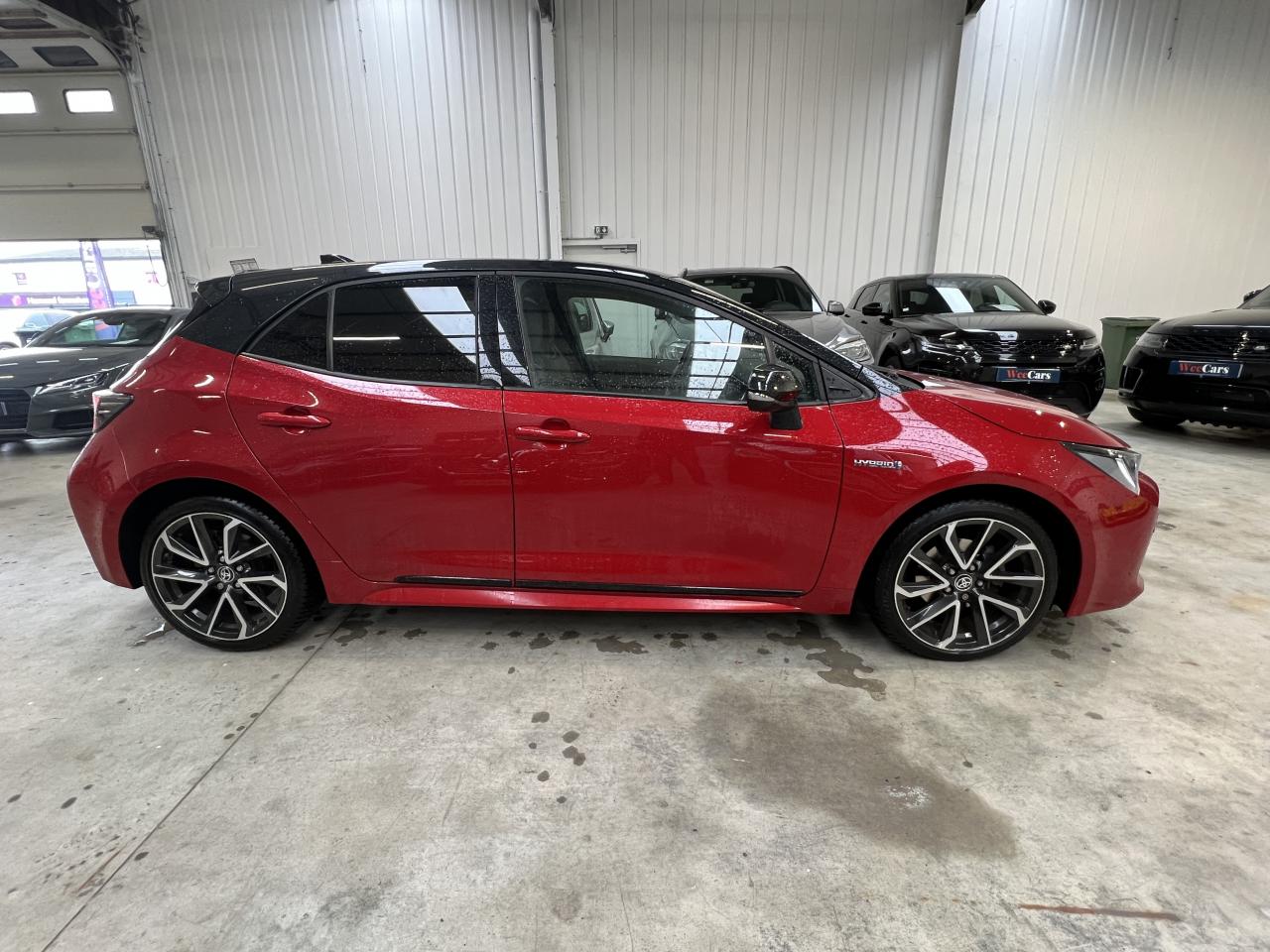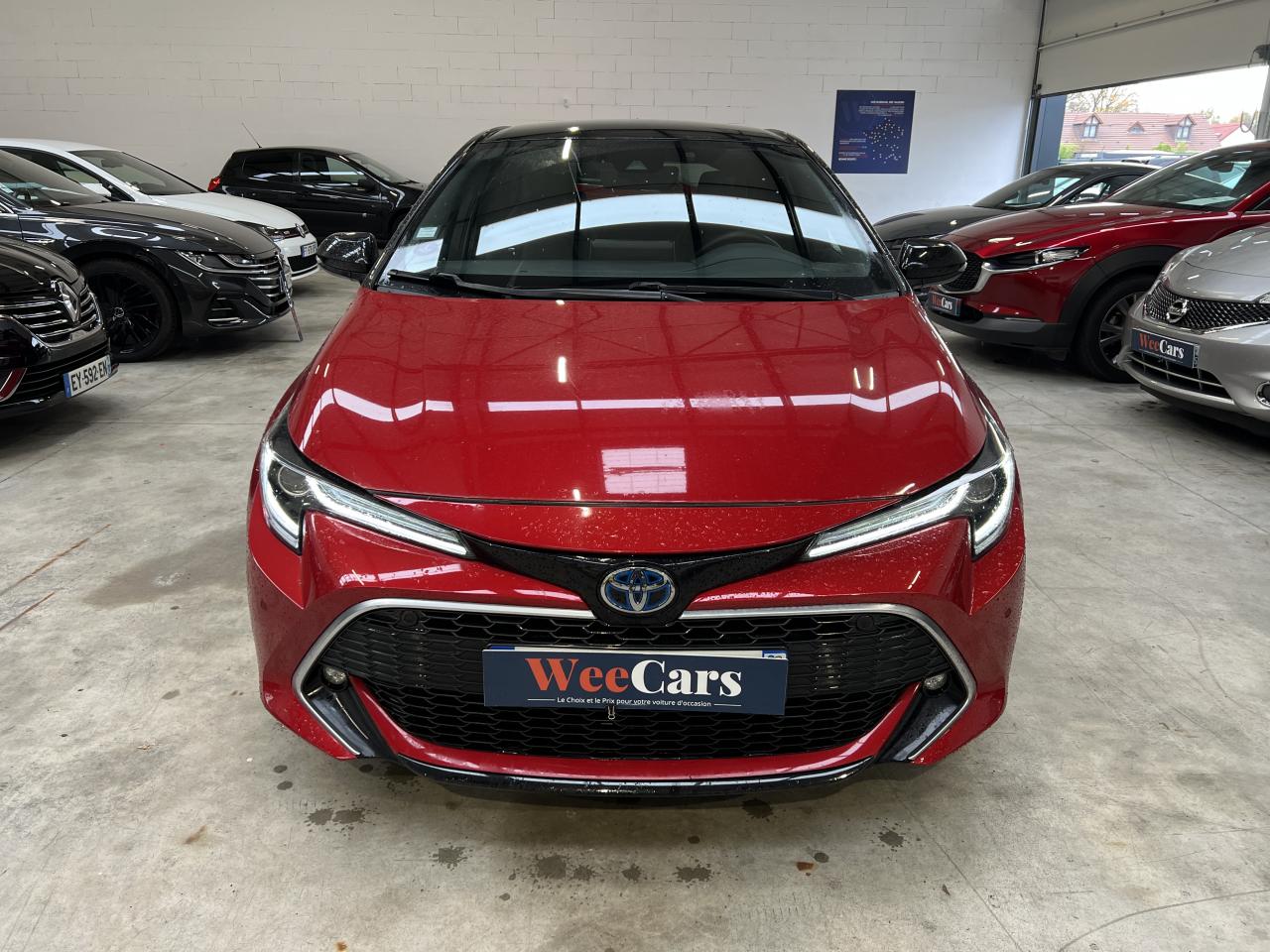 7 airbags (frontaux, latéraux, rideaux et protège-genoux conducteur)Accoudoir central arrièreAccoudoir central avant avec espace de rangementAérateurs arrièreAllumage automatique des projecteursAntenne de toit « aileron de requin »Appel d'urgence - EcallBaguettes latérales noiresBanquette arrière rabattable 40/60Calandre avant noir laqué avec inserts chromésCaméra de reculCarrosserie bi-ton avec rétroviseurs extérieurs, toit et piliers peints en noirClimatisation automatique bi-zoneConnexion smartphone (Apple CarPlay et Android Auto)Console centrale Noir laquéContour et pommeau de levier de vitesses en cuirContreportes avec insert noir laqué et chromeDéconnexion de l'airbag passagerDémarrage sans clé (Smart Start)Eclairage d'ambiance intérieurEntourages de vitres noirsEssuie-glace à déclenchement automatiqueFeux de jour et feux arrière à LEDFrein de stationnement électriqueIndicateur de perte de pression des pneusJantes alliage 18’’ TyphonKit anti-crevaisonLimiteur de vitesseOrdinateur de bord avec écran couleur TFT 7’’ multifonctionOrnement de calandre avant noirPeinture métallisée ou premiumPhares Bi-LEDPlanche de bord avec surpiqûres rougesPoignées de portes couleur carrosserieProjecteurs antibrouillardRétroviseur intérieur électrochromeRétroviseurs extérieurs à réglages électriques, dégivrants et rabattables automatiquementSélection du mode de conduite : Eco, normal, sport, EVSellerie mi-cuir noir type “Sport”Services connectés MyTSeuils de portesSiège conducteur à réglage lombaire électriqueSiège conducteur réglable en hauteur manuellementSiège passager réglable en hauteur manuellementSièges avant chauffantsSystème "Follow me home" (phares à extinction temporisée)Système audio Toyota “Touch” avec écran couleur tactile 8” multifonction, système de téléphonie Bluetooth, connectique auxiliaire/USB et 6 haut-parleursSystème d'aide au démarrage en côte HACSystème d'aide au stationnement intelligent S-IPA avec radars avant et arrièreSystème d’avertissement acoustique d’approche du véhicule (AVAS)Système d’ouverture/fermeture sans clé “Smart Entry”Système de contrôle de motricité (TRC) et de stabilité (VSC)Système de fixation ISOFIX aux places latérales arrièreSystème de freinage antiblocage (ABS) + BA + EBDSystème de navigation Toyota Touch & GoTapis de sol avant et arrière veloursToyota Safety Sense 2Vitres arrière et lunette arrière surteintéesVitres avant et arrière électriques à impulsion avec système ant-ipincementVolant multifonction gainé de cuir réglable en hauteur et en profondeur