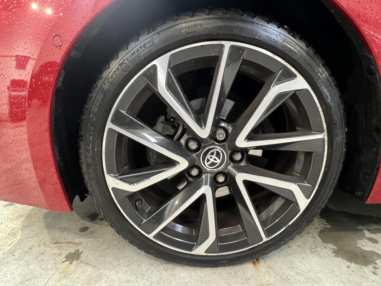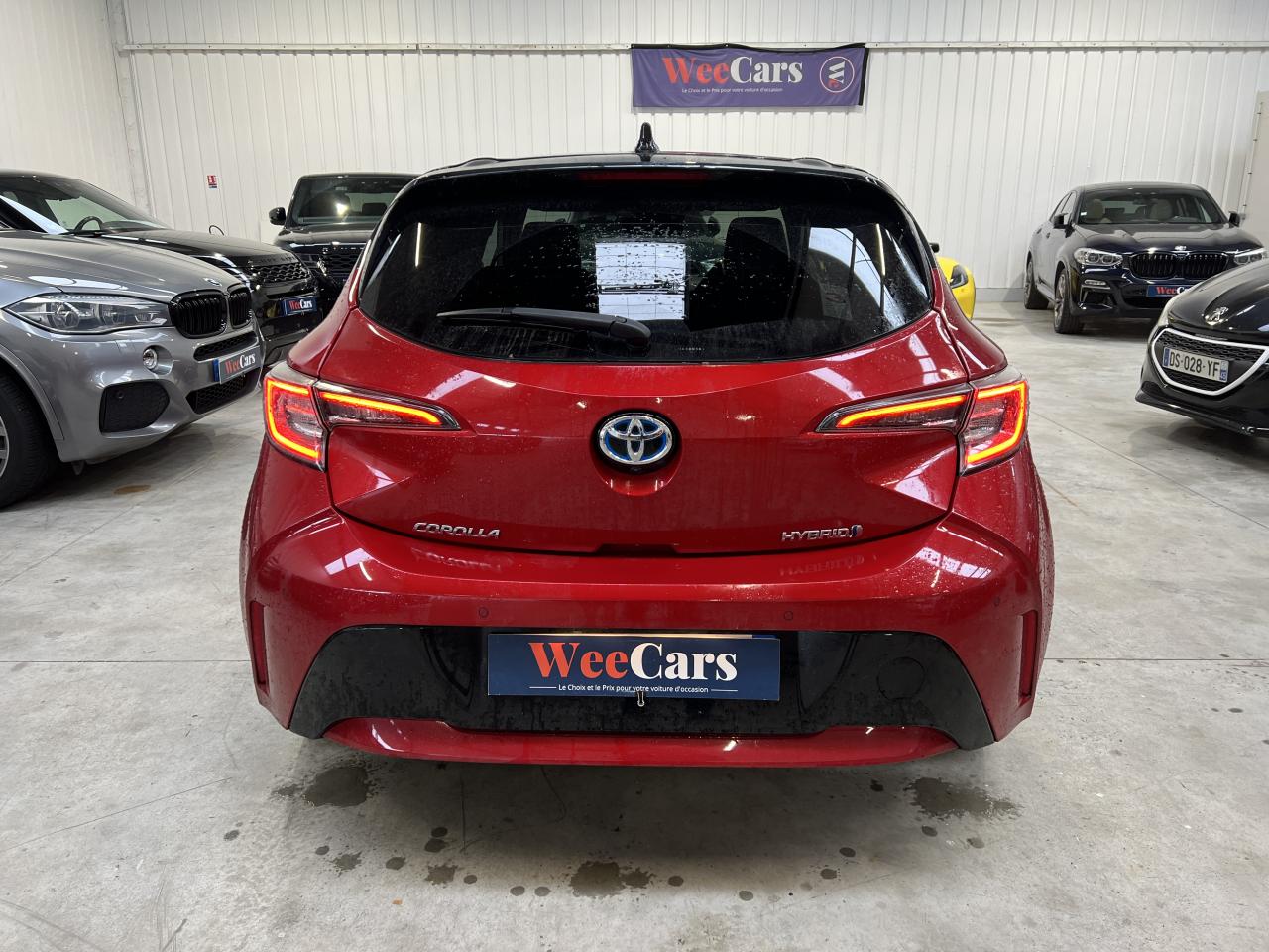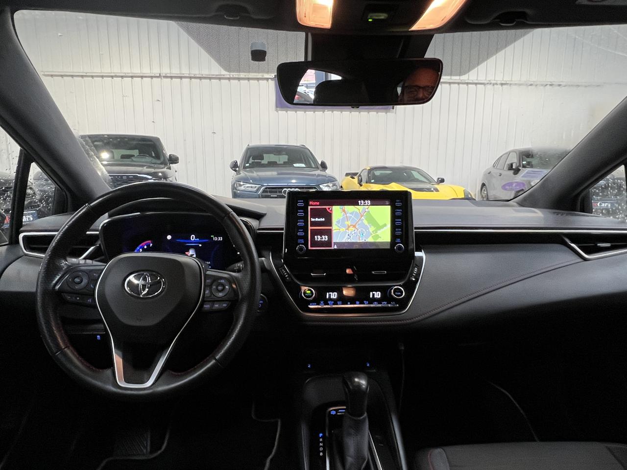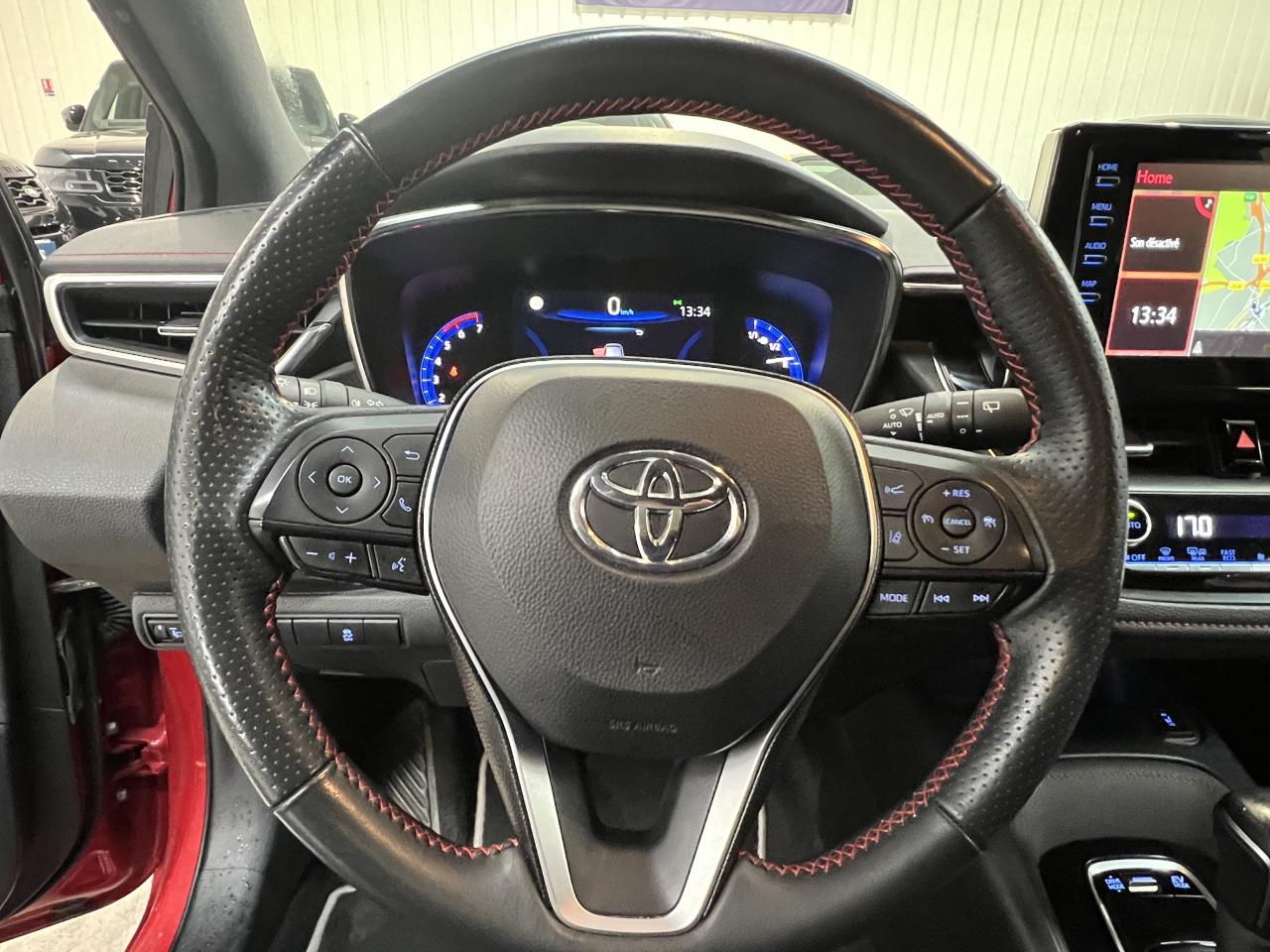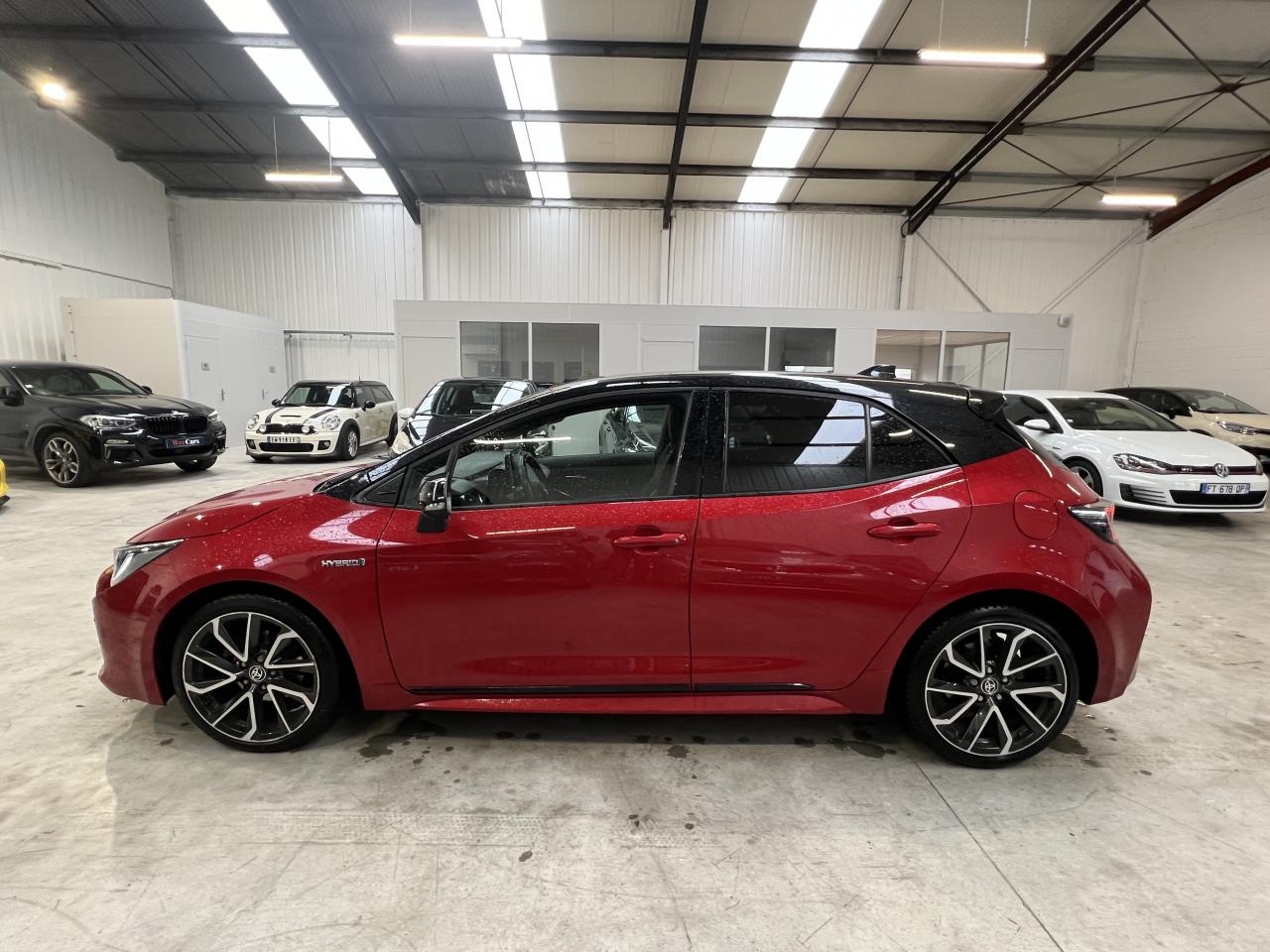 7 airbags (frontaux, latéraux, rideaux et protège-genoux conducteur)Accoudoir central arrièreAccoudoir central avant avec espace de rangementAérateurs arrièreAllumage automatique des projecteursAntenne de toit « aileron de requin »Appel d'urgence - EcallBaguettes latérales noiresBanquette arrière rabattable 40/60Calandre avant noir laqué avec inserts chromésCaméra de reculCarrosserie bi-ton avec rétroviseurs extérieurs, toit et piliers peints en noirClimatisation automatique bi-zoneConnexion smartphone (Apple CarPlay et Android Auto)Console centrale Noir laquéContour et pommeau de levier de vitesses en cuirContreportes avec insert noir laqué et chromeDéconnexion de l'airbag passagerDémarrage sans clé (Smart Start)Eclairage d'ambiance intérieurEntourages de vitres noirsEssuie-glace à déclenchement automatiqueFeux de jour et feux arrière à LEDFrein de stationnement électriqueIndicateur de perte de pression des pneusJantes alliage 18’’ TyphonKit anti-crevaisonLimiteur de vitesseOrdinateur de bord avec écran couleur TFT 7’’ multifonctionOrnement de calandre avant noirPeinture métallisée ou premiumPhares Bi-LEDPlanche de bord avec surpiqûres rougesPoignées de portes couleur carrosserieProjecteurs antibrouillardRétroviseur intérieur électrochromeRétroviseurs extérieurs à réglages électriques, dégivrants et rabattables automatiquementSélection du mode de conduite : Eco, normal, sport, EVSellerie mi-cuir noir type “Sport”Services connectés MyTSeuils de portesSiège conducteur à réglage lombaire électriqueSiège conducteur réglable en hauteur manuellementSiège passager réglable en hauteur manuellementSièges avant chauffantsSystème "Follow me home" (phares à extinction temporisée)Système audio Toyota “Touch” avec écran couleur tactile 8” multifonction, système de téléphonie Bluetooth, connectique auxiliaire/USB et 6 haut-parleursSystème d'aide au démarrage en côte HACSystème d'aide au stationnement intelligent S-IPA avec radars avant et arrièreSystème d’avertissement acoustique d’approche du véhicule (AVAS)Système d’ouverture/fermeture sans clé “Smart Entry”Système de contrôle de motricité (TRC) et de stabilité (VSC)Système de fixation ISOFIX aux places latérales arrièreSystème de freinage antiblocage (ABS) + BA + EBDSystème de navigation Toyota Touch & GoTapis de sol avant et arrière veloursToyota Safety Sense 2Vitres arrière et lunette arrière surteintéesVitres avant et arrière électriques à impulsion avec système ant-ipincementVolant multifonction gainé de cuir réglable en hauteur et en profondeur