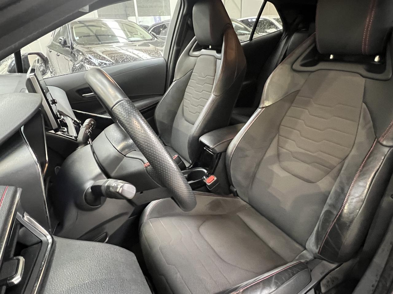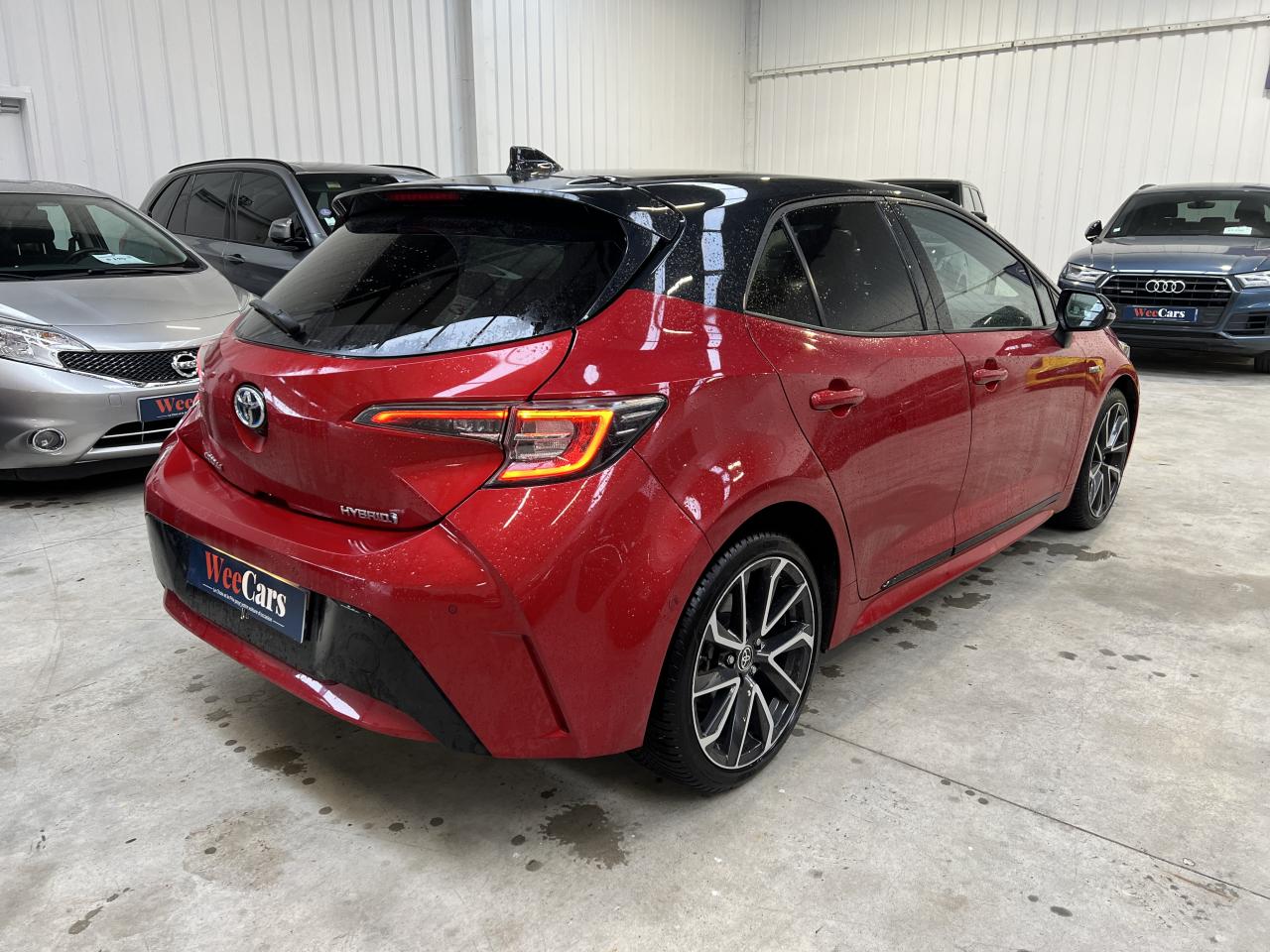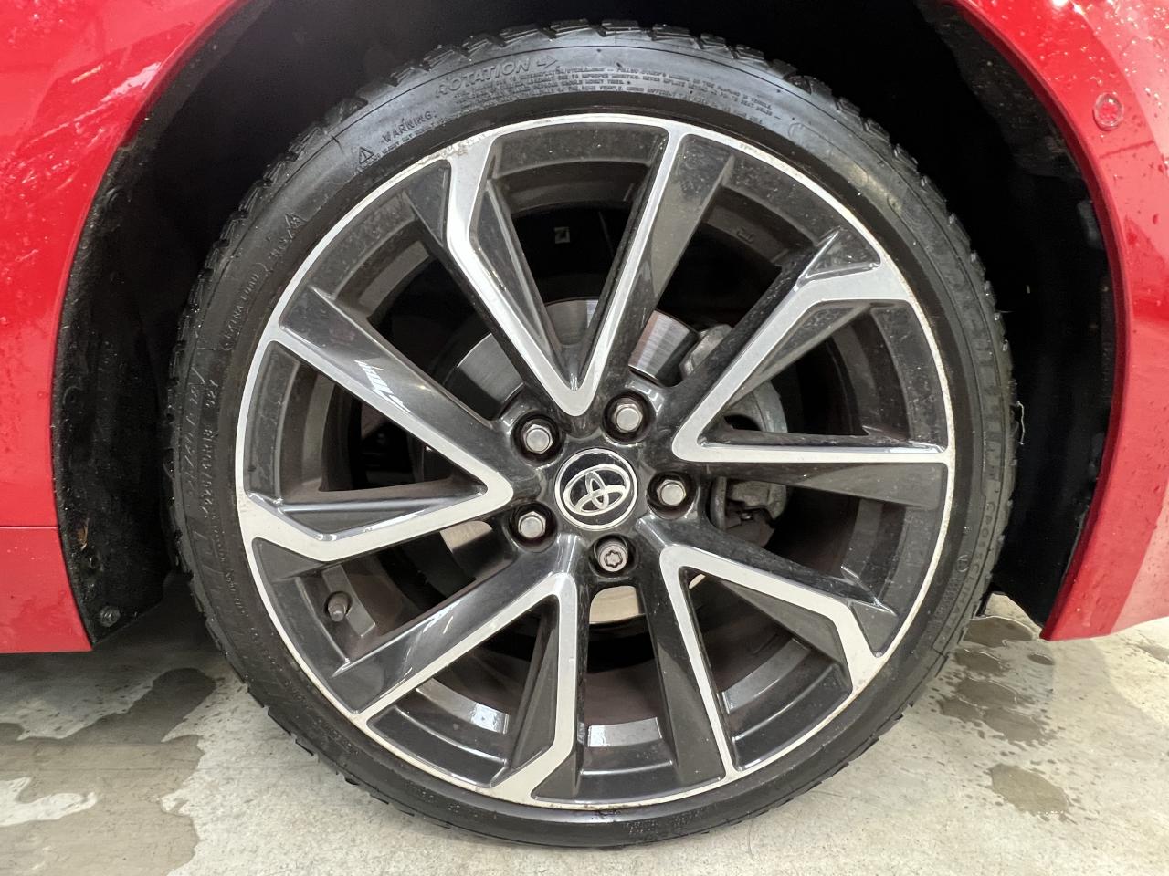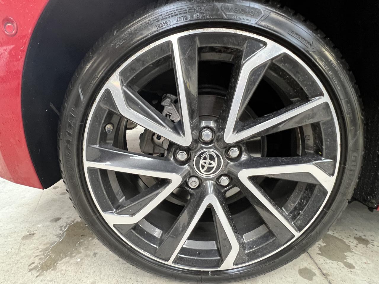7 airbags (frontaux, latéraux, rideaux et protège-genoux conducteur)Accoudoir central arrièreAccoudoir central avant avec espace de rangementAérateurs arrièreAllumage automatique des projecteursAntenne de toit « aileron de requin »Appel d'urgence - EcallBaguettes latérales noiresBanquette arrière rabattable 40/60Calandre avant noir laqué avec inserts chromésCaméra de reculCarrosserie bi-ton avec rétroviseurs extérieurs, toit et piliers peints en noirClimatisation automatique bi-zoneConnexion smartphone (Apple CarPlay et Android Auto)Console centrale Noir laquéContour et pommeau de levier de vitesses en cuirContreportes avec insert noir laqué et chromeDéconnexion de l'airbag passagerDémarrage sans clé (Smart Start)Eclairage d'ambiance intérieurEntourages de vitres noirsEssuie-glace à déclenchement automatiqueFeux de jour et feux arrière à LEDFrein de stationnement électriqueIndicateur de perte de pression des pneusJantes alliage 18’’ TyphonKit anti-crevaisonLimiteur de vitesseOrdinateur de bord avec écran couleur TFT 7’’ multifonctionOrnement de calandre avant noirPeinture métallisée ou premiumPhares Bi-LEDPlanche de bord avec surpiqûres rougesPoignées de portes couleur carrosserieProjecteurs antibrouillardRétroviseur intérieur électrochromeRétroviseurs extérieurs à réglages électriques, dégivrants et rabattables automatiquementSélection du mode de conduite : Eco, normal, sport, EVSellerie mi-cuir noir type “Sport”Services connectés MyTSeuils de portesSiège conducteur à réglage lombaire électriqueSiège conducteur réglable en hauteur manuellementSiège passager réglable en hauteur manuellementSièges avant chauffantsSystème "Follow me home" (phares à extinction temporisée)Système audio Toyota “Touch” avec écran couleur tactile 8” multifonction, système de téléphonie Bluetooth, connectique auxiliaire/USB et 6 haut-parleursSystème d'aide au démarrage en côte HACSystème d'aide au stationnement intelligent S-IPA avec radars avant et arrièreSystème d’avertissement acoustique d’approche du véhicule (AVAS)Système d’ouverture/fermeture sans clé “Smart Entry”Système de contrôle de motricité (TRC) et de stabilité (VSC)Système de fixation ISOFIX aux places latérales arrièreSystème de freinage antiblocage (ABS) + BA + EBDSystème de navigation Toyota Touch & GoTapis de sol avant et arrière veloursToyota Safety Sense 2Vitres arrière et lunette arrière surteintéesVitres avant et arrière électriques à impulsion avec système ant-ipincementVolant multifonction gainé de cuir réglable en hauteur et en profondeur