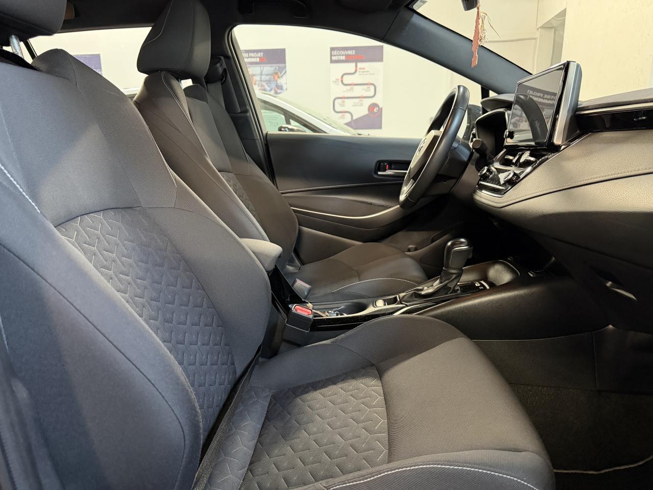 7 airbags (frontaux, latéraux, rideaux et protège-genoux conducteur)Accoudoir central arrièreattelageAccoudoir central avant avec espace de rangementAérateurs arrièreAllumage automatique des projecteursAntenne de toit « aileron de requin »Appel d'urgence - EcallApple CarPlay sans filBanquette arrière rabattable 60/40 depuis le coffreCache-bagages intelligentCalandre avant NoireCaméra de reculClimatisation automatique bi-zoneConnectique USB Type A dans la console centraleConnectique USB Type C à l’avant et port auxiliaireConnexion smartphone (Apple CarPlay et Android Auto)Console centrale Noir laquéContour et pommeau de levier de vitesses en cuirDéconnexion de l'airbag passagerDémarrage sans clé (Smart Start)Entourages de vitres noirsEssuie-glace à déclenchement automatiqueFeux de jour et feux arrière à LEDFrein de stationnement électriqueIndicateur de perte de pression des pneusInsert de contreportes chroméJantes alliage 16’’ ZephyrKit anti-crevaisonLimiteur de vitesseOrdinateur de bord avec écran couleur TFT 7’’ multifonctionPeinture Blanc PurPhares à LEDPlancher de coffre réversible avec position bassePoignées de portes couleur carrosserieProgramme Beyond Zero AcademyProjecteurs antibrouillardRadars de stationnement arrièreRadars de stationnement avantRails de toit en aluminium anodisésRétroviseur intérieur électrochromeRétroviseurs extérieurs à réglages électriques, dégivrants et rabattables automatiquementRétroviseurs extérieurs couleur carrosserieSélection du mode de conduite : Eco, normal, sport, EVSellerie Tissu noirServices connectés MyTSeuils de portesSiège conducteur à réglage lombaire électriqueSiège conducteur réglable en hauteur manuellementSiège passager réglable en hauteur manuellementSièges avant chauffantsSystème "Follow me home" (phares à extinction temporisée)Système d'aide au démarrage en côte HACSystème d'aide au stationnement intelligent S-IPA avec radars avant et arrièreSystème d’avertissement acoustique d’approche du véhicule (AVAS)Système d’ouverture/fermeture sans clé “Smart Entry”Système de contrôle de motricité (TRC) et de stabilité (VSC)Système de fixation ISOFIX aux places latérales arrièreSystème de freinage antiblocage (ABS) + BA + EBDSystème intelligent de plancher platTapis de sol avant et arrière veloursToyota Safety Sense 2Toyota Smart Connect Plus (Navigation satellitaire avec zones de danger et cartographie 3D)Vitres avant et arrière électriques à impulsion avec système ant-ipincementVolant multifonction gainé de cuir réglable en hauteur et en profondeur