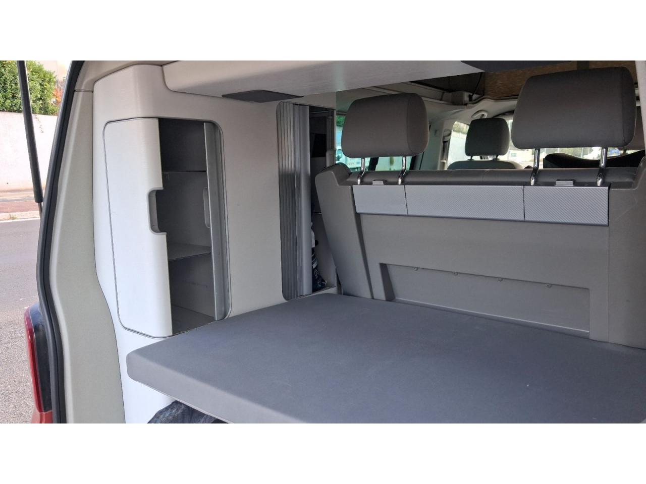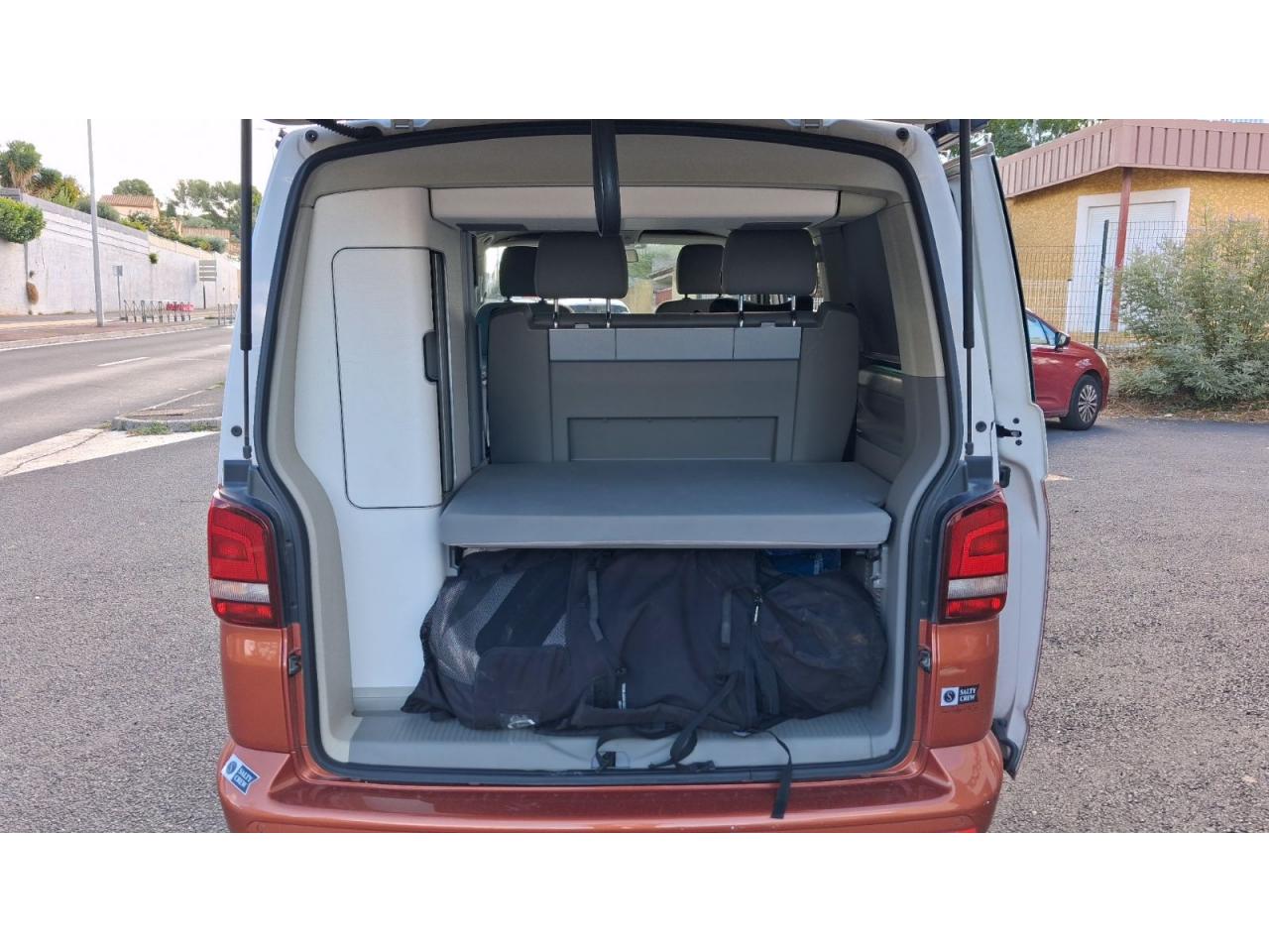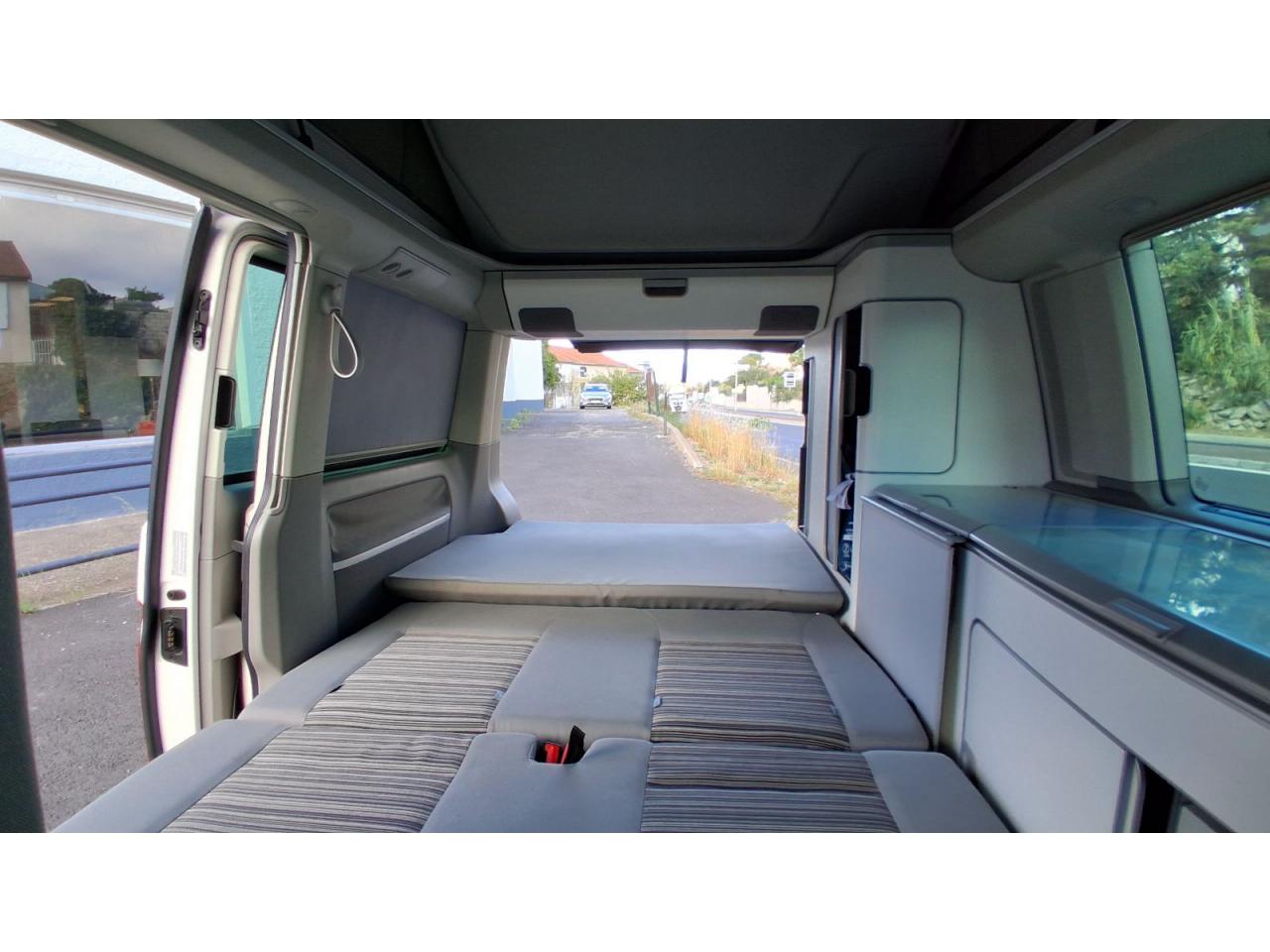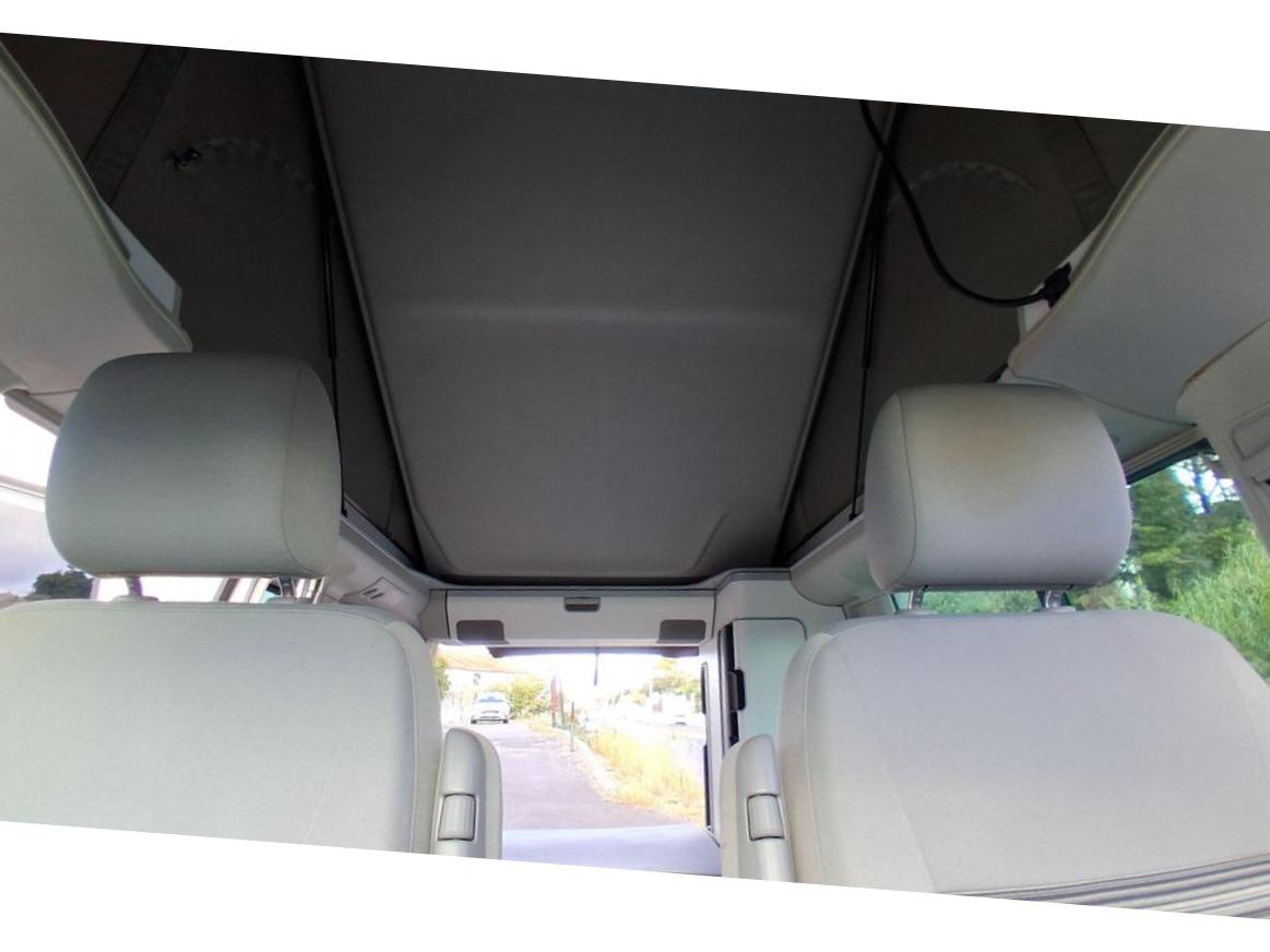 2 clés pliantes radiocommandées pour le système de verrouillage centralisé2 pare-soleil orientables avec miroir de courtoisie2 sièges individuels, pivotants, coulissants et amovibles avec ceinture de sécurité trois points dans la 1ère rangée de l'espace passagers2ème batterie avec relais de coupure, sans entretien3ème feu stop arrière4 jantes en acier 6 1/2J x 16 en style à 9 trousAirbags frontaux pour conducteur et passager, rétracteurs à gauche et à droite et désactivation de l'airbag du passagerAirbags frontaux, latéraux et de tête conducteur et passager avantAlarme éclairage permanentAmortisseur télescopique de type McPhersonAnti-démarrage électroniqueAppuie-tête (réglables hauteur et inclin.) dans cabine et appuie-tête pour banquette Camper, avec garniture tissuAppuis lombaires pour conducteur et passager avantAvertisseur sonore deux tonsBanquette 2 places coulissantes et rabattable pour couchage (200 x 114 cm)Boîte à gants verrouillable et réfrigéréeCeintures de sécurité automatiques trois pointsChâssis 16" avec système de freinage 16"Chauffage d'appoint dans le compartiment passagers/de charge, chauffage (à régulation mécanique) dans la cabineCombiné d'instruments (km/h); affichages de vitesse, compteur total./ journalier, régime, niveau, carburant, heureContrôle de pression des pneus ( TPMS )Contrôle électronique de stabilisation avec assistant de freinage AFU, ABS, ASR, EDS et assistant de démarrage en côteDéverrouillage hayon arrière de l'extérieurDirection assistée avec colonne de direction de sécurité, réglable en hauteur et en longueurEclairage jour (allumé en permanence pendant la marche)Fenêtre coulissante à l'avant et fenêtre fixe à l'arrière, dans l'espace passagers, à gaucheFenêtres latérales à l'avant et l'arrière, dans l'espace passagers, à droiteFeu arrière de brouillardFeux arrière avec glaces optiques teintées en rougeFonctionnement intermittent des essuie-glaceGlissière de store noir + adaptateur pour tenteHayon avec baie de fenêtreLève-glaces électriqueLit sous toit avec sommier à latte (200 x 120 cm)Lunette arrière (verre normal, dégivrante) avec essuie-glace/lave-glace de lunette arrièreOeillets d'arrimage pour fixation de la charge pour garniture de plancher pour passage intensifOutillage de bord et cricPack BlueMotion TechnologyPare-Brise feuilleté AthermiquePare-chocs (plast.) peintsPare-soleil y compris miroir de courtoisie (éclairé) avec cache et poche, dans la cabine, à droitePare-soleil y compris miroir de courtoisie (éclairé) avec cache et poche, dans la cabine, à gauchePhares principaux halogène (H4), circulation à droitePoids total admissible 3000 kgPoignées (rabattables et à retour freiné) sur le cadre de toitPorte latérale coulissante droitePréparation pour radioPrise 12VProtection centrale de roueRails de fixation sur le toit (préparation pour galerie porte-bagages coulissante)Rallonge de lit sur glissière pour couchageRéglage du site des pharesRéservoir en plastique (contenance : 80L)Rétroviseur extérieur droit, convexe et gauche, asphériqueRétroviseur intérieur de sécurité à réglage jour/nuitRétroviseurs extérieurs et poignées de portes noirsRétroviseurs extérieurs, réglables et dégivrants électriquementRevêtement de sol en plastique dans l'espace passagersRevêtement des sièges en tissu "Takato"Roue de secours (acier) avec pneu normalSans affichage multifonction/ordinateur de bordSécurité de blocage du volantSécurité-enfants dans les portes coulissantes dans le compartiment passagerSièges conducteur et passager avant pivotantsSignal sonore et lumineux pour ceinture du conducteur non attachéeSystème de freinage hydraulique avec freins à disque ventilésSystème Start/ Stop avec récupération d'énergie de freinageTable de camping située dans la porte coulissante (pour intérieur et extérieur)Toit relevable manuellementVerrouillage central avec radiocommande, dispositif de sécurité Safe et commande intérieureVersion non-fumeur (prise 12 V et porte-gobelets dans le tableau de bord)Vitre coulissante à gauche uniquementVitres athermiques teintées vertesVolant cuir