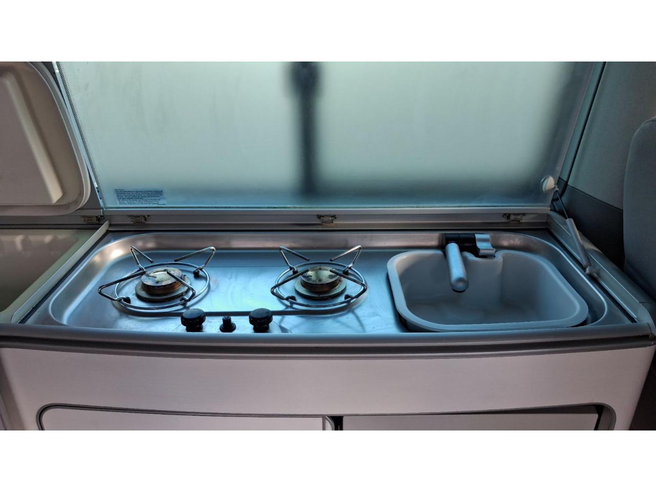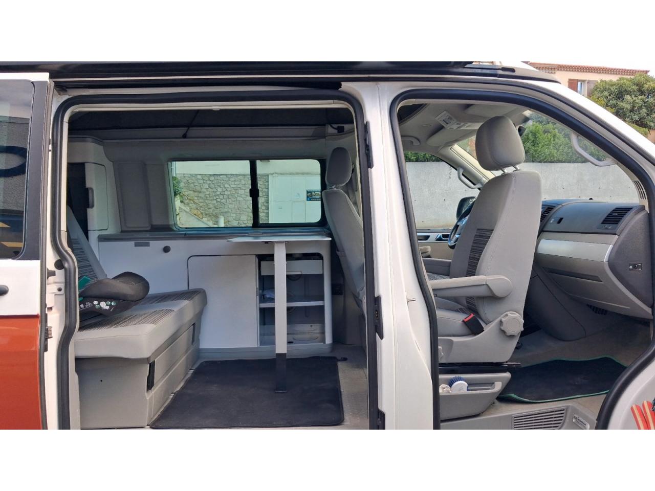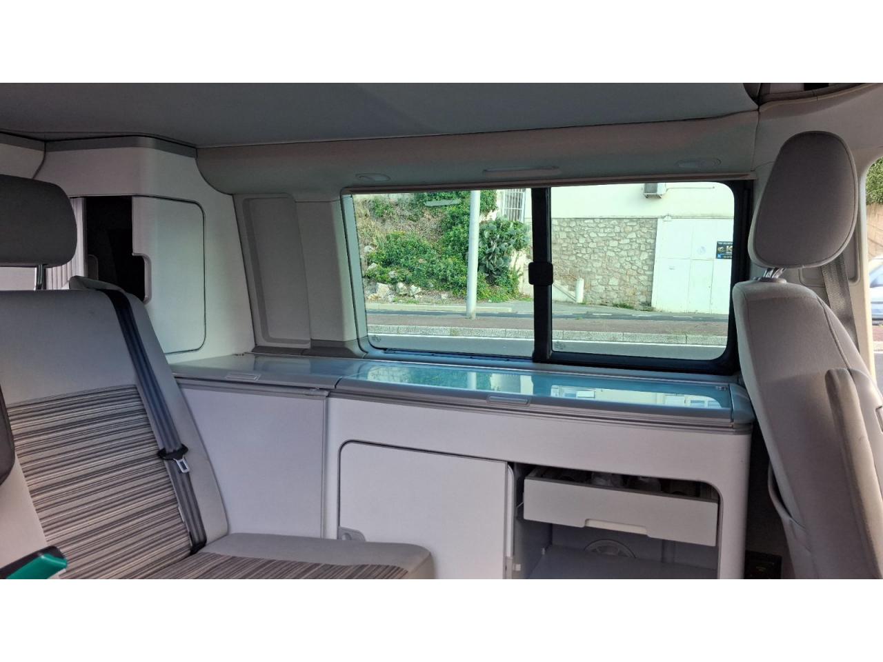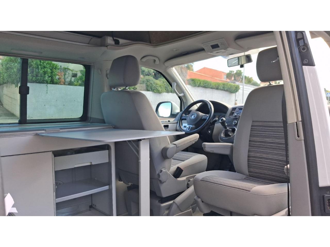 2 clés pliantes radiocommandées pour le système de verrouillage centralisé2 pare-soleil orientables avec miroir de courtoisie2 sièges individuels, pivotants, coulissants et amovibles avec ceinture de sécurité trois points dans la 1ère rangée de l'espace passagers2ème batterie avec relais de coupure, sans entretien3ème feu stop arrière4 jantes en acier 6 1/2J x 16 en style à 9 trousAirbags frontaux pour conducteur et passager, rétracteurs à gauche et à droite et désactivation de l'airbag du passagerAirbags frontaux, latéraux et de tête conducteur et passager avantAlarme éclairage permanentAmortisseur télescopique de type McPhersonAnti-démarrage électroniqueAppuie-tête (réglables hauteur et inclin.) dans cabine et appuie-tête pour banquette Camper, avec garniture tissuAppuis lombaires pour conducteur et passager avantAvertisseur sonore deux tonsBanquette 2 places coulissantes et rabattable pour couchage (200 x 114 cm)Boîte à gants verrouillable et réfrigéréeCeintures de sécurité automatiques trois pointsChâssis 16" avec système de freinage 16"Chauffage d'appoint dans le compartiment passagers/de charge, chauffage (à régulation mécanique) dans la cabineCombiné d'instruments (km/h); affichages de vitesse, compteur total./ journalier, régime, niveau, carburant, heureContrôle de pression des pneus ( TPMS )Contrôle électronique de stabilisation avec assistant de freinage AFU, ABS, ASR, EDS et assistant de démarrage en côteDéverrouillage hayon arrière de l'extérieurDirection assistée avec colonne de direction de sécurité, réglable en hauteur et en longueurEclairage jour (allumé en permanence pendant la marche)Fenêtre coulissante à l'avant et fenêtre fixe à l'arrière, dans l'espace passagers, à gaucheFenêtres latérales à l'avant et l'arrière, dans l'espace passagers, à droiteFeu arrière de brouillardFeux arrière avec glaces optiques teintées en rougeFonctionnement intermittent des essuie-glaceGlissière de store noir + adaptateur pour tenteHayon avec baie de fenêtreLève-glaces électriqueLit sous toit avec sommier à latte (200 x 120 cm)Lunette arrière (verre normal, dégivrante) avec essuie-glace/lave-glace de lunette arrièreOeillets d'arrimage pour fixation de la charge pour garniture de plancher pour passage intensifOutillage de bord et cricPack BlueMotion TechnologyPare-Brise feuilleté AthermiquePare-chocs (plast.) peintsPare-soleil y compris miroir de courtoisie (éclairé) avec cache et poche, dans la cabine, à droitePare-soleil y compris miroir de courtoisie (éclairé) avec cache et poche, dans la cabine, à gauchePhares principaux halogène (H4), circulation à droitePoids total admissible 3000 kgPoignées (rabattables et à retour freiné) sur le cadre de toitPorte latérale coulissante droitePréparation pour radioPrise 12VProtection centrale de roueRails de fixation sur le toit (préparation pour galerie porte-bagages coulissante)Rallonge de lit sur glissière pour couchageRéglage du site des pharesRéservoir en plastique (contenance : 80L)Rétroviseur extérieur droit, convexe et gauche, asphériqueRétroviseur intérieur de sécurité à réglage jour/nuitRétroviseurs extérieurs et poignées de portes noirsRétroviseurs extérieurs, réglables et dégivrants électriquementRevêtement de sol en plastique dans l'espace passagersRevêtement des sièges en tissu "Takato"Roue de secours (acier) avec pneu normalSans affichage multifonction/ordinateur de bordSécurité de blocage du volantSécurité-enfants dans les portes coulissantes dans le compartiment passagerSièges conducteur et passager avant pivotantsSignal sonore et lumineux pour ceinture du conducteur non attachéeSystème de freinage hydraulique avec freins à disque ventilésSystème Start/ Stop avec récupération d'énergie de freinageTable de camping située dans la porte coulissante (pour intérieur et extérieur)Toit relevable manuellementVerrouillage central avec radiocommande, dispositif de sécurité Safe et commande intérieureVersion non-fumeur (prise 12 V et porte-gobelets dans le tableau de bord)Vitre coulissante à gauche uniquementVitres athermiques teintées vertesVolant cuir