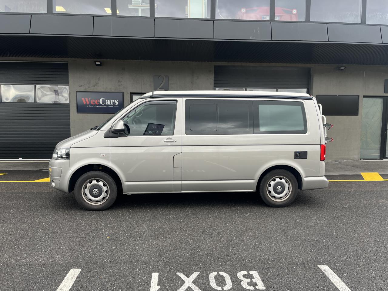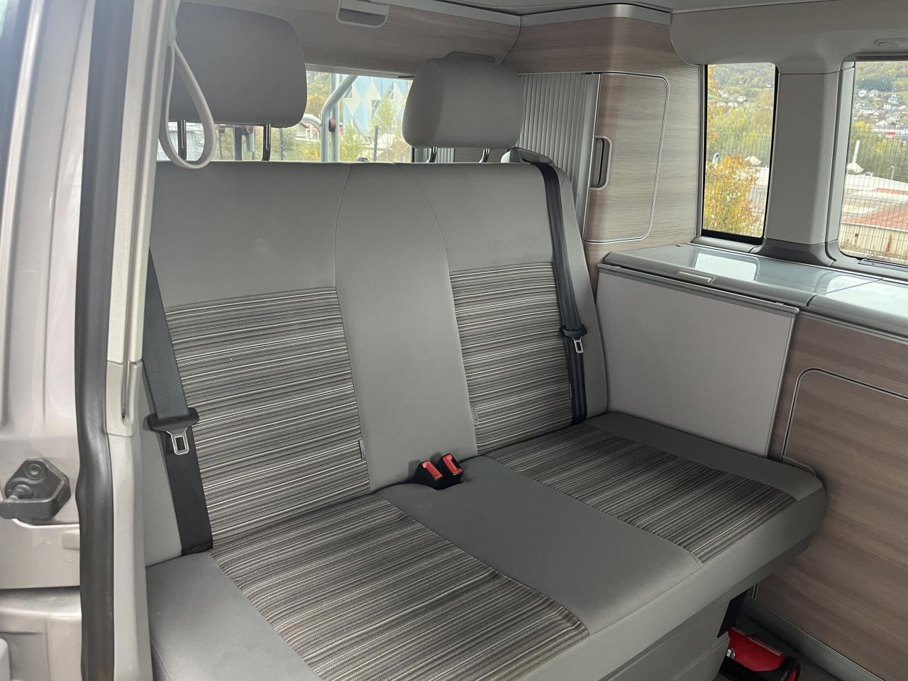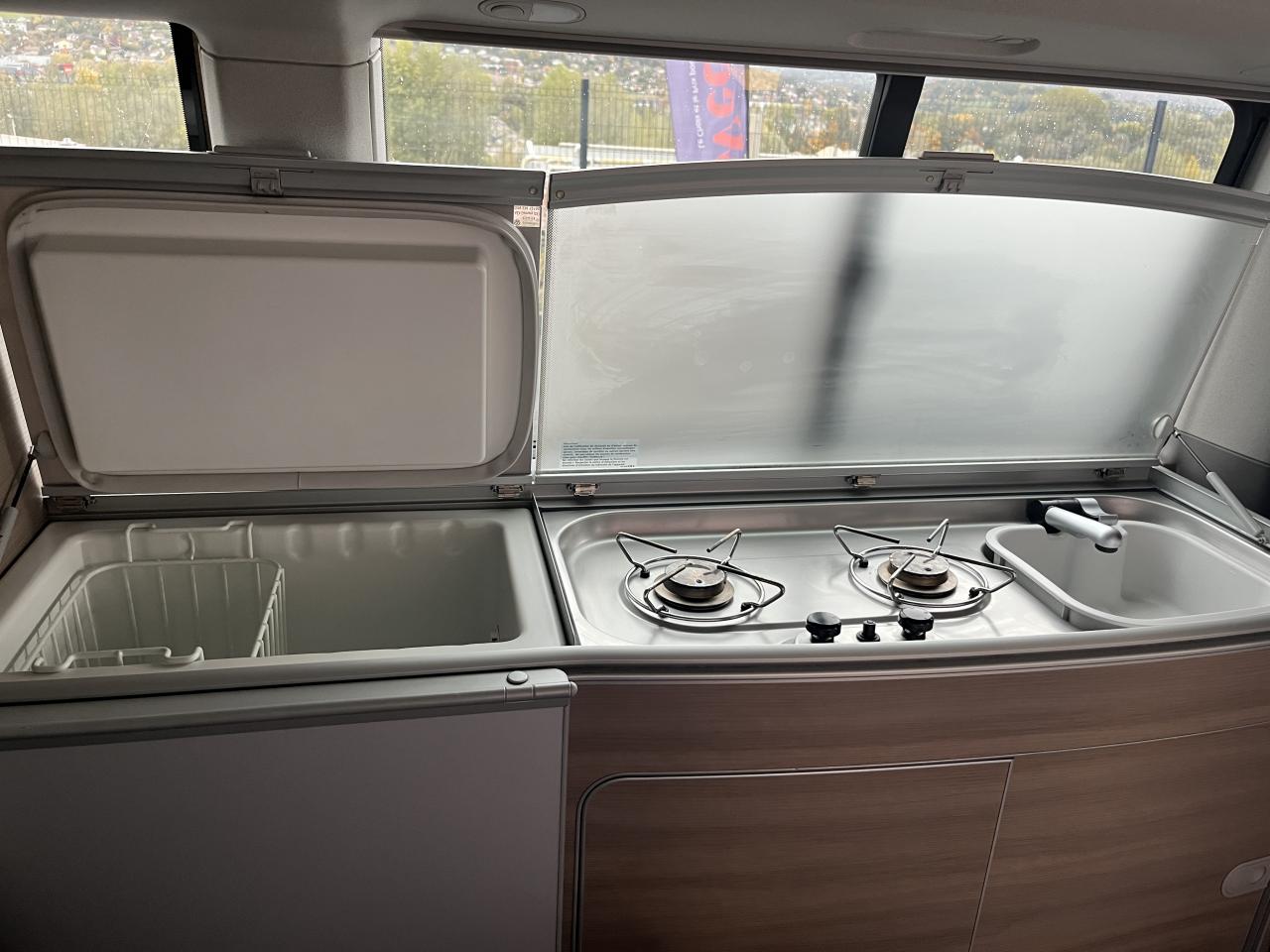 2 clés pliantes radiocommandées pour le système de verrouillage centralisé2 pare-soleil orientables avec miroir de courtoisie2 sièges individuels, pivotants, coulissants et amovibles avec ceinture de sécurité trois points dans la 1ère rangée de l'espace passagers2ème batterie avec relais de coupure, sans entretien3ème feu stop arrière4 jantes en acier 6 1/2J x 16 en style à 9 trousAirbags frontaux pour conducteur et passager, rétracteurs à gauche et à droite et désactivation de l'airbag du passagerAirbags frontaux, latéraux et de tête conducteur et passager avantAlarme éclairage permanentAmortisseur télescopique de type McPhersonAnti-démarrage électroniqueAppuie-tête (réglables hauteur et inclin.) dans cabine et appuie-tête pour banquette Camper, avec garniture tissuAppuis lombaires pour conducteur et passager avantAvertisseur sonore deux tonsBanquette 2 places coulissantes et rabattable pour couchage (200 x 114 cm)Boîte à gants verrouillable et réfrigéréeCeintures de sécurité automatiques trois pointsChâssis 16" avec système de freinage 16"Chauffage d'appoint dans le compartiment passagers/de charge, chauffage (à régulation mécanique) dans la cabineCombiné d'instruments (km/h); affichages de vitesse, compteur total./ journalier, régime, niveau, carburant, heureContrôle de pression des pneus ( TPMS )Contrôle électronique de stabilisation avec assistant de freinage AFU, ABS, ASR, EDS et assistant de démarrage en côteDéverrouillage hayon arrière de l'extérieurDirection assistée avec colonne de direction de sécurité, réglable en hauteur et en longueurEclairage jour (allumé en permanence pendant la marche)Fenêtre coulissante à l'avant et fenêtre fixe à l'arrière, dans l'espace passagers, à gaucheFenêtres latérales à l'avant et l'arrière, dans l'espace passagers, à droiteFeu arrière de brouillardFeux arrière avec glaces optiques teintées en rougeFonctionnement intermittent des essuie-glaceGlissière de store noir + adaptateur pour tenteHayon avec baie de fenêtreLève-glaces électriqueLit sous toit avec sommier à latte (200 x 120 cm)Lunette arrière (verre normal, dégivrante) avec essuie-glace/lave-glace de lunette arrièreOeillets d'arrimage pour fixation de la charge pour garniture de plancher pour passage intensifOutillage de bord et cricPack BlueMotion TechnologyPare-Brise feuilleté AthermiquePare-chocs (plast.) peintsPare-soleil y compris miroir de courtoisie (éclairé) avec cache et poche, dans la cabine, à droitePare-soleil y compris miroir de courtoisie (éclairé) avec cache et poche, dans la cabine, à gauchePhares principaux halogène (H4), circulation à droitePoids total admissible 3000 kgPoignées (rabattables et à retour freiné) sur le cadre de toitPorte latérale coulissante droitePréparation pour radioPrise 12VProtection centrale de roueRails de fixation sur le toit (préparation pour galerie porte-bagages coulissante)Rallonge de lit sur glissière pour couchageRéglage du site des pharesRéservoir en plastique (contenance : 80L)Rétroviseur extérieur droit, convexe et gauche, asphériqueRétroviseur intérieur de sécurité à réglage jour/nuitRétroviseurs extérieurs et poignées de portes noirsRétroviseurs extérieurs, réglables et dégivrants électriquementRevêtement de sol en plastique dans l'espace passagersRevêtement des sièges en tissu "Takato"Roue de secours (acier) avec pneu normalSans affichage multifonction/ordinateur de bordSécurité de blocage du volantSécurité-enfants dans les portes coulissantes dans le compartiment passagerSièges conducteur et passager avant pivotantsSignal sonore et lumineux pour ceinture du conducteur non attachéeSystème de freinage hydraulique avec freins à disque ventilésSystème Start/ Stop avec récupération d'énergie de freinageTable de camping située dans la porte coulissante (pour intérieur et extérieur)Toit relevable manuellementVerrouillage central avec radiocommande, dispositif de sécurité Safe et commande intérieureVersion non-fumeur (prise 12 V et porte-gobelets dans le tableau de bord)Vitre coulissante à gauche uniquementVitres athermiques teintées vertesVolant cuir