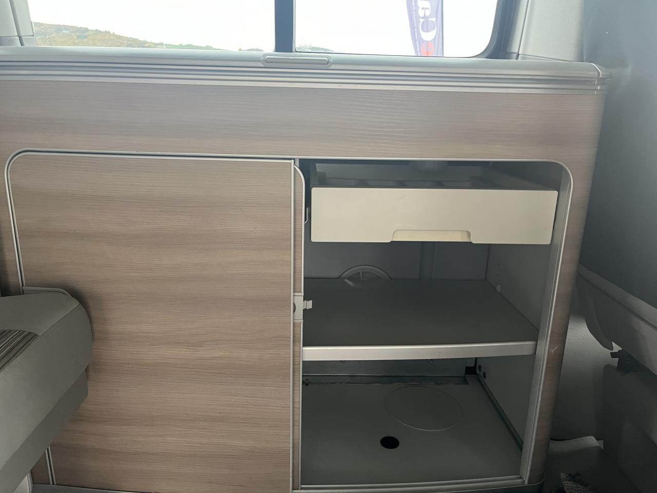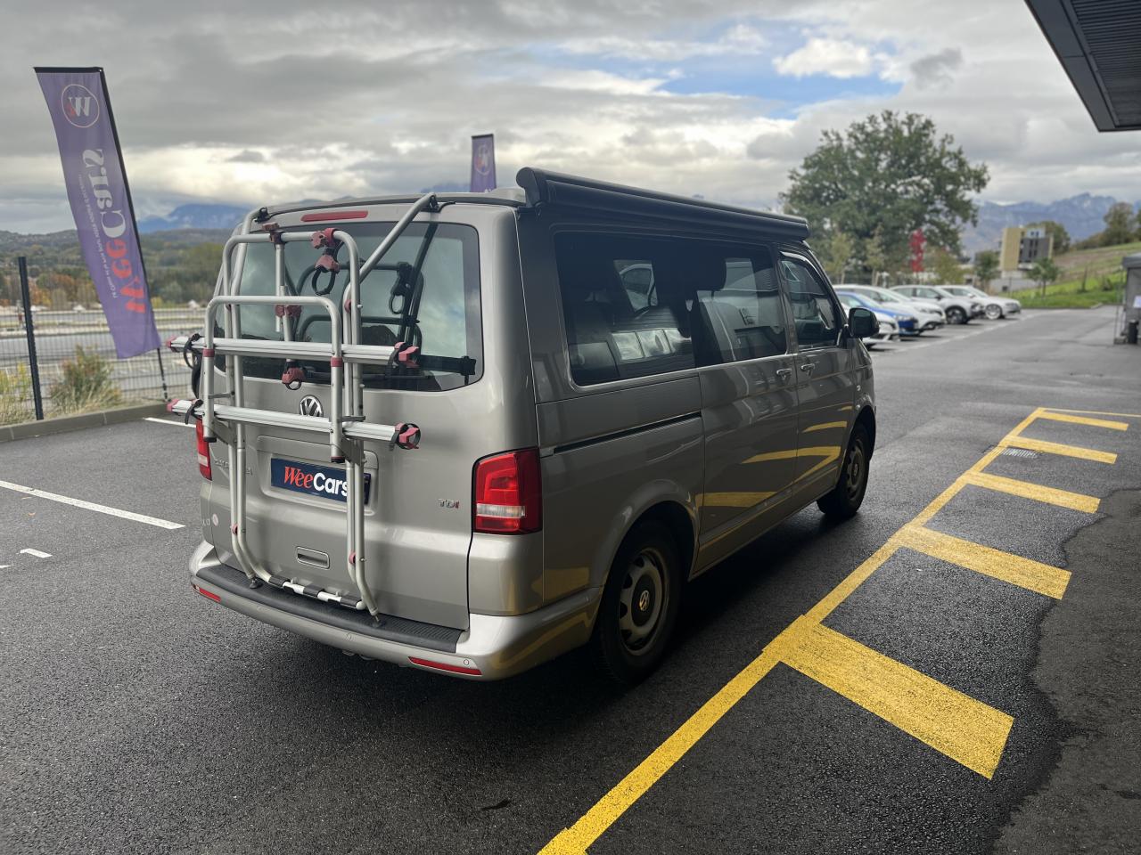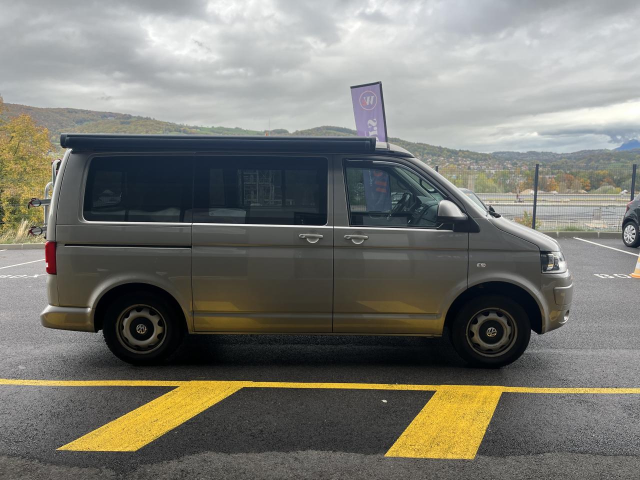 2 clés pliantes radiocommandées pour le système de verrouillage centralisé2 pare-soleil orientables avec miroir de courtoisie2 sièges individuels, pivotants, coulissants et amovibles avec ceinture de sécurité trois points dans la 1ère rangée de l'espace passagers2ème batterie avec relais de coupure, sans entretien3ème feu stop arrière4 jantes en acier 6 1/2J x 16 en style à 9 trousAirbags frontaux pour conducteur et passager, rétracteurs à gauche et à droite et désactivation de l'airbag du passagerAirbags frontaux, latéraux et de tête conducteur et passager avantAlarme éclairage permanentAmortisseur télescopique de type McPhersonAnti-démarrage électroniqueAppuie-tête (réglables hauteur et inclin.) dans cabine et appuie-tête pour banquette Camper, avec garniture tissuAppuis lombaires pour conducteur et passager avantAvertisseur sonore deux tonsBanquette 2 places coulissantes et rabattable pour couchage (200 x 114 cm)Boîte à gants verrouillable et réfrigéréeCeintures de sécurité automatiques trois pointsChâssis 16" avec système de freinage 16"Chauffage d'appoint dans le compartiment passagers/de charge, chauffage (à régulation mécanique) dans la cabineCombiné d'instruments (km/h); affichages de vitesse, compteur total./ journalier, régime, niveau, carburant, heureContrôle de pression des pneus ( TPMS )Contrôle électronique de stabilisation avec assistant de freinage AFU, ABS, ASR, EDS et assistant de démarrage en côteDéverrouillage hayon arrière de l'extérieurDirection assistée avec colonne de direction de sécurité, réglable en hauteur et en longueurEclairage jour (allumé en permanence pendant la marche)Fenêtre coulissante à l'avant et fenêtre fixe à l'arrière, dans l'espace passagers, à gaucheFenêtres latérales à l'avant et l'arrière, dans l'espace passagers, à droiteFeu arrière de brouillardFeux arrière avec glaces optiques teintées en rougeFonctionnement intermittent des essuie-glaceGlissière de store noir + adaptateur pour tenteHayon avec baie de fenêtreLève-glaces électriqueLit sous toit avec sommier à latte (200 x 120 cm)Lunette arrière (verre normal, dégivrante) avec essuie-glace/lave-glace de lunette arrièreOeillets d'arrimage pour fixation de la charge pour garniture de plancher pour passage intensifOutillage de bord et cricPack BlueMotion TechnologyPare-Brise feuilleté AthermiquePare-chocs (plast.) peintsPare-soleil y compris miroir de courtoisie (éclairé) avec cache et poche, dans la cabine, à droitePare-soleil y compris miroir de courtoisie (éclairé) avec cache et poche, dans la cabine, à gauchePhares principaux halogène (H4), circulation à droitePoids total admissible 3000 kgPoignées (rabattables et à retour freiné) sur le cadre de toitPorte latérale coulissante droitePréparation pour radioPrise 12VProtection centrale de roueRails de fixation sur le toit (préparation pour galerie porte-bagages coulissante)Rallonge de lit sur glissière pour couchageRéglage du site des pharesRéservoir en plastique (contenance : 80L)Rétroviseur extérieur droit, convexe et gauche, asphériqueRétroviseur intérieur de sécurité à réglage jour/nuitRétroviseurs extérieurs et poignées de portes noirsRétroviseurs extérieurs, réglables et dégivrants électriquementRevêtement de sol en plastique dans l'espace passagersRevêtement des sièges en tissu "Takato"Roue de secours (acier) avec pneu normalSans affichage multifonction/ordinateur de bordSécurité de blocage du volantSécurité-enfants dans les portes coulissantes dans le compartiment passagerSièges conducteur et passager avant pivotantsSignal sonore et lumineux pour ceinture du conducteur non attachéeSystème de freinage hydraulique avec freins à disque ventilésSystème Start/ Stop avec récupération d'énergie de freinageTable de camping située dans la porte coulissante (pour intérieur et extérieur)Toit relevable manuellementVerrouillage central avec radiocommande, dispositif de sécurité Safe et commande intérieureVersion non-fumeur (prise 12 V et porte-gobelets dans le tableau de bord)Vitre coulissante à gauche uniquementVitres athermiques teintées vertesVolant cuir