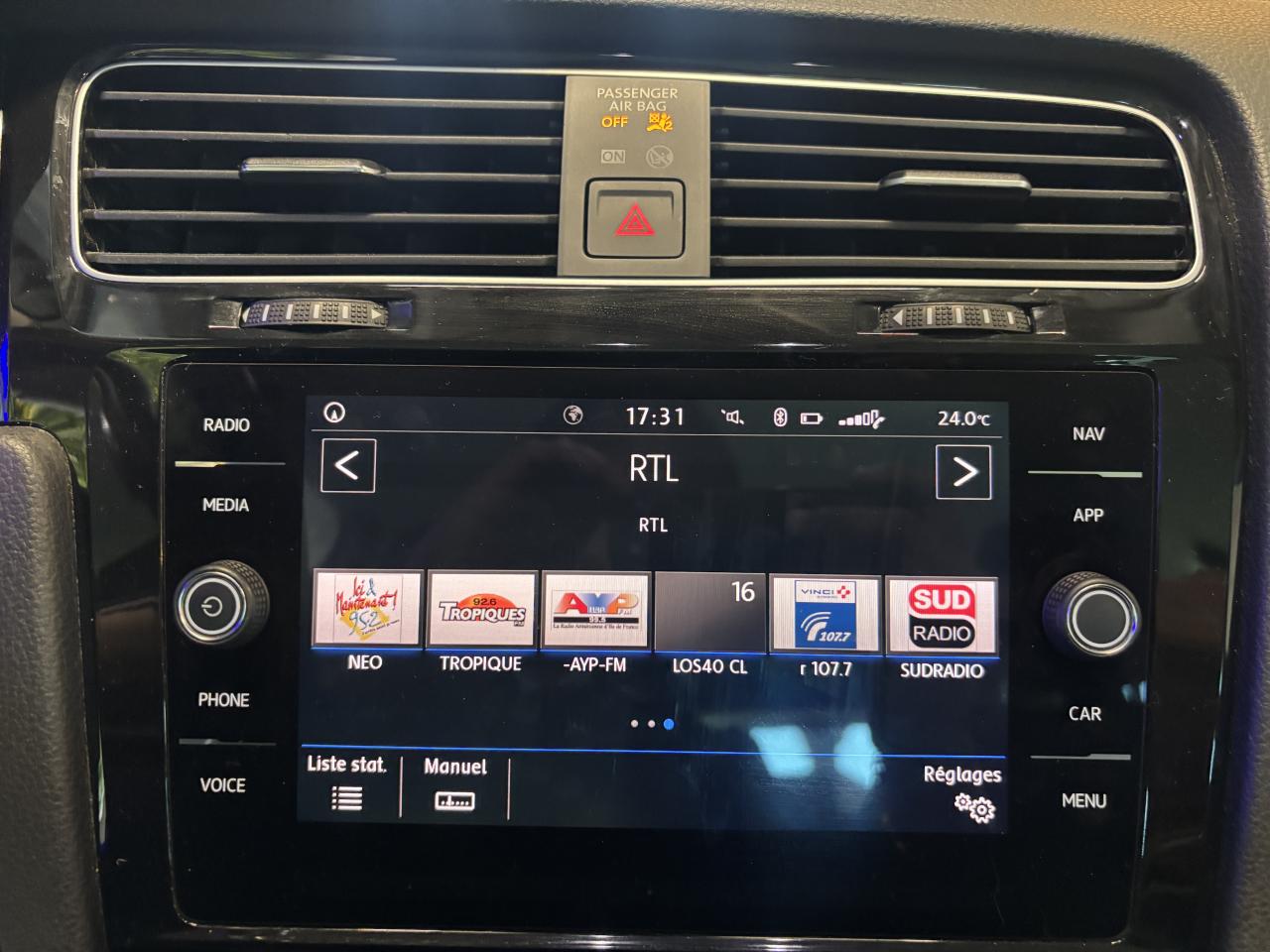3 appuie-tête arrière + ceintures de sécurité arrière 3 pointsAbonnement aux Services Mobiles en ligne Car-Net ‘Guide & Inform' 36 moisAccoudoir central avant réglable avec compartiment de rangement, deux porte-gobelets intégrés et deux bouches d'aération derrière l'accoudoir pour les passagers arrièreAide au stationnement avant et arrière avec signaux sonores et visualisation de la distance des obstacles sur l'écran de la radioAirbag genoux conducteurAirbags frontaux conducteur et passager (déconnectable côté passager)Airbags latéraux avantAirbags rideaux avant et arrièreAlerte de perte de pression des pneusAntenne arrière de toit intégréeAnti-démarrage électroniqueAntipatinage électronique ASRApplication Volkswagen Media ControlApplications décoratives “piano noir laqué” pour tableau de bord côté conducteur ainsi que pour console centraleApplications décoratives spécifiques pour tableau de bord du côté passager avant ainsi que revêtements de portesAppuis-tête à sécurité optimisée réglables en hauteur sur les sièges conducteur et passager avantAssistance au contrebraquageAssistance au freinage d'urgenceAumônière au dos des sièges conducteur et passager avantAvertisseur sonore 2 tons et témoin d'oubli du port de la ceinture de sécurité à l'avantBanquette arrière rabattable 2/3 - 1/3 avec accoudoir central et trappe à skisBlocage électronique de différentiel EDSBoîte à gants réfrigéréeBoutons d'allumage des phares avec filet chroméCache-bagages amovibleCalandre noire avec liseré bleu et logo ‘Bluemotion’Caméra de recul avec visualisation de la zone située à l'arrière du véhicule sur l'écran de la radio ou de la radionavigationCar-Net "App-Connect"Catadioptre dans la partie inférieure des portièresCeintures de sécurité avant trois points à enrouleur, réglables en hauteur, avec prétentionneursCerclage chromé des instruments de bord et des aérateursChâssis “Sport”Climatisation automatique ‘Climatronic’ bi-zone avec filtre antiallergène, réglable séparément pour le conducteur et le passager avantCompartiment de rangement au centre des deux siègesCompartiment de rangement dans le coffreConsole de pavillon avec 1 compartiment de rangement ferméCorrecteur électronique de trajectoire ESPDétection piétonDirection électromécanique à assistance variable en fonction de la vitesseDispositif de fixation pour deux sièges enfants suivant norme ISOFIX aux places extérieures arrièreEasy Entry: facilité d'accès aux places arrièreEclairage diurne à LEDFatigue Detection : Système de détection de fatigue du conducteurFeux arrière à LEDFrein de stationnement électrique avec fonction d'immobilisation en pente ‘Auto-Hold'. Le véhicule se maintient automatiquement en pente et une simple action sur l'accélérateur suffit à désactiver le freinInterface BluetoothJantes en alliage léger 6,5J X 16“ ‘Woodstock’ et pneumatiques 205/55 R16 sans écrous antivolKit de dépannage : compresseur 12 volts et produit d'étanchéité de pneuLave-essuie-glace arrière à balayage intermittentMiroir de courtoisie éclairé dans les pare-soleilOrdinateur de bord multifonction avec affichage de la température extérieure, contrôle des élèments audios, de navigation, et du téléphonePack VisibilitéPare-chocs dans la couleur de la carrosseriePédalier en acier inoxydablePeintures unies Gris UranoPhares halogènesPoignées de portes et rétroviseurs extérieur couleurs carrosseriePorte-boissons (2) à l'avant avec volet et porte-boissons (2) à l'arrière escamotablesPre Safe Assist' : Système proactif de protection des passagersPrise 12V dans le coffrePrise USB compatible AppleProjecteurs antibrouillard avant avec éclairage statique d'intersectionProtection anti-démarrageRégulateur de vitesse adaptatif (ACC)Régulateur électronique de couple MSRRépartiteur de freinage (EBV)Rétroviseurs extérieurs rabattables automatiquementRétroviseurs extérieurs rabattables et réglables électriquement, avec fonction mémoire et dégivrage séparéSellerie tissuSièges avant Confort réglables en hauteur avec réglage lombaireSpots de lecture : deux à l'avant et deux à l'arrièreSystème ‘Start-Stop’ avec mode ‘ECO-Roues libres’ (sans dispositif de récupération de l’énergie au freinage)Système d'antiblocage des roues ABSSystème de Freinage anti-multicollisionSystème Front AssistSystème Navigation & Infotainment ‘Discover Media'Tapis de sol avant et arrièreVerrouillage centralisé avec télécommande à fréquence radio par clé rétractableVitres athermiques teintées vertesVitres avant électriquesVolant 3 branches en cuir et pommeau de levier de vitesses en cuirVolant multifonction en cuir avec commande de la radio, du système Bluetooth, de l'ordinateur de bordVolant réglable en hauteur et en profondeurXDS : Système agissant comme un différentiel autobloquant électronique permettant une meilleure motricité en courbe grâce à une répartition optimale de la puissance et du couple sur les roues avant