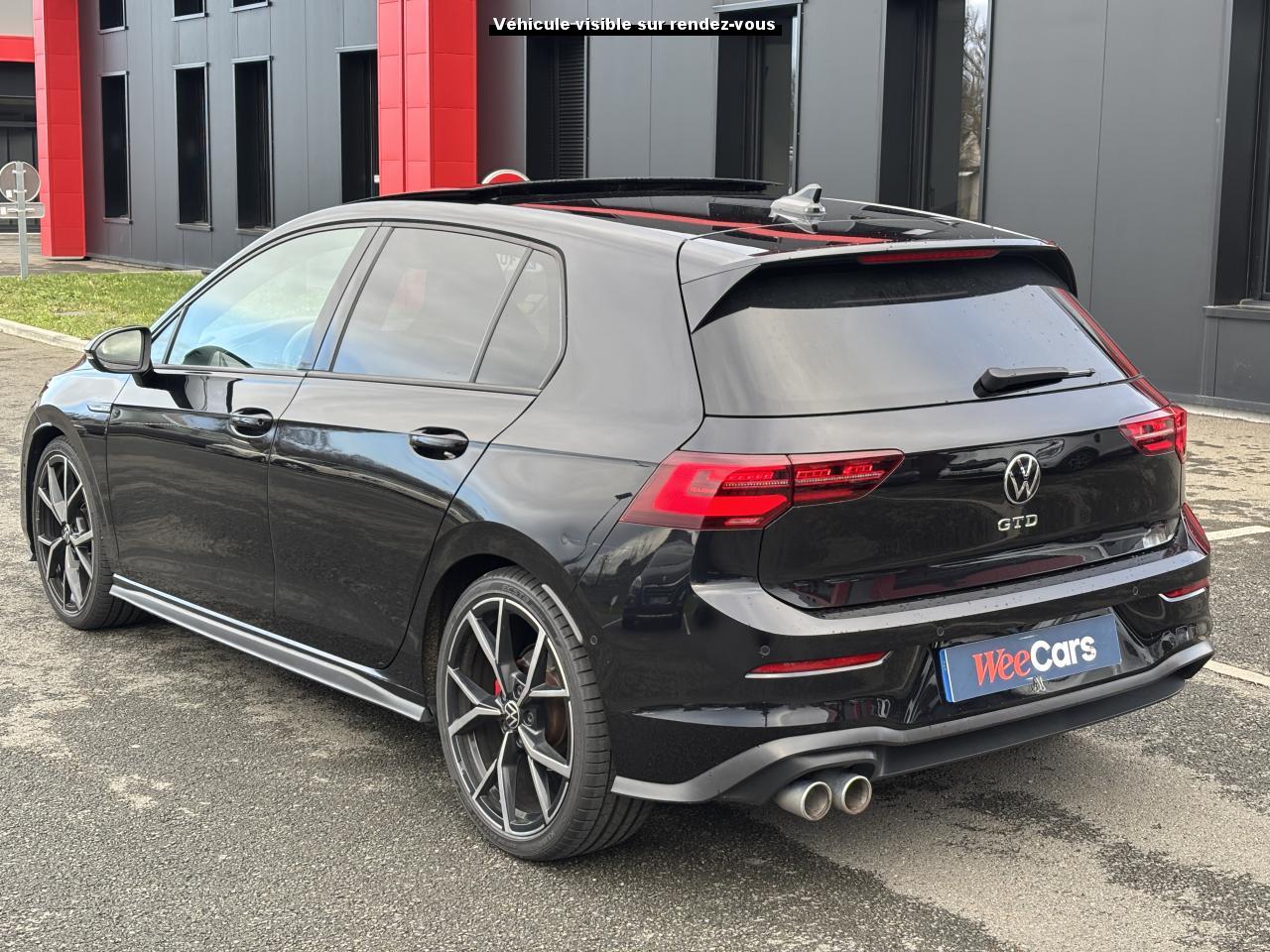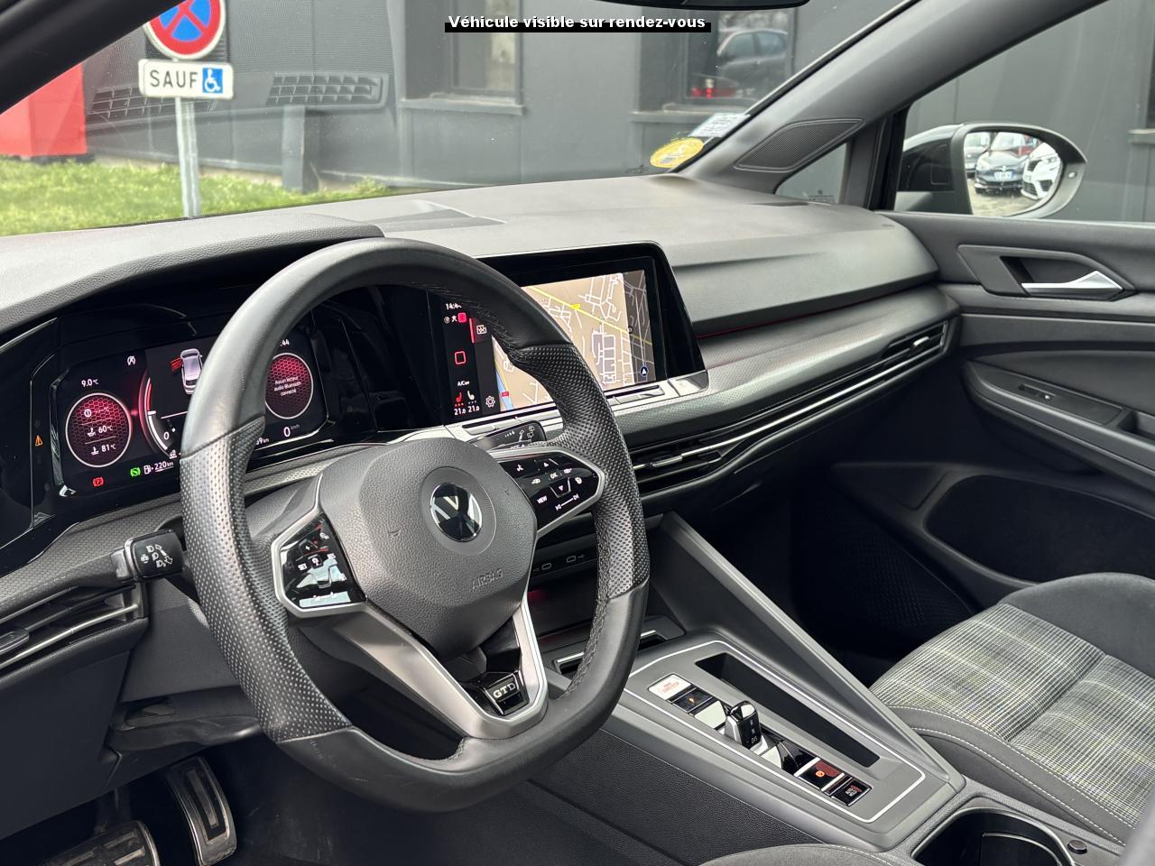 ‘Keyless Access Advanced’ sans alarme : Système de verrouillage/déverrouillage et de démarrage sans clé2 interfaces USB-C à l'avant et 2 prises de chargement USB-C derrière l’accoudoir pour les passagers arrière2 spots de lecture à l'avant et à l'arrière7 haut-parleursAccoudoir central arrière rabattable et deux porte-gobeletsAccoudoir central avant réglable en hauteur et en profondeur avec compartiment de rangementActivation automatique des feux de détresse en cas de freinage d'urgenceAirbags conducteur et passagerAirbags de «tête» passagers avant et arrièreAirbags latéraux avantAlerte de perte de pression des pneusAntipatinage électronique ASRApp-Connect sans filApplications décoratives "Black Metal Chrome" pour le tableau de bord et les revêtements de portes à l'avantAppui-tête arrière réglables en hauteurAppuie-tête à l'avant, réglables en hauteurAssistance au contrebraquageAssistance au freinage d'urgenceBadges GTD sur les ailes avant et inscription GTD sur le hayonBaguette lumineuse entre les projecteursBanquette arrière rabattable 2/3 - 1/3 avec trappe à skisBlocage électronique de différentiel EDSCâble adaptateur USB-C vers USB-ACache-bagages amovibleCeintures de sécurité automatiques avant trois points à enrouleur, réglables en hauteur, avec prétensionneursCiel de pavillon noir soulClimatiseur "Air Care Climatronic" 3 zones et filtre anti-allergène et éléments de commandes à l'arrièreCompartiment de rangement et prise 12 V à l' AVCorrecteur électronique de trajectoire ESPDigital Cockpit Pro : combiné d’instruments digital avec écran digital haute résolution couleur de 10.25”Direction progressiveDisques de frein 17” à l'avant et à l'arrièreDouble sortie d'échappement chromée à gaucheE-call : Appel d’urgence manuel ou automatiqueEclairage à LED de la plaque d'immatriculation arrièreEclairage d'ambiance - 30 couleurs et éclairage de plancher à l'avantEclairage d'ambiance extérieur : poignées de portes éclairées et éclairage périmétrique avec projection du logoEclairage de plancher à LED à l'avant avec possibilité de sélectionner la couleur d'éclairageEcran tactile 10’’Etriers de frein rouge à l'avant et à l'arrièreFatigue Detection : Système de détection de fatigue du conducteurFeu arrière de brouillard d’un côté, feux de recul des deux côtésFixation pour siège enfant ISOFIX (arrière, x2)Frein de stationnement électromécanique avec fonction d’immobilisation en pente ‘Auto hold’ et assistant de démarrage en côteFront assist avec freinage d’urgence et détection de piétonsIndicateur de température extérieure avec avertisseur de gelInterface Bluetooth pour téléphone portable (mains-libres)Interface téléphonique avec fonction de charge inductiveKit de dépannage : compresseur 12 volts et produit d'étanchéité de pneuLave-essuie-glace arrière à balayage intermittentLimiteur de vitesseLiseré gris argent dans la calandre et les projecteursMesures supplèmentaires de protection des piètonsMiroirs de courtoisie éclairés intégrés aux pare-soleilPack Travel Assist: combinaison du Lane Assist, du Side Assist, du Régulateur de distance et de l'Emergency Assist qui interagissentPack visibilitéPare-chocs avant et arrière spécifiques GTD, prise d’air en structure nid d’abeilles à l’avantPark Assist : Système d'assistance au stationnement en créneau et en batailleParkPilot : Système d’aide au stationnement avant/arrière avec signaux sonores et visualisation de la distance des obstacles sur l’écranPédalier et repose-pied en acier inoxydable brosséPeinture unie Blanc PurPoignées de portes couleur carrosseriePréparation We Connect et We Connect PlusPrise 12V dans le coffreProjecteurs antibrouillard dans le bouclier avant et feux de braquageProjecteurs IQ.Light - Matrix LEDProtection antidémarrageRear Assist : Caméra de recul avec visualisationRéception radio numérique DAB+Régulateur électronique de couple MSRRépartiteur électronique de freinage EBVRétroviseur intérieur électrochromeRétroviseurs extérieurs couleur carrosserieRétroviseurs extérieurs rabattables et réglables électriquement, avec fonction mémoire et dégivrage séparéRevêtement de porte et latéral en feuille de mousse et tissuSélection du profil de conduiteSellerie tissu ‘Scale Paper’Service d’appel d’urgence (inclus 10 ans et disponible indépendamment de l’inscription dans le système d’infotainment)Siège du conducteur avec réglage en hauteurSiège passager réglable manuellement en hauteurSièges sport à l’avant spécifiques GTD avec appuis-tête intégrés et appuis lombaires à l’avantSign Assist: Reconnaissance des panneaux de signalisation et affichage sur le ‘Digital Cockpit’ et l’écran du système de radionavigationSystème d'antiblocage des roues ABSSystème de Freinage anti-multicollisionSystème Navigation & Infotainment ‘Discover Media’ avec «Services de streaming et radio via Internet»Système Start/ Stop avec récupération d'énergie de freinageTapis de sol avant et arrièreTechnologie Car2XTémoin et alerte sonore de non-bouclage des ceintures de sécurité avant et arrièreTrains roulants sportVerrouillage centralisé avec télécommande à fréquence radio par clé rétractableVitres arrière et lunette arrière surteintées à 65%Vitres avant et arrière électriquesVolant réglable en hauteur et en profondeurVolant sport multifonction en cuir spécifique GTD avec commandes tactiles, retour haptique et palettes au volantXDS : Système agissant comme un différentiel autobloquant électronique permettant une meilleure motricité en courbe grâce à une répartition optimale de la puissance et du couple sur les roues avant