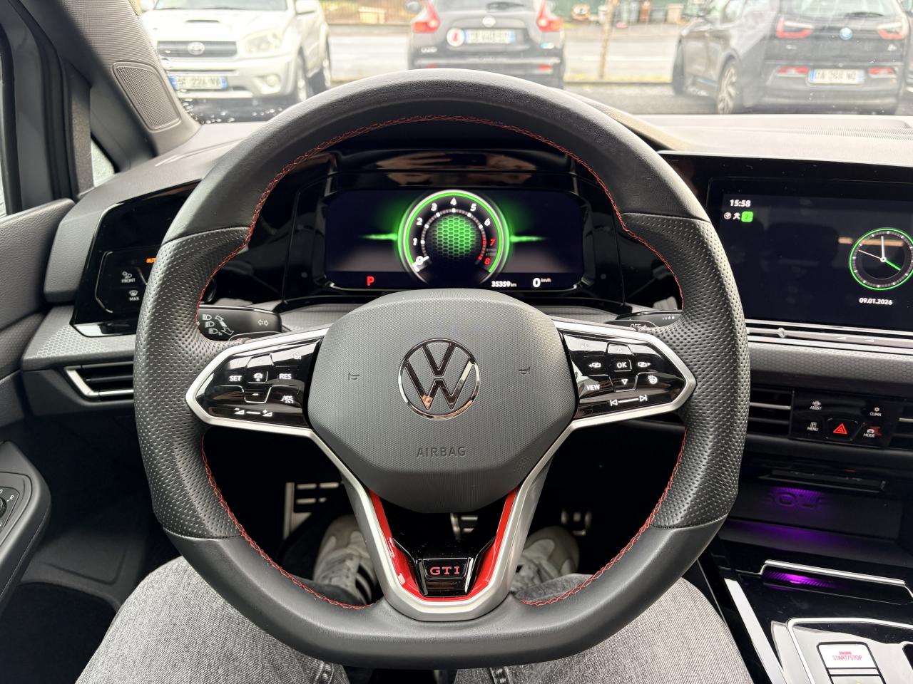 ‘Keyless Access Advanced’ sans alarme : Système de verrouillage/déverrouillage et de démarrage sans clé2 interfaces USB-C à l'avant et 2 prises de chargement USB-C derrière l’accoudoir pour les passagers arrière2 spots de lecture à l'avant et à l'arrière7 haut-parleursAccoudoir central arrière rabattable et deux porte-gobeletsAccoudoir central avant réglable en hauteur et en profondeur avec compartiment de rangementActivation automatique des feux de détresse en cas de freinage d'urgenceAirbags conducteur et passagerAirbags de «tête» passagers avant et arrièreAirbags latéraux avantAlerte de perte de pression des pneusAntipatinage électronique ASRApp-Connect sans filApplications décoratives "Black Metal Chrome" pour le tableau de bord et les revêtements de portes à l'avantAppui-tête arrière réglables en hauteurAssistance au contrebraquageAssistance au freinage d'urgenceBadge GTi sur les ailes avant et le volet arrièreBaguette lumineuse entre les projecteursBanquette arrière rabattable 2/3 - 1/3 avec trappe à skisBecquet arrière de pavillon noir en deux partiesBlocage de différentiel d'essieu avant ‘VAQ'Blocage électronique de différentiel EDSCâble adaptateur USB-C vers USB-ACache-bagages amovibleCaméra de recul 'Rear View'Ceintures de sécurité automatiques avant trois points à enrouleur, réglables en hauteur, avec prétensionneursCerclage chromé des commandes des vitres, de réglage des rétroviseurs et des aérateursCiel de pavillon noir soulClimatiseur "Air Care Climatronic" 3 zones et filtre anti-allergène et éléments de commandes à l'arrièreCompartiment de rangement et prise 12 V à l' AVCorrecteur électronique de trajectoire ESPDCC : Système d'amortissement piloté avec selection du profil de conduiteDiffuseur arrière spécifique ‘GTI Clubsport'Digital Cockpit Pro : combiné d’instruments digital avec écran digital haute résolution couleur de 10.25”Direction progressiveE-call : Appel d’urgence manuel ou automatiqueEclairage à LED de la plaque d'immatriculation arrièreEclairage d'ambiance extérieur : poignées de portes éclairées et éclairage périmétrique avec projection du logoEclairage d’ambiance 30 couleursEclairage de plancher à LED à l'avant avec possibilité de sélectionner la couleur d'éclairageEcran tactile 10’’Etriers de frein rouge à l'avant et à l'arrièreFatigue Detection : Système de détection de fatigue du conducteurFeu arrière de brouillard d’un côté, feux de recul des deux côtésFixation pour siège enfant ISOFIX (arrière, x2)Frein de stationnement électromécanique avec fonction d’immobilisation en pente ‘Auto hold’ et assistant de démarrage en côteFreins à disque 18” à l’avant et 17” à l’arrièreFront assist avec freinage d’urgence et détection de piétonsIndicateur de température extérieure avec avertisseur de gelInterface Bluetooth pour téléphone portable (mains-libres)Interface téléphonique avec fonction de charge inductiveJantes en alliage léger 19" 'Adelaide' 7,5 J x 19 avec écrous antivol et pneumatiques sport 235/35 R 19Kit de dépannage : compresseur 12 volts et produit d'étanchéité de pneuLave-essuie-glace arrière à balayage intermittentLimiteur de vitesseLiseré rouge dans la calandre et les pharesMesures supplèmentaires de protection des piètonsMiroirs de courtoisie éclairés intégrés aux pare-soleilPack Travel Assist: combinaison du Lane Assist, du Side Assist, du Régulateur de distance et de l'Emergency Assist qui interagissentPack visibilitéPalettes au volantPare-chocs avant et arrière couleur carrosseriePare-chocs avant et arrière spécifiques GTI Clubsport, prise d'air en structure nid d'abeilles à l'avantPark Assist : Système d'assistance au stationnement en créneau et en batailleParkPilot : Système d’aide au stationnement avant/arrière avec signaux sonores et visualisation de la distance des obstacles sur l’écranPédalier et repose-pied en acier inoxydable brosséPeinture unie Blanc PurPoignées de portes couleur carrosseriePréparation We Connect et We Connect PlusPrise 12V dans le coffreProjecteurs antibrouillard dans le bouclier avant et feux de braquageProjecteurs IQ.Light - Matrix LEDProtection antidémarrageRéception radio numérique DAB+Régulateur de vitesse adaptatif et prédictif 'ACC' jusqu’à l’arrêt completRégulateur électronique de couple MSRRépartiteur électronique de freinage EBVRétroviseur intérieur électrochromeRétroviseurs extérieurs couleur carrosserieRétroviseurs extérieurs rabattables et réglables électriquement, avec fonction mémoire et dégivrage séparéRevêtement de porte et latéral en feuille de mousse et tissuSellerie sport spécifique en microfibre/tissuService d’appel d’urgence (inclus 10 ans et disponible indépendamment de l’inscription dans le système d’infotainment)Sièges avant réglables en hauteurSièges Sport à l'avant spécifiques GTI Clubsport avec appuis-tête intégrés et appuis lombaires à l'avantSign Assist: Reconnaissance des panneaux de signalisation et affichage sur le ‘Digital Cockpit’ et l’écran du système de radionavigationSortie d’échappement ovale à gauche et à droiteStickers latérauxSystème d'antiblocage des roues ABSSystème de Freinage anti-multicollisionSystème Navigation & Infotainment ‘Discover Media’ avec «Services de streaming et radio via Internet»Système Start/ Stop avec récupération d'énergie de freinageTapis de sol avant et arrièreTechnologie Car2XTémoin et alerte sonore de non-bouclage des ceintures de sécurité avant et arrièreTrains roulants sportVerrouillage centralisé avec télécommande à fréquence radio par clé rétractableVitres arrière et lunette arrière surteintées à 65%Vitres avant et arrière électriquesVolant réglable en hauteur et en profondeurVolant sport multifonction en cuir spécifique ‘GTI Clubsport’ avec surpiqures rouges, commandes tactiles, re