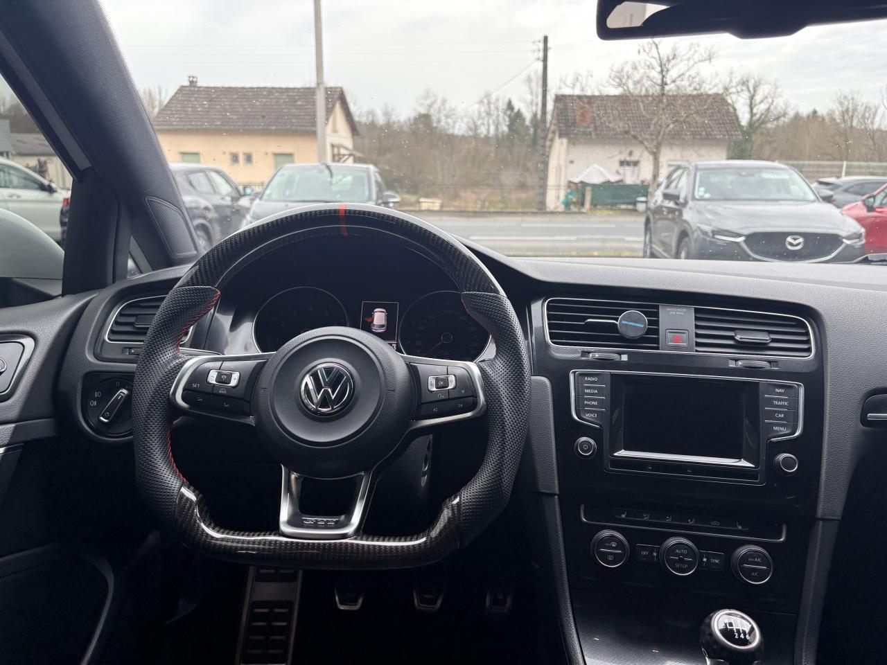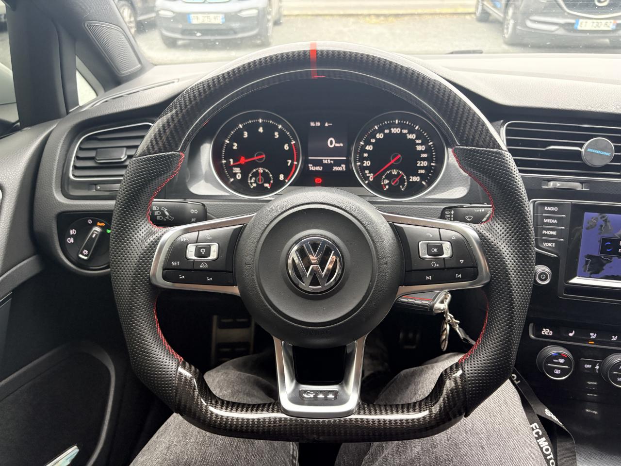 Accoudoir central avant réglable avec compartiment de rangement, deux porte-gobelets intégrés et deux bouches d'aération derrière l'accoudoir pour les passagers arrièreAffichage de la périodicité d'entretienAide au stationnement avant et arrière avec signaux sonores et visualisation de la distance des obstacles sur l'écran de la radioAirbag genoux conducteurAirbags frontaux conducteur et passager (déconnectable côté passager)Airbags latéraux avantAirbags rideaux avant et arrièreAlerte de perte de pression des pneusAntenne arrière de toit intégréeApplications ‘Checkered Black'Appuis-tête à sécurité optimisée réglables en hauteur sur les sièges conducteur et passager avantAppuis-tête arrière (3) en forme de “L” réglables en hauteur sur les places latérales et ceintures de sécurité arrière (3) à trois points d'ancrageAumônière au dos des sièges conducteur et passager avantAvertisseur sonore de non-extinction des phares et de non bouclage des ceintures de sécurité (conducteur et passager)Banquette arrière rabattable 2/3 - 1/3 avec accoudoir central et trappe à skisBoîte à gants verrouillable, éclairée et réfrigéréeBoutons d'allumage des phares avec filet chroméBoutons de lève-glace et de réglage de rétroviseurs avec filet chroméCache bagages amovible et logeable dans le coffreCarrosserie entièrement galvaniséeCatadioptre dans la partie inférieure des portièresCeintures de sécurité avant trois points à enrouleur, réglables en hauteur, avec prétentionneursCerclage chromé des instruments de bord et des aérateursCiel de pavillon noirClimatisation automatique ‘Climatronic' bi-zone, réglable séparément pour conducteur et passagerCompartiment de rangement au centre des deux siègesCompartiment de rangement dans le coffreCompartiment de rangement sur la planche de bordConsole de pavillon avec 1 compartiment de rangement ferméCorrecteur électronique de trajectoire ESP, amplificateur de freinage d'urgence, système d'antiblocage des roues ABS, blocage électronique de différentiel EDS, répartiteur électronique de freinage EBV, antipatinage électronique ASR , r&eacutCoupler BoxCoupler Box En combinaison avec Discover ProCrochet pour sacs dans le coffre à bagagesDirection électromécanique à assistance variable en fonction de la vitesseDirection progressiveDispositif de fixation pour deux sièges enfants suivant norme ISOFIX aux places extérieures arrièreDisques de frein 16'' à l'avantEclairage à LED de la plaque d'immatriculation arrièreEclairage blanc sur les instruments et rouge sur les commandesEclairage d'ambiance rouge dans les portièresEclairage de la plaque d'immatriculation arrière à LEDEclairage diurneEclairage du coffreEtriers de frein rouge à l'avant et à l'arrièreFatigue Detection : Système de détection de fatigue du conducteurFeux arrière sombres à LEDFiltre à pollen et à charbons actifsFrein de stationnement électrique avec fonction d'immobilisation en pente ‘Auto-Hold'. Le véhicule se maintient automatiquement en pente et une simple action sur l'accélérateur suffit à désactiver le freinJantes en alliage léger ‘Brooklyn' 7J X 17” et pneumatiques 225/45 R17 avec écrous antivol et châssis sportKeyless Access : Système de verrouillage/déverrouillage sans cléKit de dépannage : compresseur 12 volts et produit d'étanchéité de pneuLave-essuie-glace arrière à balayage intermittentLiseré rouge dans la calandre et les pharesMiroir de courtoisie éclairé dans les pare-soleilOrdinateur de bord couleur avec affichage multifonctionPack VisibilitéPare-chocs avant et arrière spécifiques GTIPare-chocs dans la couleur de la carrosseriePlafonnier à extinction temporiséePlancher de coffre modulablePoignées de portes et rétroviseurs extérieur couleurs carrosseriePommeau de levier de vitesse en forme de balle de golfPorte-boissons (2) à l'avant avec volet et porte-boissons (2) à l'arrière escamotablesPorte-bouteille (1,5L) dans les portières avant, vide-poches dans les portières arrièrePre Safe Assist' : Système proactif de protection des passagersPrise 12V dans le coffreProjecteurs antibrouillard à LED (sans éclairage statique d'intersection)Projecteurs bi-Xénon directionnels pour feux de route et feux de croisement. Feux de jour à LED, éclairage statique d'intersection, réglage dynamique du site des phares, lave-phares et témoin de lave-glaceProtection antidémarrage ImmotronicRégulateur de vitesse adaptatif (ACC)Rétroviseur extérieur côté passager avec fonction mémoireRétroviseurs extérieurs électriques et dégivrants, asphérique côté conducteurRétroviseurs extérieurs incluant le rappel de clignotantSeuils de porte éclairés GTISiège conducteur réglable en hauteurSièges avant Sport avec Sellerie tissu ‘Interlagos'Sortie d'échappement chromée à gauche et à droiteSpots de lecture (2) à l'avant avec cerclage chromé et spots de lecture (2) à l'arrièreSurpiqûres rouge sur le cuir du volant et sur le soufflet du levier de vitesseSystème de Freinage anti-multicollisionSystème de protection évitant l'utilisation d'un mauvais carburantSystème Front AssistSystème Navigation & Infotainment ‘Discover Media'Système Start/ Stop avec récupération d'énergie de freinageTapis de sol avant et arrièreTiroirs de rangement sous les sièges avantVerrouillage centralisé avec télécommande à fréquence radio par clé rétractableVitres arrière électriquesVitres arrière et lunette arrière surteintées à 65%Vitres athermiques teintées vertesVitres avant électriquesVolant 3 branches, réglable en hauteur et en profondeurVolant sport cuir multifonctionXDS : Système agissant comme un différentiel autobloquant électronique permettant une meilleure motricité en courbe grâce à une répartition optimale de la puissance et du couple sur les roues avant