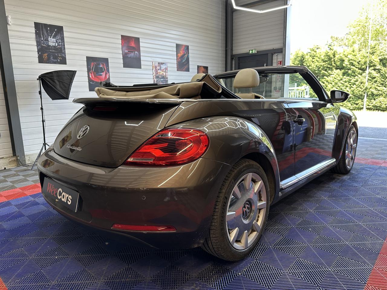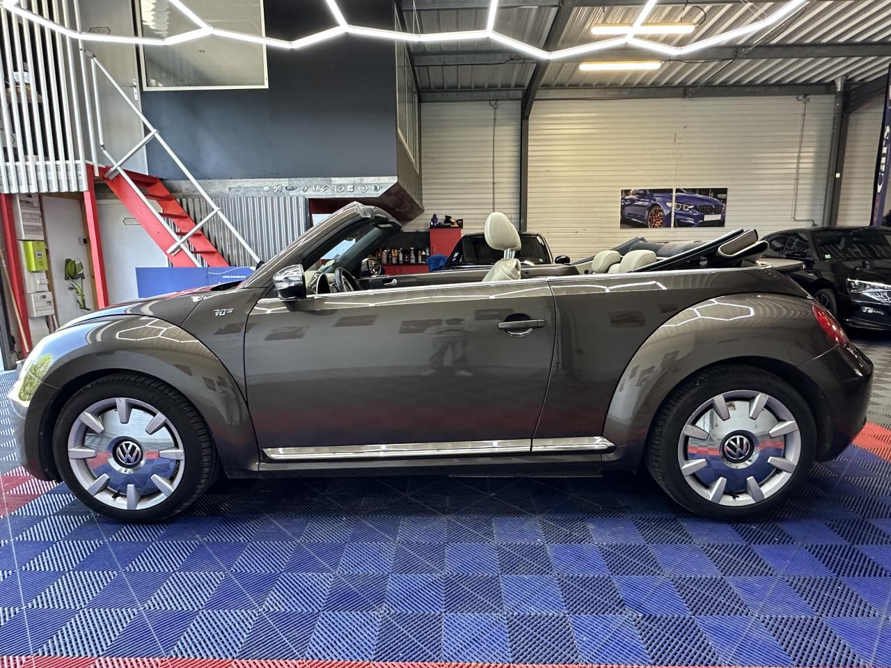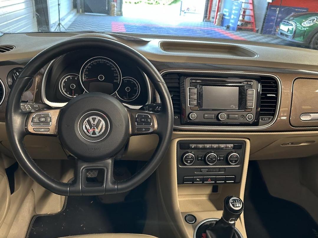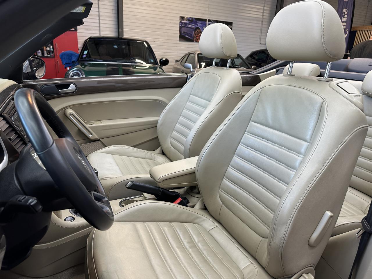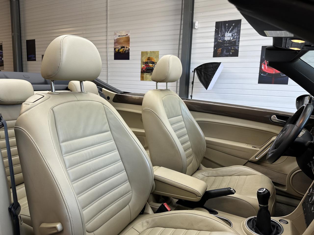 2 prises 12V dans la console centrale (1 à l'avant, 1 à l'arrière)Accoudoir central avantAirbag latéraux avant avec airbag rideaux (Airbag passager désactivable par clef)Airbags frontaux conducteur et passager (déconnectable côté passager)Alerte de perte de pression des pneusApplications chrome sur levier de vitesses, frein à main et porte-gobeletsApplications décoratives sur tableau de bord et contre-portes dans la teinte de la carrosserieAppuis-tête à sécurité optimisée réglables en hauteur sur les sièges avantsAvertisseur et temoin d'oubli de ceinture de sécuritéBaguettes chromées sur le bas des vitres latéralesBas de porte couleur carrosserie avec insert chroméBoîte à gants verrouillableBuses de lave-glace chauffantesCarrosserie entièrement galvaniséeCatadioptre de sécurité dans la partie inférieure des portièresCeintures de sécurité avant trois points avec prétensionneursClimatisation automatique ‘Climatronic' bi-zone, réglable séparément pour conducteur et passagerCompartiment additionnelle ‘Coccinelle' sur le haut du tableau de bordCorrecteur électronique de trajectoire ESP, amplificateur de freinage d'urgence, système d'antiblocage des roues ABS, blocage électronique de différentiel EDS, antipatinage électronique ASR et régulateur électronique de couple MSRCouvre capote amovibleDiffuseur arrière noirDirection électromécanique à assistance variable en fonction de la vitesse (Servotronic)Dispositif de fixation pour sièges enfants aux normes ISOFIX aux places arrièreDossier de sièges arrière rabattables symétriquementEasy-Entry : facilité d'accès avec déverrouillage des dossiers et coulissement des assises des sièges avantEclairage dans le coffreEssuie-glace avant avec commande d'intermittenceFilet anti-remousInscriptions ‘70's' sur les ailes avantInscriptions ‘Coccinelle' sur malle arrièreInterface Bluetooth pour téléphone portable (mains-libres)Jantes 18” ‘Disc' et pneumatiques 235/45 R 18Lamelle de pare-chocs chroméeLevier de frein à main recouvert de cuirLunette arrière en verre avec fonction dégivrageMiroirs de courtoisie pour conducteur et passagerOrdinateur de bord grand écranPack ‘B-Classy'Pack ‘Visibilité'Pack B-UrbanPack chrome intérieurPack FumeurPare-chocs et rétroviseurs dans la couleur de la carrosseriePeinture métallisée Brun Graciosa ou Gris Platine, capote beige ou nacréePoignées de portes couleur carrosseriePommeau de levier de vitesses recouvert de cuirPorte-gobelets (2 AV & 1 AR)Projecteurs antibrouillard avant avec éclairage statique d'intersectionProjecteurs halogènes H7Protection antidémarrage électroniqueRégulateur de vitesseRétroviseurs dégivrants à réglages électriques, asphériques côté conducteurRétroviseurs extérieurs avec rappels de clignotants intégrésRétroviseurs extérieurs chromésRoue de secours à encombrement réduitSellerie en cuir ‘Vienna' Beige Nutria sur sièges sport avec tableau de bord beigeSeuils de portes en aluminiumSièges avant confort avec réglage lombaireSièges avants réglables en hauteurSpoiler sur le hayon arrièreSystème d'arceaux de sécurité anti-retournement actifSystème de chauffage et de ventilation à 4 niveaux avec fonction recirculation de l'airTapis de sol textile à l'avant et à l'arrièreToit souple à commande électro-hydraulique entièrement automatiqueVerrouillage centralisé avec télécommande à fréquence radio par clé rétractableVitres électriques avec fonction ConfortVolant 3 branches recouvert de cuirVolant multifonction cuir
