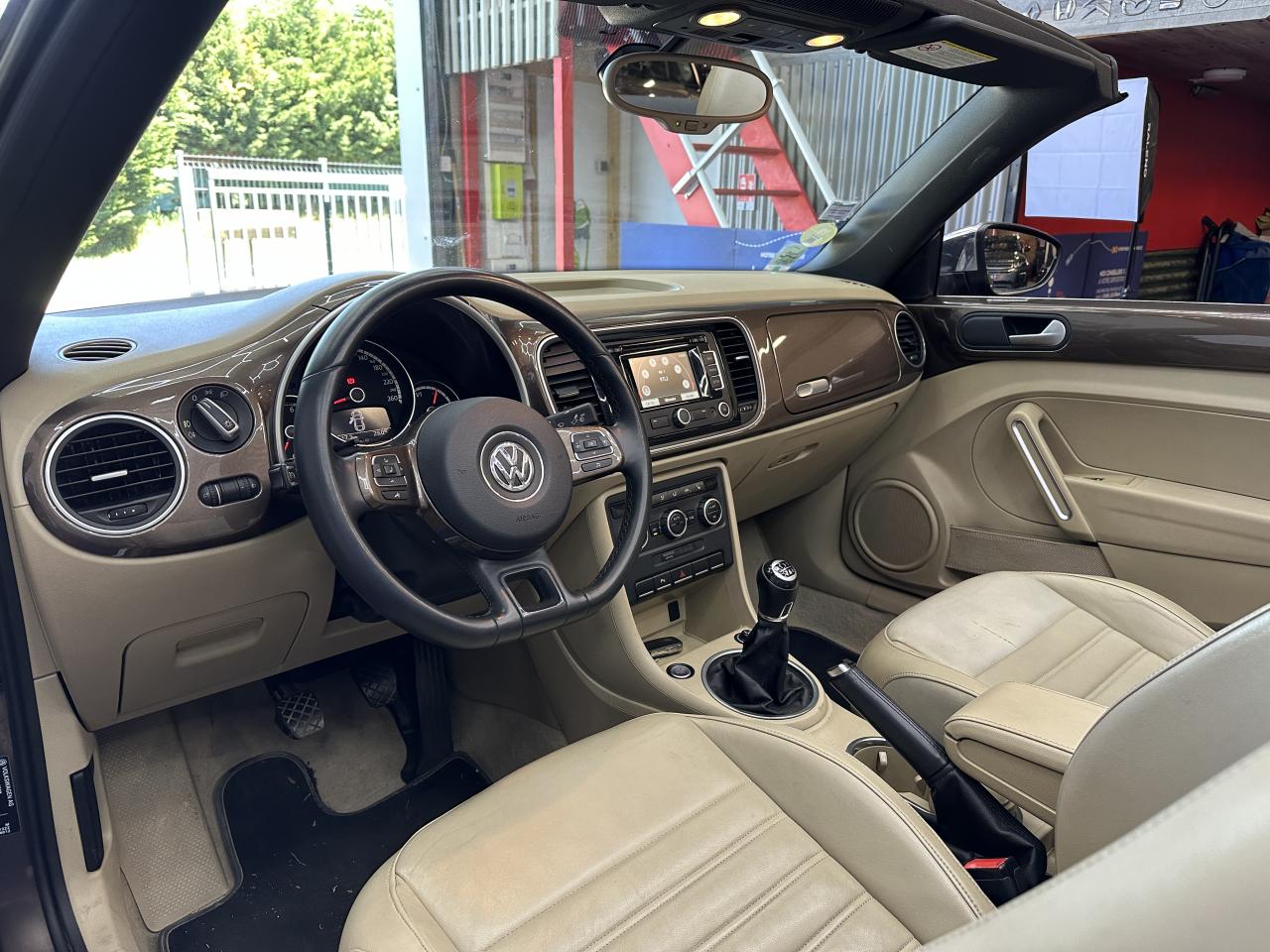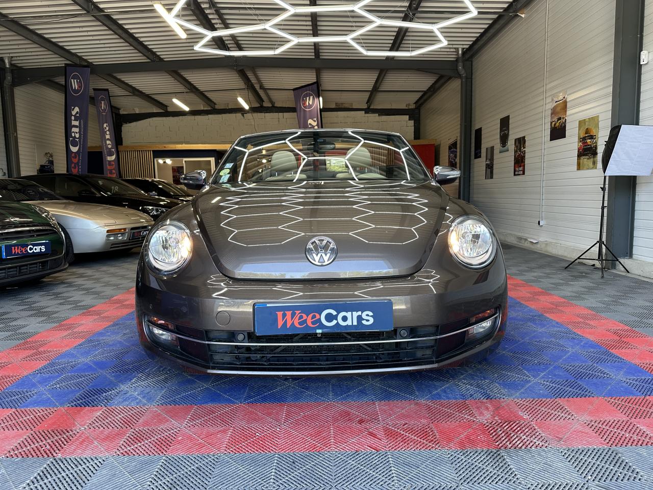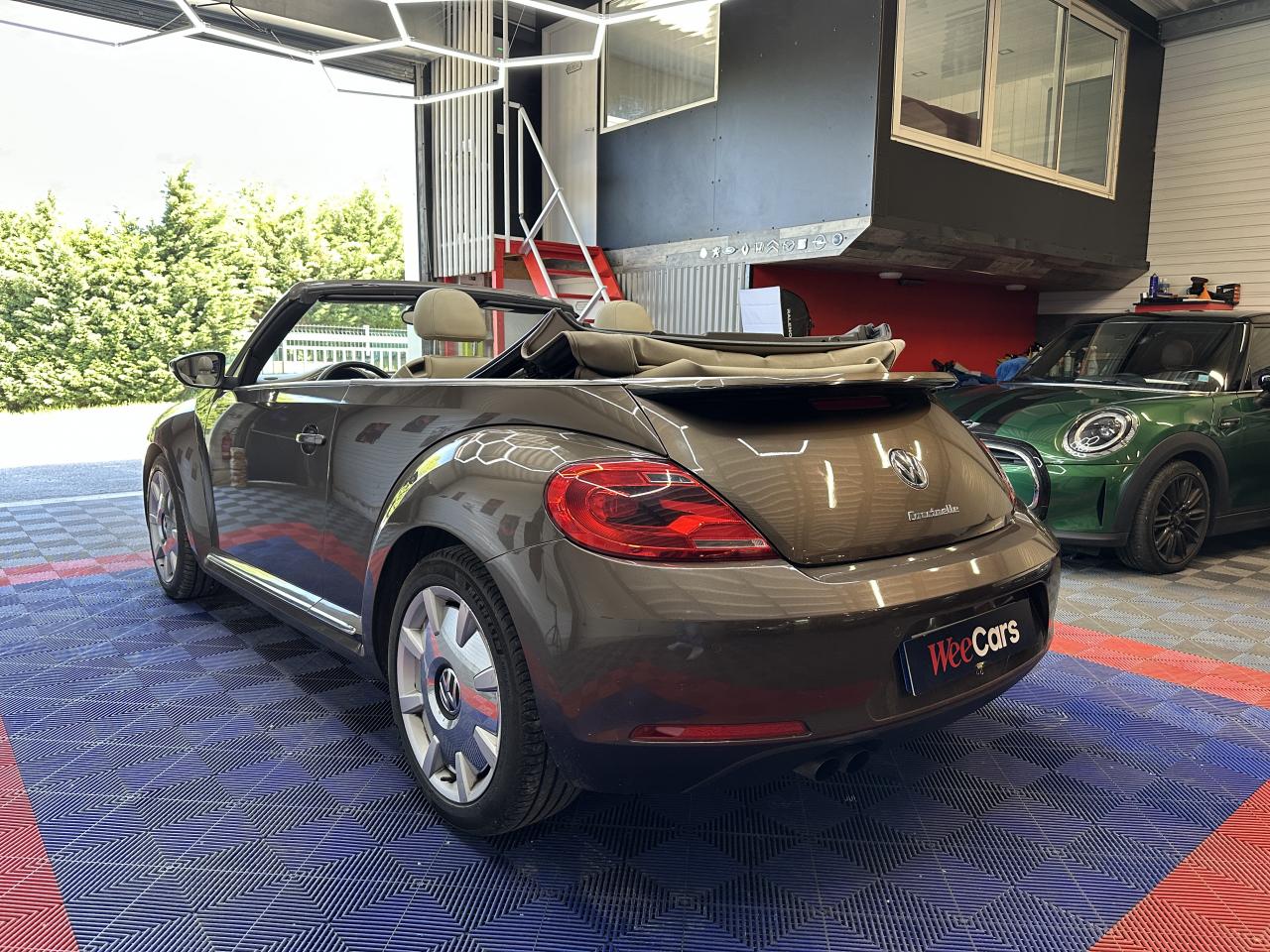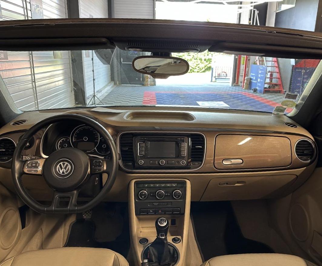 2 prises 12V dans la console centrale (1 à l'avant, 1 à l'arrière)Accoudoir central avantAirbag latéraux avant avec airbag rideaux (Airbag passager désactivable par clef)Airbags frontaux conducteur et passager (déconnectable côté passager)Alerte de perte de pression des pneusApplications chrome sur levier de vitesses, frein à main et porte-gobeletsApplications décoratives sur tableau de bord et contre-portes dans la teinte de la carrosserieAppuis-tête à sécurité optimisée réglables en hauteur sur les sièges avantsAvertisseur et temoin d'oubli de ceinture de sécuritéBaguettes chromées sur le bas des vitres latéralesBas de porte couleur carrosserie avec insert chroméBoîte à gants verrouillableBuses de lave-glace chauffantesCarrosserie entièrement galvaniséeCatadioptre de sécurité dans la partie inférieure des portièresCeintures de sécurité avant trois points avec prétensionneursClimatisation automatique ‘Climatronic' bi-zone, réglable séparément pour conducteur et passagerCompartiment additionnelle ‘Coccinelle' sur le haut du tableau de bordCorrecteur électronique de trajectoire ESP, amplificateur de freinage d'urgence, système d'antiblocage des roues ABS, blocage électronique de différentiel EDS, antipatinage électronique ASR et régulateur électronique de couple MSRCouvre capote amovibleDiffuseur arrière noirDirection électromécanique à assistance variable en fonction de la vitesse (Servotronic)Dispositif de fixation pour sièges enfants aux normes ISOFIX aux places arrièreDossier de sièges arrière rabattables symétriquementEasy-Entry : facilité d'accès avec déverrouillage des dossiers et coulissement des assises des sièges avantEclairage dans le coffreEssuie-glace avant avec commande d'intermittenceFilet anti-remousInscriptions ‘70's' sur les ailes avantInscriptions ‘Coccinelle' sur malle arrièreInterface Bluetooth pour téléphone portable (mains-libres)Jantes 18” ‘Disc' et pneumatiques 235/45 R 18Lamelle de pare-chocs chroméeLevier de frein à main recouvert de cuirLunette arrière en verre avec fonction dégivrageMiroirs de courtoisie pour conducteur et passagerOrdinateur de bord grand écranPack ‘B-Classy'Pack ‘Visibilité'Pack B-UrbanPack chrome intérieurPack FumeurPare-chocs et rétroviseurs dans la couleur de la carrosseriePeinture métallisée Brun Graciosa ou Gris Platine, capote beige ou nacréePoignées de portes couleur carrosseriePommeau de levier de vitesses recouvert de cuirPorte-gobelets (2 AV & 1 AR)Projecteurs antibrouillard avant avec éclairage statique d'intersectionProjecteurs halogènes H7Protection antidémarrage électroniqueRégulateur de vitesseRétroviseurs dégivrants à réglages électriques, asphériques côté conducteurRétroviseurs extérieurs avec rappels de clignotants intégrésRétroviseurs extérieurs chromésRoue de secours à encombrement réduitSellerie en cuir ‘Vienna' Beige Nutria sur sièges sport avec tableau de bord beigeSeuils de portes en aluminiumSièges avant confort avec réglage lombaireSièges avants réglables en hauteurSpoiler sur le hayon arrièreSystème d'arceaux de sécurité anti-retournement actifSystème de chauffage et de ventilation à 4 niveaux avec fonction recirculation de l'airTapis de sol textile à l'avant et à l'arrièreToit souple à commande électro-hydraulique entièrement automatiqueVerrouillage centralisé avec télécommande à fréquence radio par clé rétractableVitres électriques avec fonction ConfortVolant 3 branches recouvert de cuirVolant multifonction cuir