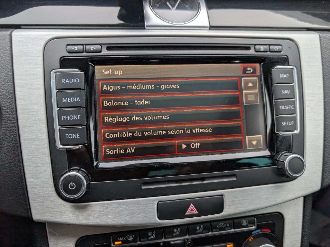 2 ceintures de sécurité avant et arrière (2) trois points à enrouleur, réglables en hauteur avec prétensionneurs pour les ceintures avant2 porte-gobelets à l'avant avec volet2 spots de lecture AV avec cerclage chromé et 2 spots ARAccoudoir central avant réglable avec compartiment de rangement et deux bouches d'aération derrière l'accoudoir pour les passagers arrièreAccoudoir central avant réglable en hauteur avec compartiment de rangement et 2 diffuseurs de ventilation pour les places arrièreActivation automatique des feux de détresse en cas de freinage d'urgenceAide au stationnement avant et arrière avec signaux sonores et visualisation de la distance des obstacles sur l'écran de la radioAirbags frontaux et latéraux conducteur et passager à déclenchement adaptatif pour les Airbag frontauxAirbags rideaux avant et arrièreAlerte électronique de perte de pression des pneumatiques : fonctionne à partir des capteurs ABSAnneaux d'arrimageApplications décoratives en Ronce de Noyer sur la planche de bord et les contre-portes, et Aluminium brossé sur la console centrale.Appuis-tête à sécurité optimisée à l'avant, réglables en hauteur et appuis-tête arrière (2), réglables en hauteurAuto-Hold Frein de stationnement autobloquant avec fonction de serrage et desserrage automatiqueAvertisseur sonore et témoin d'oubli du port de la ceinture de sécurité à l'avantBaguettes latérales de protection et de pare-chocs arrière chroméesBanquette arrière 3 places avec 3 appuis-têtesBoîte à gants verrouillable, éclairée et réfrigéréeCalandre chromée (entourage et barrettes horizontales), avec logo Volkswagen cerclé de chromeCarrosserie entièrement galvanisée garantie 12 ans contre la corrosion d'origine interneChâssis 'Sport' non surbaisséChâssis “Sport”Clignotants à verre blanc, intégrés dans le bouclier avantClimatisation automatique 'Climatronic 2C', réglable séparément pour les passagers gauche et droite, filtre anti-pollen, recyclage automatique avec capteur de pollution et touche 'Rest'.Climatisation automatique ‘Climatronic' bi-zone, réglable séparément pour conducteur et passagerCoffre revêtu de moquetteCommande intérieure électrique pour le déverrouillage du coffre et la trappe de carburantCompartiment de rangement dans la console de pavillonCompartiment de rangement dans les portes avant avec emplacement pour bouteilleCompartiment de rangement entre les 2 places arrière avec volet de fermeture et 2 porte-boissons escamotablesConfiguration fumeur : cendriers à l'avant et à l'arrière, allume-cigare à l'avantCorrecteur électronique de trajectoire ESP incluant ABS antiblocage des roues avec assistance au freinage d'urgence, ASR antipatinage électronique, EDS blocage électronique de différentiel, MSR régulateur de couple, et stabilisation d'attelageDétecteur de fatigueDiffuseurs arrière (2) intégrés à l'accoudoir central avantDirection électromécanique à assistance variable asservie à la vitesse avec fonction de compensation des effets du vent latéral pour recentrage du point milieuDispositif de fixation pour deux sièges enfants suivant norme ISOFIX aux places arrièreDispositif électronique de démarrage sans clé "Press and Drive", grâce au boîtier de télécommande des portes à insérer au tableau de bordDossier de banquette arrière rabattable, fractionnable asymétriquementEclairage des instruments réglable en intensité. Design nocturne rouge pour les boutons.Entourage des vitres latérales chroméEssuie-glace avant avec commande d'intermittence à quatre positions, et déclenchement automatiqueFrein de stationnement electromécaniqueHorloge analogique sur le tableau de bordIndicateur de température extérieure avec avertisseur de gelInserts chromés pour les cadrans du tableau de bord et le comodo d'éclairageInterface Bluetooth pour téléphone portable (mains-libres)Jantes en alliage léger 'Interlagos' 8JX18 (4) avec pneumatiques 235/40 R 18Jantes en alliage léger 18'' ‘Interlagos' et pneumatiques ContiSeal 235/40 R18 avec écrous antivolOrdinateur de bord multifonction avec affichage grand écranOuverture du coffre à distance par télécommandePack 'Visibilité'Pack 'Visibilité'Pack 'Visibilité' : Allumage automatique des feux, Fonction 'Leaving Home', Essuie glace automatique, Rétroviseur intérieur jour et nuit automatique, Miroirs de courtoisie éclairésPack hiverPack Hiver 1Pack SportPack SportPanneaux de portes revêtus aspect cuirPare-brise et vitres athermiques teintés vertPare-soleil pour le conducteur et le passager avant avec miroir de courtoisie éclairantsPark-Pilot' Aide au stationnement acoustique et optique par radars situés dans les boucliers avant et arrièrePlancher de coffre relevable avec compartiment de rangementPneumatiques anti-crevaison : un mélange polymérisant contenu à l'intérieur de la bande de roulement produit un effet d'auto-colmatage en cas de perforation de la bande de roulement par des objets jusqu'à 5mm de diamètrePneumatiques ContiSeal : un mélange polymérisant contenu à l'intérieur de la bande de roulement produit un effet d'auto-colmatage en cas de perforation de la bande de roulement par des objets jusqu'à 5mm de diamètrePommeau de levier de vitesses en cuirPrises 12 V dans le coffre et au dos de l'accoudoir central avantProjecteurs antibrouillardProjecteurs halogènes à l'avant, avec éclairage statique d'intersectionProtection anti-démarrage Immotronic® agréée SRA 7 clésProtection en plastique sur le seuil du coffreRadio RCD 310 avec lecteur CD en façadeRappels latéraux de clignotant intégrés aux rétroviseurs extérieurs, à diodes LEDRCD 310 : Radio CD 8 haut-parleurs (4 x 20 W)Réflecteurs dans les 4 portièresRégulateur de vitesseRétroviseur extérieur photosensible côté conducteur, rétroviseur extérieur s'inclinant vers le sol en marche arrière côté passager.Rétroviseurs extérieurs électriques et dégivrants
