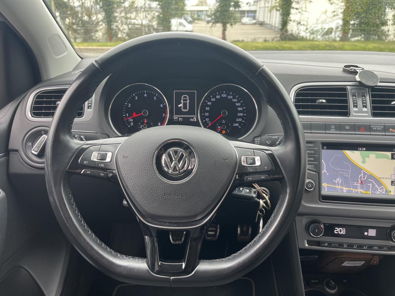 ‘Fatigue Detection' : Système de détection de fatigue du conducteur qui analyse le comportement du conducteur et recommande un temps de repos par l'apparition d'un message visuel et sonore3ème feu stop surélevé4 jantes en alliage léger diamantées 15'' ‘Linas', pneumatiques 185/60 R15 avec écrous antivolAbonnement aux Services Mobiles en ligne Car-Net ‘Guide & Inform' 36 moisAide au démarrage en côte ‘Hill-Hold'Airbag frontaux conducteur et passagerAirbags latéraux/tête avantAlerte de perte de pression des pneusAntenne arrière de pavillonAnti-patinage électronique ASRApplications décoratives ‘argent foncé satiné' sur la console centraleAppuis-tête (3) et ceintures de sécurité 3 points (3) sur la banquette arrièreAppuis-tête à sécurité optimisée à l'avant (2)Aumônières au dos des sièges avantAvertisseur sonore de non-extinction des phares et de non bouclage des ceintures de sécurité (conducteur et passager)Avertisseur sonore deux tonsBacs de rangement dans toutes les portières, à l'avant avec porte-boisson pour des bouteilles à 1,5LBadges spécifiques ‘Allstar'Banquette et dossier arrière asymétriques, rabattables 1/3-2/3, avec double plancher de coffre à bagagesBlocage électronique de différentiel EDSBoîte à gants réfrigéréeCache-bagagesCalandre noire avec baguette chroméeCar-Net "App-Connect"Carrosserie entièrement galvaniséeCeintures de sécurité trois points à l'avant, à enrouleur avec prétensionneurs, réglables en hauteurClignotant confort (1 impulsion = 3 clignotements)Clignotants latéraux intégrés dans le rétroviseurClimatisation manuelle 'Climatic'Correcteur électronique de trajectoire ESP avec amplificateur de freinage d'urgenceCrochet pour sacs dans le coffre à bagagesDéflecteur de toit intégréDirection assistée électro-mécanique asservie à la vitesseDispositif de fixation pour deux sièges enfants suivant norme ISOFIX aux places extérieures arrièreDisques de frein ventilés à l'avantEclairage blanc sur les instruments réglable en intensité, rouge sur les commandesEclairage du coffre à bagagesEclairage du plancher aux places avantEssuie-glace arrière avec commande d'intermittence et lave-glaceEssuie-glace avant avec commande d'intermittence à 4 positions et lave-glaceFeux arrière de brouillardFeux de circulation de jour intégré dans le bouclier avantFiltre à poussière et à pollenGrille de calandre laquée noireGrille de prise d'air avec baguette chroméeHabillage complet du coffre à bagages en feutreInscription ‘BlueMotion Technology' à l'arrière du véhiculeInstrumentation avec tachymètre électronique, compteur kilométrique, totalisateur kilométrique journalier et compte-toursKit anticrevaison (compresseur et produit de colmatage)Lampes de lecture à l'avant (2) et à l'arrière (1)Miroir de courtoisie éclairé sur pare-soleil passager et conducteurMotorisations respectant les futures normes européennes d'émission ‘Euro 6'Oeilletons de fixation dans le coffreOrdinateur de bord ‘Plus'Pack ‘Visibilité'Pack Chrome intérieurPack connectivityPare-chocs couleur carrosseriePédalier en acier inoxydablePlafonnier à temporisation à l'avant avec contacteurs de portièrePoignée de frein à main en cuirPoignées de maintien amortiesPoignées de portes et rétroviseurs extérieur couleurs carrosseriePommeau de levier de vitesses en cuirPort USB compatible iPod/iPhone pour 'Composition Media' et 'Discover Media'Porte-boissons (2) à l'avantPrise 12V à l'avantProjecteurs halogènes doubles H7 et clignotants sous glace commune en verre clairRégulateur de vitesseRégulateur électronique de couple d'inertie MSRRépartiteur électronique de freinage EBVRétroviseur extérieur asphérique côté conducteurRétroviseurs extérieurs réglables électriquement et dégivrantsSellerie en tissu spécifique dessin ‘Stripe'Seuils de portes avant en aluminiumSièges AV réglables en hauteurSticker sur la lunette arrière “40 YEARS POLO”Support pour trousse de secours et triangle de pré signalisationSystème anti-démarrageSystème d'antiblocage des roues ABSSystème de freinage anti multicollision : ce dispositif freine automatiquement le véhicule après un premier choc afin de limiter le risque de multicollisionSystème de ventilation/chauffage 4 vitesses avec commande de fonctionnement en circuit ferméSystème Navigation & Infotainment ‘Discover Media'Système Start/ Stop avec récupération d'énergie de freinageTableau de bord avec revêtement mousséTapis de sol avant et arrièreTémoins de contrôle et indicateur d'intervalle de révisionVerrouillage centralisé à distance, 2 clés pliantes de radiocommande fourniesVitres arrière électriquesVitres athermiques teintées vertesVitres avant électriquesVolant 3 branchesVolant multifonction cuir avec placages en chrome matVolant réglable en hauteur et en profondeurVolant, soufflet du levier de vitesse et poignée du frein à main en cuir avec surpiqûres
