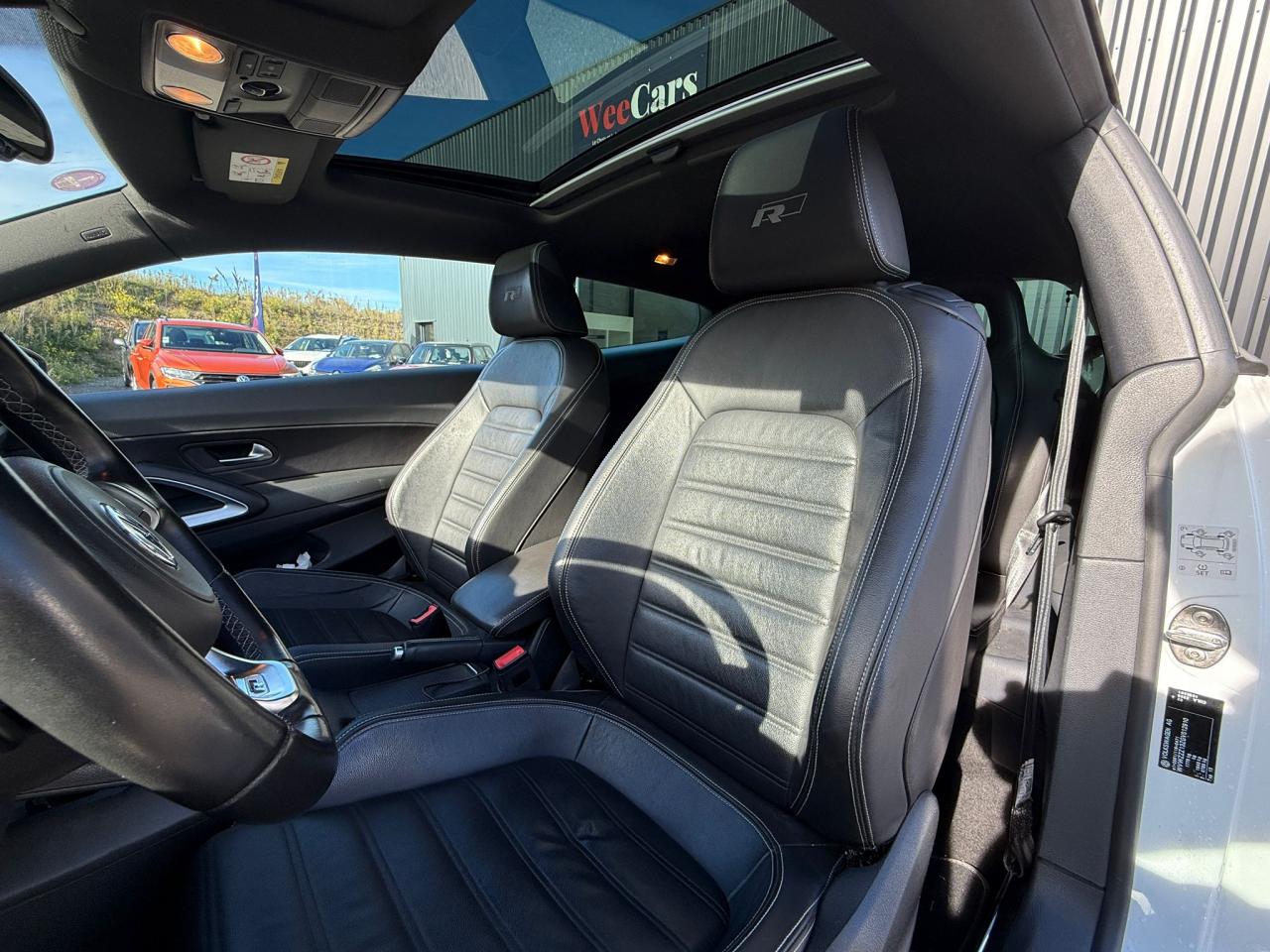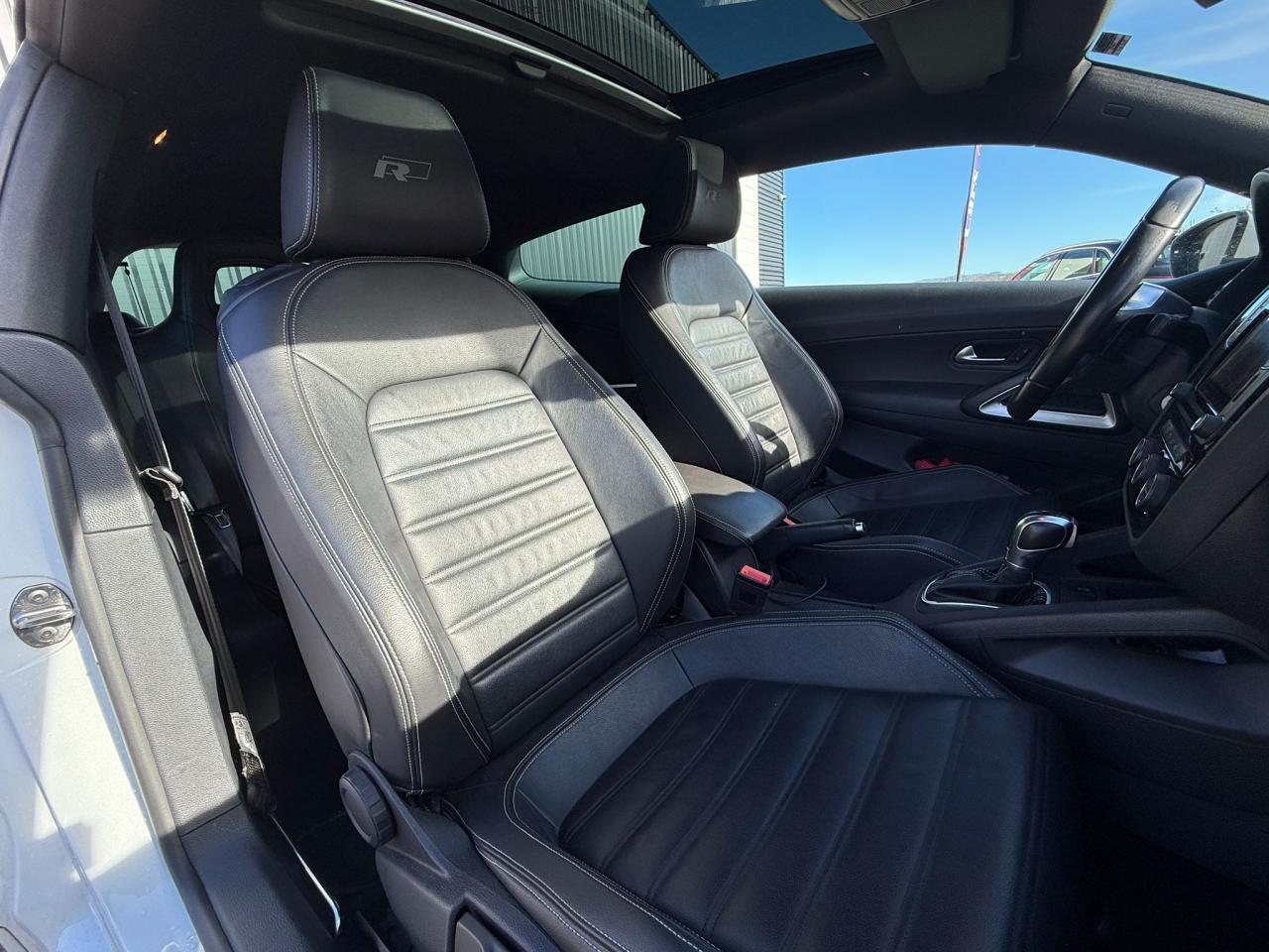 Accoudoir central avant avec compartiment de rangementActivation automatique des feux de détresse en cas de freinage d'urgencePack Cuir NoirAffichage de la périodicité d'entretienAffichage multifonction avec ordinateur de bord grand écranAide au démarrage en côte ‘Hill-Hold'Aide au stationnement avant et arrière avec signaux sonores et visualisation de la distance des obstacles sur l'écran de la radioAirbag de tête pour passagers avant et arrière incluant airbag latéraux avantAlerte de perte de pression des pneusAllumage automatique des feux, fonction Leaving Home automatique, fonction Coming Home à réglage manuelAntenne de toitAppuie-tête (2) "annulaires" intégrés à la banquette arrièreAppuie-tête réglables en hauteur avec 'sécurité optimisée' sur les sièges conducteur et passager avantAvertisseur sonore des phares allumésBanquette arrière constituée de deux sièges individual, dossiers rabattables symétriquementBoîte à gants verrouillable, éclairée, avec possibilité de réfrigérationCapteur de pluieCarrosserie entièrement galvanisée garantie 12 ans contre la corrosion d'origine interneCeintures de sécurité avant trois points à enrouleur, réglables en hauteur, avec prétensionneursChâssis “Sport”Ciel de pavillon noirClignotants à verre blanc, intégrés dans le bouclier avantClimatisation automatique ‘Climatronic' bi-zone, réglable séparément pour conducteur et passagerColonne de direction réglable en hauteur / profondeurCompartiment de rangement dans la console de pavillonCompartiment de rangement dans les portesCompteurs sports additionnels sur la planche de bordCoques de rétroviseurs noiresCorrecteur électronique de trajectoire ESP incluant ABS antiblocage des roues avec assistance au freinage d'urgence, ASR antipatinage électronique, EDS blocage électronique de différentiel, MSR régulateur de coupleDirection électromécanique à assistance variable en fonction de la vitesseDispositif de fixation pour sièges enfants aux normes ISOFIX aux places arrièreDouble Airbag frontal avant (Airbag passager désactivable par clef)Eclairage aux pieds des passagers avantEclairage blanc des instruments avec aiguilles rouges, réglable en intensitéEclairage du coffreEntrée d'air avant inférieure et grille de calandre en nid d'abeille avec un bandeau horizontal de couleur noireEssuie-glace avant avec commande d'intermittenceFatigue Detection : Système de détection de fatigue du conducteurFeux arrière à LED et éclairage de plaque à LEDFeux de jour à LEDFiltre anti-pollen et anti-poussière à charbon actifFreins à disque ventilé à l'avant, freins à disque à l'arrièreGrille de calandre à lamelles noires ornée du monogramme ‘R-LineInserts décoratifs ‘Black Flag'Instrumentation avec tachymètre électronique, compteur kilométrique, totalisateur kilométrique journalier et compte-toursJantes en alliage léger 18” ‘Salvador' et pneumatiques 235/40 R18 dotés de la technologie Seal avec écrous antivolLave-essuie-glace arrière à balayage intermittentMiroir de courtoisie éclairé dans les pare-soleilOEilletons (2) de fixation dans le coffrePare-brise et vitres athermiques teintés vertPare-chocs avant / arrière et jupes latérales spécifiquesPédalier type aluminiumPoignée de frein à main gainée cuirPoignées de portes, bouclier et rétroviseurs extérieurs couleur carrosseriePorte-boissons (2) à l'avant avec volet de fermeturePrise 12V dans le coffrePrise 12V et bac de rangementProjecteurs antibrouillardProjecteurs bi-xénon directionnels pour feux de route et feux de croisement, avec éclairage d'intersection, feux de jour LED, réglage dynamique du site des phares, lave-phares et témoin de lave-glaceProtection antidémarrage ImmotronicRappels latéraux de clignotant intégrés aux rétroviseurs extérieurs, à diodes électroluminescentesRéflecteurs dans les portièresRégulateur de vitesseRétroviseur intérieur électrochromeRétroviseurs extérieurs électriques et dégivrants, asphérique côté conducteurSellerie en tissu / Alcantara ‘Greg'Sièges avant sport conducteur et passager réglables en hauteurSpots de lecture (2) à l'avantSystème 'Easy Entry' manuel, conducteur et passager, facilitant l'accès aux places arrièreSystème Audio & Infotainment ‘Composition Media'Système Start/ Stop avec récupération d'énergie de freinageTapis de sol avant et arrièreTémoin avec avertisseur sonore d'oubli de ceinture de sécurité avantTémoin d'usure des garnitures de freinsTemporisation de l'éclairage intérieurVerrouillage centralisé à distance avec télécommande à fréquence radio par clé rétractableVitres arrière et lunette arrière surteintées à 65%Vitres avant électriquesVolant cuir multifonction avec palettes au volantVolant cuir Sport 3 branches et pommeau de levier de vitesse gainé de cuir