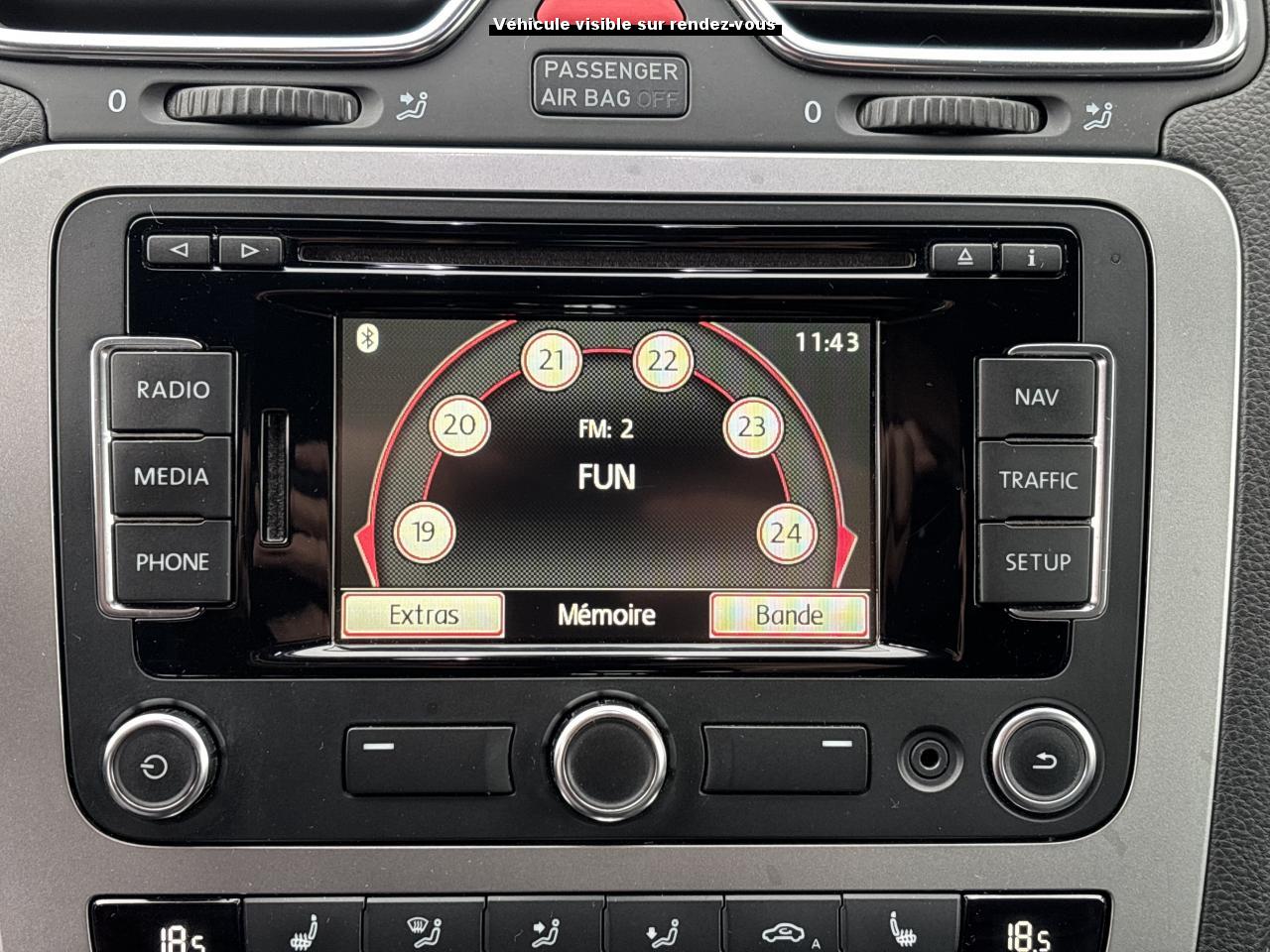 2 porte gobelets à l'avantAccoudoir central avant avec compartiment de rangementAffichage digital de la température d'huileAide au stationnement arrière avec signaux sonores et visualisation de la distance des obstacles sur l'écranAirbag de tête pour passagers avant et arrière incluant airbag latéraux avantAlerte de perte de pression des pneusAllumage automatique des feux, fonction Leaving Home automatique, fonction Coming Home à réglage manuelAppuie-tête (2) "annulaires" intégrés à la banquette arrièreAppuie-tête réglables en hauteur avec 'sécurité optimisée' sur les sièges conducteur et passager avantAssistant de démarrage en côteAvertisseur de freinage d'urgenceAvertisseur sonore des phares allumésBanquette arrière constituée de deux sièges individual, dossiers rabattables symétriquementBoîte à gants verrouillable, éclairée, avec possibilité de réfrigérationCalandre avec barrettes horizontales de couleur noireCapteur de pluieCarrosserie entièrement galvanisée garantie 12 ans contre la corrosion d'origine interneCeintures de sécurité avant trois points à enrouleur, réglables en hauteur, avec prétensionneursChâssis “Sport”Ciel de pavillon noirClignotants à verre blanc, intégrés dans le bouclier avantClimatisation automatique ‘Climatronic' bi-zone, réglable séparément pour conducteur et passagerColonne de direction réglable en hauteur / profondeurCompartiment de rangement dans la console de pavillonCompartiment de rangement dans les portesCorrecteur électronique de trajectoire ESP incluant ABS antiblocage des roues avec assistance au freinage d'urgence, ASR antipatinage électronique, EDS blocage électronique de différentiel, MSR régulateur de coupleDirection électromécanique à assistance variable en fonction de la vitesseDouble airbag frontal à l'avantDouble Airbag latéral avantDouble sorties d'échappement chroméeEclairage aux pieds des passagers avantEclairage blanc des instruments, réglable en intensité. Design nocturne rouge pour les boutonsEclairage de coffreEclairage diurneEssuie-glace avant avec commande d'intermittenceFatigue Detection : Système de détection de fatigue du conducteurFiltre anti-pollen et anti-poussière à charbon actifFreins à disque ventilé à l'avant, freins à disque à l'arrièreInstrumentation avec tachymètre électronique, compteur kilométrique, totalisateur kilométrique journalier et compte-toursInterface Bluetooth pour téléphone portable (mains-libres)Jantes en alliage léger 'Interlagos' 8JX18 (4) avec pneumatiques 235/40 R 18Jantes en alliage léger 18'' ‘Interlagos' et pneumatiques 235/40 R18 dotés de la technologie Seal avec écrous antivolKit de dépannage : compresseur 12 volts et produit d'étanchéité de pneuKlaxon bi-tonLave-essuie-glace arrière à balayage intermittentMiroir de courtoisie éclairé dans les pare-soleilMoquette en aiguilleté veloursOeilletons (4 ) de fixation dans le coffreOrdinateur de bord (avec témoin de température extérieure)Pare-brise et vitres athermiques teintés vertPédalerie type aluminiumPoignée de frein à main gainée cuirPoignées de portes, bouclier et rétroviseurs extérieurs couleur carrosseriePommeau de levier de vitesses en cuirPréparation pour fixation de sièges enfants suivant la norme ‘Isofix' sur les sièges arrièrePrise 12V dans le coffrePrise 12V et bac de rangementProjecteurs antibrouillardProjecteurs halogènes à l'avantProtection antidémarrage 'Immotronic'Radio CD ‘RCD 510' MP3 - 4 x 20W - 8 HPRappels latéraux de clignotant intégrés aux rétroviseurs extérieurs, à diodes électroluminescentesRégulateur de vitesseRétroviseur intérieur électrochromeRétroviseurs extérieurs électriques et dégivrants, asphérique côté conducteurSellerie en tissu 'Catch up' / AlcantaraSièges avant sportSièges conducteur et passager avant réglables en hauteurSpots de lecture (2) à l'avantSystème 'Easy Entry' manuel, conducteur et passager, facilitant l'accès aux places arrièreTapis de sol avant et arrièreTémoin avec avertisseur sonore d'oubli de ceinture de sécurité avantTemporisation de l'éclairage intérieurVerrouillage centralisé à distance avec télécommande à fréquence radio avec deux clés rétractables y compris déverrouillage du coffreVide-poches dans les portières avantVitres arrière et lunette arrière surteintées à 65%Vitres avant électriquesVolant multifonction avec palettes de changement de vitesses et grand ordinateur de bordVolant sport 3 branches gainé de cuir, avec décor aluminium